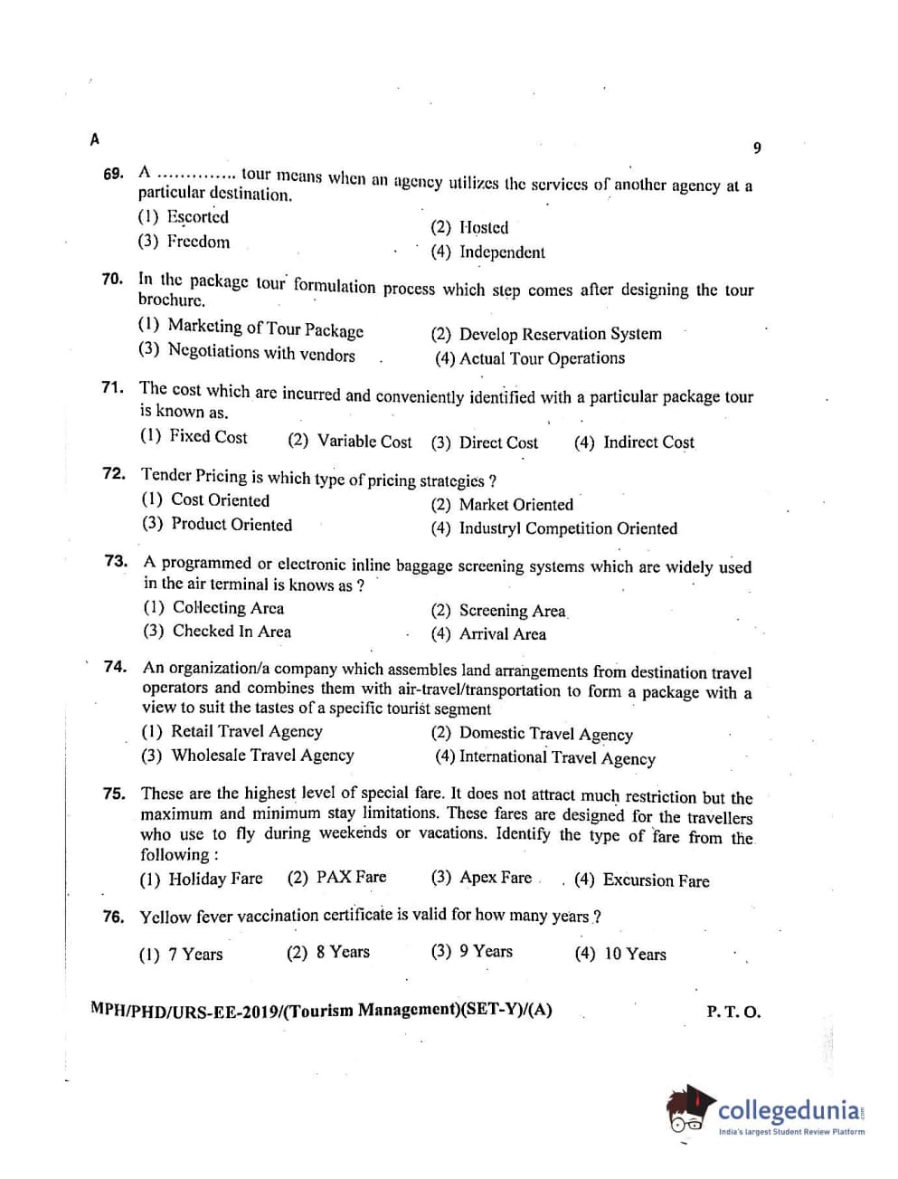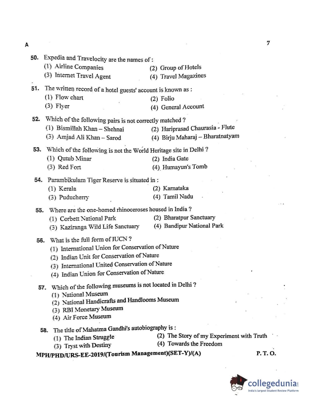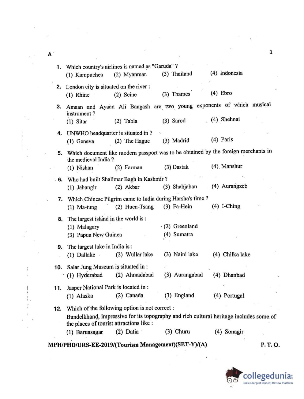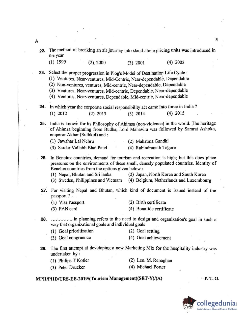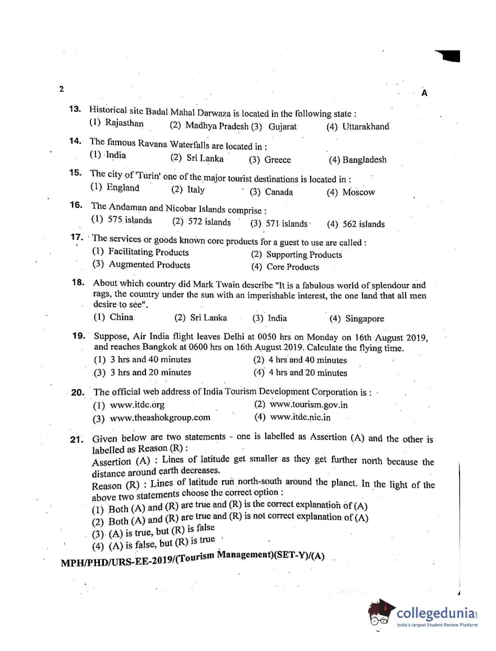| MDUCEE 2019 Ph.D./M.Phil./URS Tourism Management Set A Question Paper PDF | MDUCEE 2019 Ph.D./M.Phil./URS Tourism Management Set A Answer Key PDF |