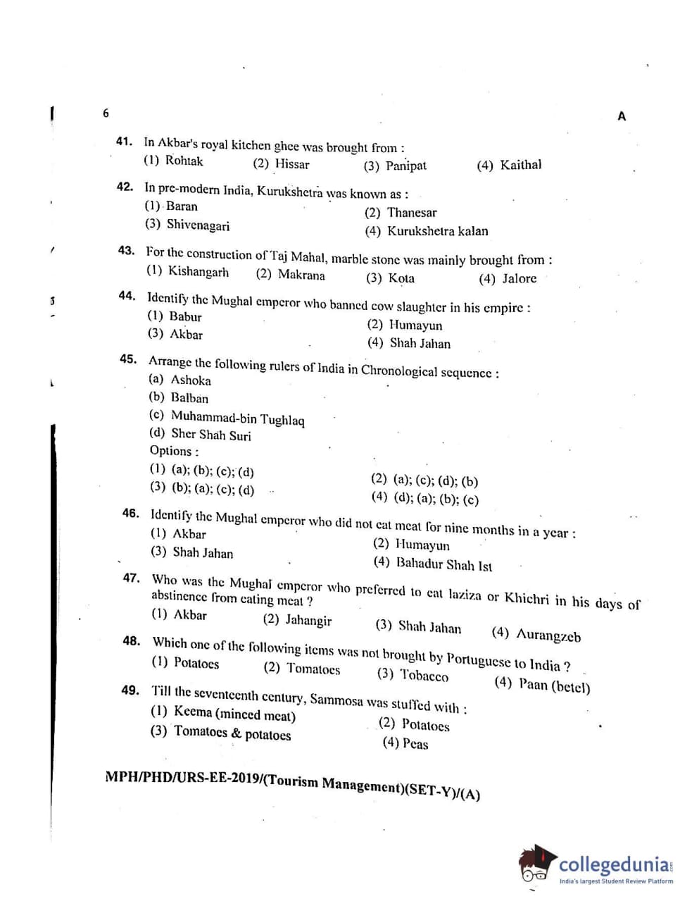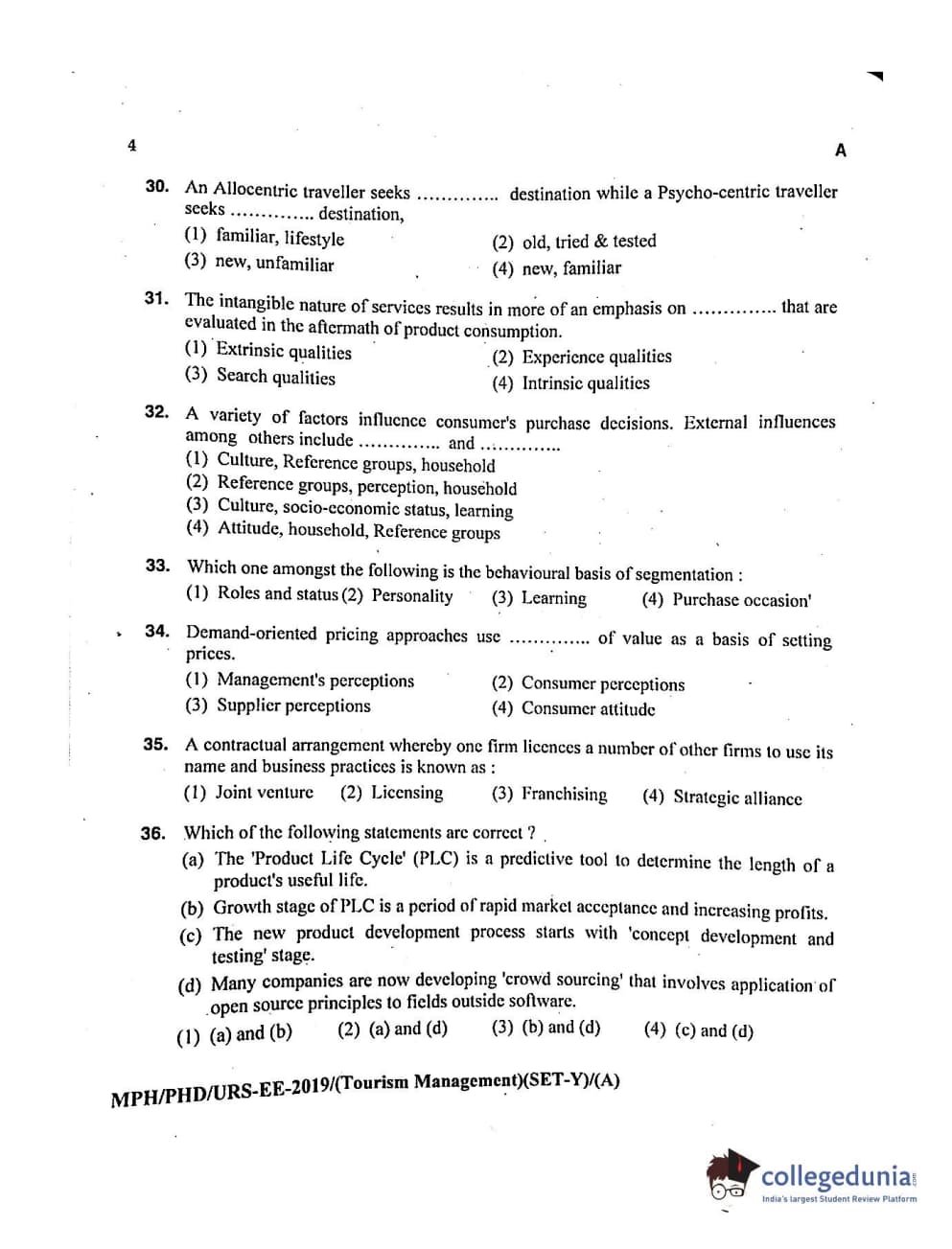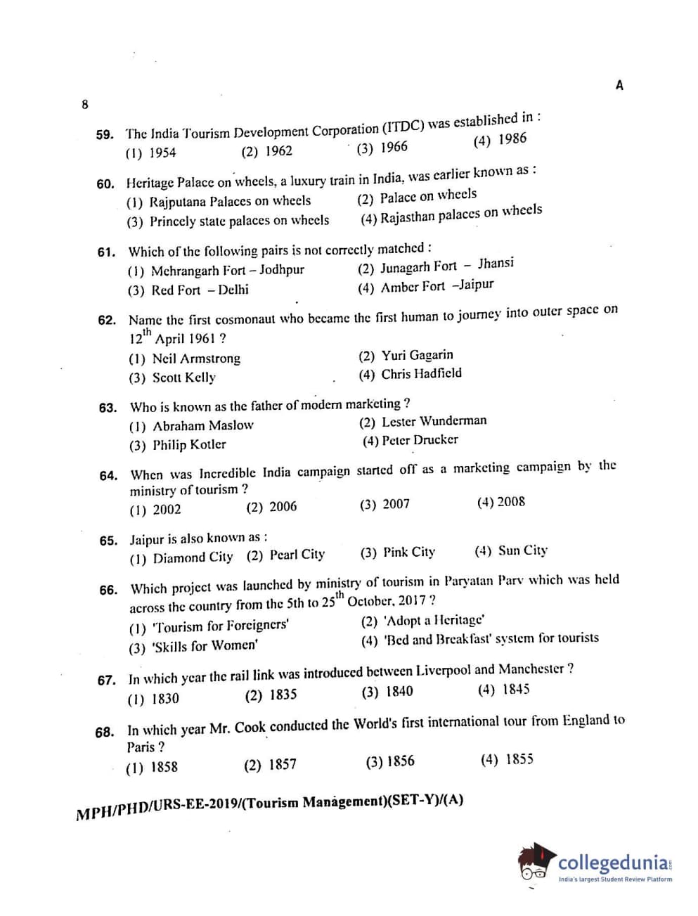 MDUCEE 2019 Ph.D./M.Phil./URS Tourism Management Set A Question Paper with Answer Key PDFs