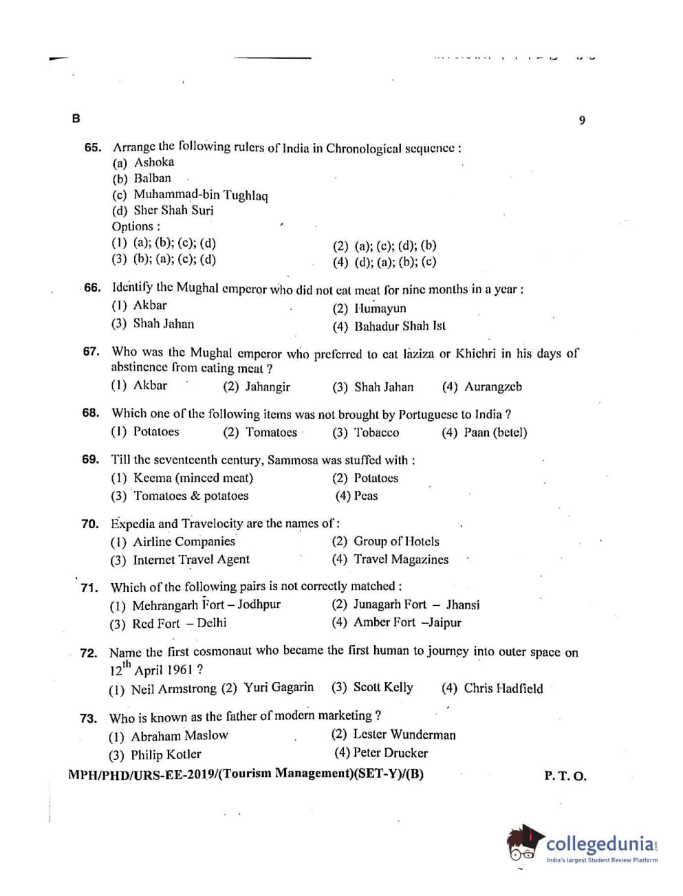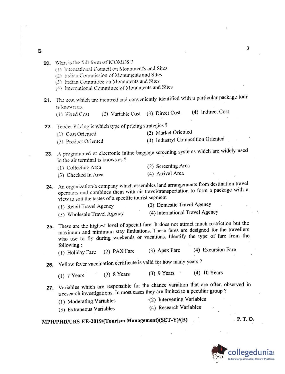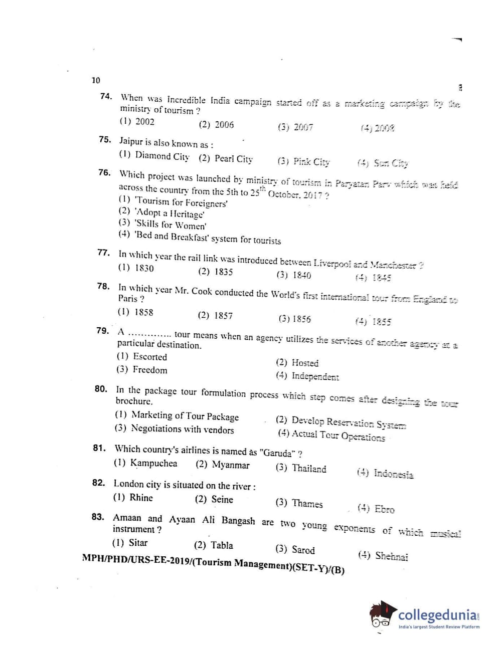 | MDUCEE 2019 Ph.D./M.Phil./URS Tourism Management Set B Question Paper PDF | MDUCEE 2019 Ph.D./M.Phil./URS Tourism Management Set B Answer Key PDF |