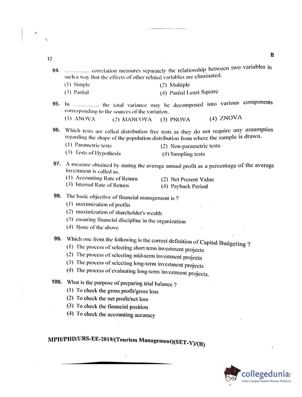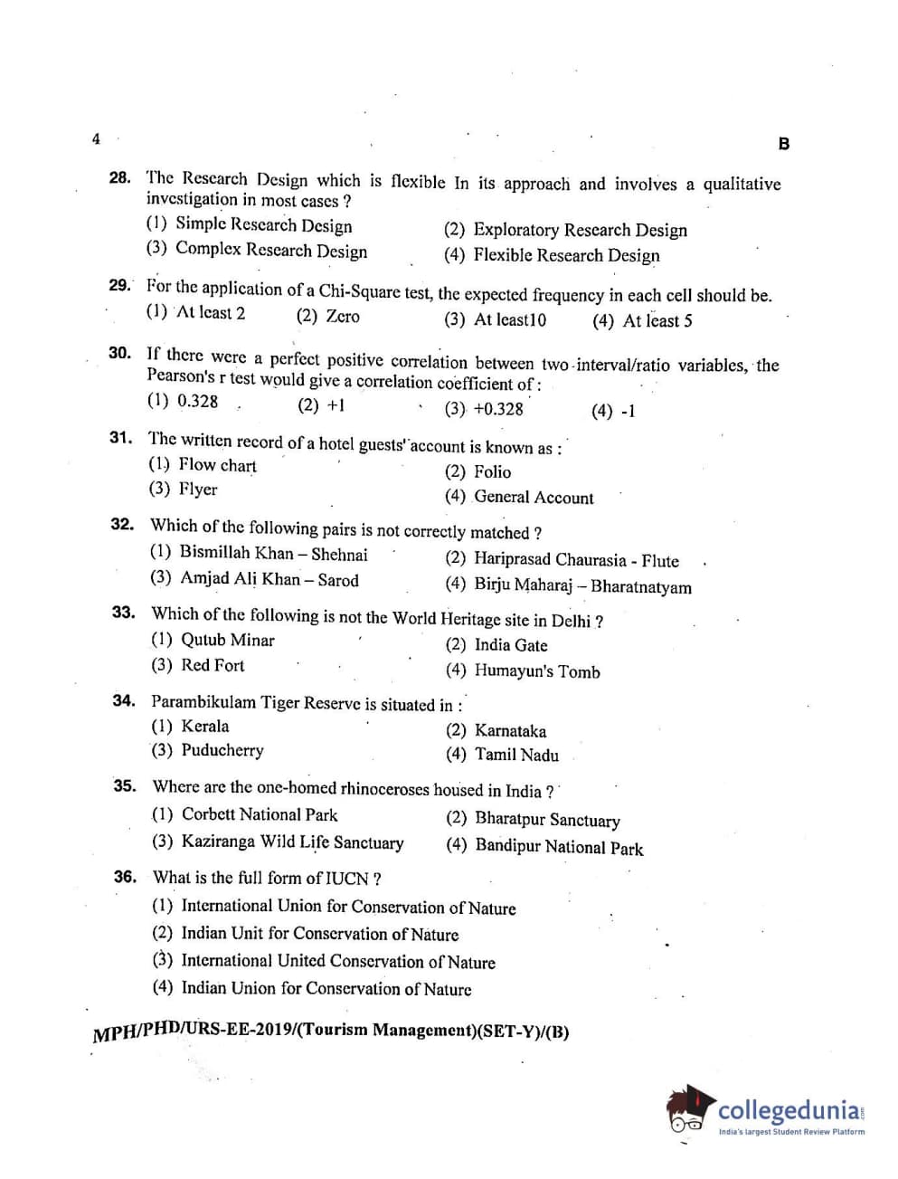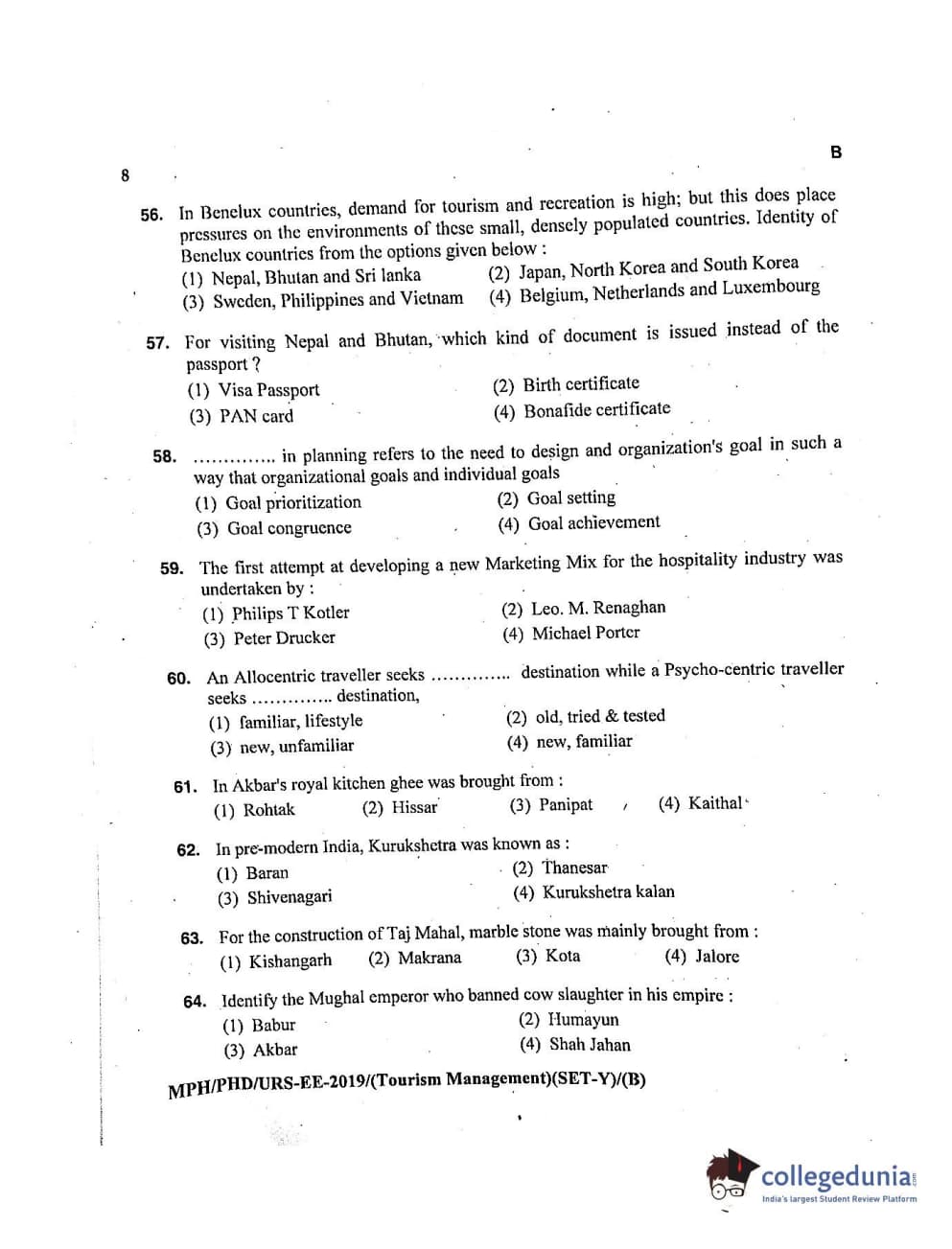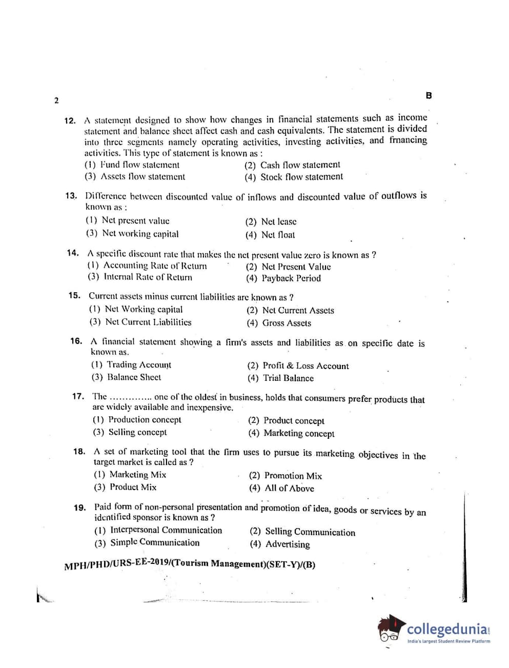MDUCEE 2019 Ph.D./M.Phil./URS Tourism Management Set B Question Paper with Answer Key PDFs