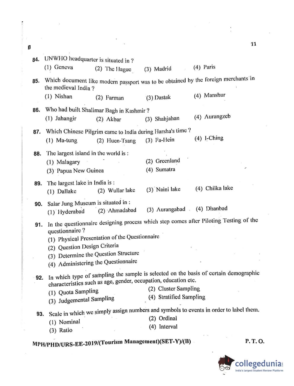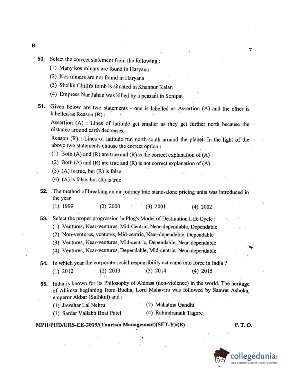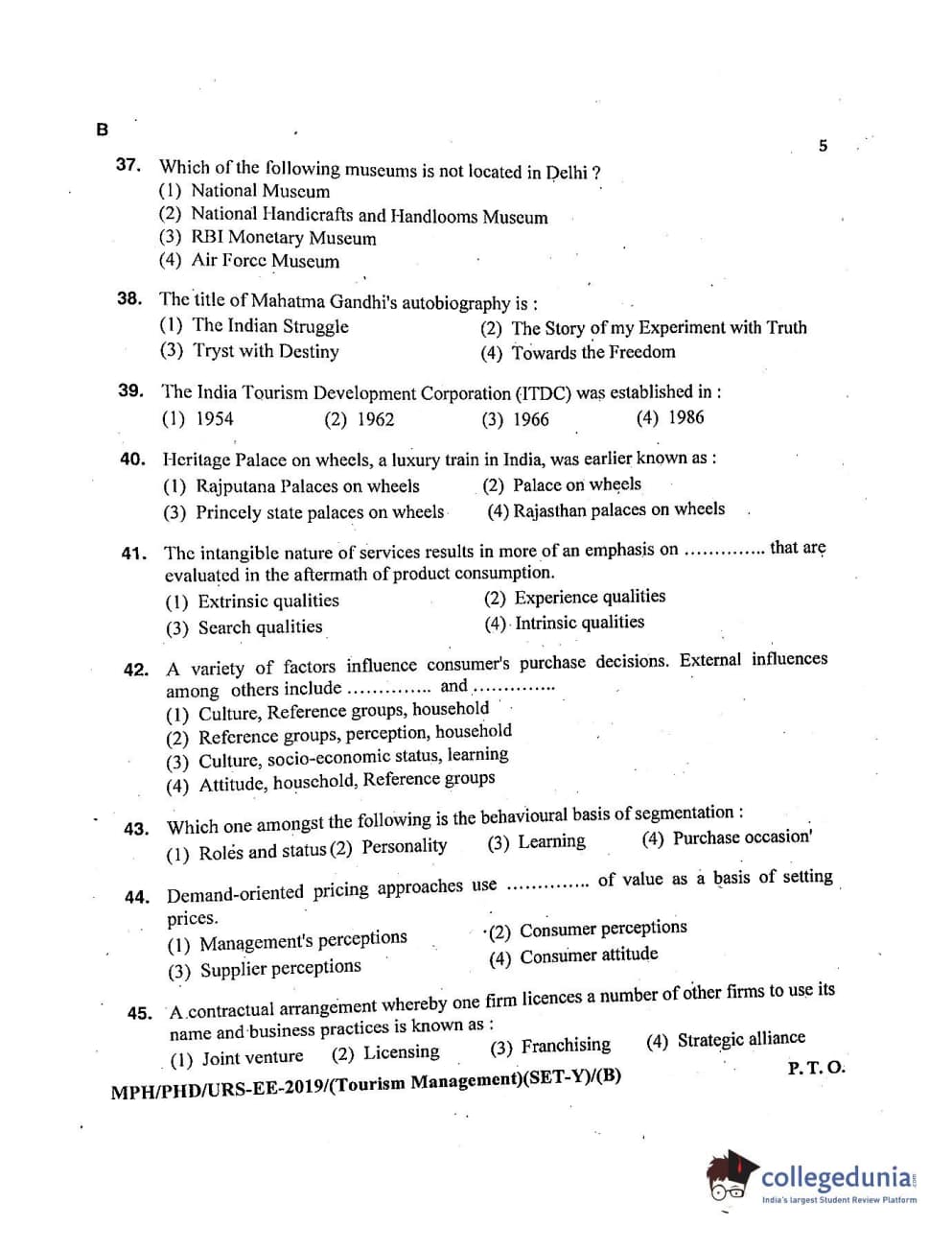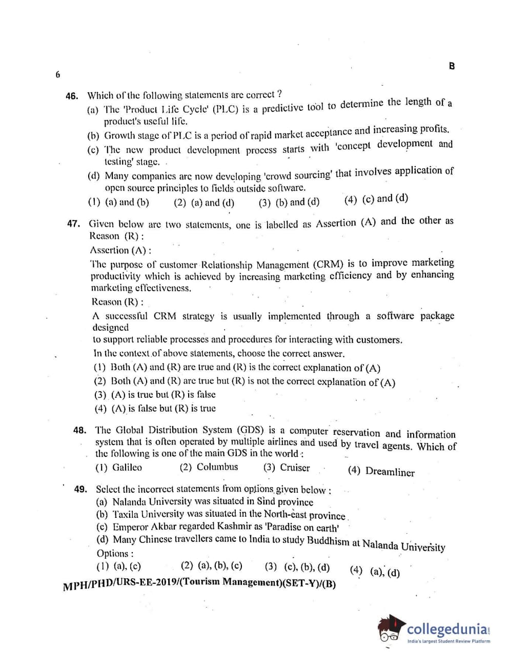 MDUCEE 2019 Ph.D./M.Phil./URS Tourism Management Set B Question Paper with Answer Key PDFs