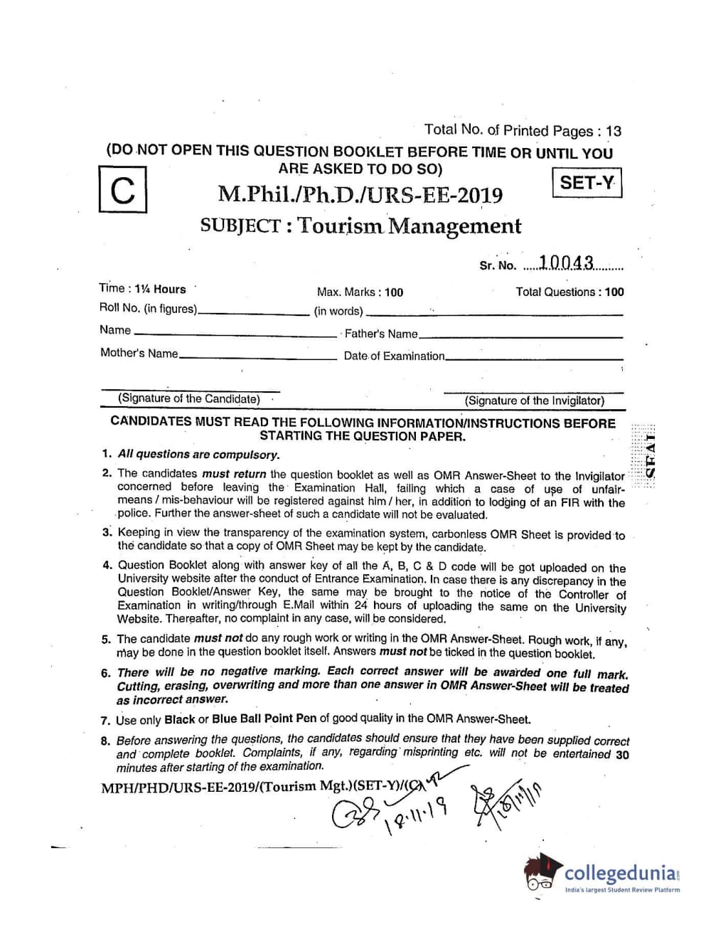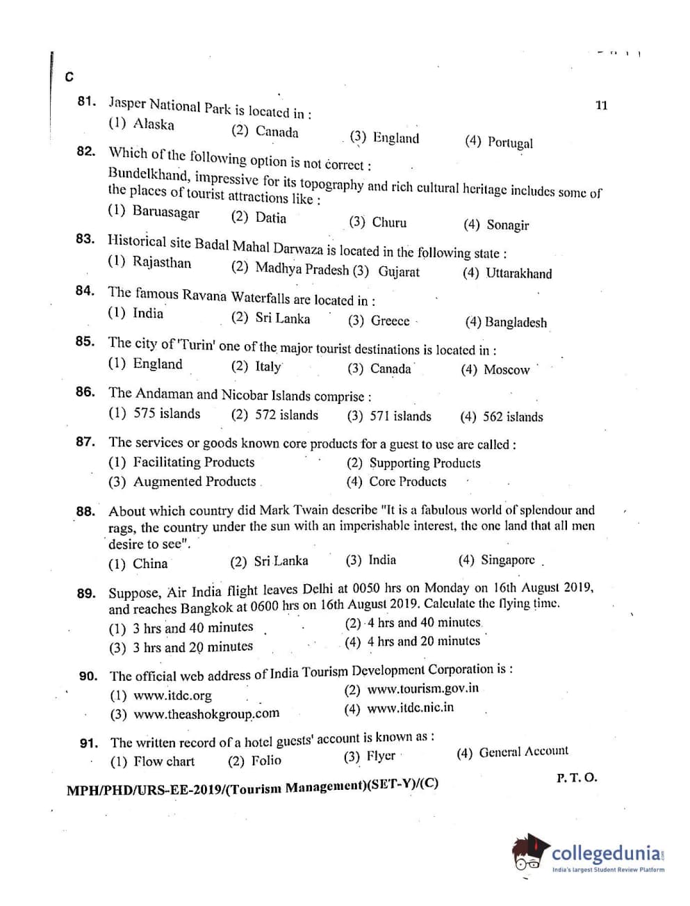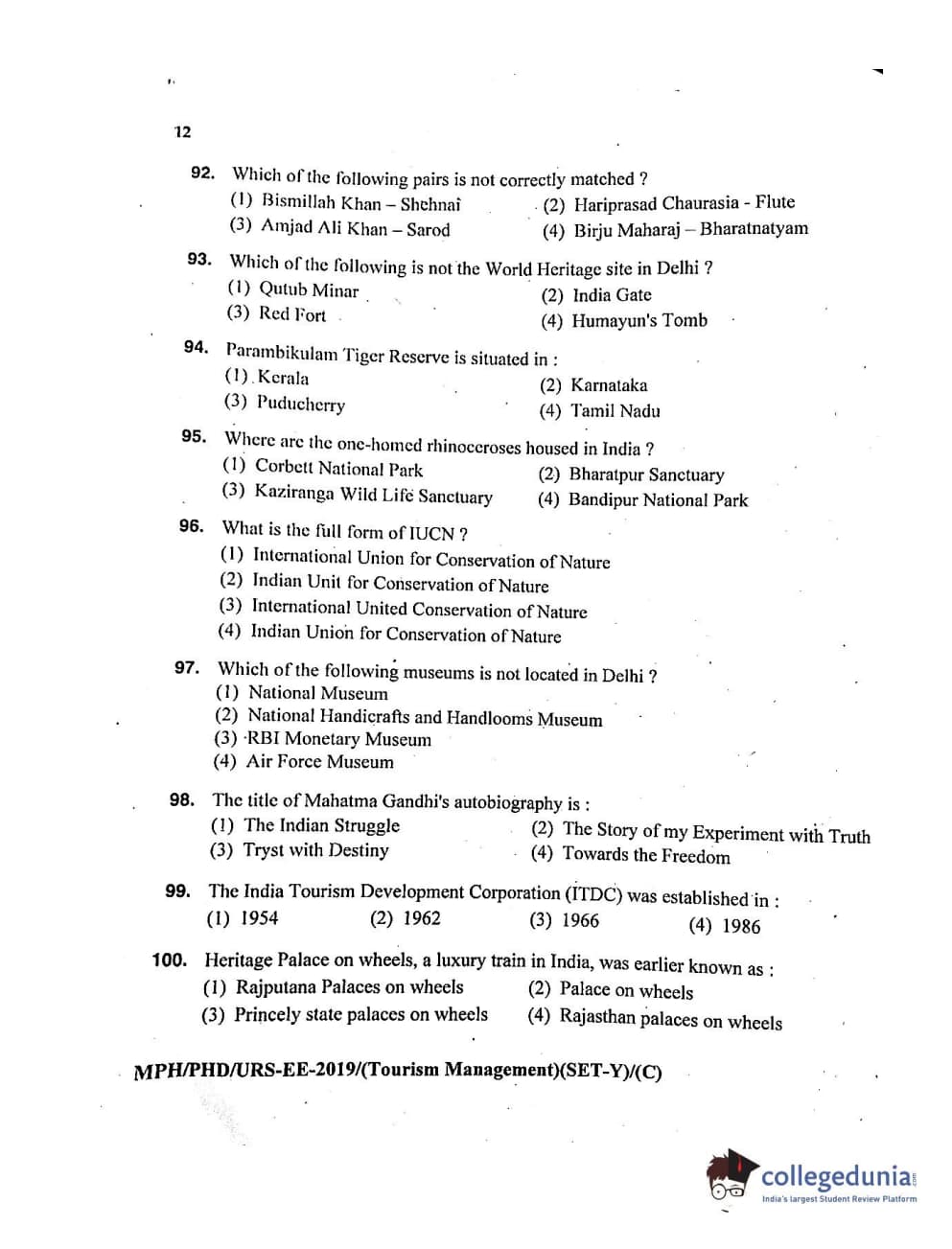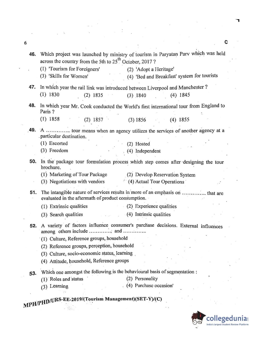 | MDUCEE 2019 Ph.D./M.Phil./URS Tourism Management Set C Question Paper PDF | MDUCEE 2019 Ph.D./M.Phil./URS Tourism Management Set C Answer Key PDF |
