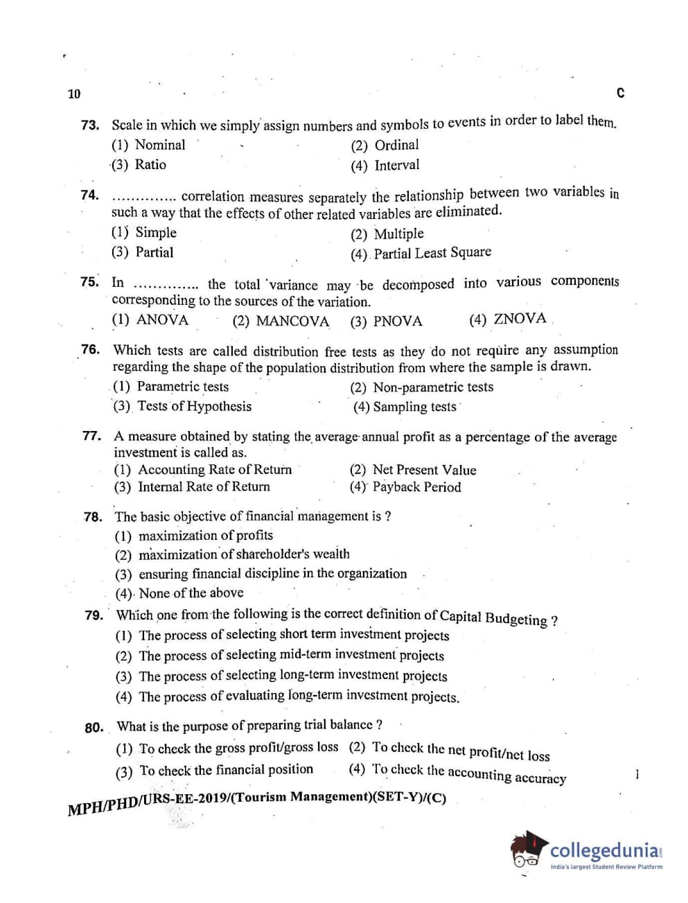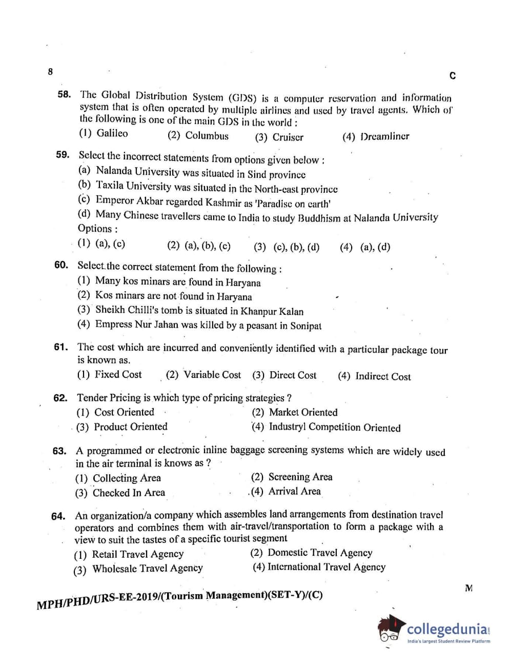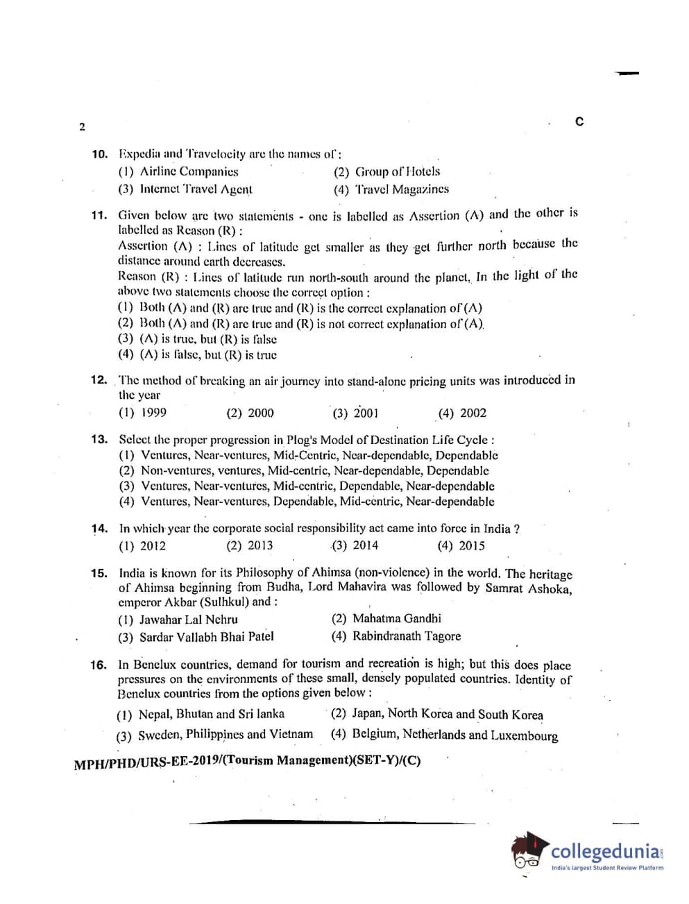 MDUCEE 2019 Ph.D./M.Phil./URS Tourism Management Set C Question Paper with Answer Key PDFs