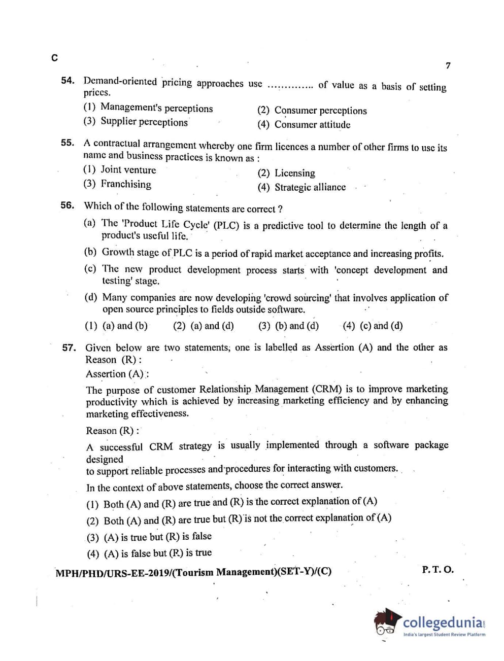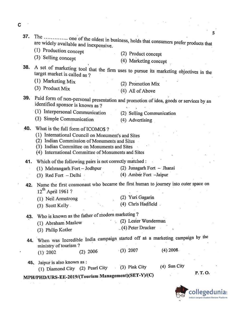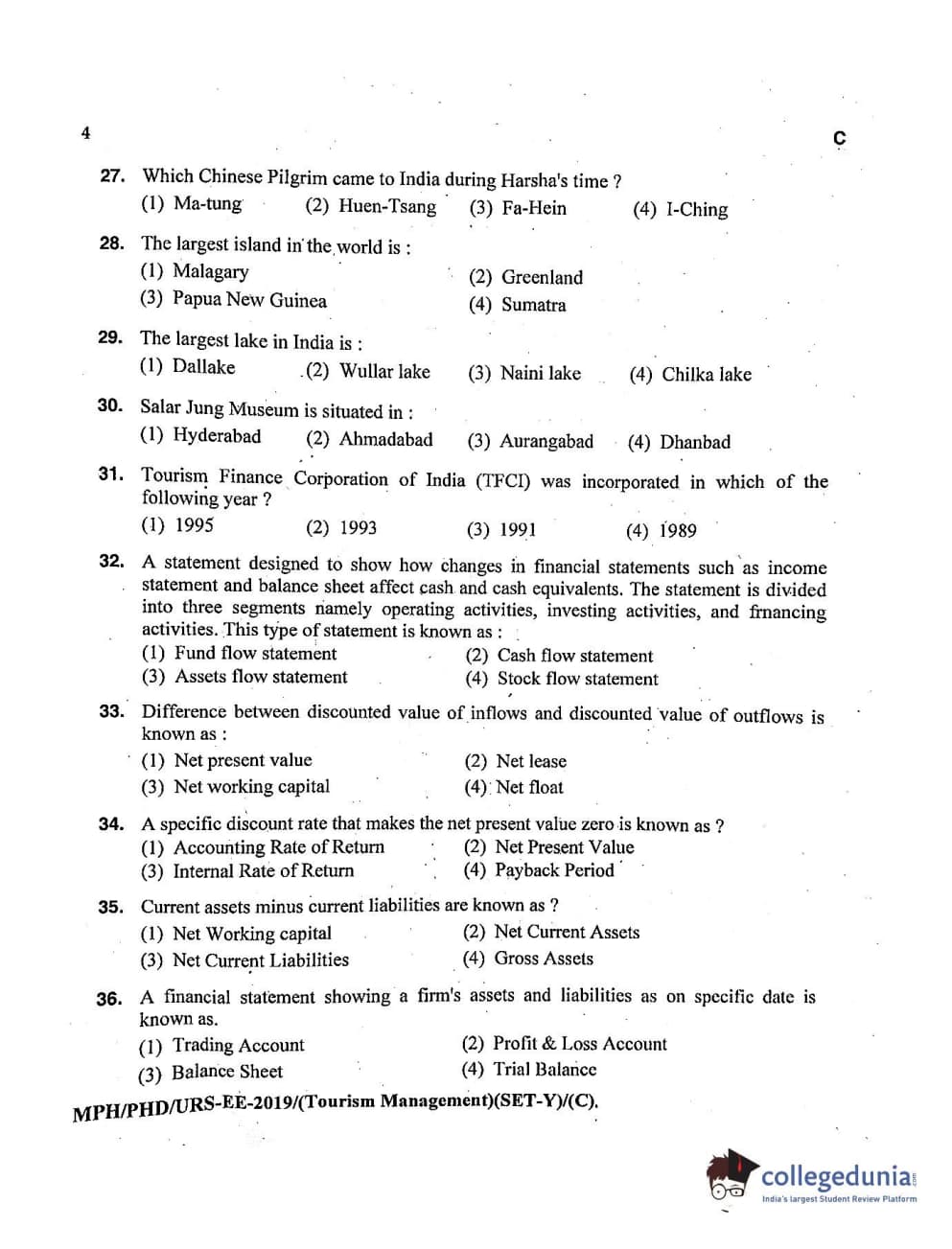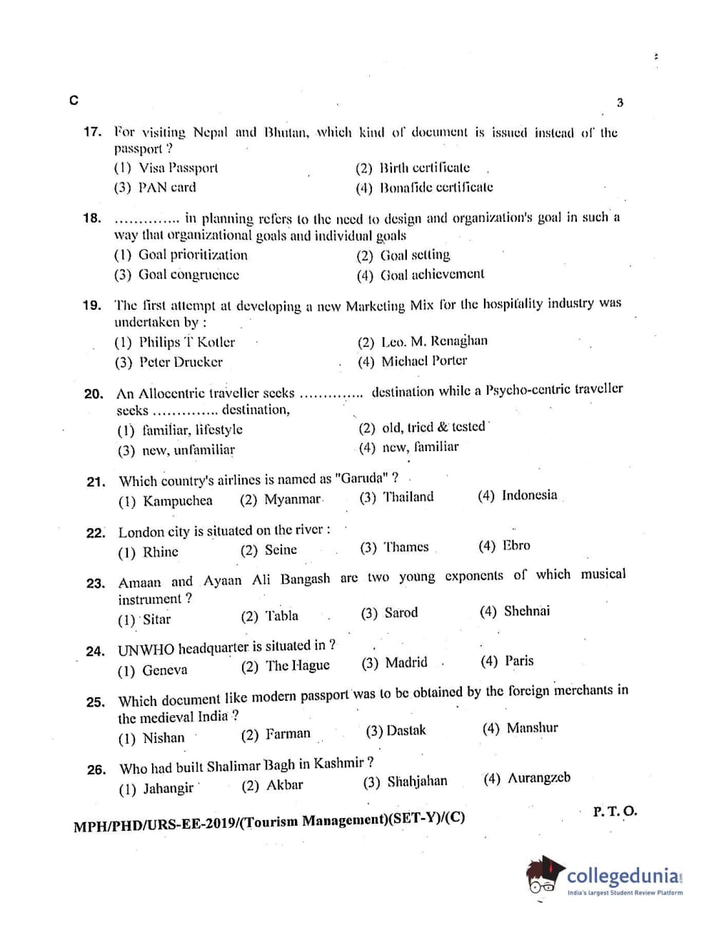 MDUCEE 2019 Ph.D./M.Phil./URS Tourism Management Set C Question Paper with Answer Key PDFs