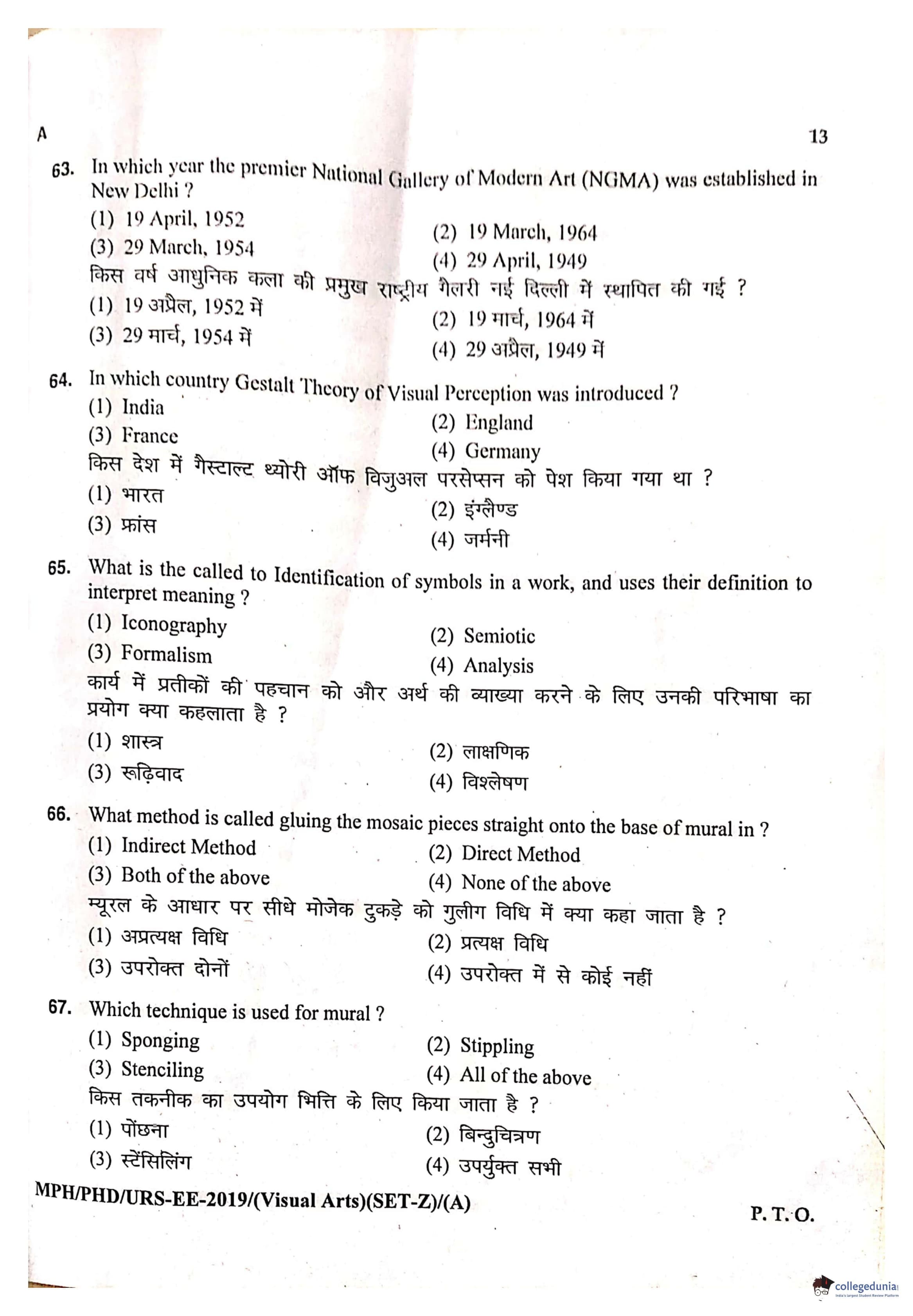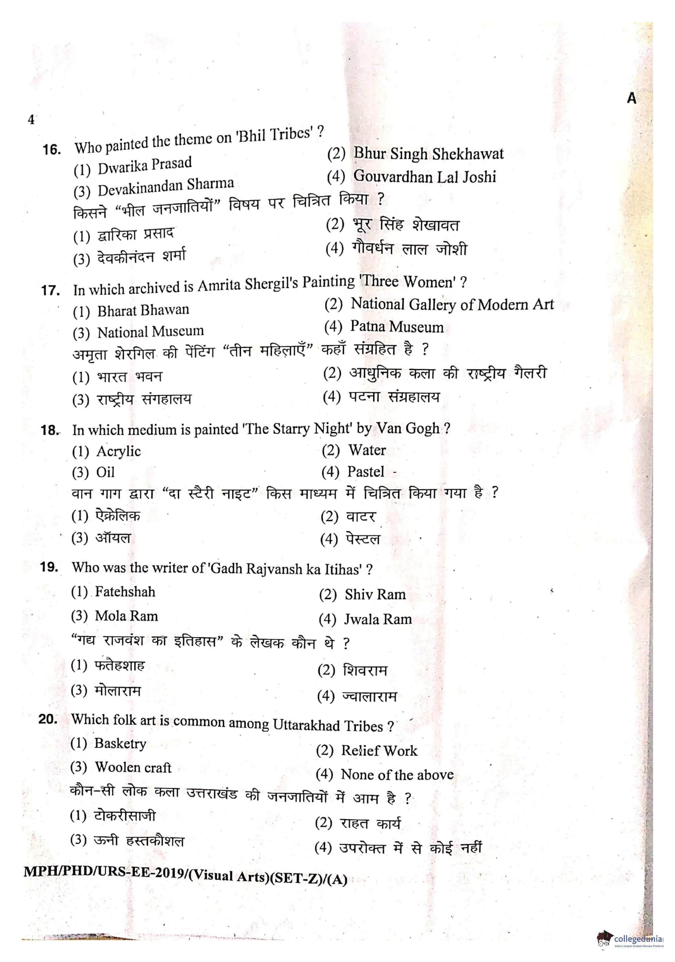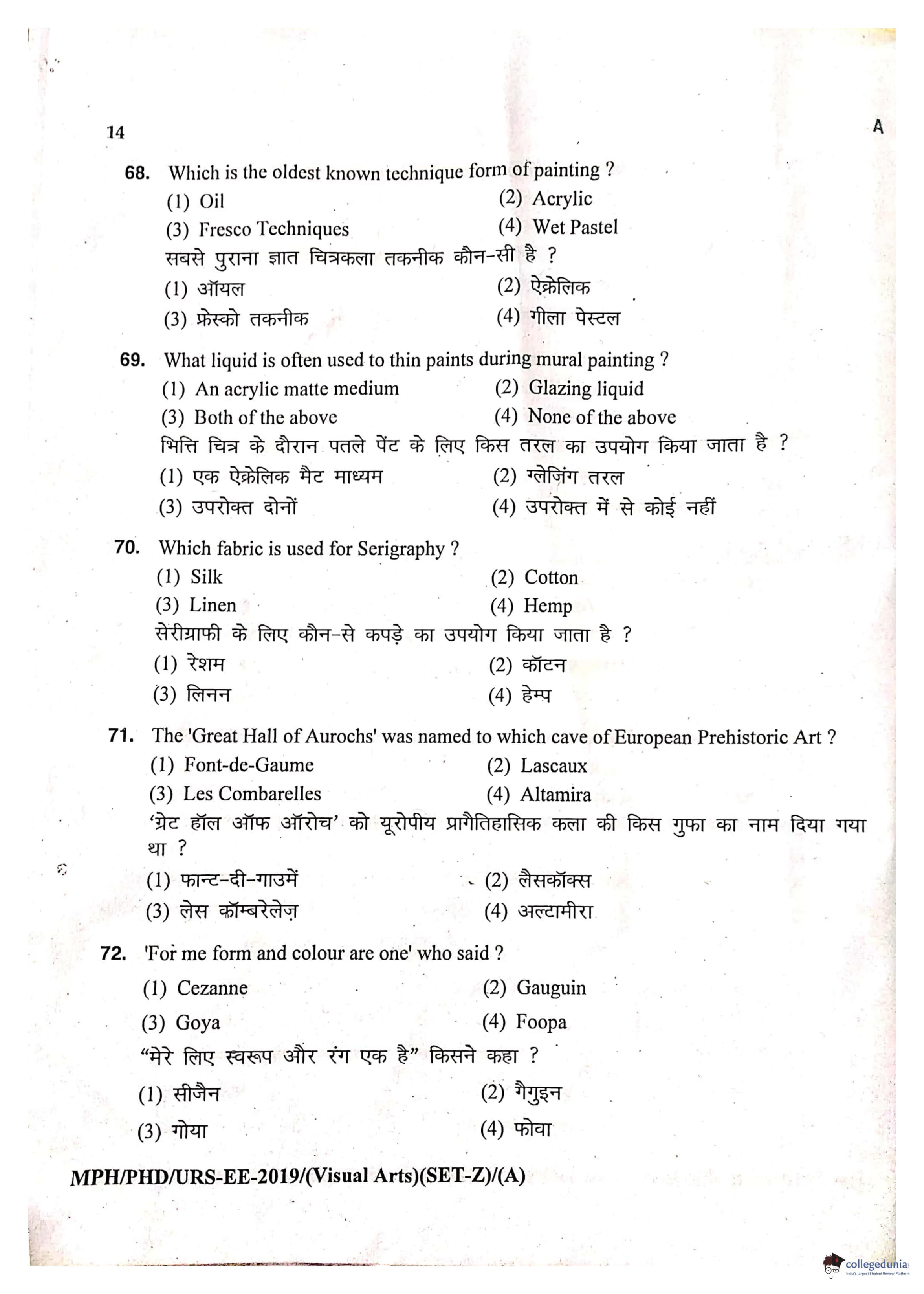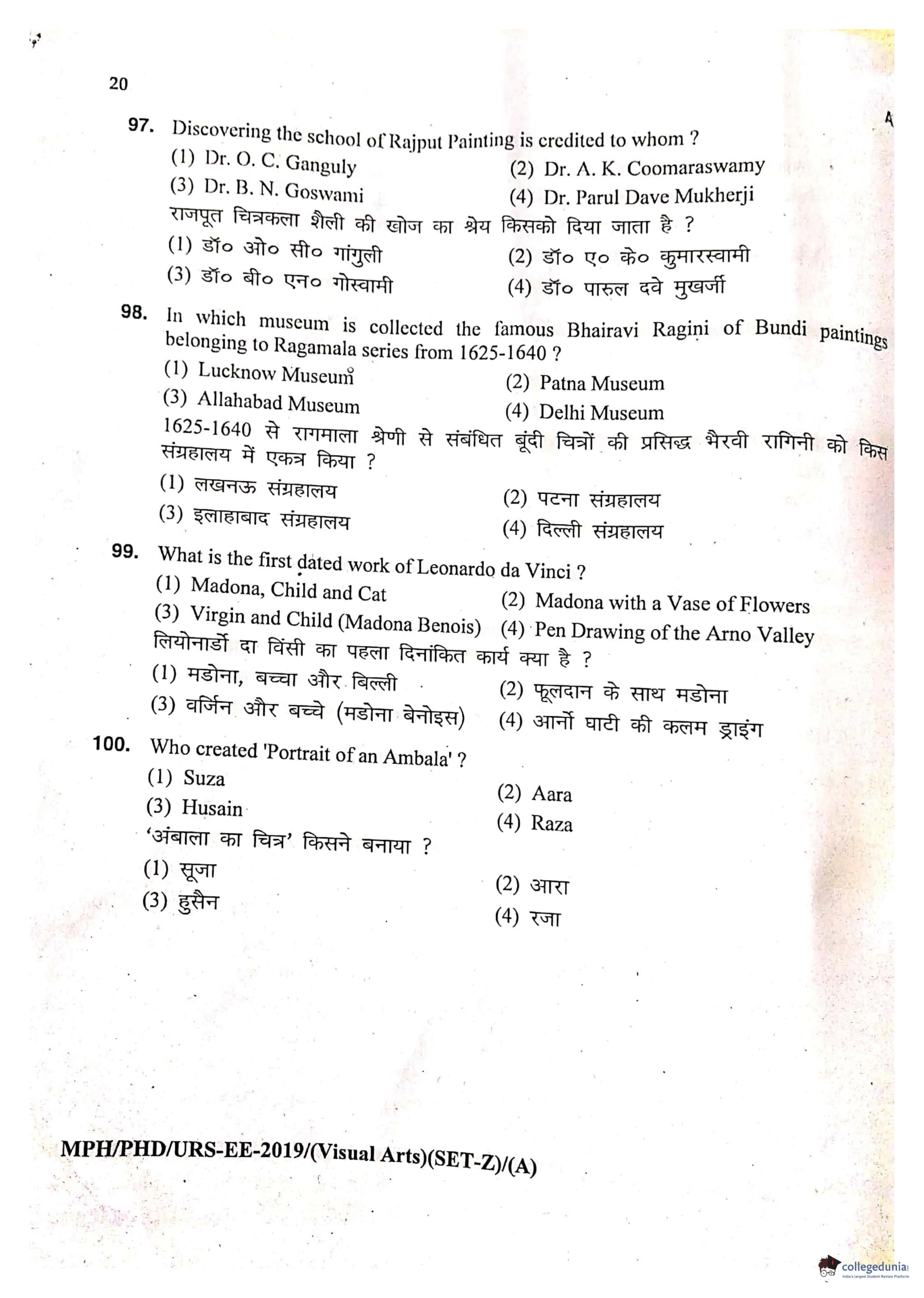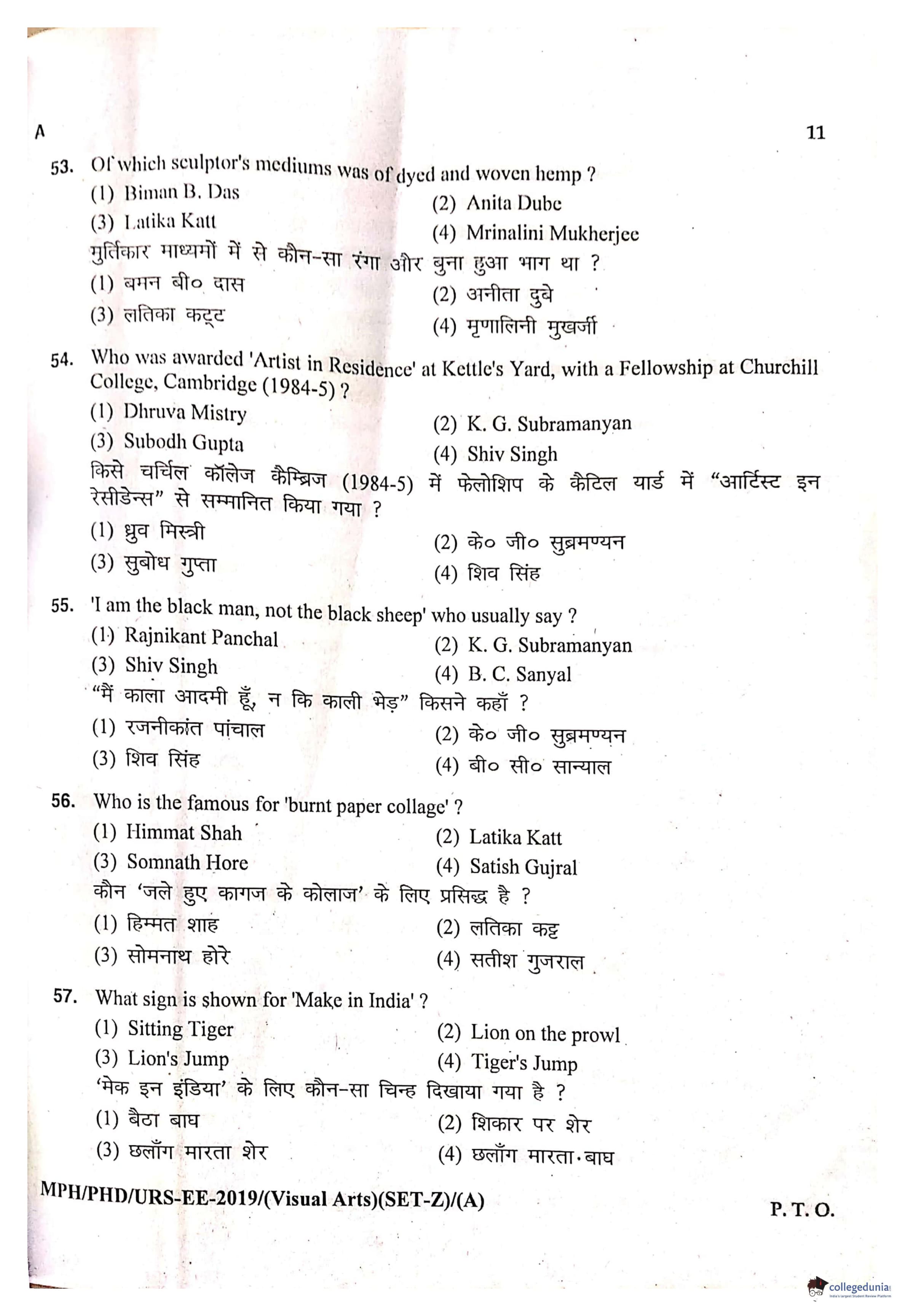 MDUCEE 2019 Ph.D./M.Phil./URS Visual Arts Set A Question Paper with Answer Key PDFs
