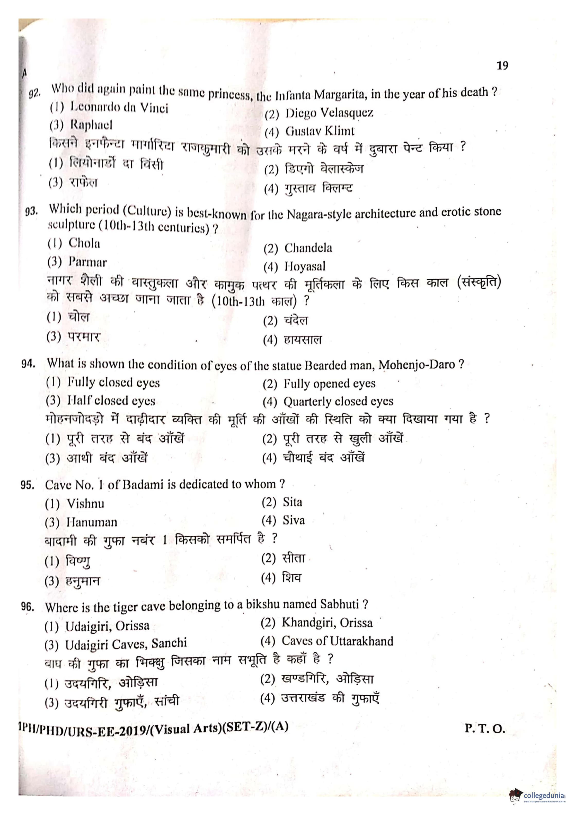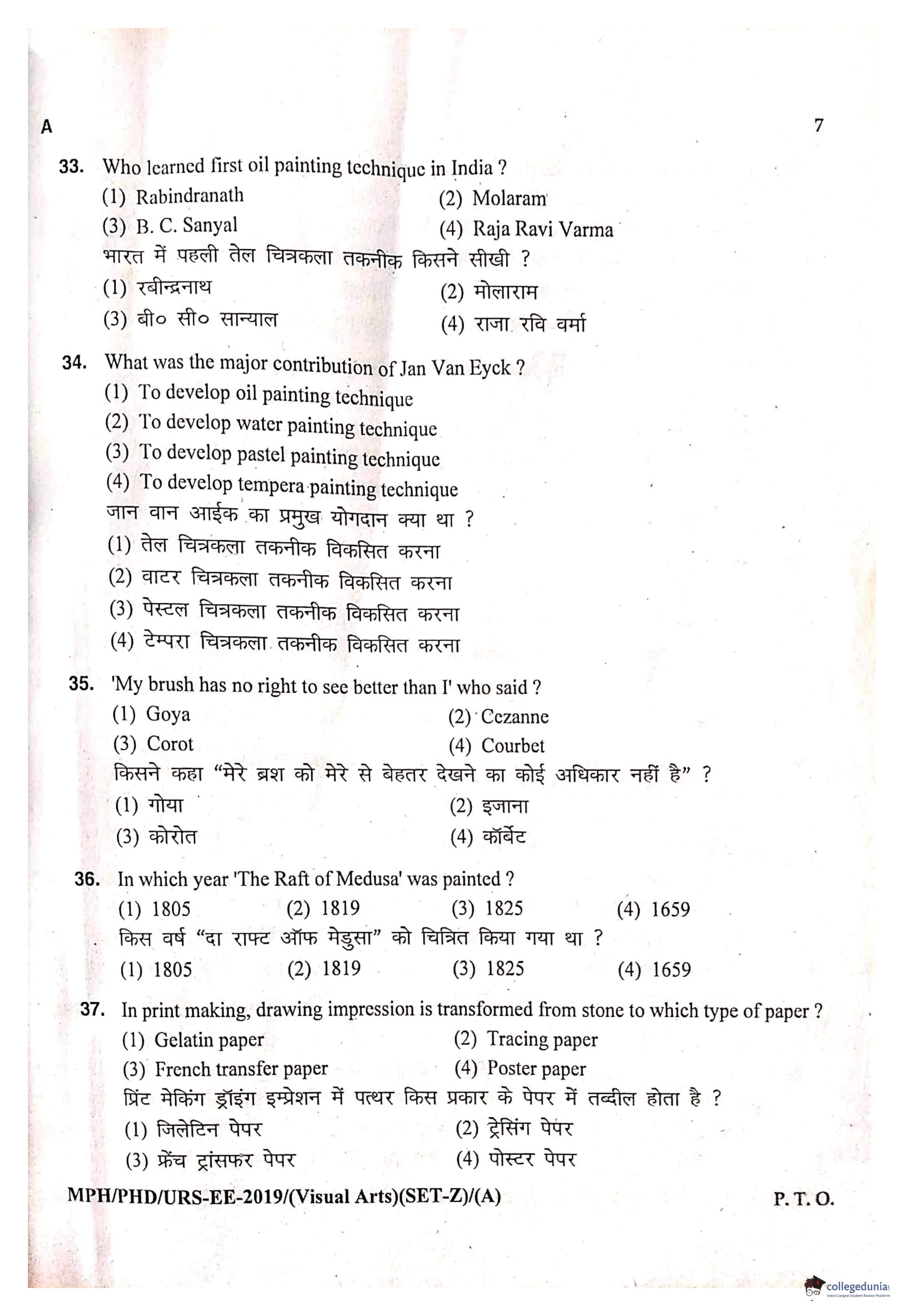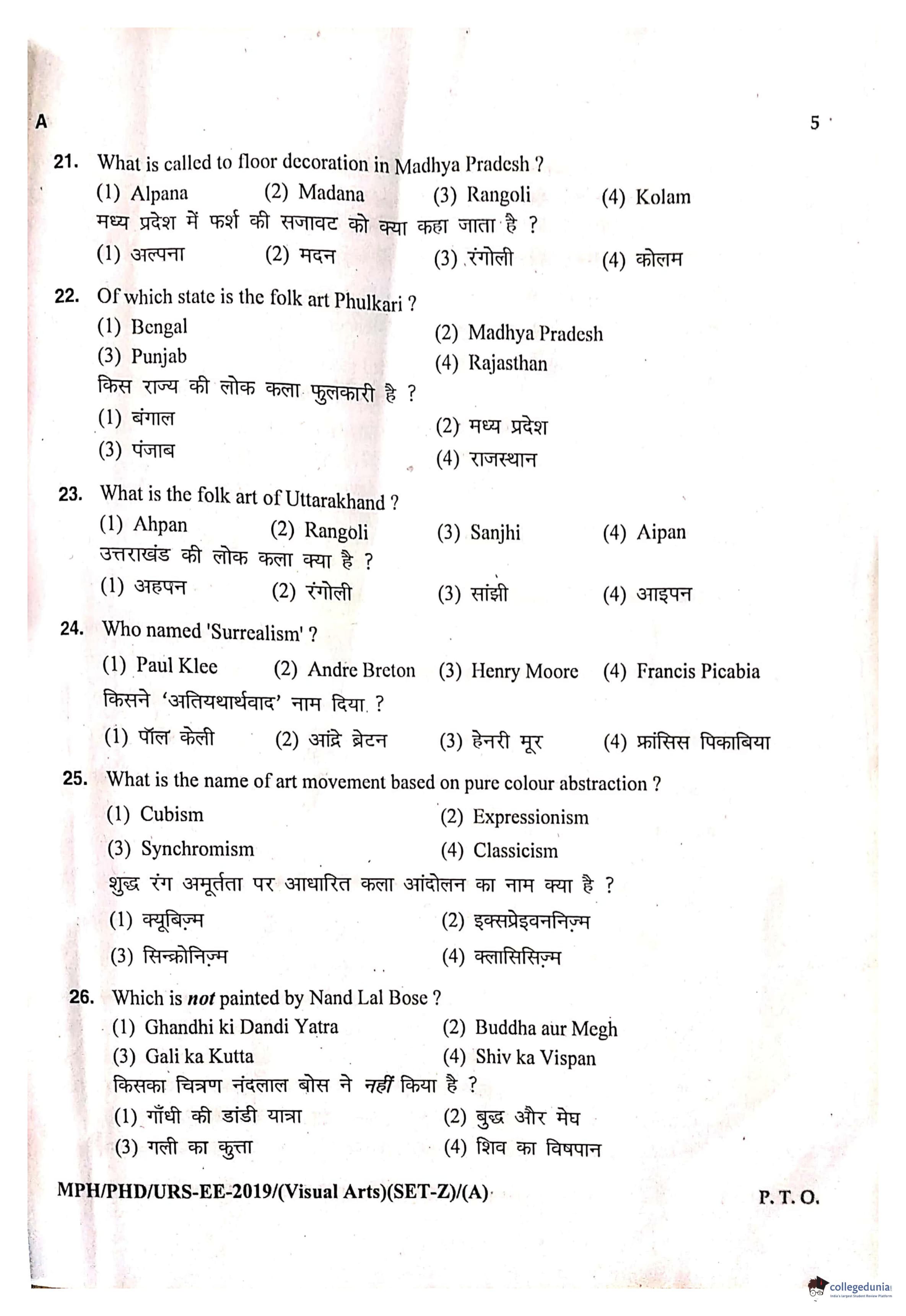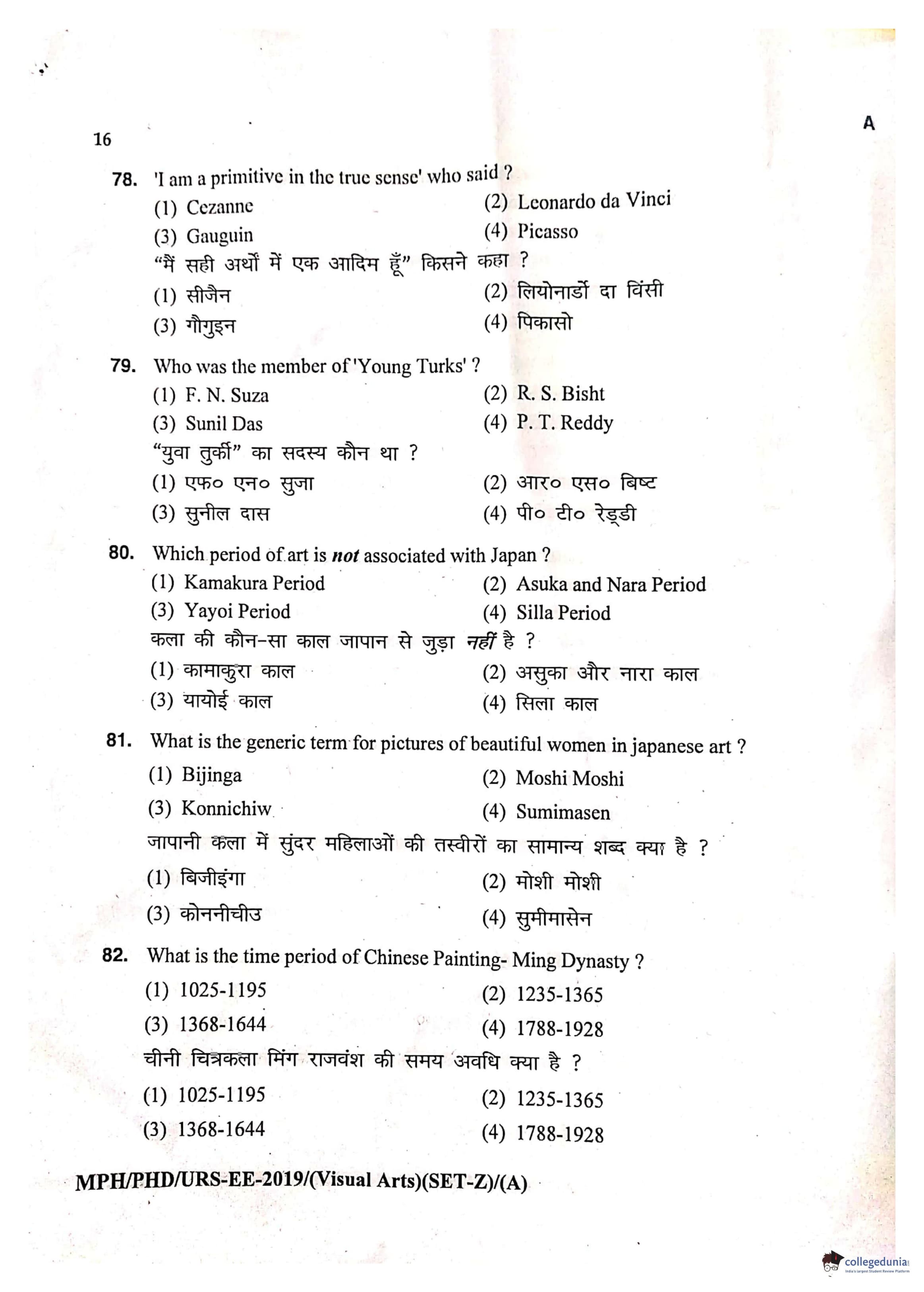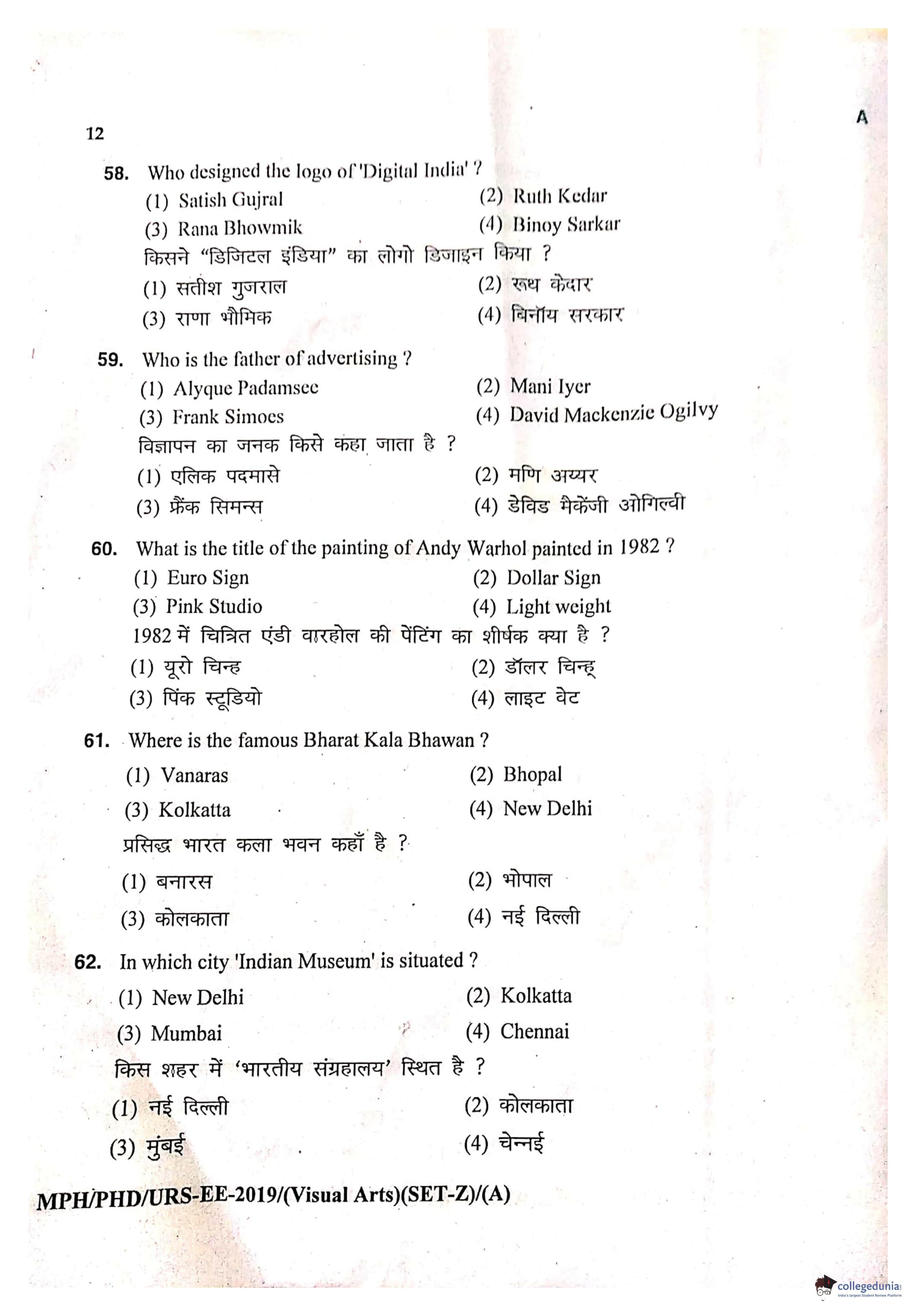 MDUCEE 2019 Ph.D./M.Phil./URS Visual Arts Set A Question Paper with Answer Key PDFs