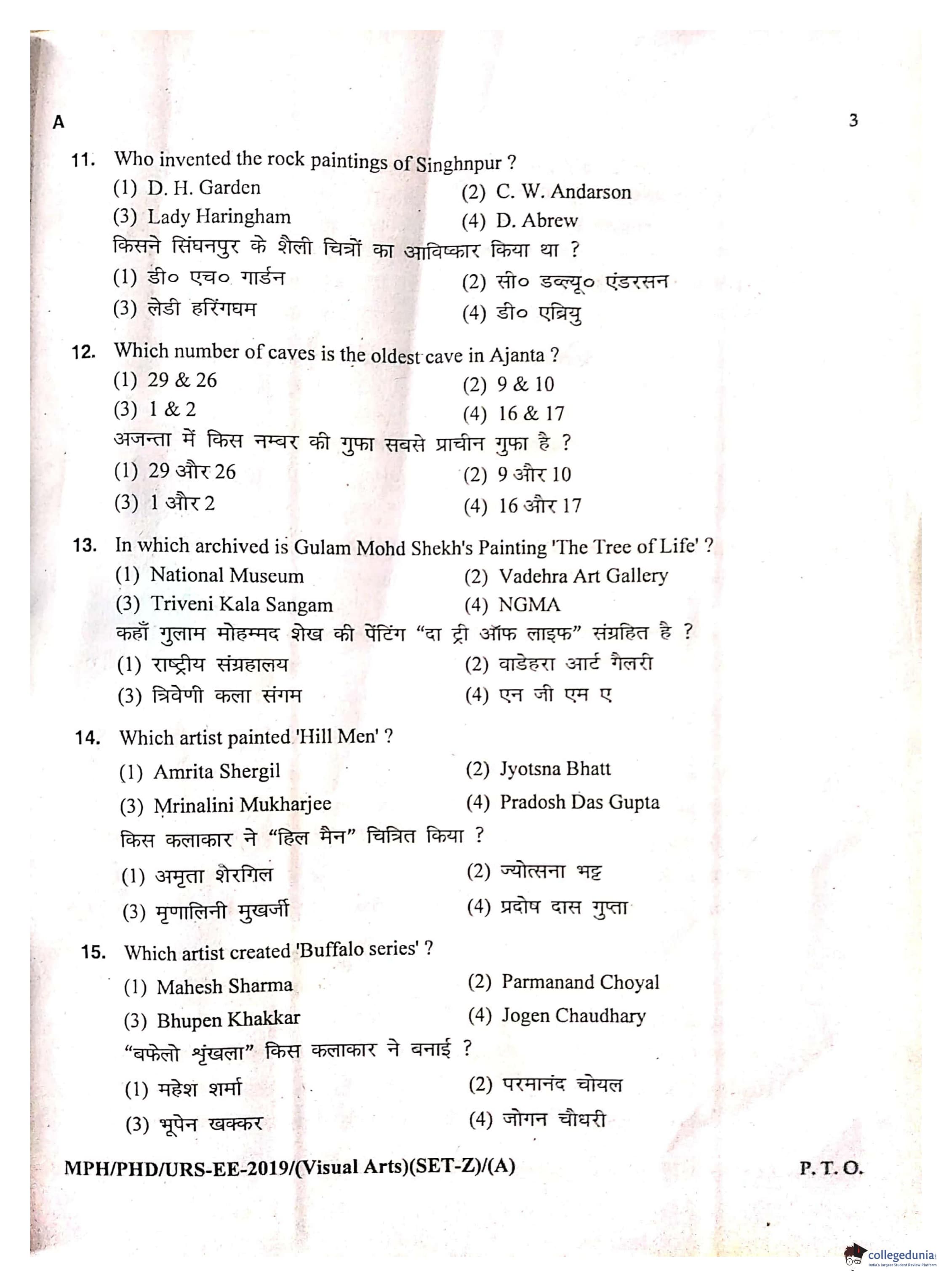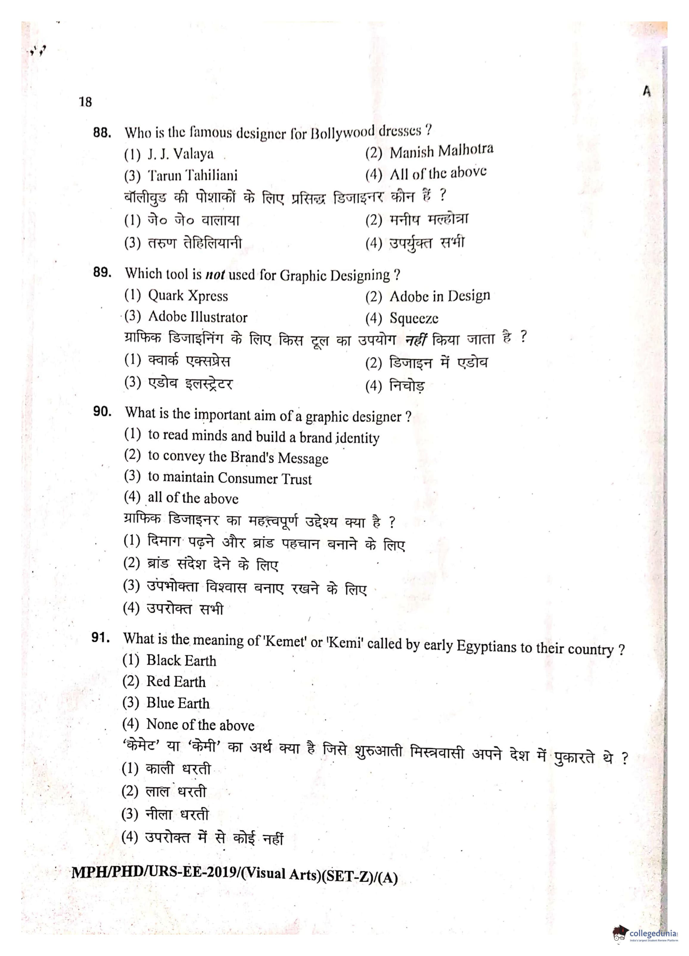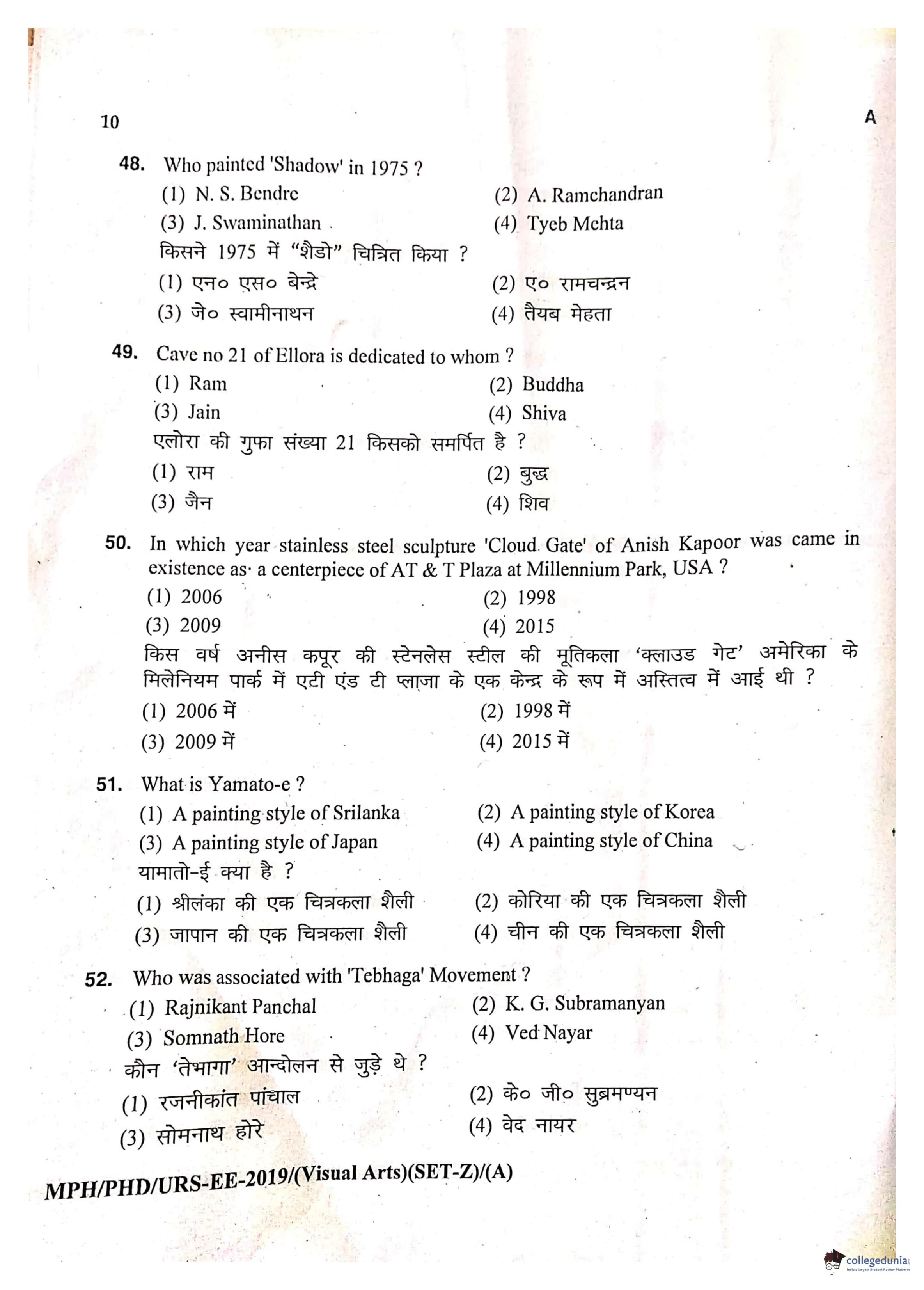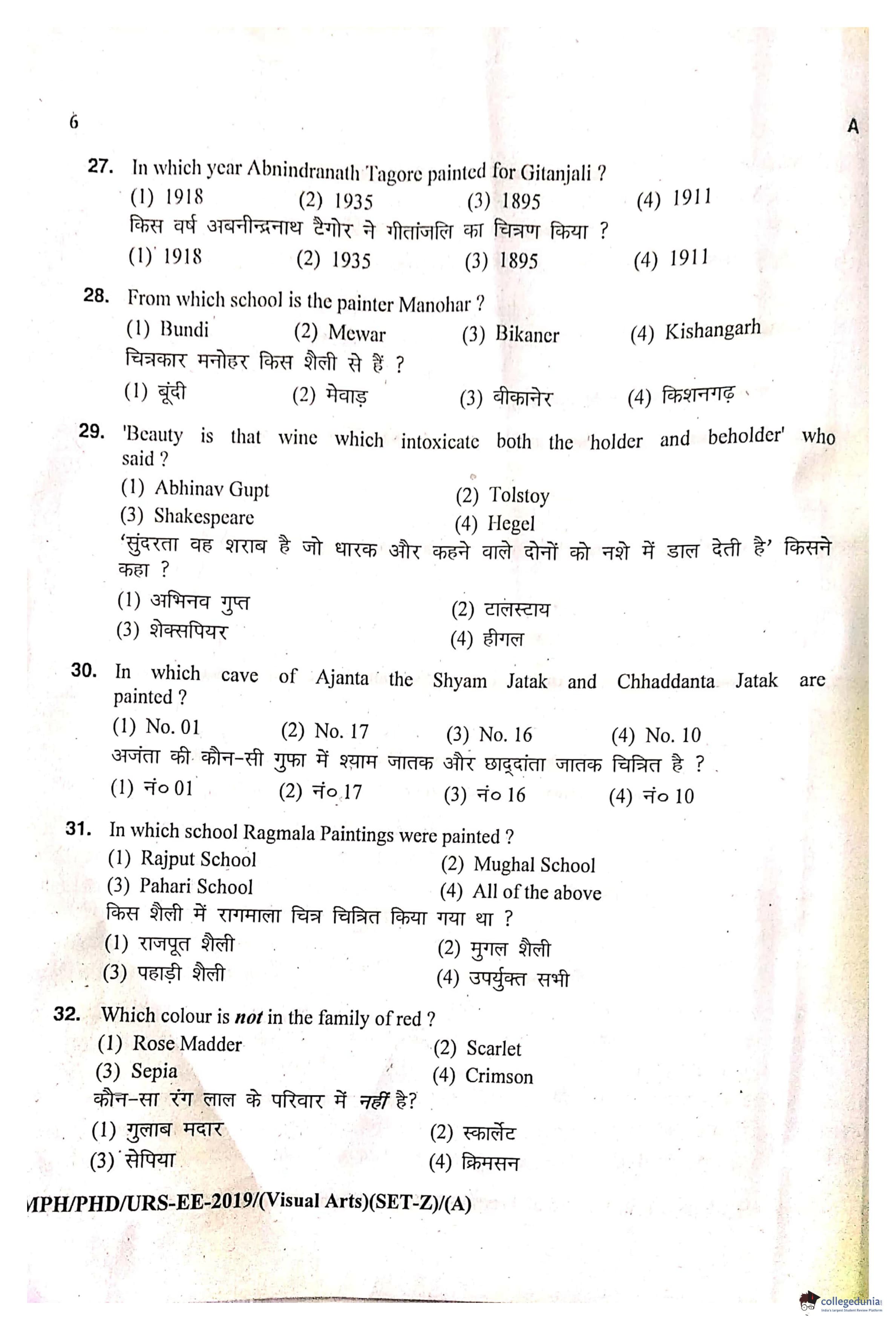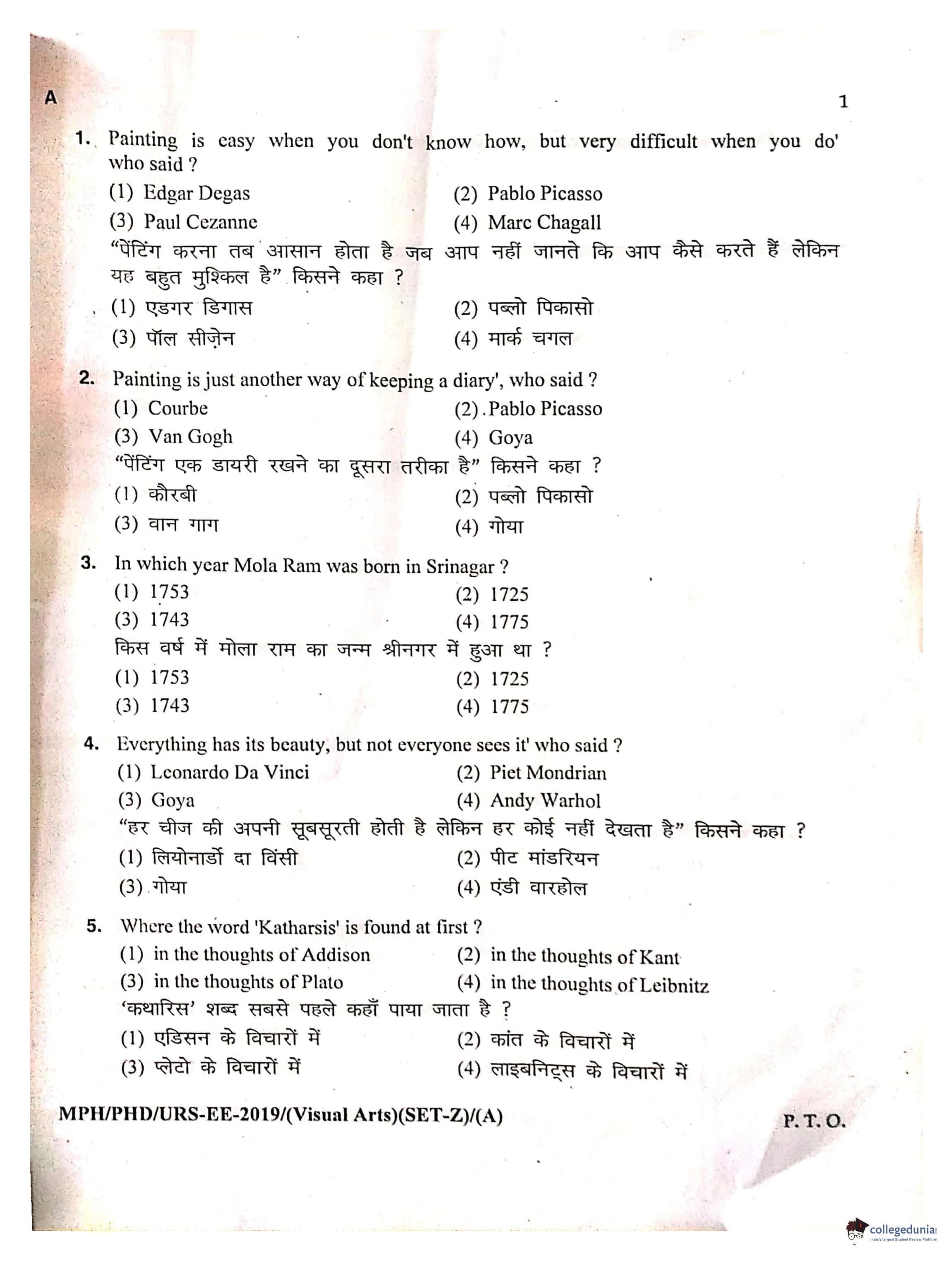 MDUCEE 2019 Ph.D./M.Phil./URS Visual Arts Set A Question Paper with Answer Key PDFs