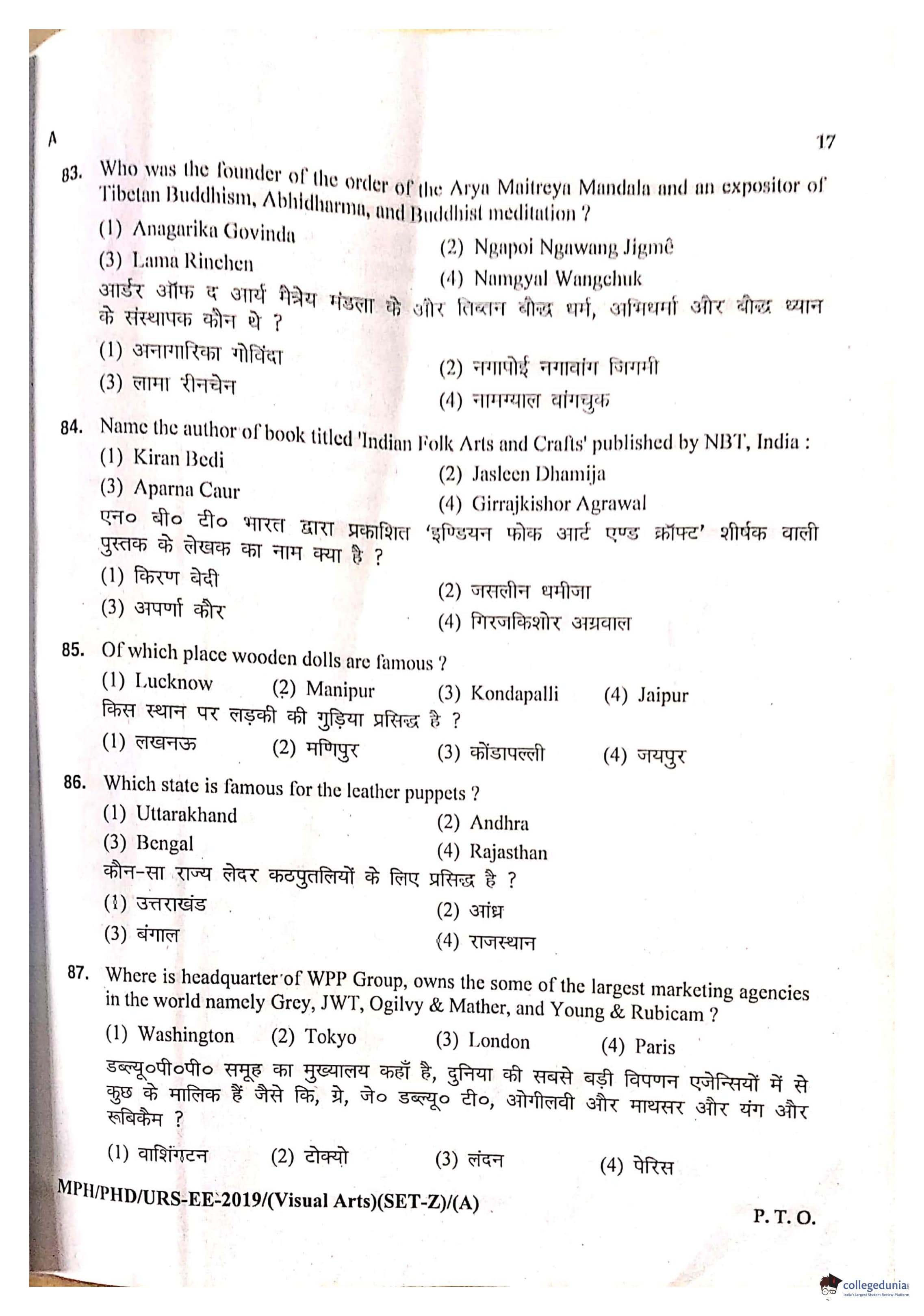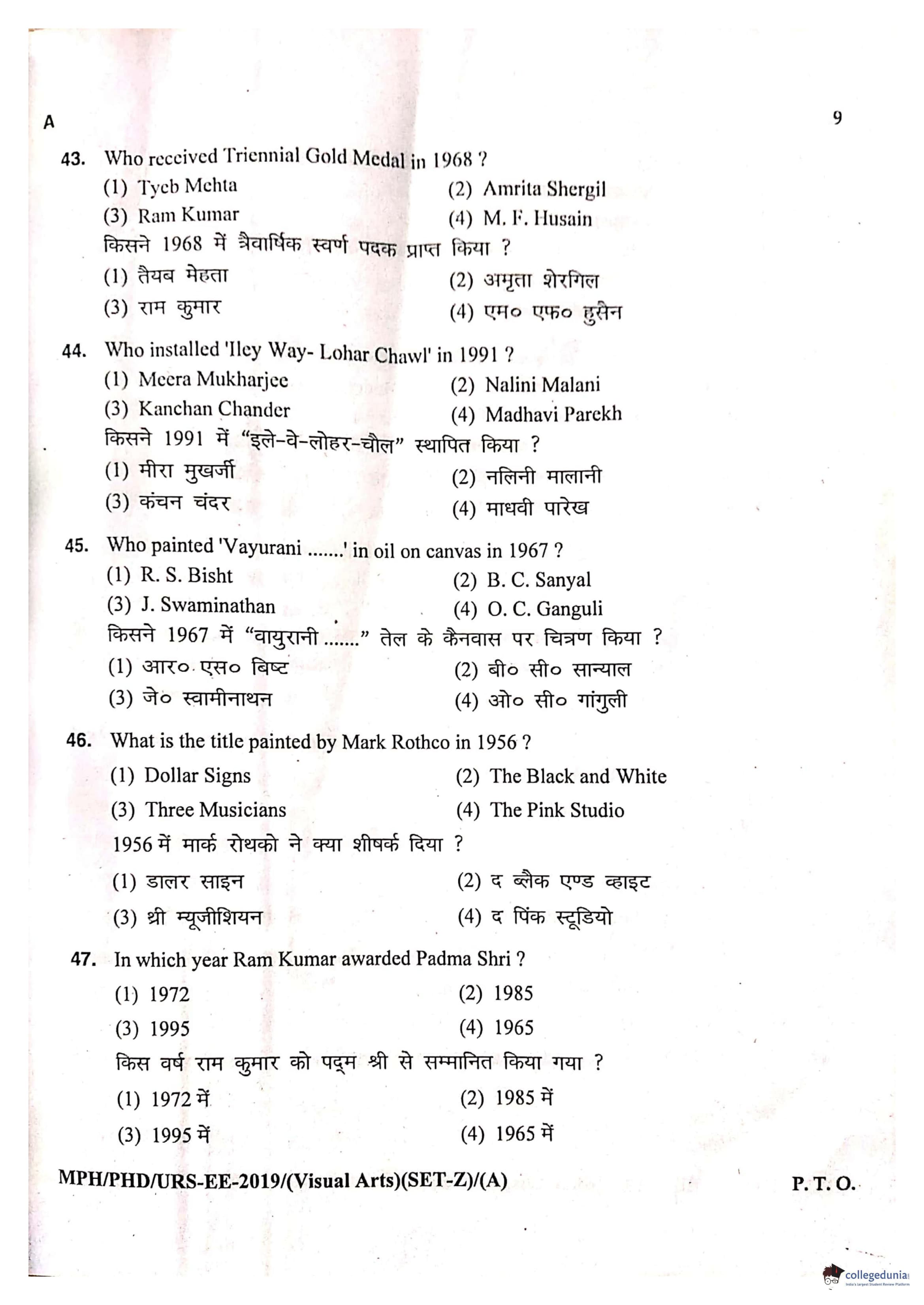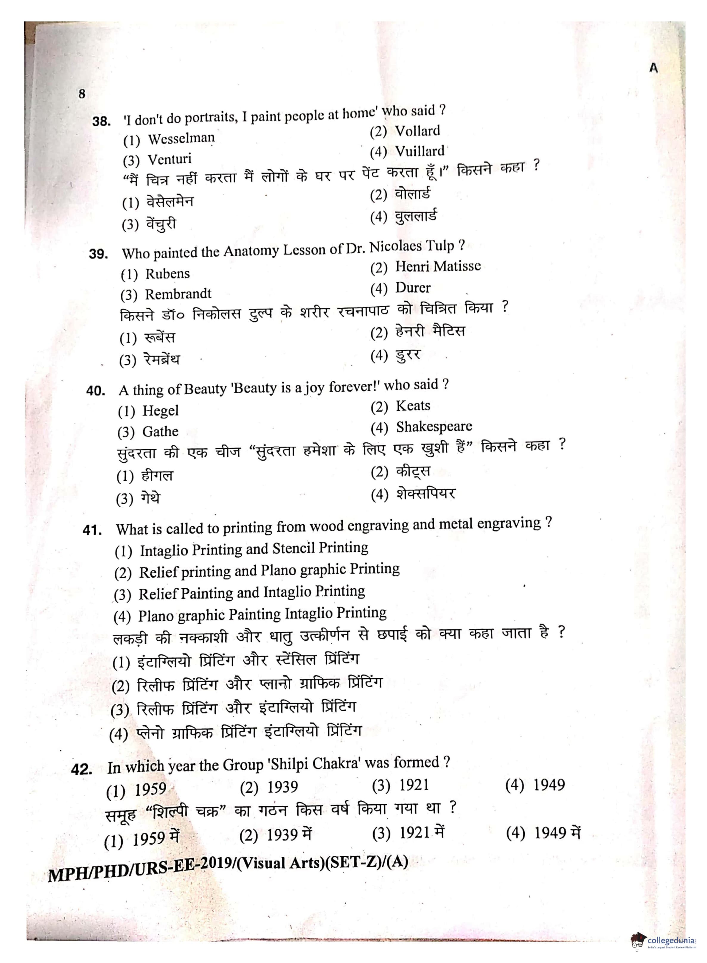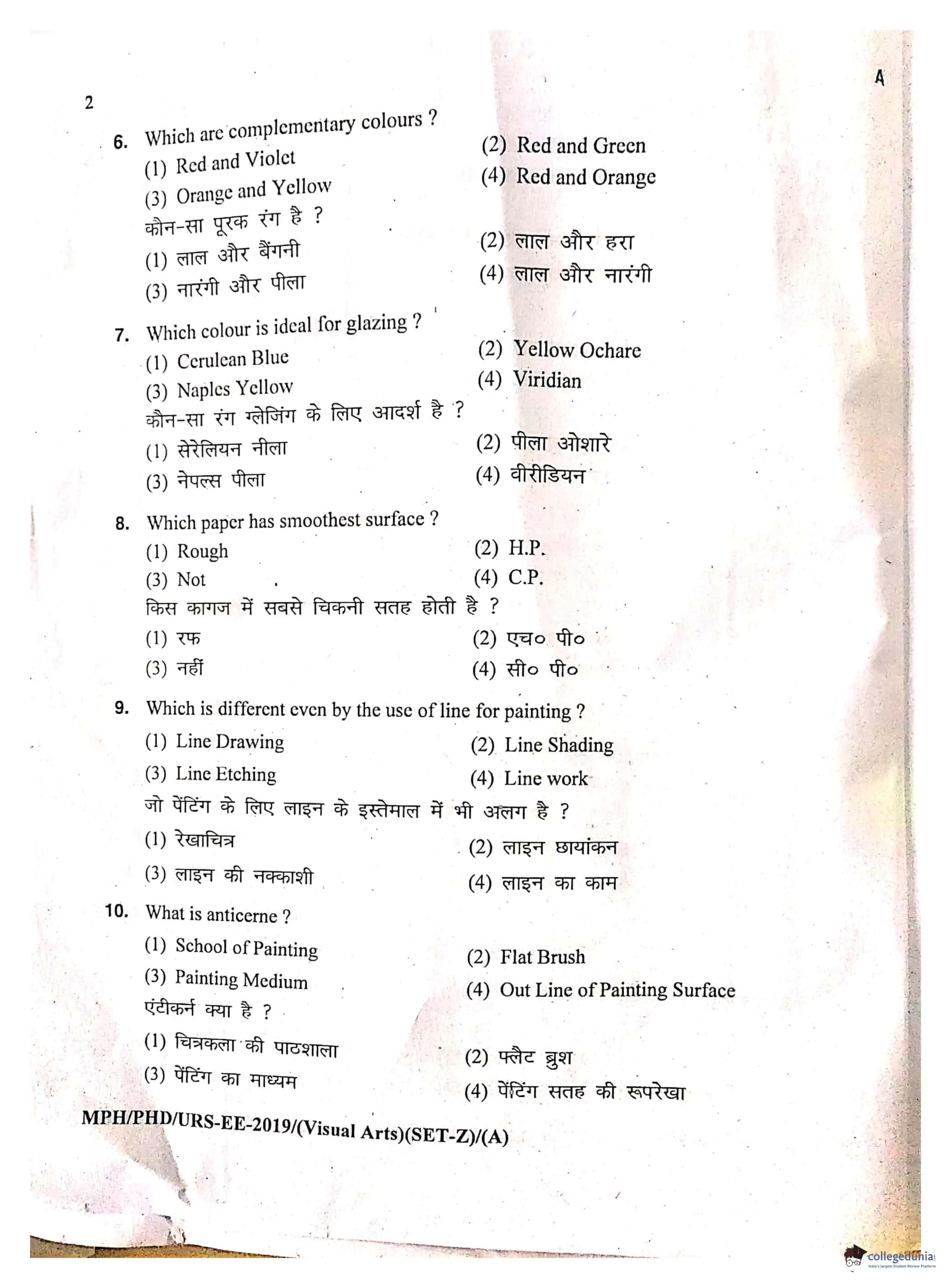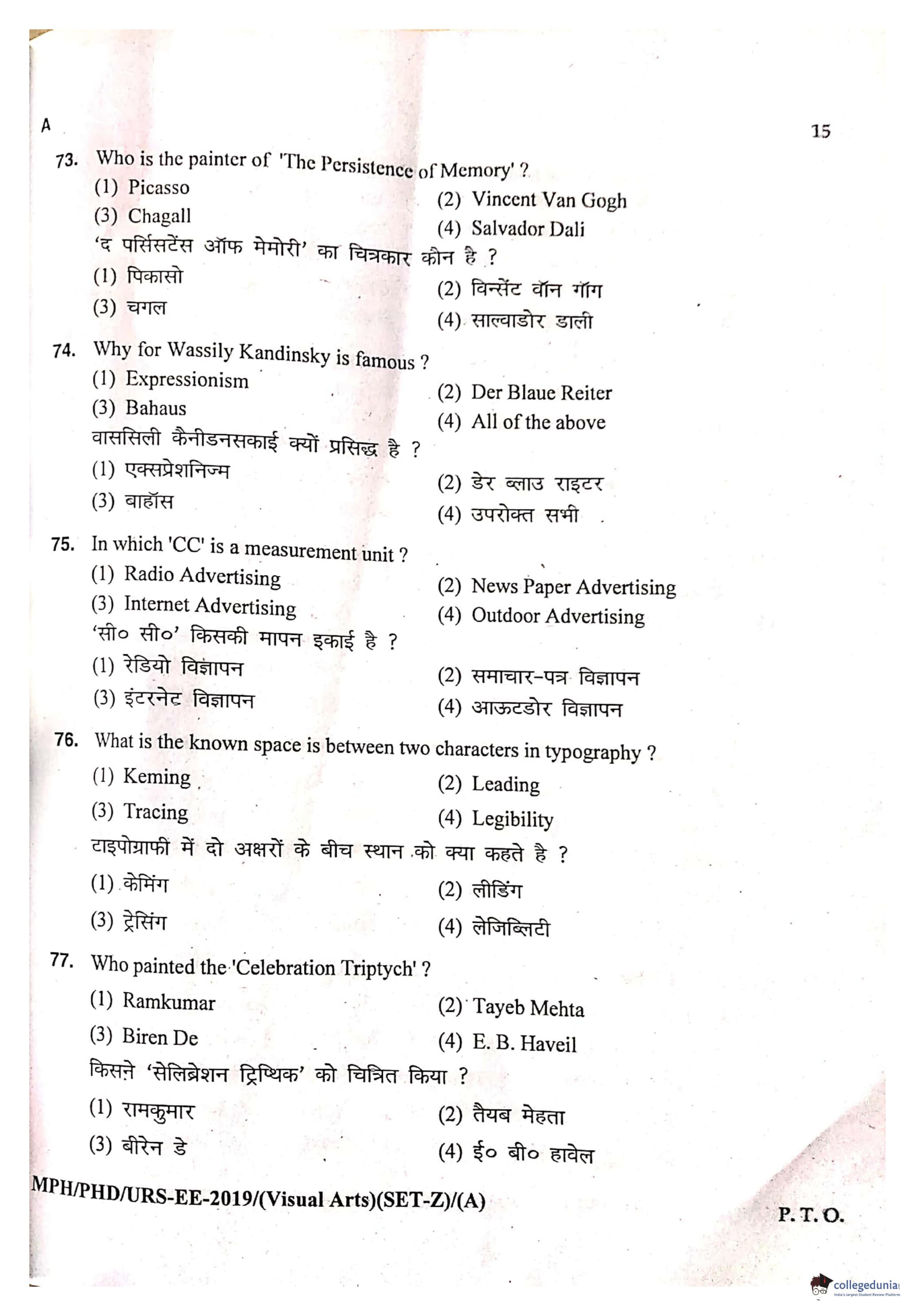 MDUCEE 2019 Ph.D./M.Phil./URS Visual Arts Set A Question Paper with Answer Key PDFs