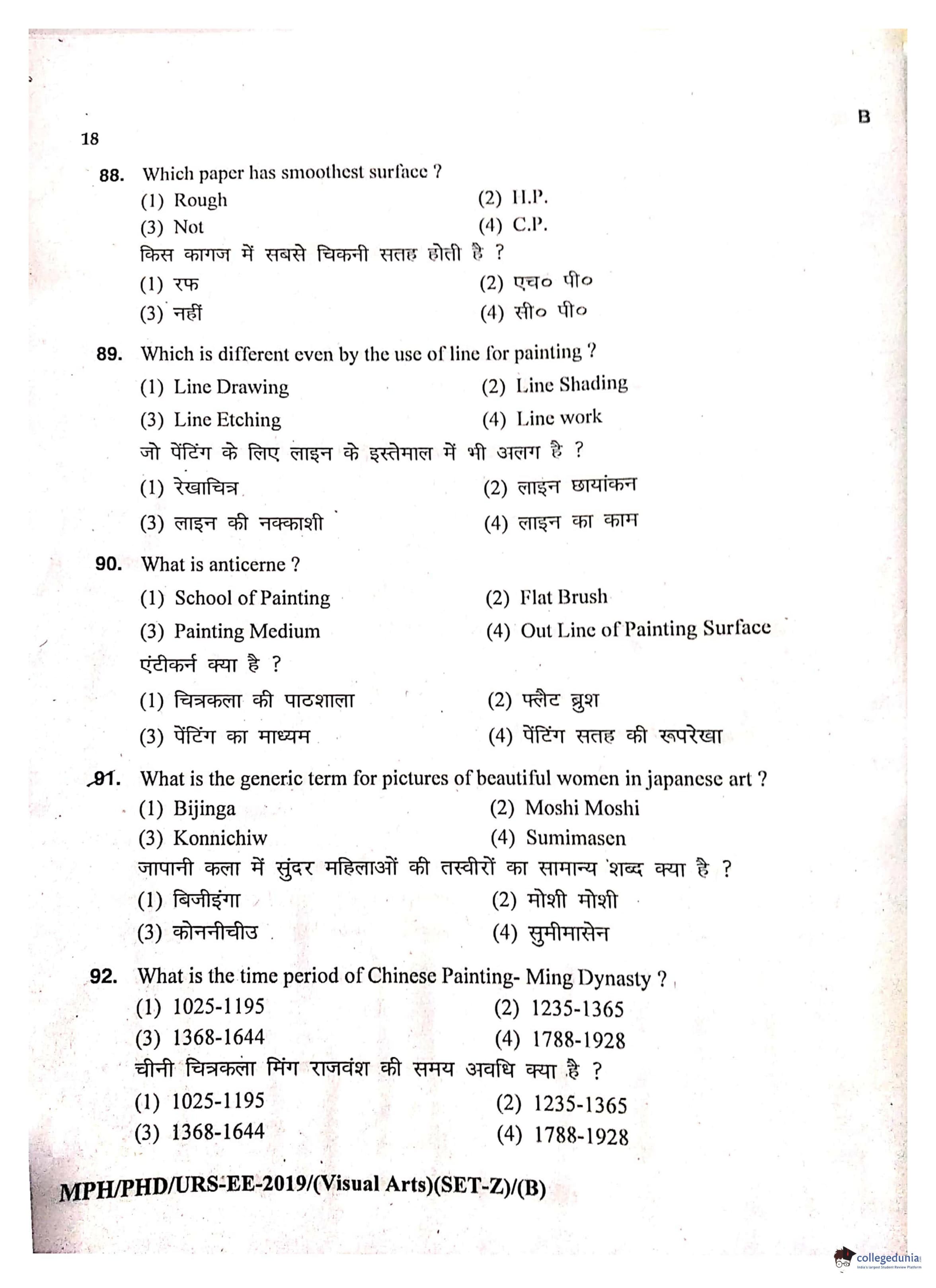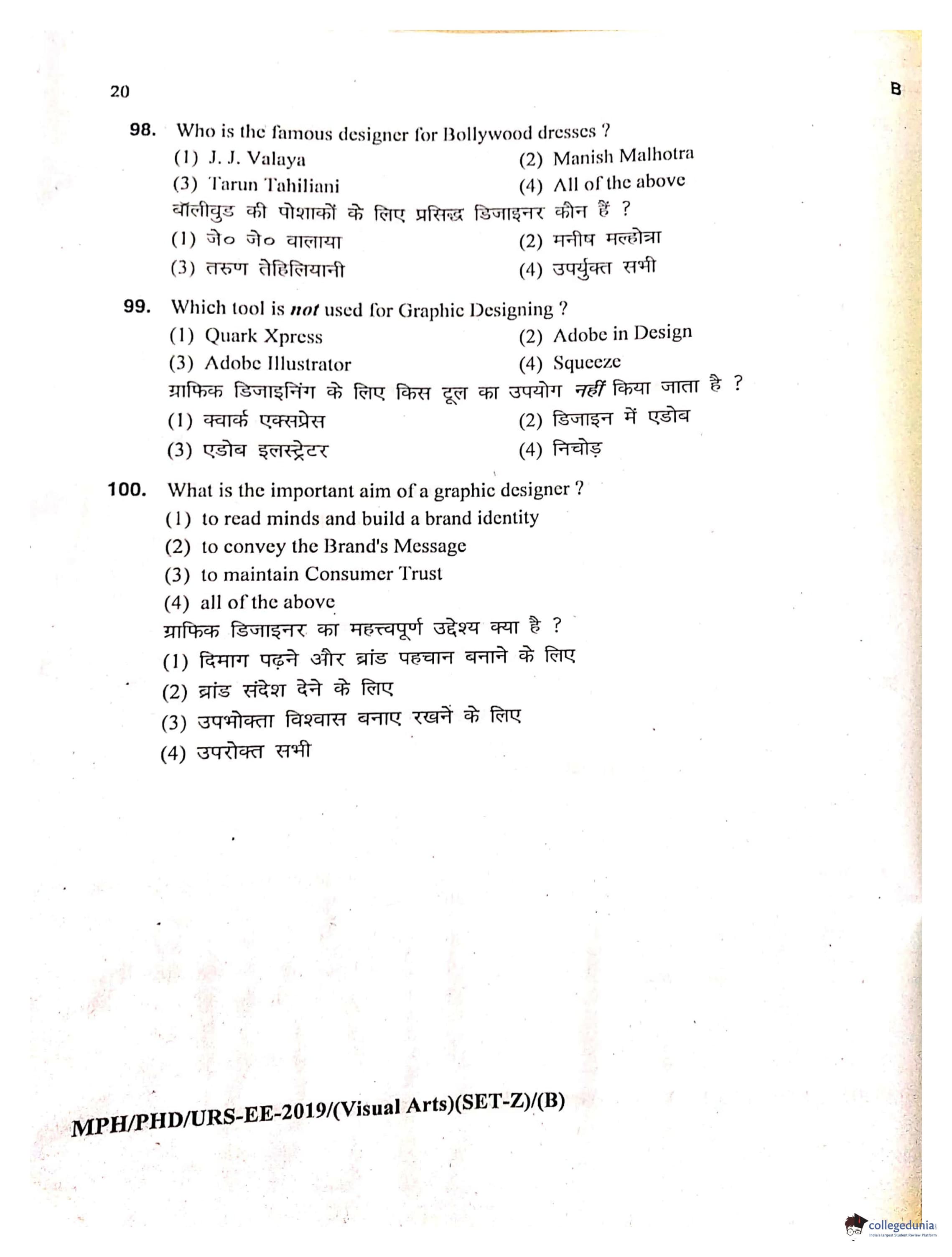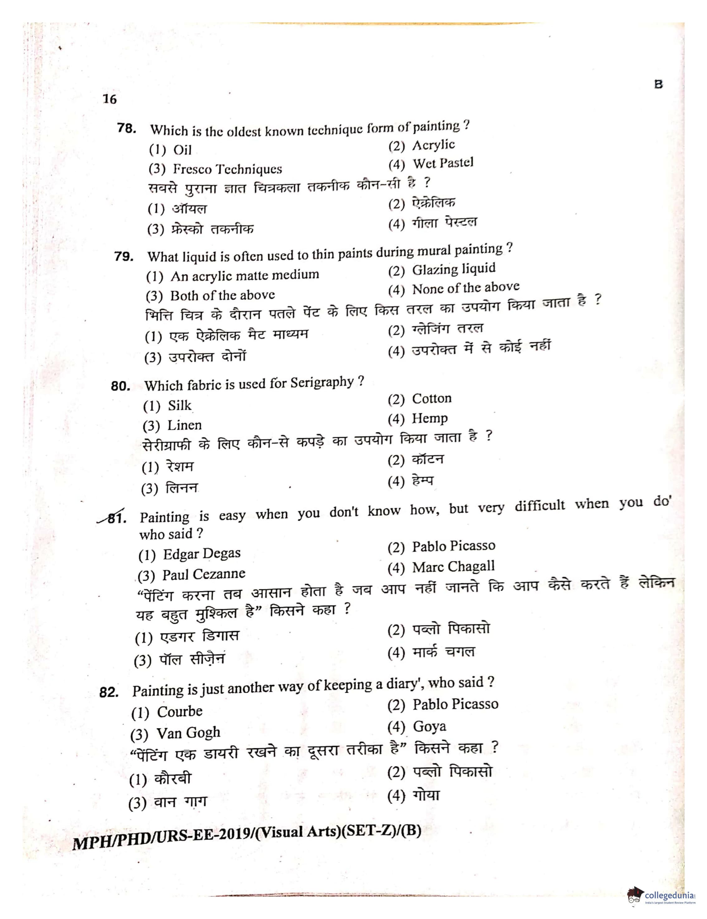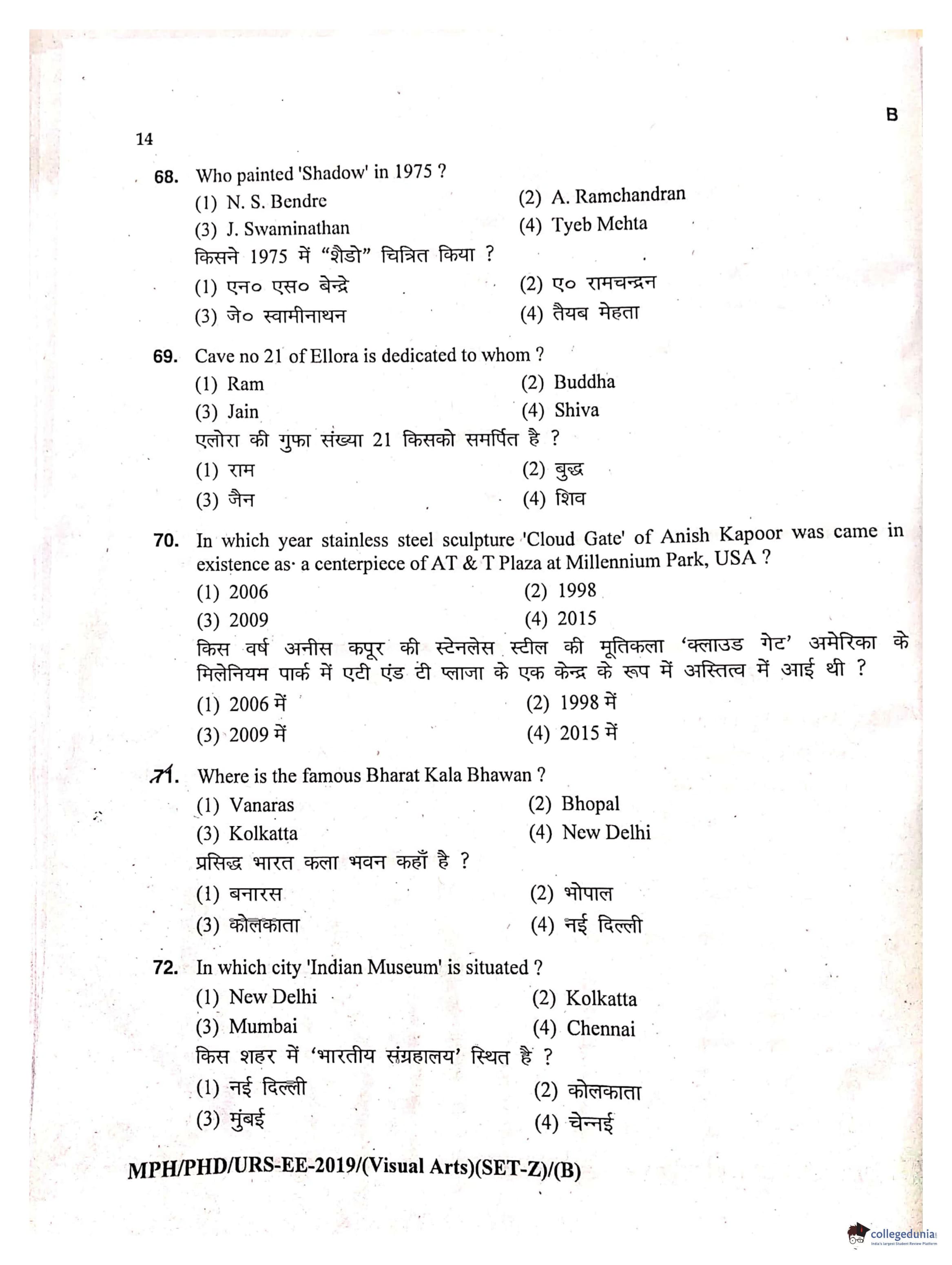 MDUCEE 2019 Ph.D./M.Phil./URS Visual Arts Set B Question Paper with Answer Key PDFs