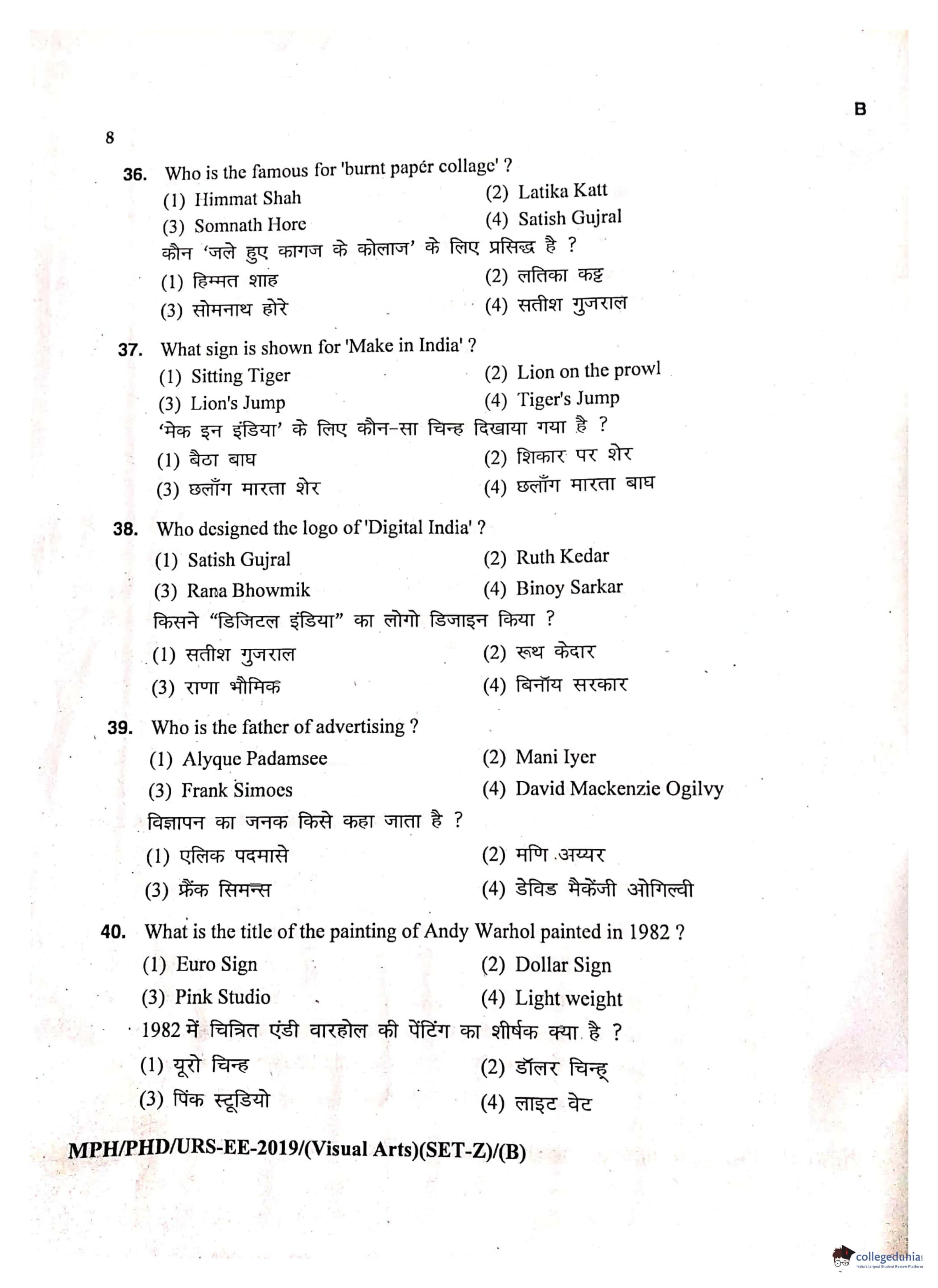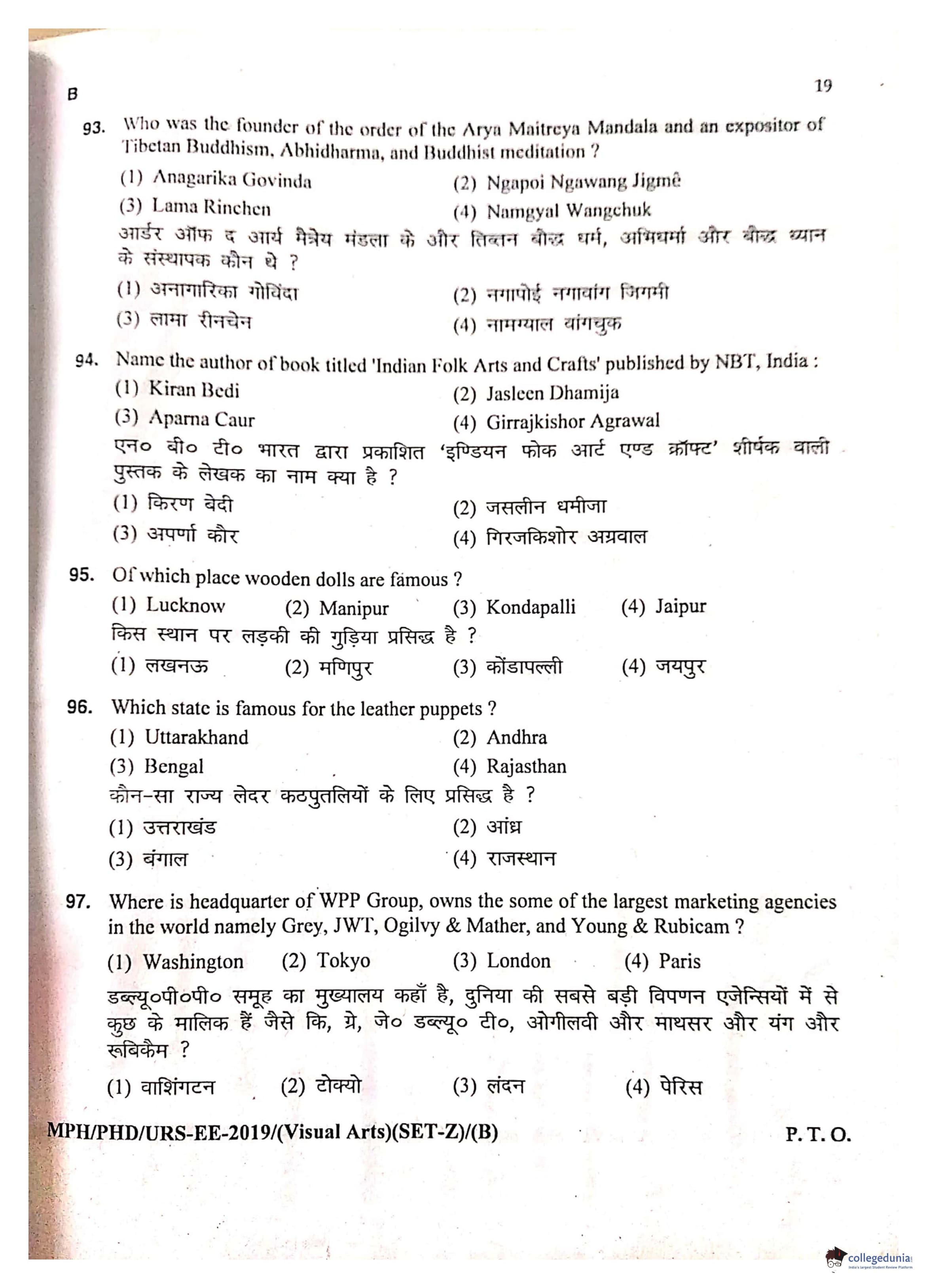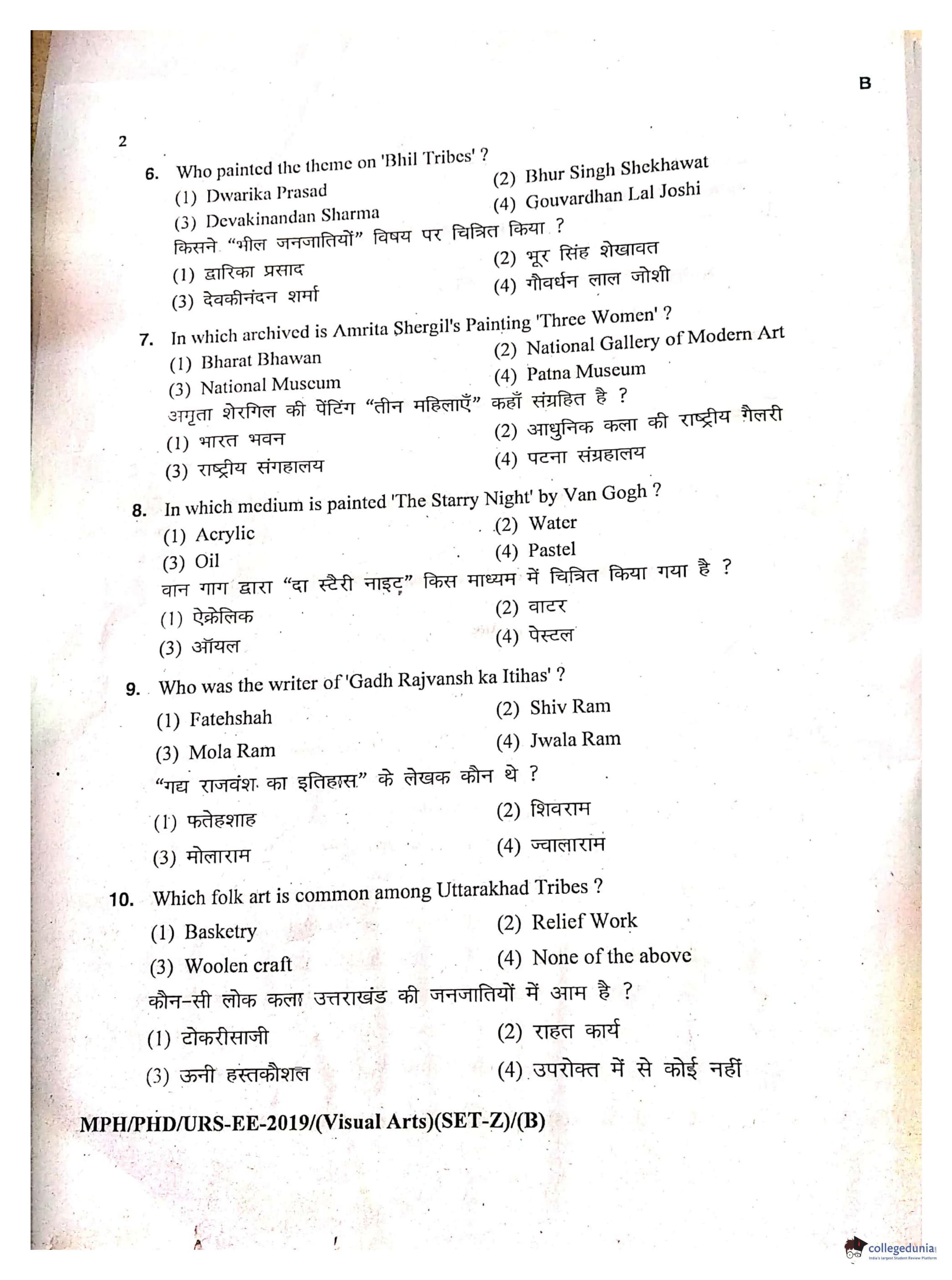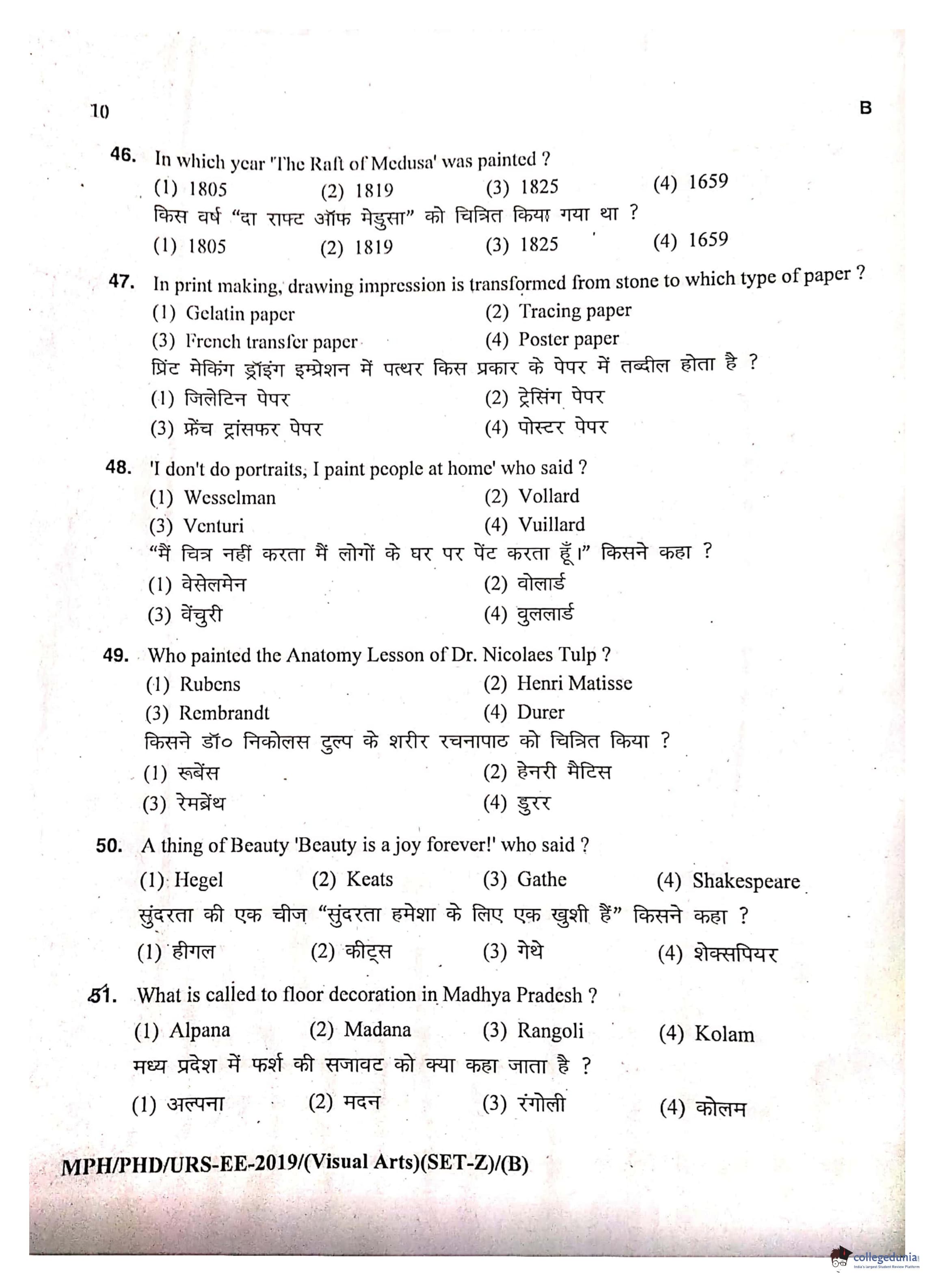 MDUCEE 2019 Ph.D./M.Phil./URS Visual Arts Set B Question Paper with Answer Key PDFs