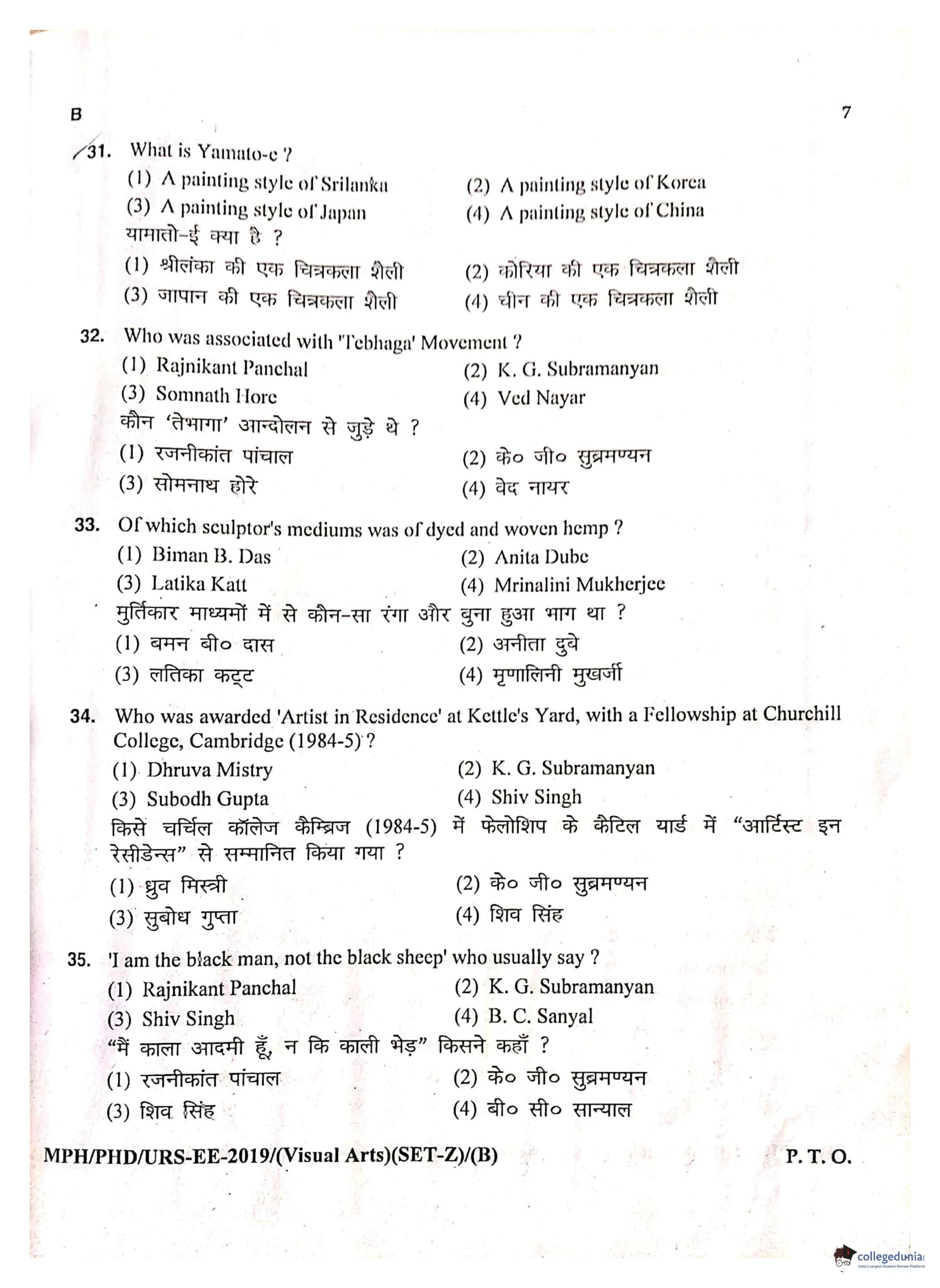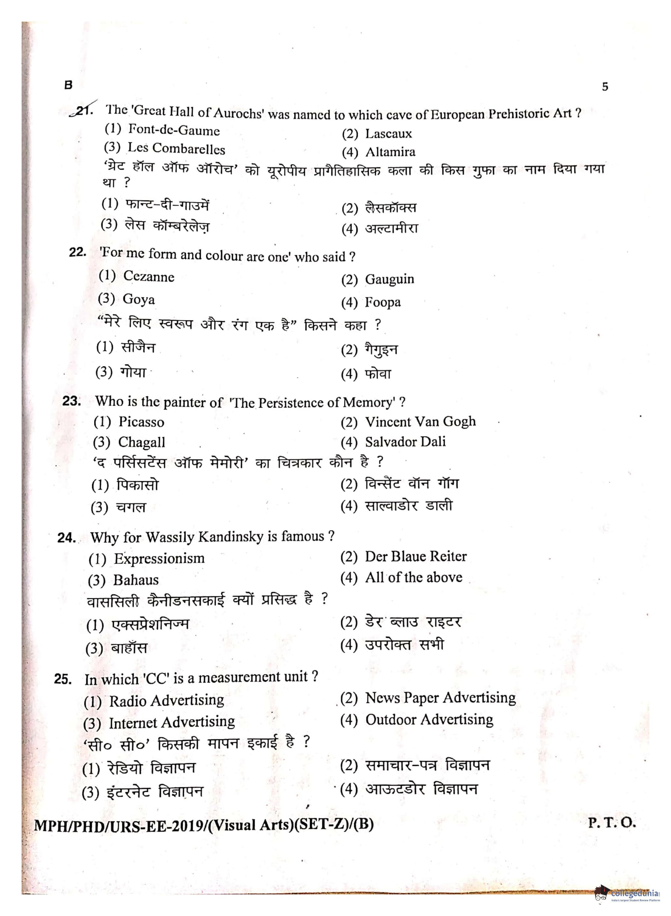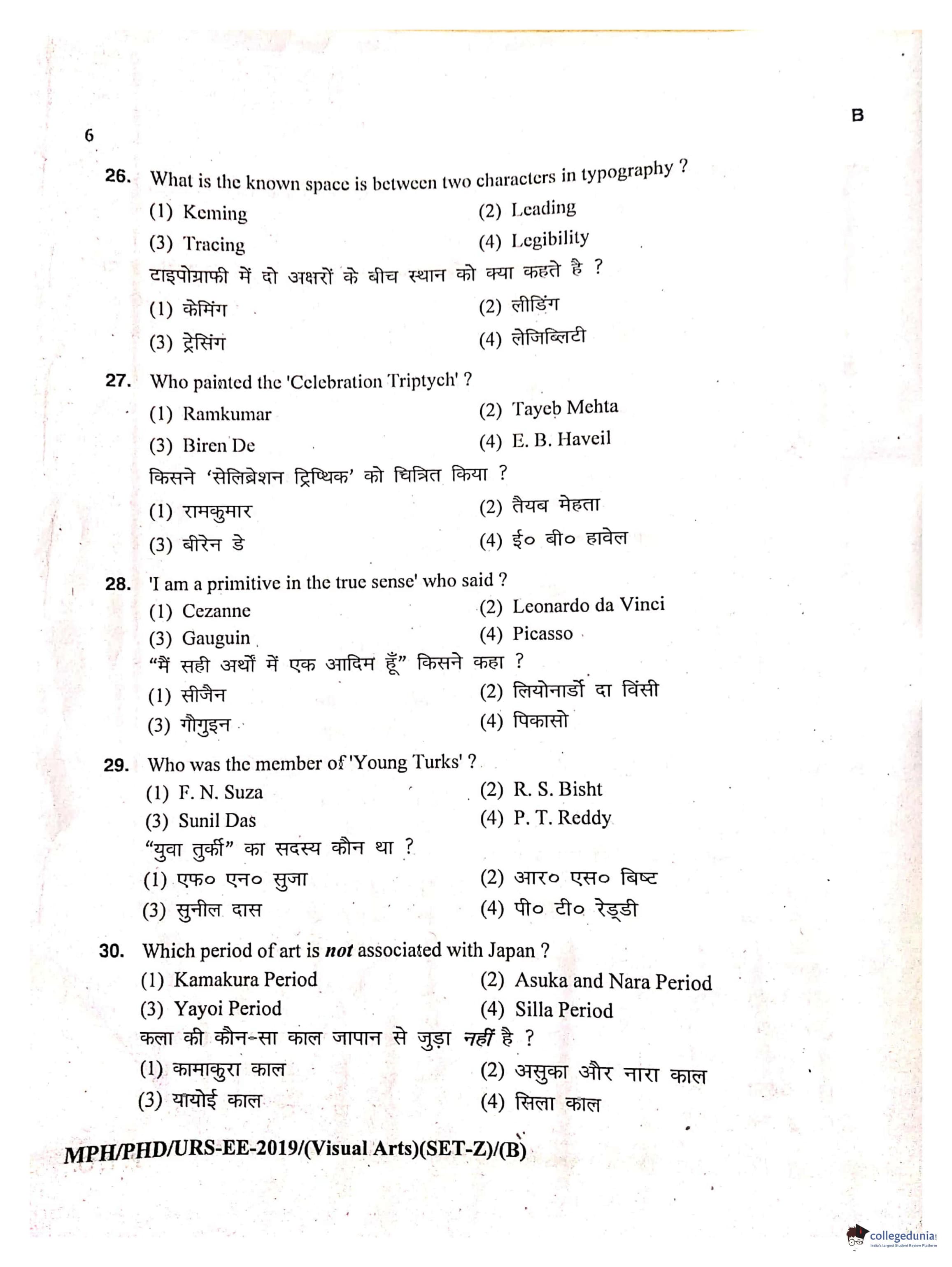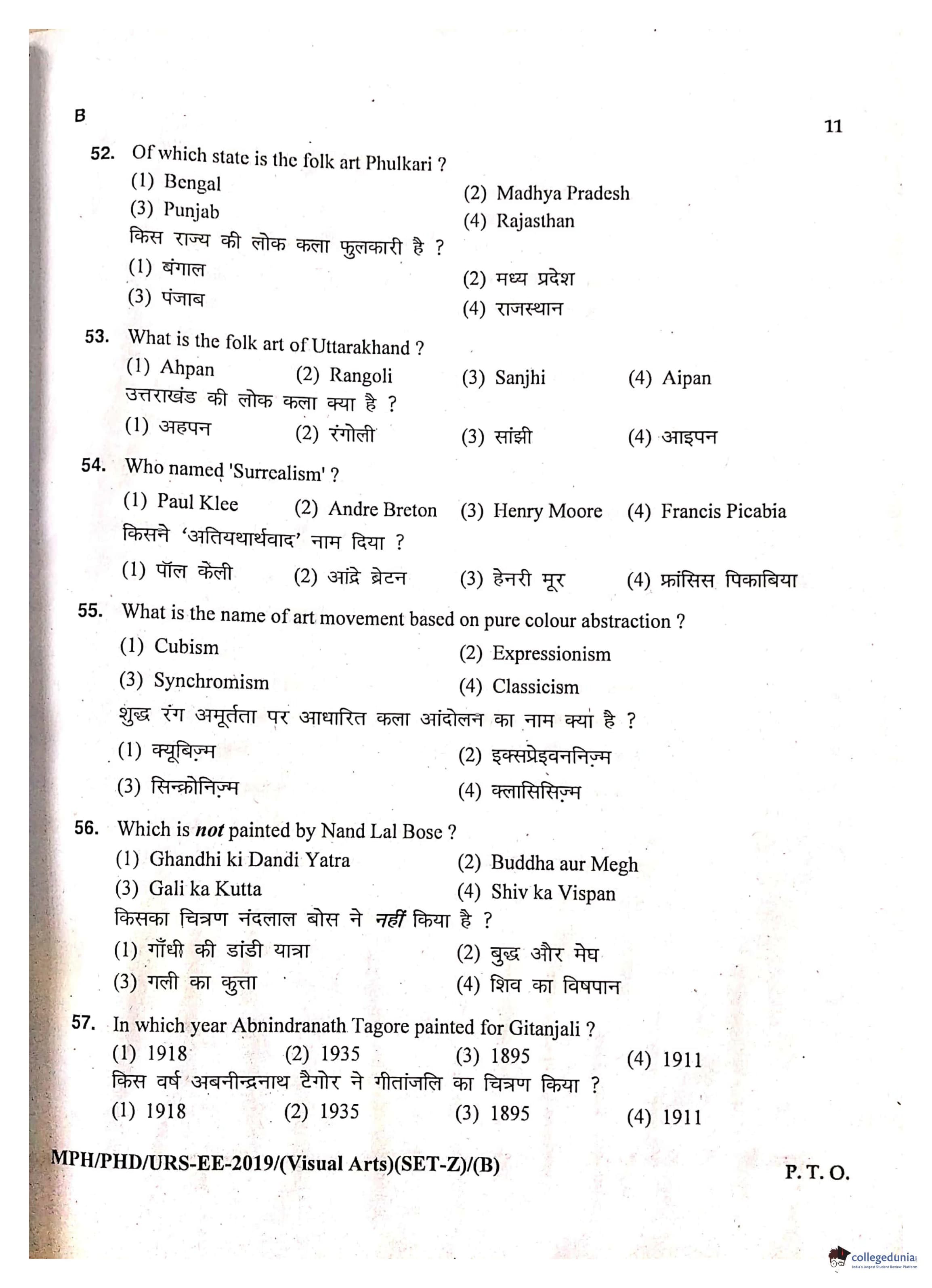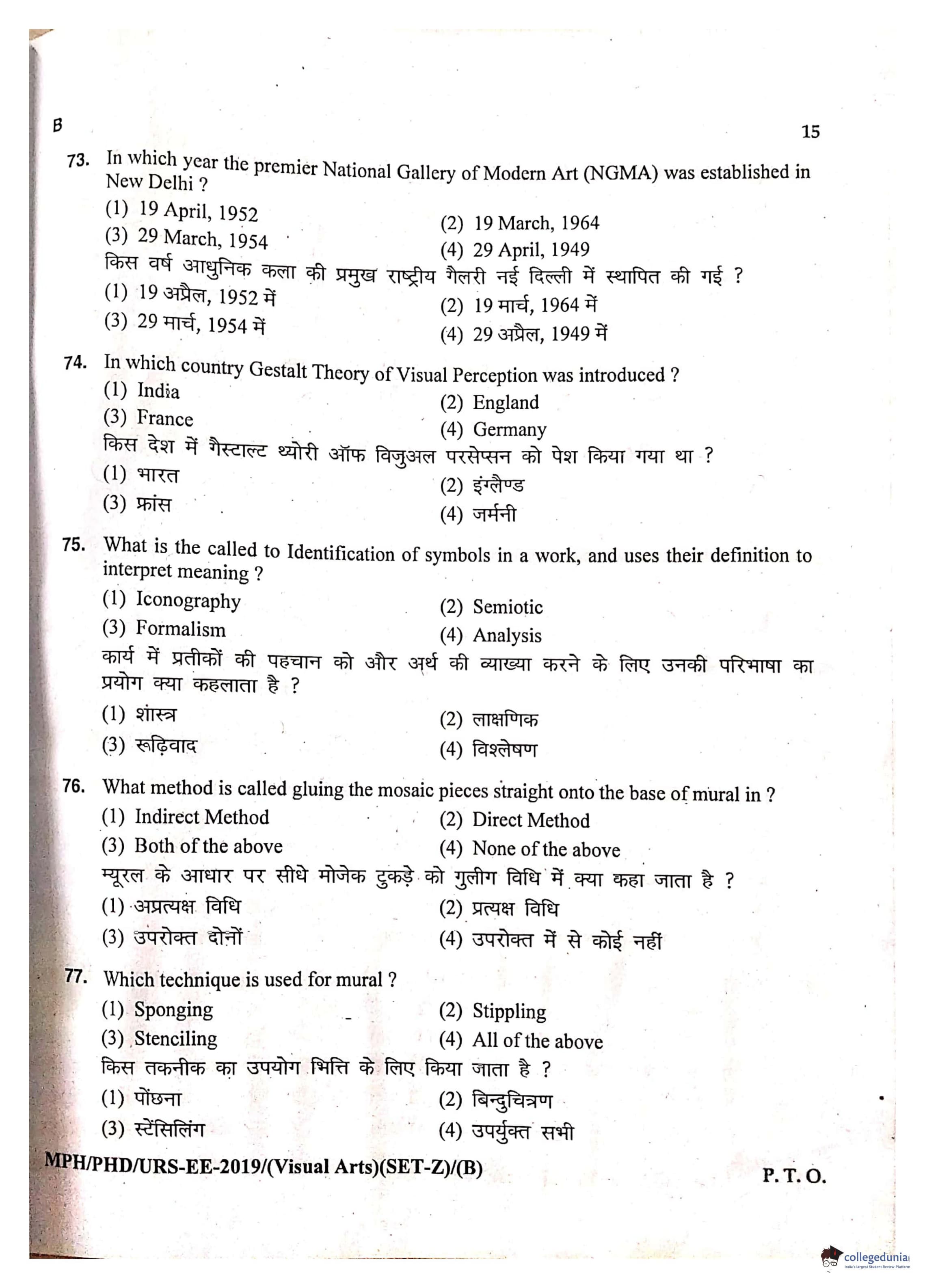MDUCEE 2019 Ph.D./M.Phil./URS Visual Arts Set B Question Paper with Answer Key PDFs