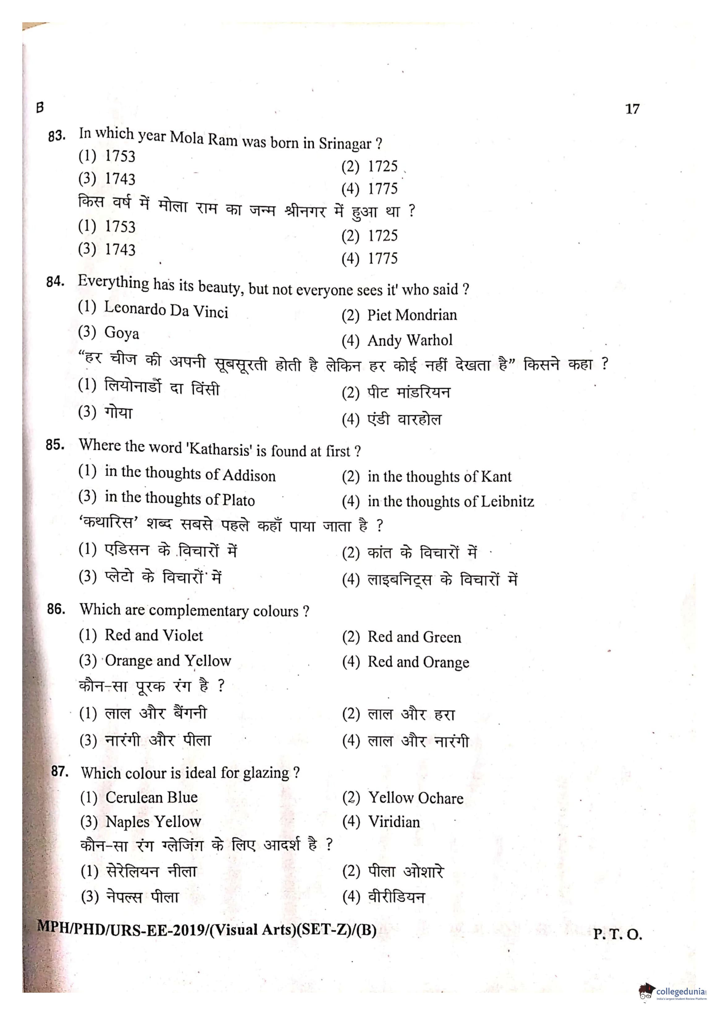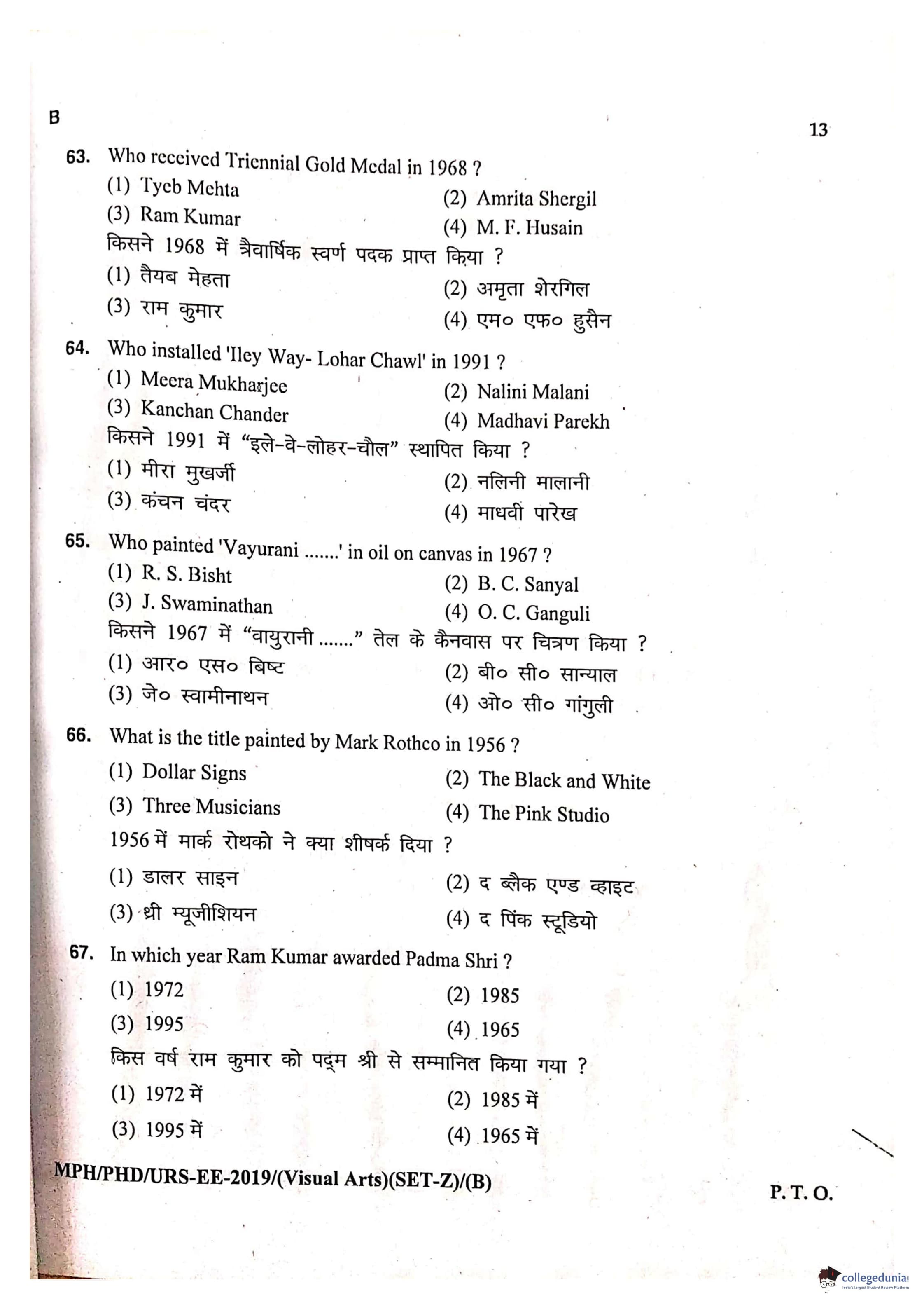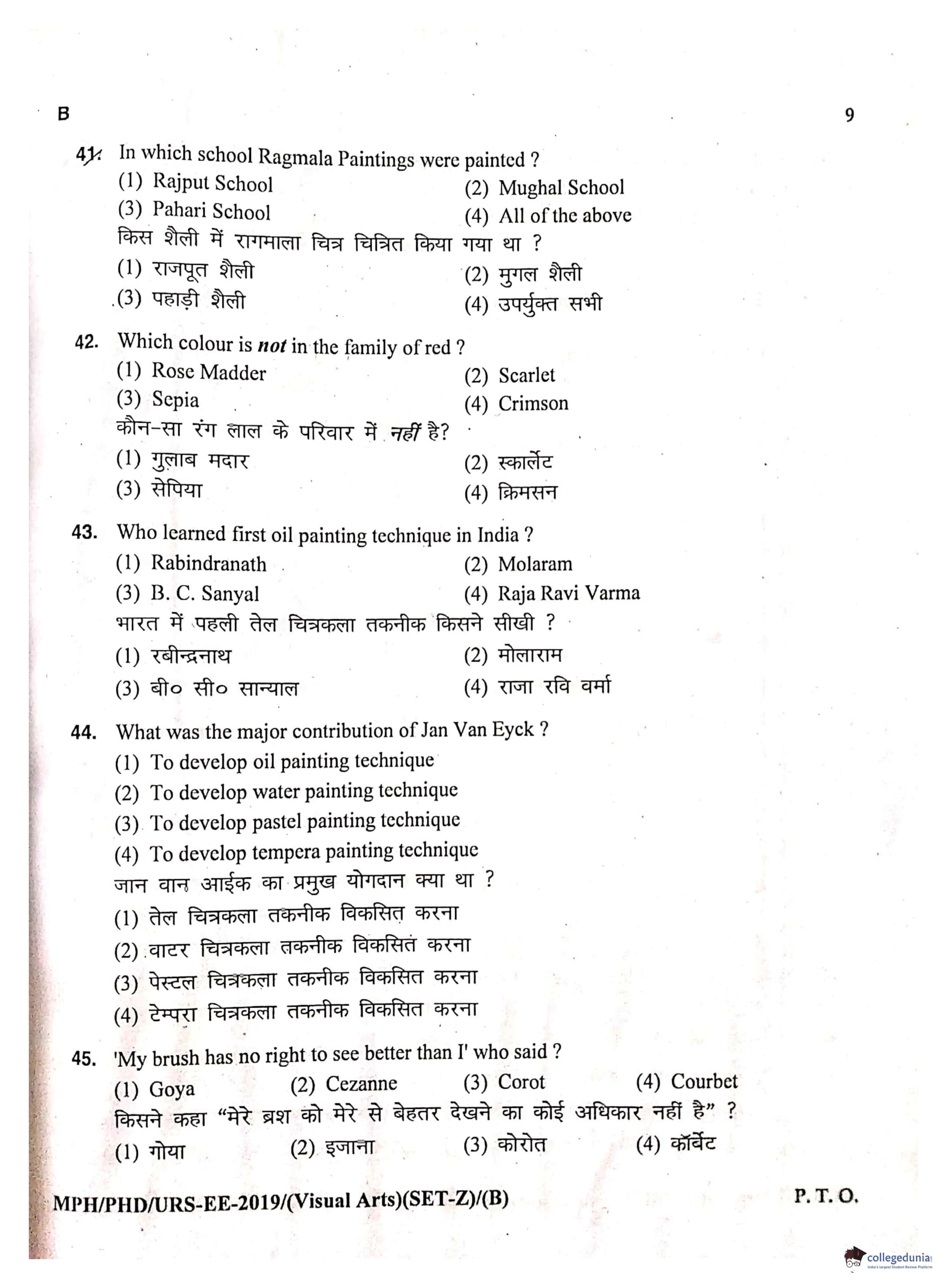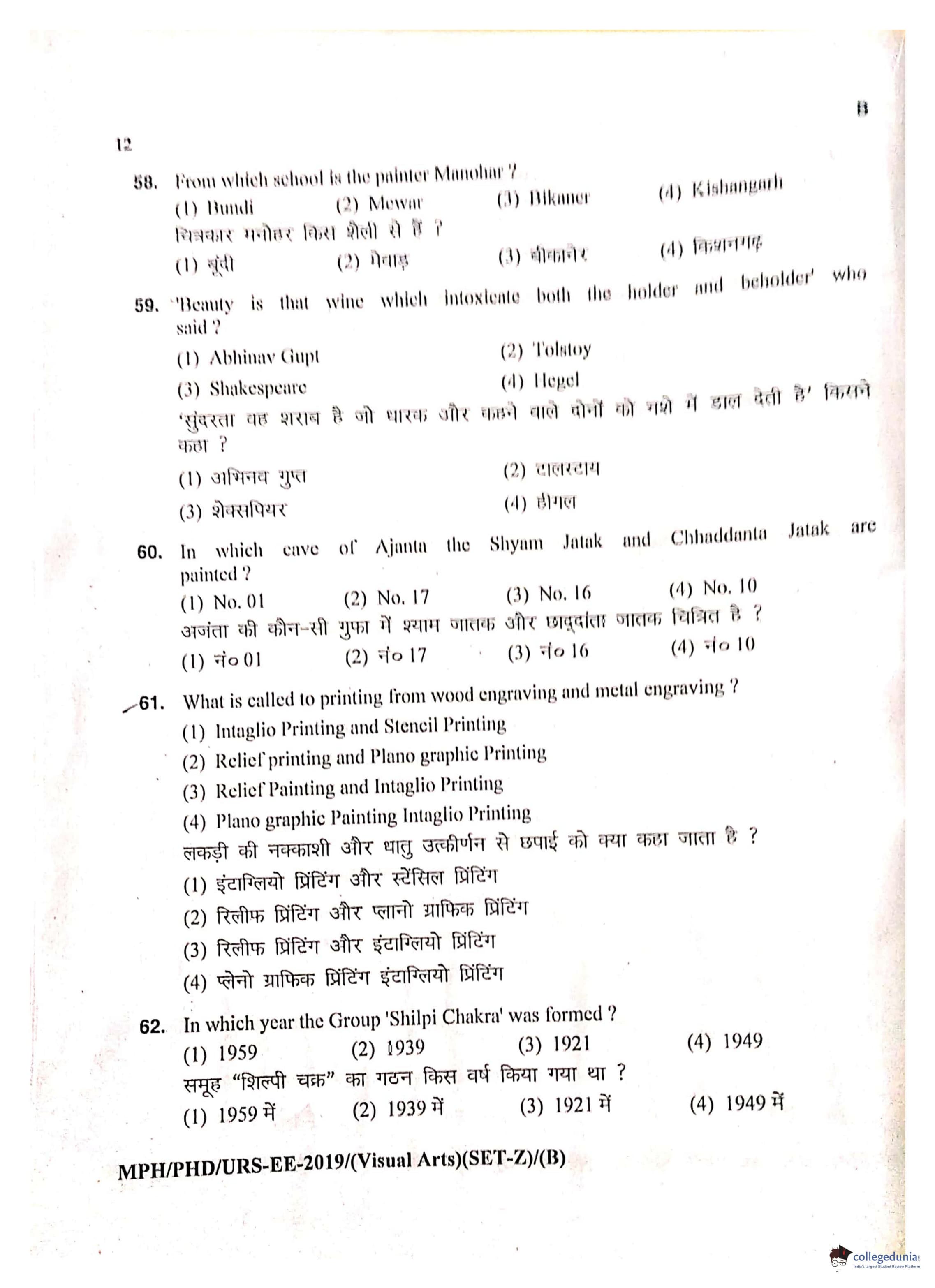 MDUCEE 2019 Ph.D./M.Phil./URS Visual Arts Set B Question Paper with Answer Key PDFs