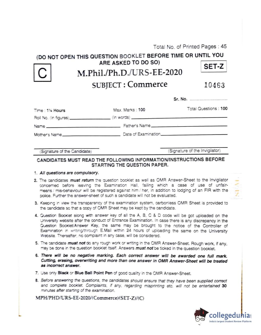 | MDUCEE 2020 M.Phil/Ph.D/URS – Commerce Set C Question Paper PDF | MDUCEE 2020 M.Phil/Ph.D/URS – Commerce Set C Answer Key PDF |