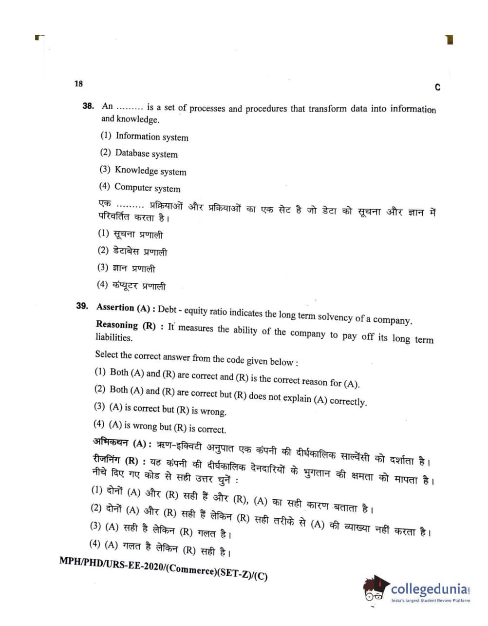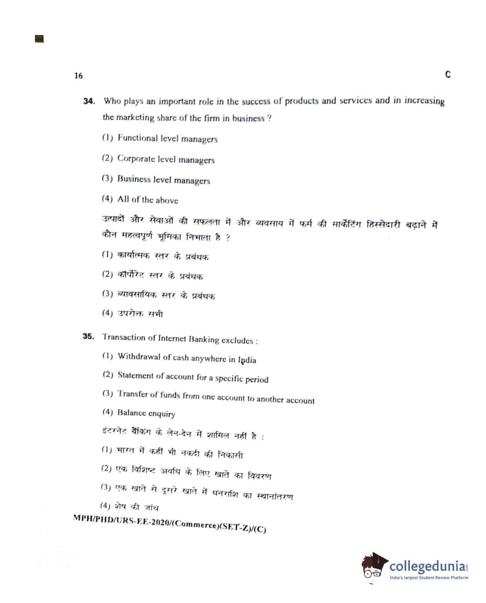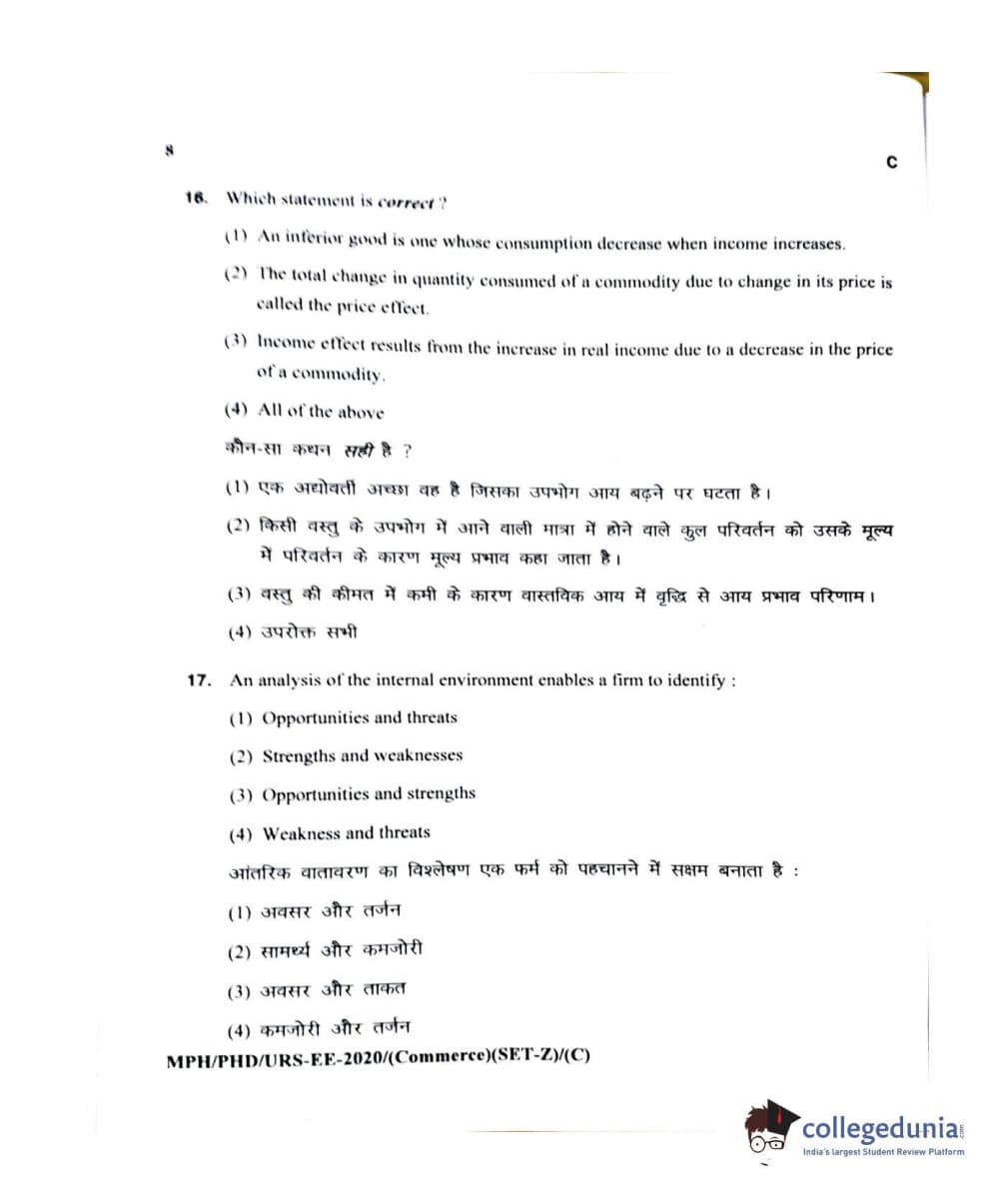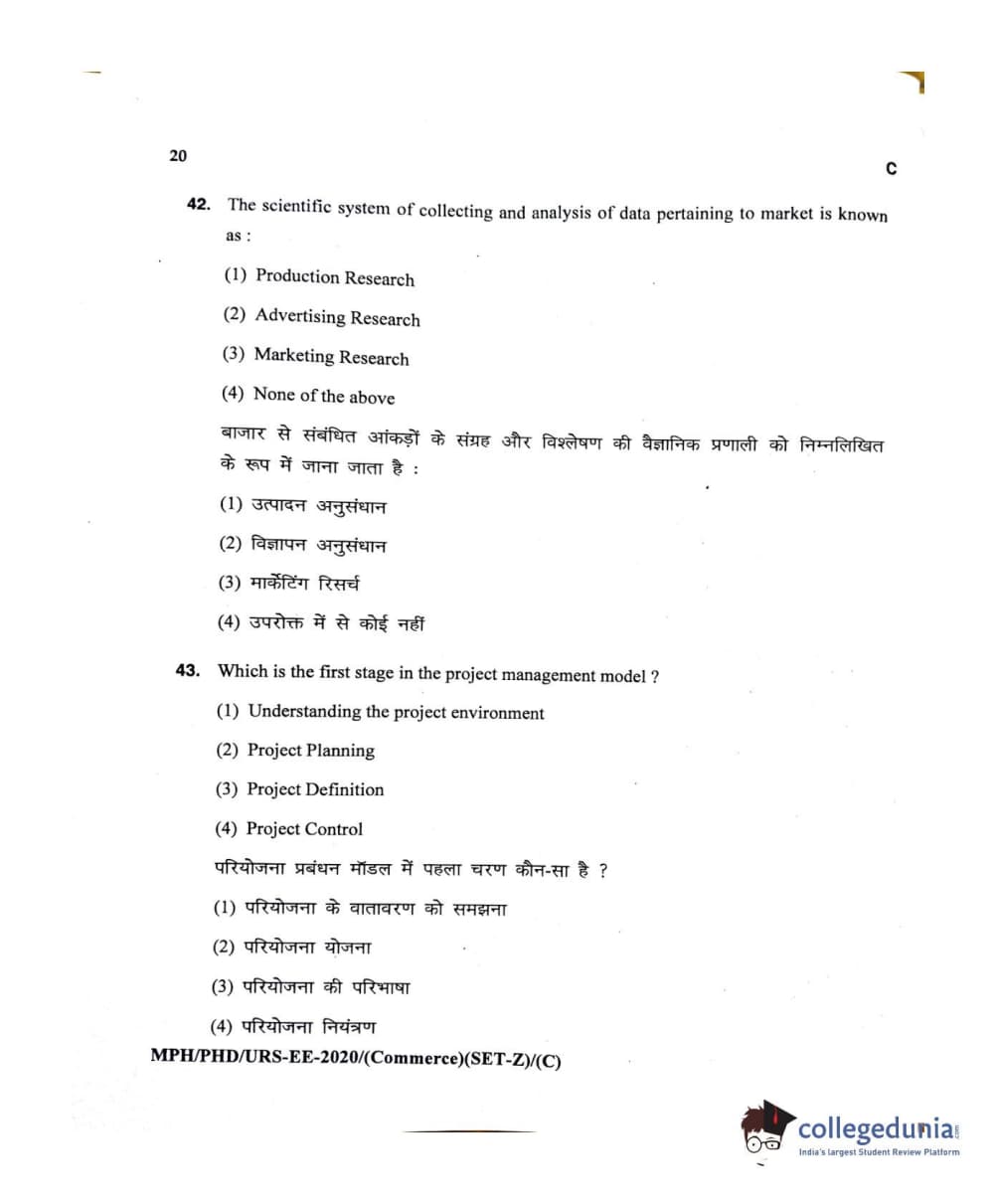 MDUCEE 2020 M.Phil/Ph.D/URS – Commerce Set C Question Paper with Answer Key PDFs