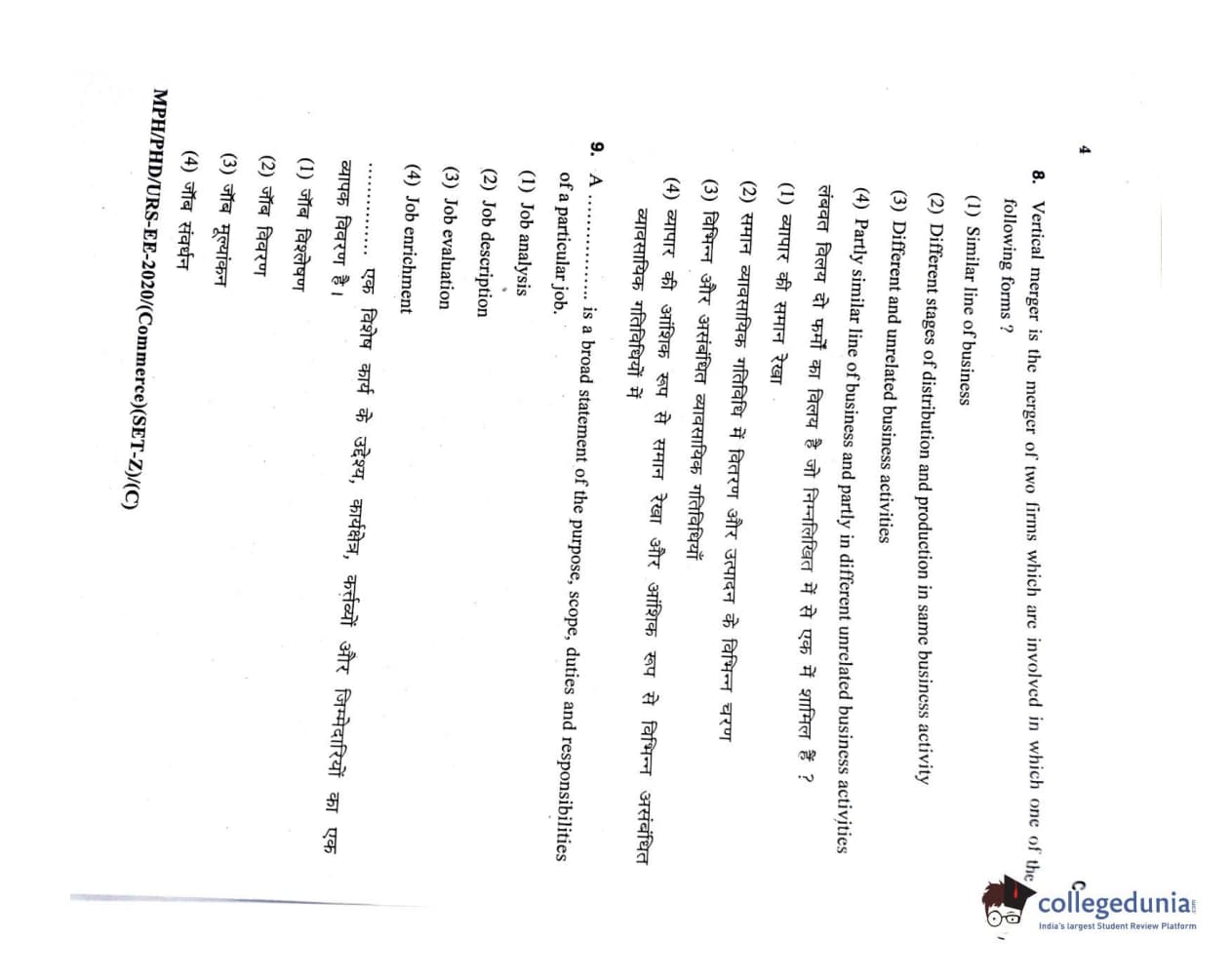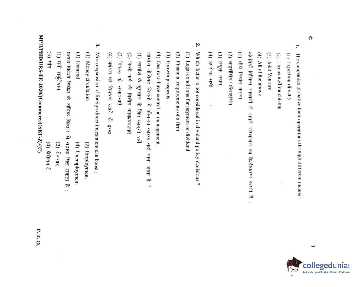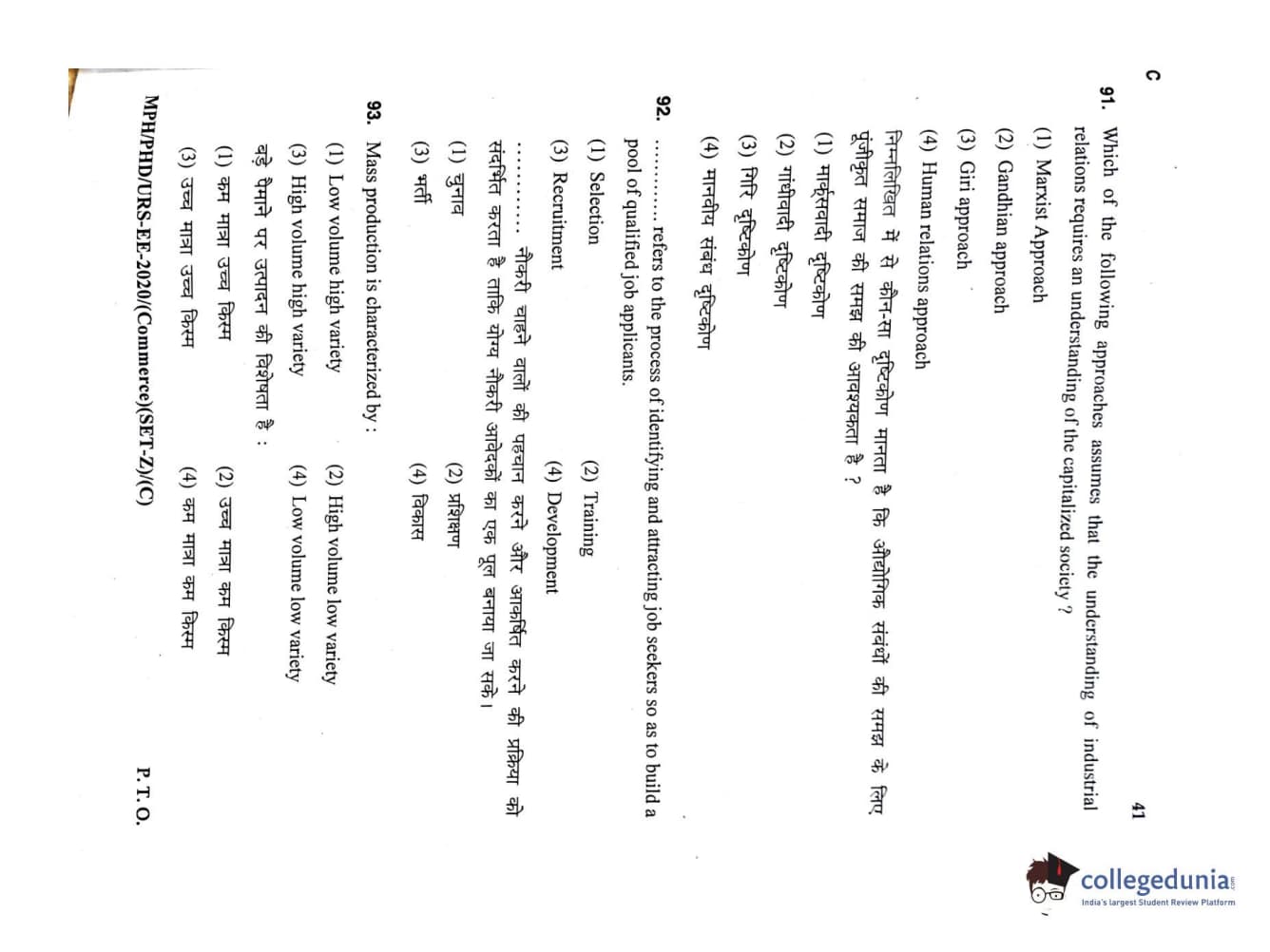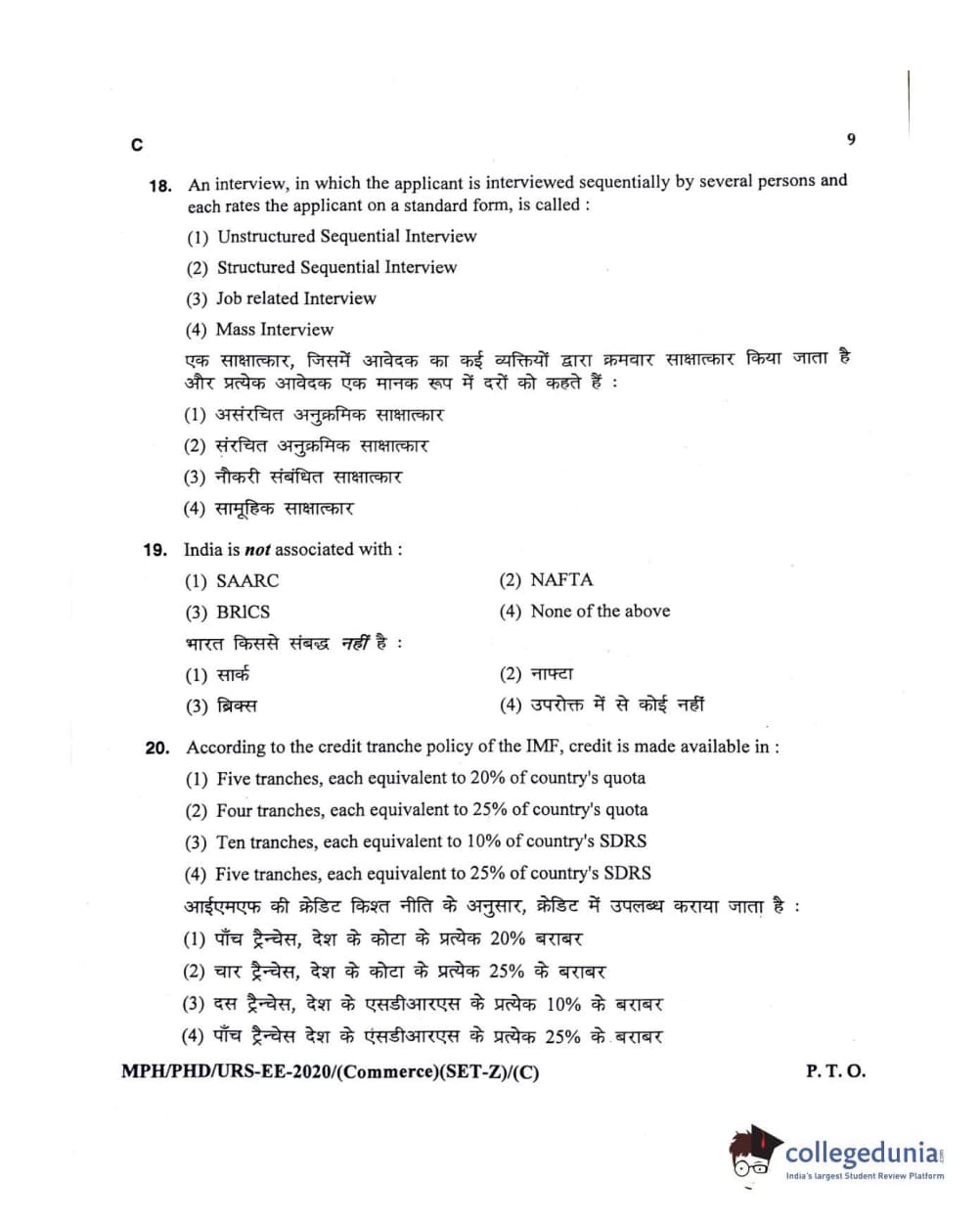MDUCEE 2020 M.Phil/Ph.D/URS – Commerce Set C Question Paper with Answer Key PDFs