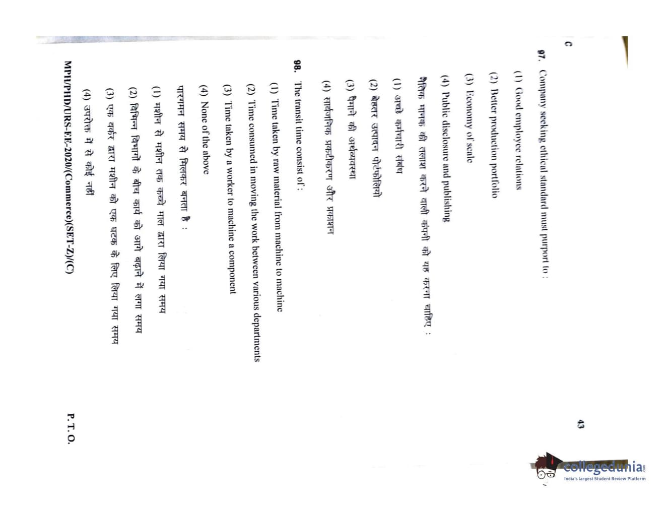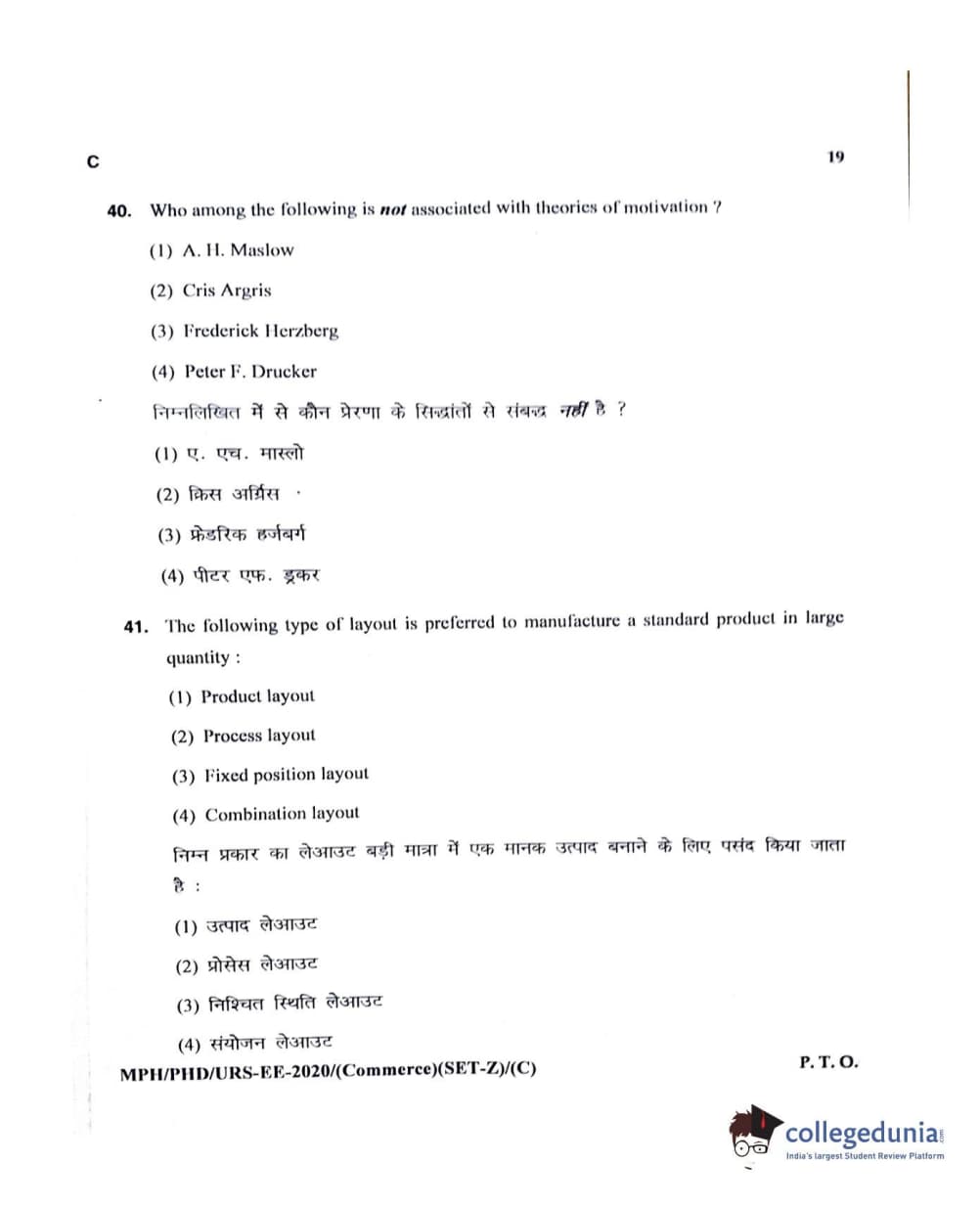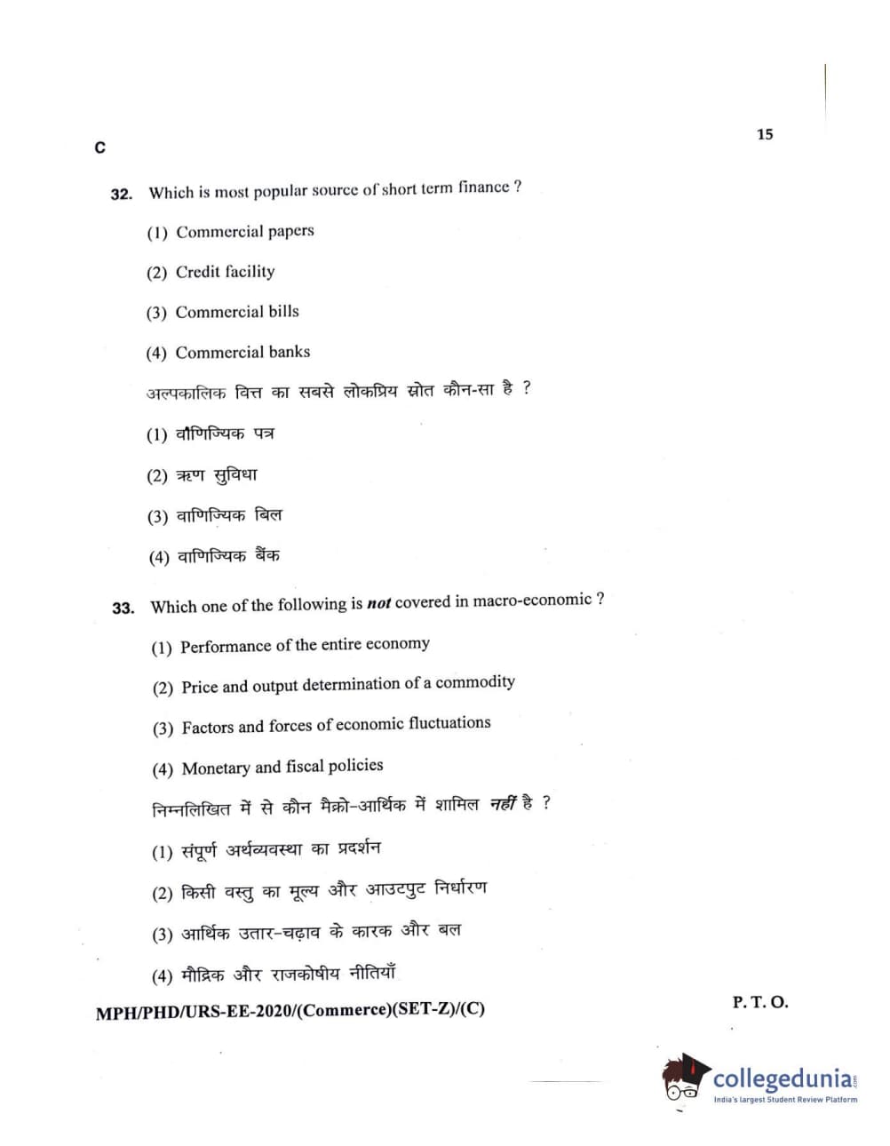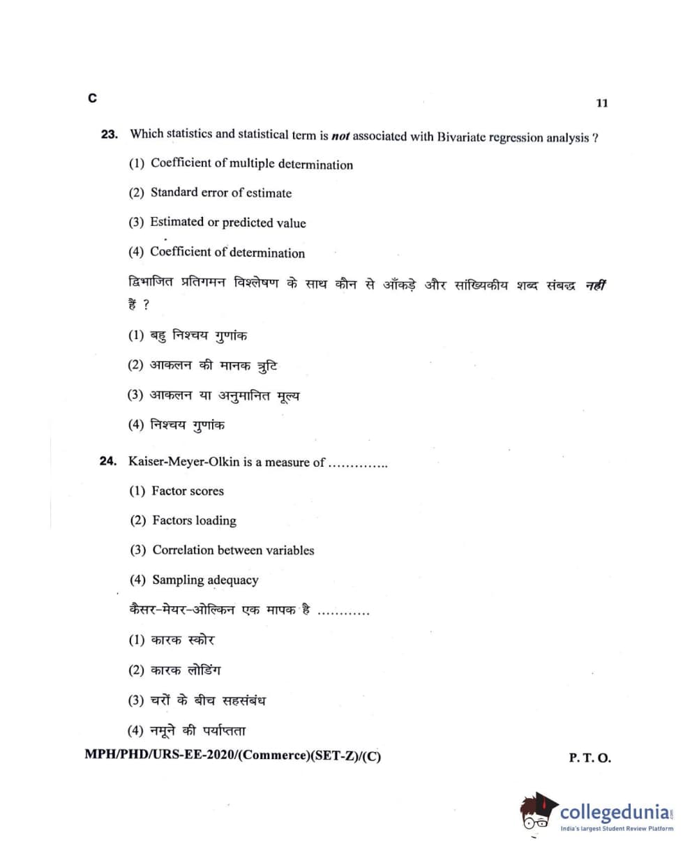 MDUCEE 2020 M.Phil/Ph.D/URS – Commerce Set C Question Paper with Answer Key PDFs