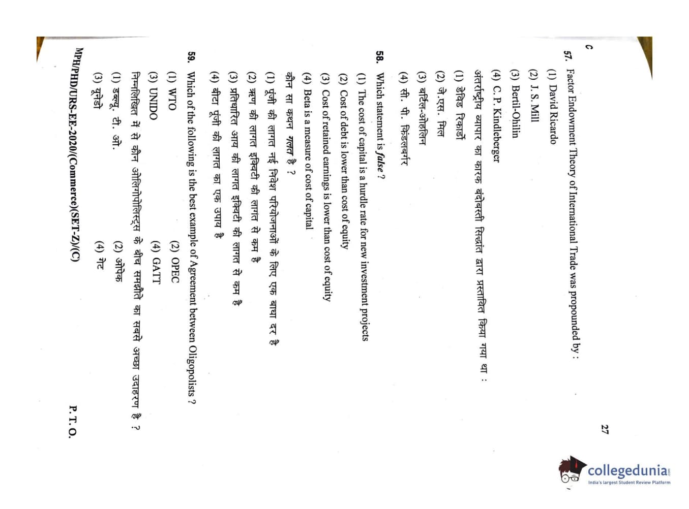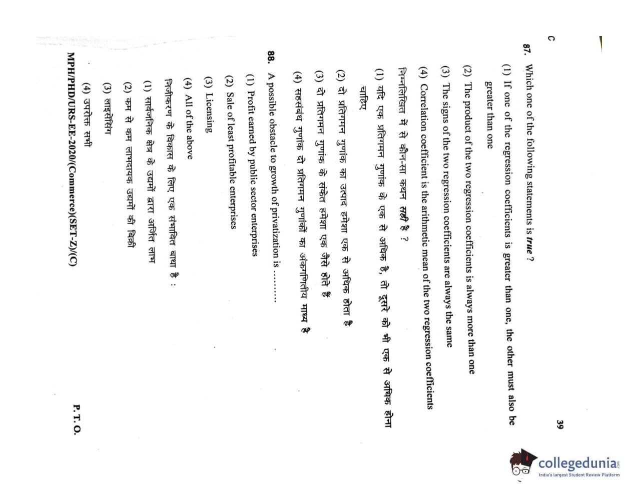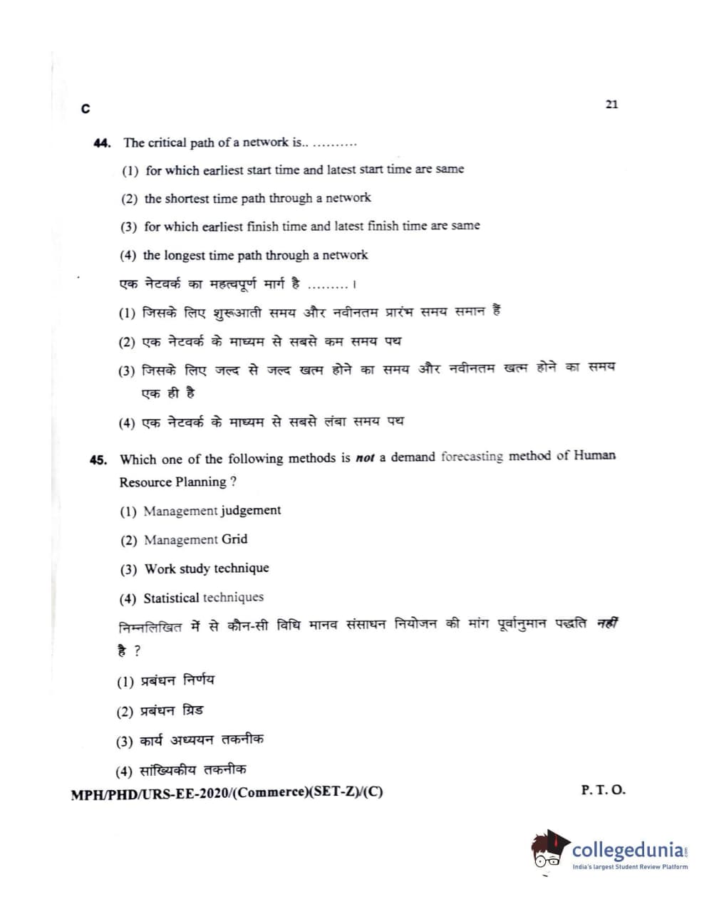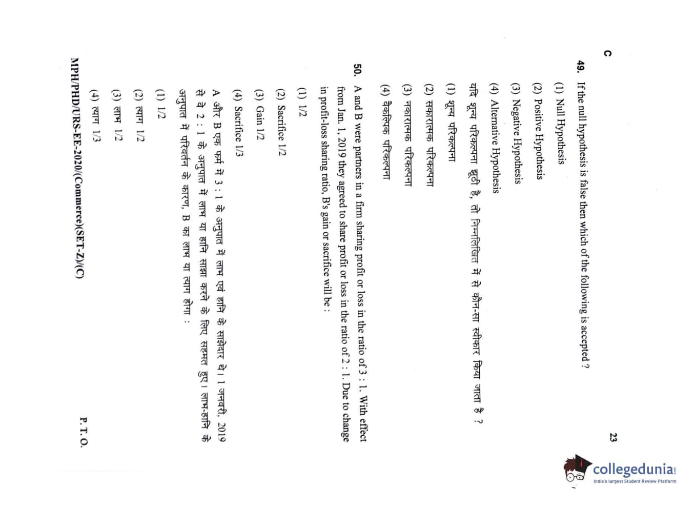 MDUCEE 2020 M.Phil/Ph.D/URS – Commerce Set C Question Paper with Answer Key PDFs