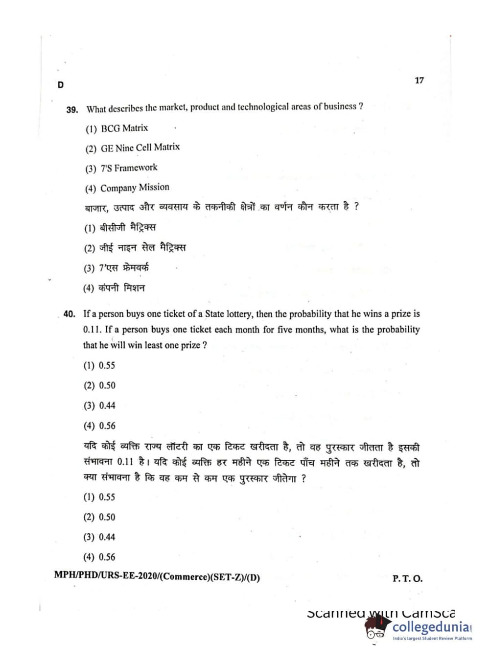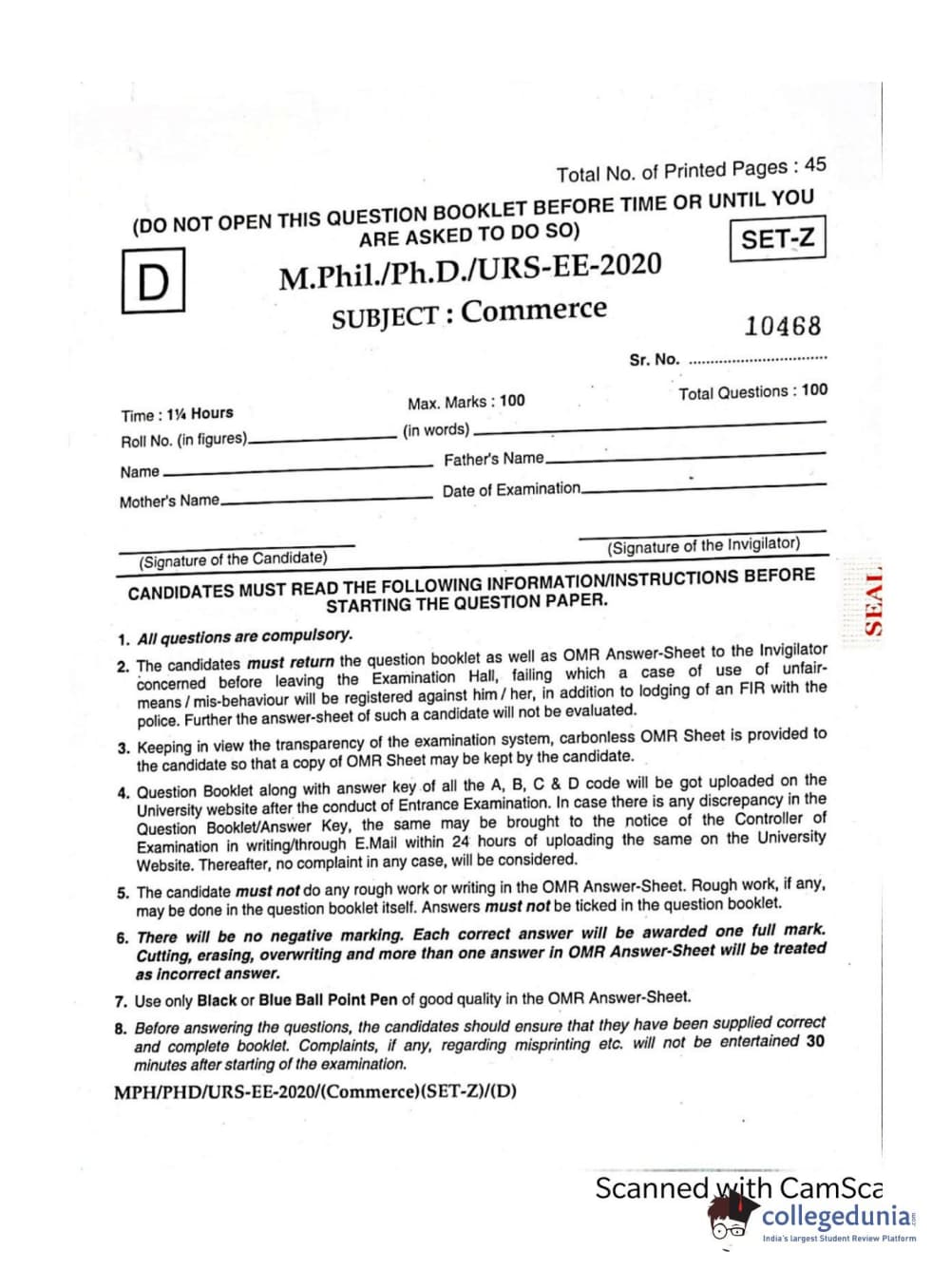 | MDUCEE 2020 M.Phil/Ph.D/URS – Commerce Set D Question Paper PDF | MDUCEE 2020 M.Phil/Ph.D/URS – Commerce Set D Answer Key PDF |