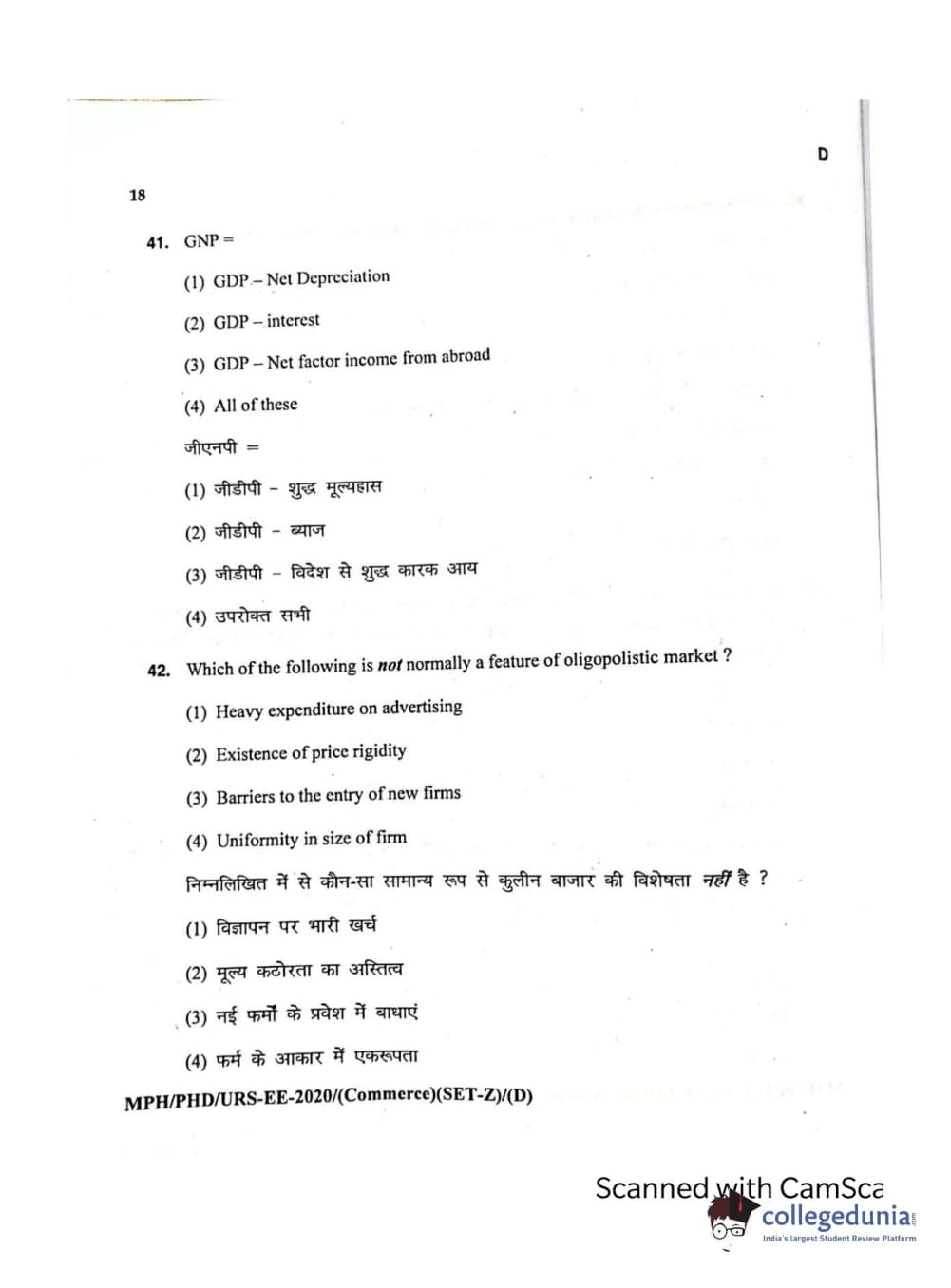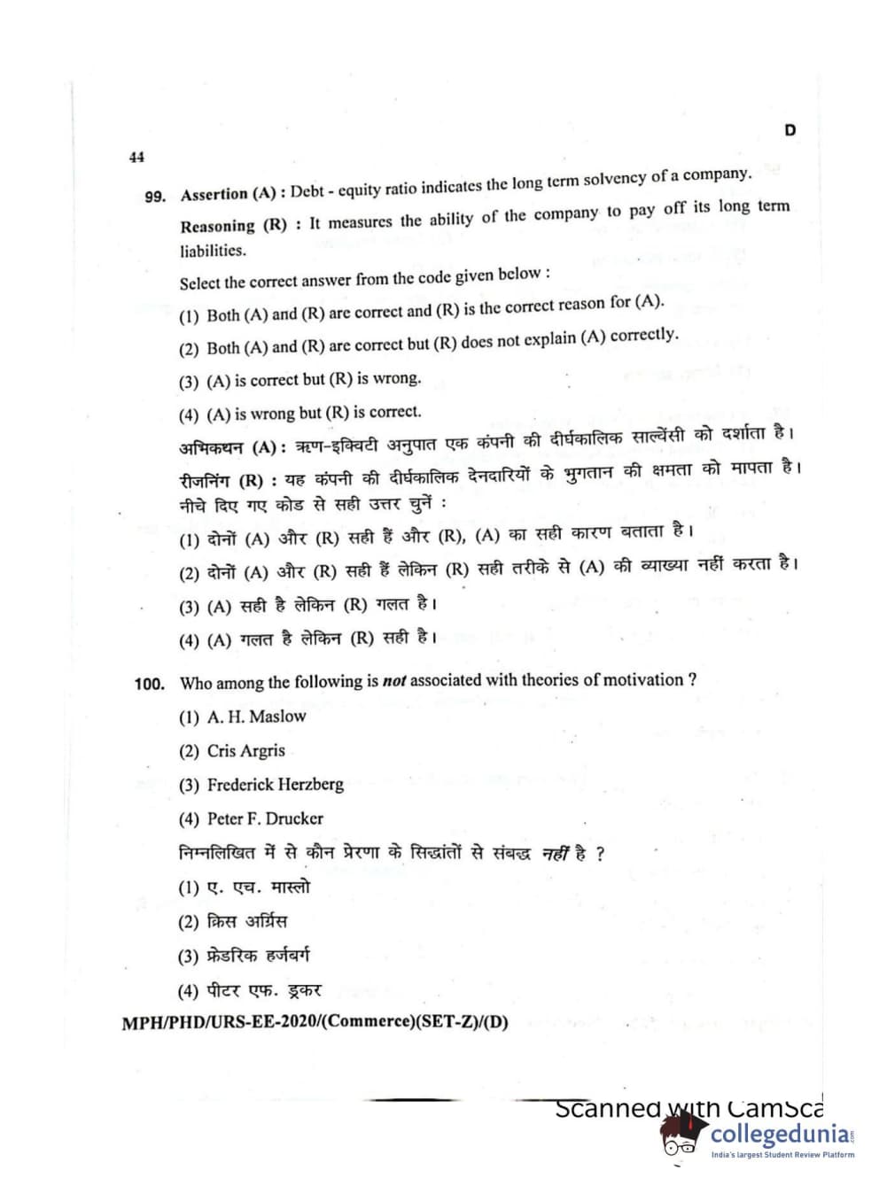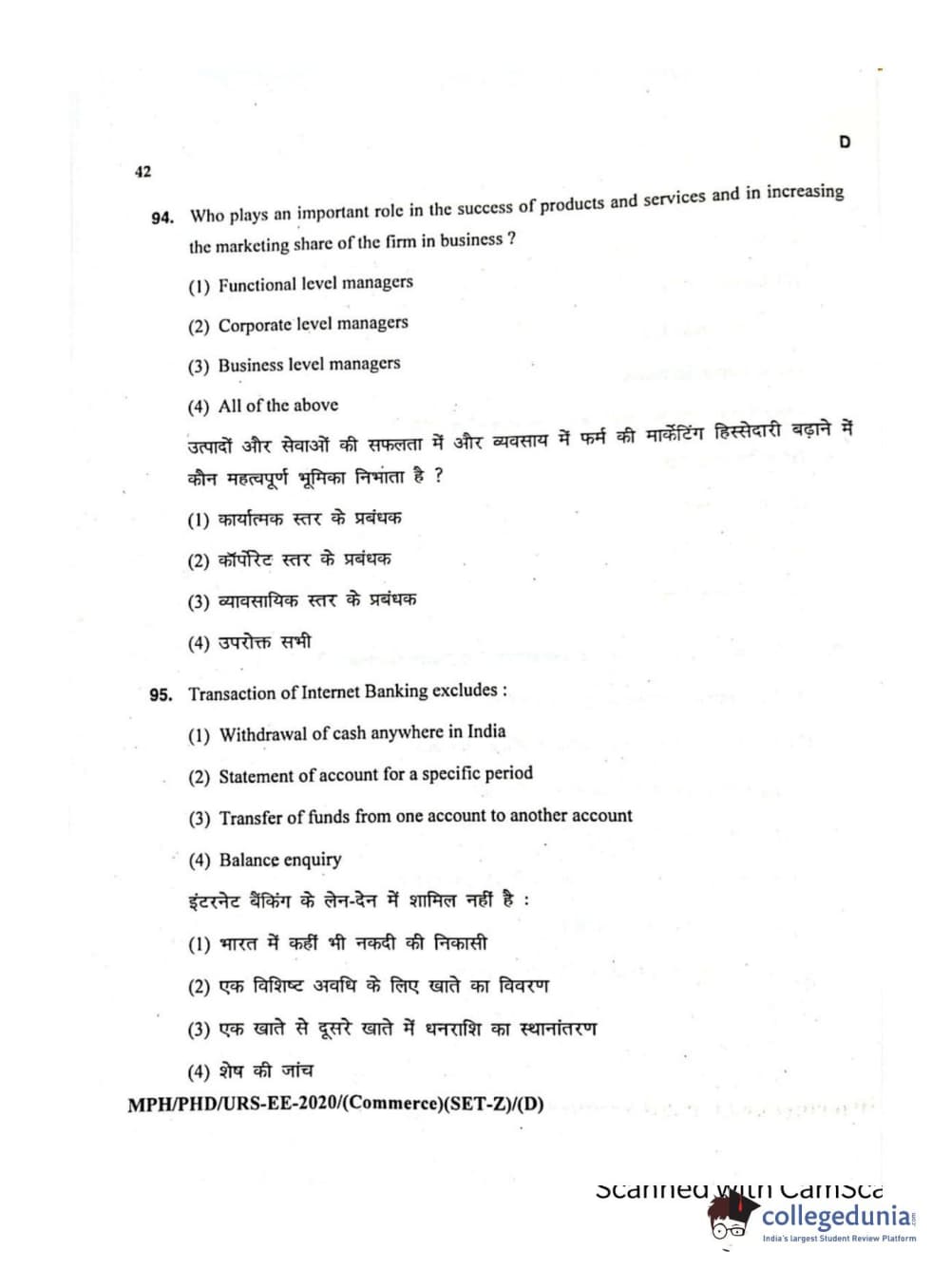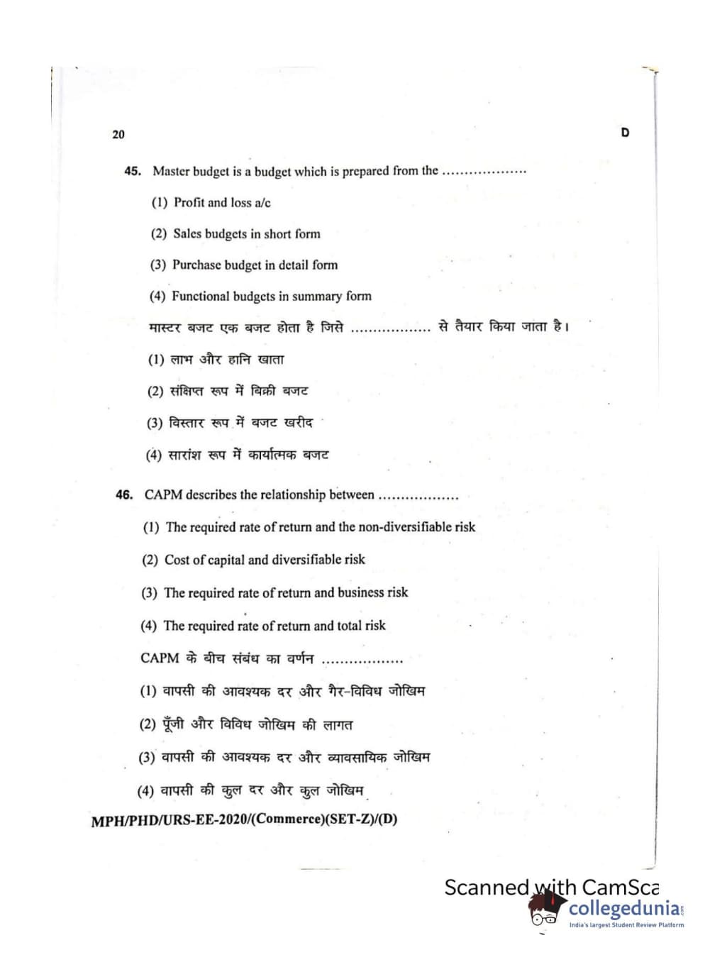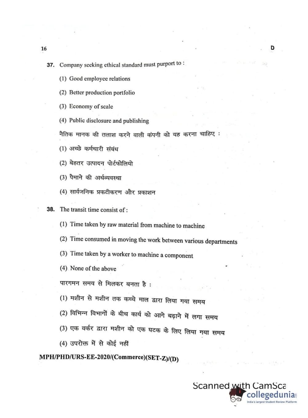 MDUCEE 2020 M.Phil/Ph.D/URS – Commerce Set D Question Paper with Answer Key PDFs