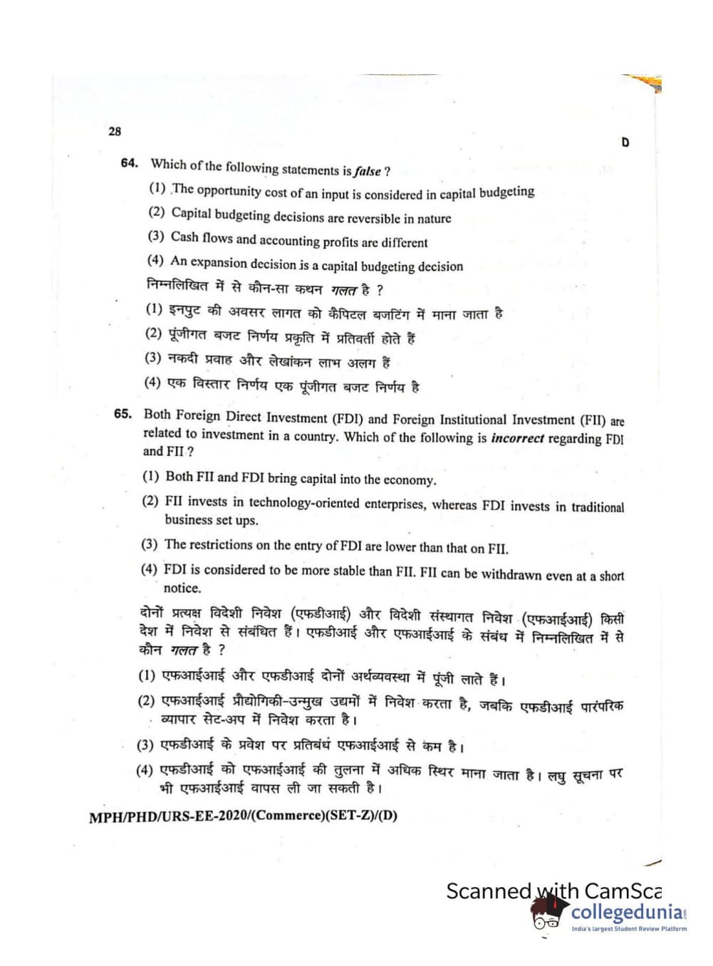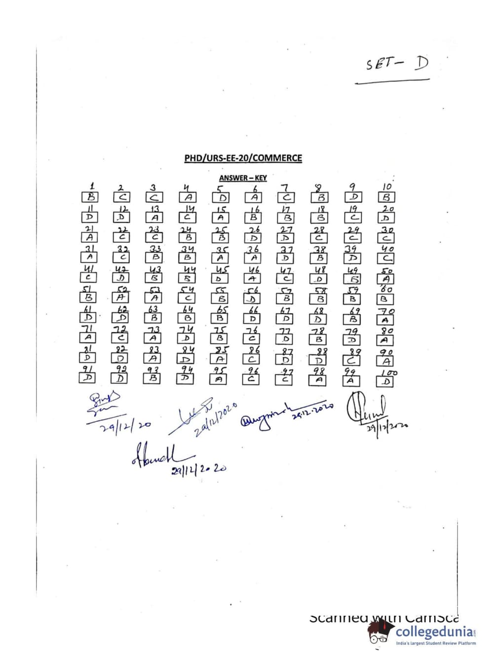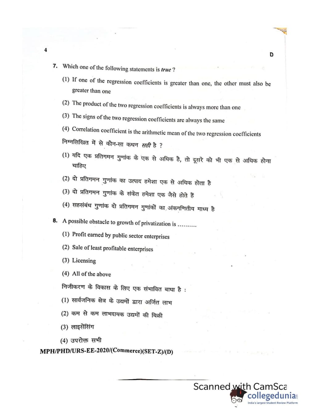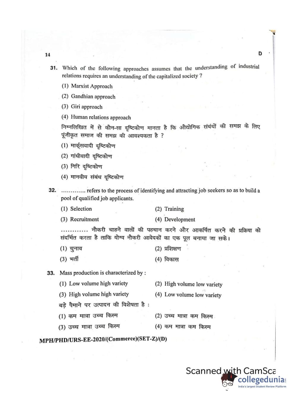 MDUCEE 2020 M.Phil/Ph.D/URS – Commerce Set D Question Paper with Answer Key PDFs