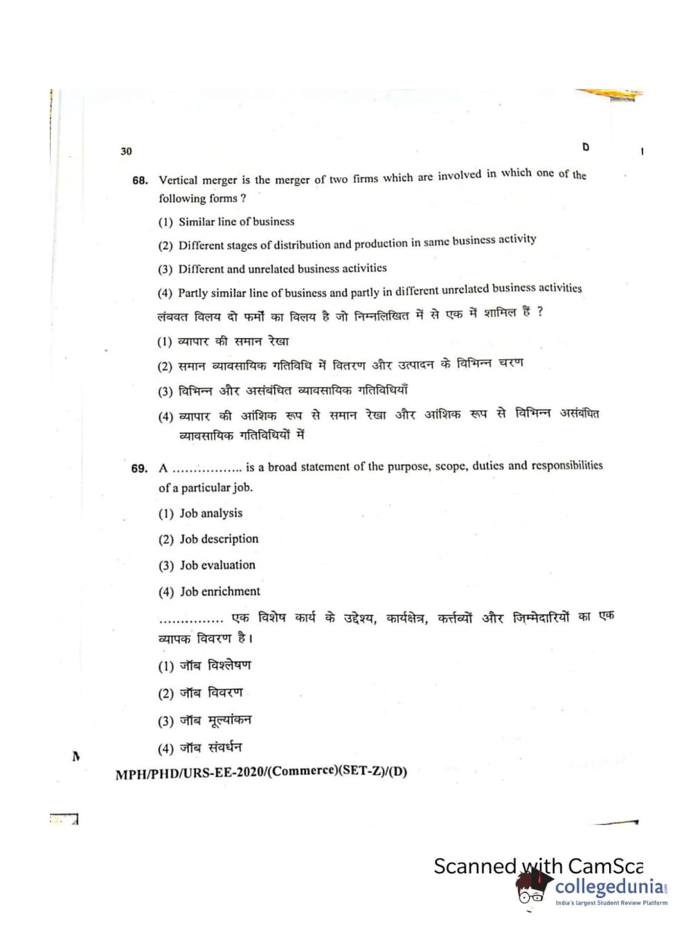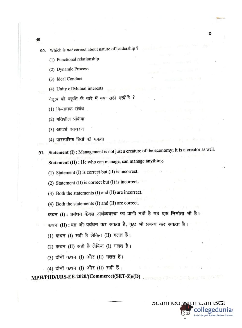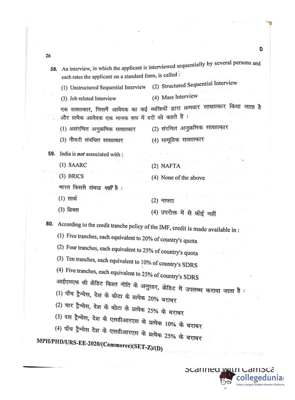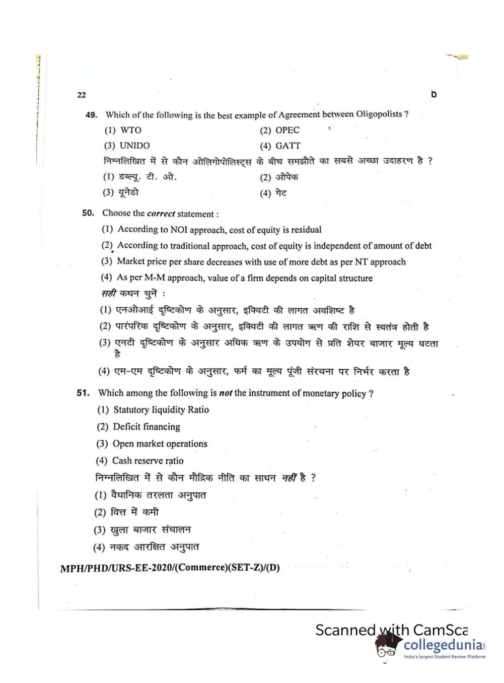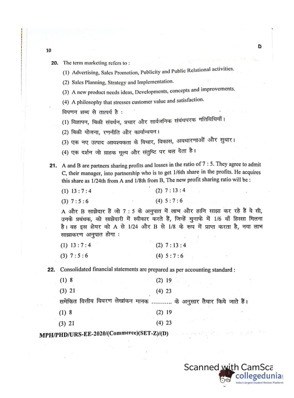 MDUCEE 2020 M.Phil/Ph.D/URS – Commerce Set D Question Paper with Answer Key PDFs