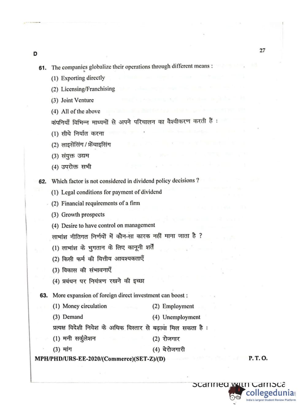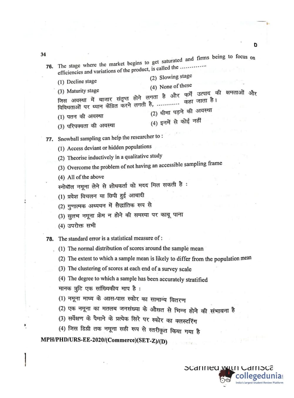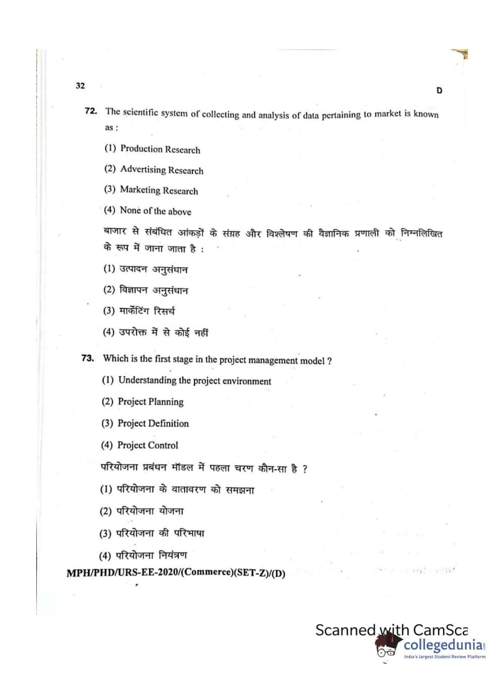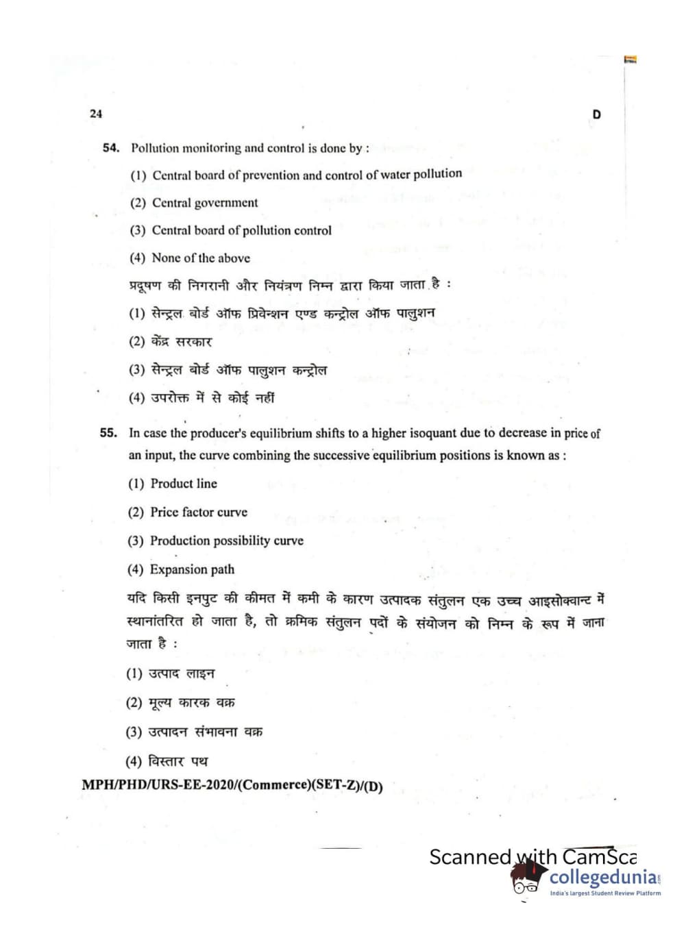 MDUCEE 2020 M.Phil/Ph.D/URS – Commerce Set D Question Paper with Answer Key PDFs
