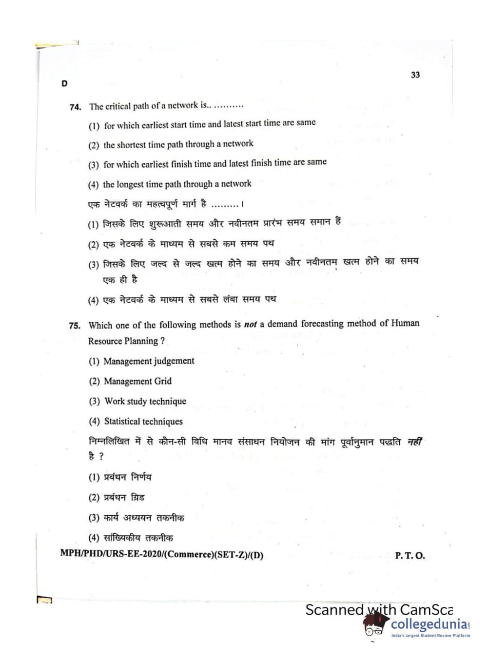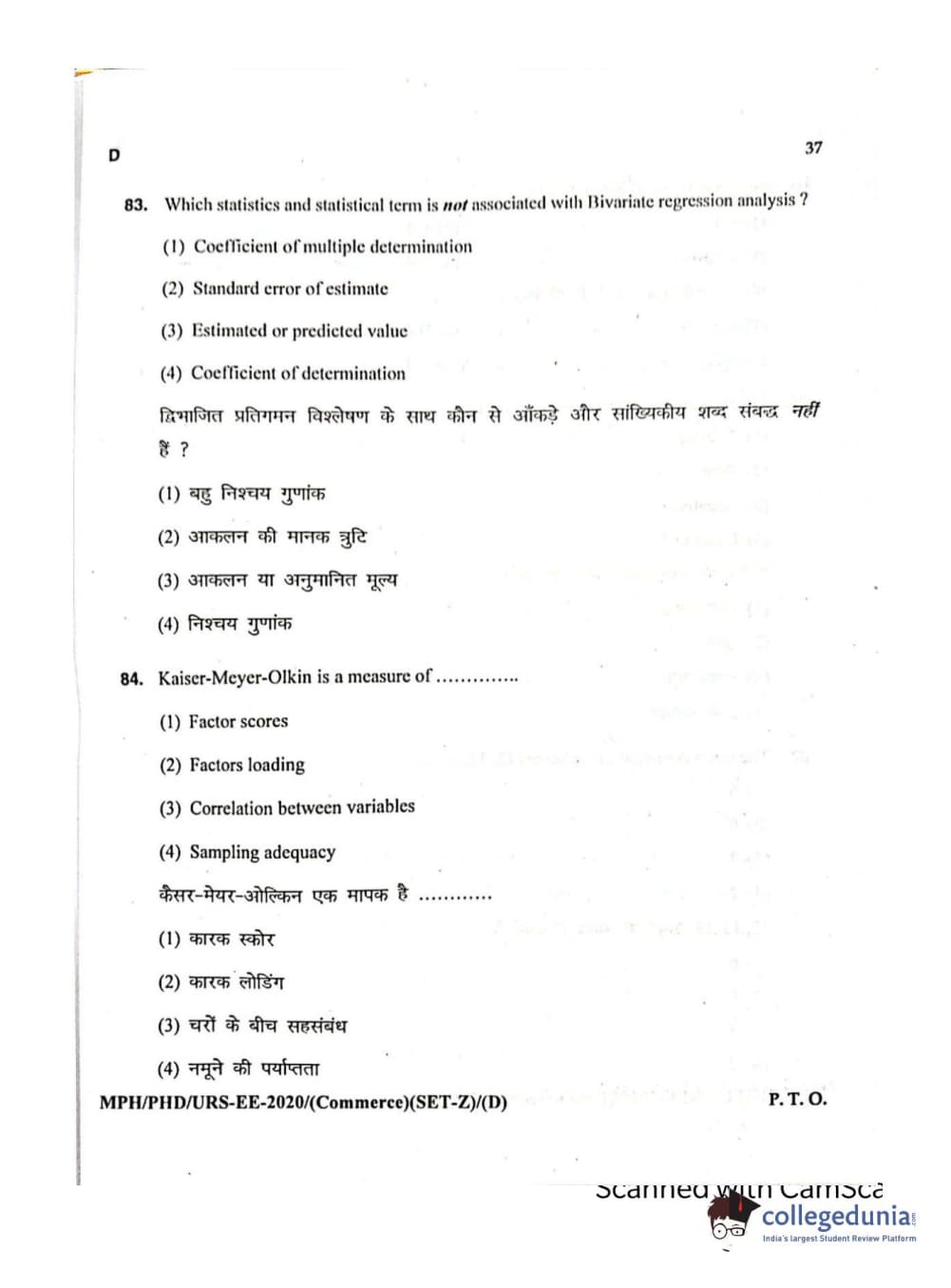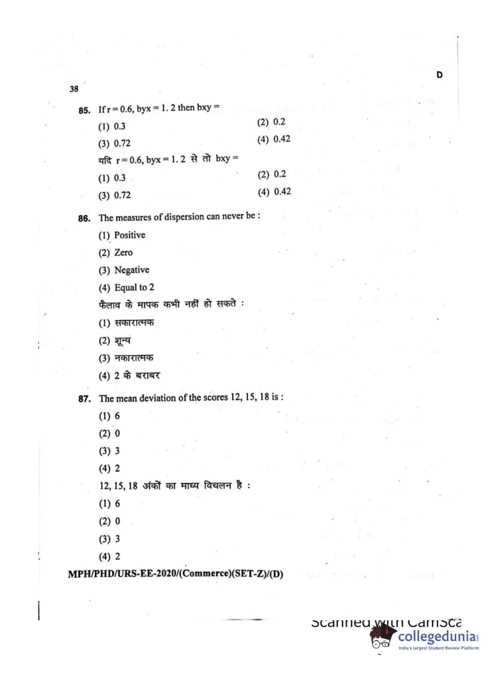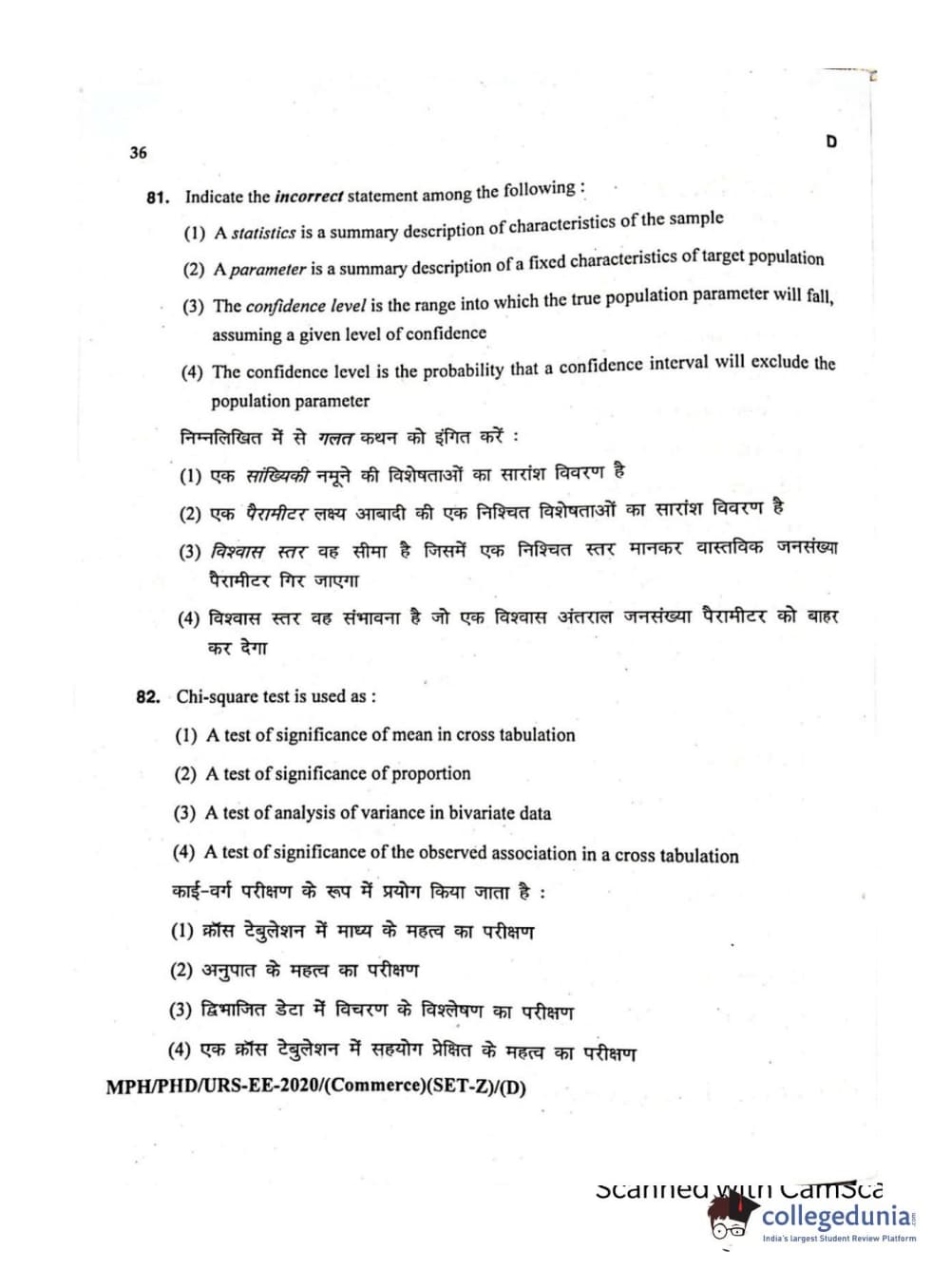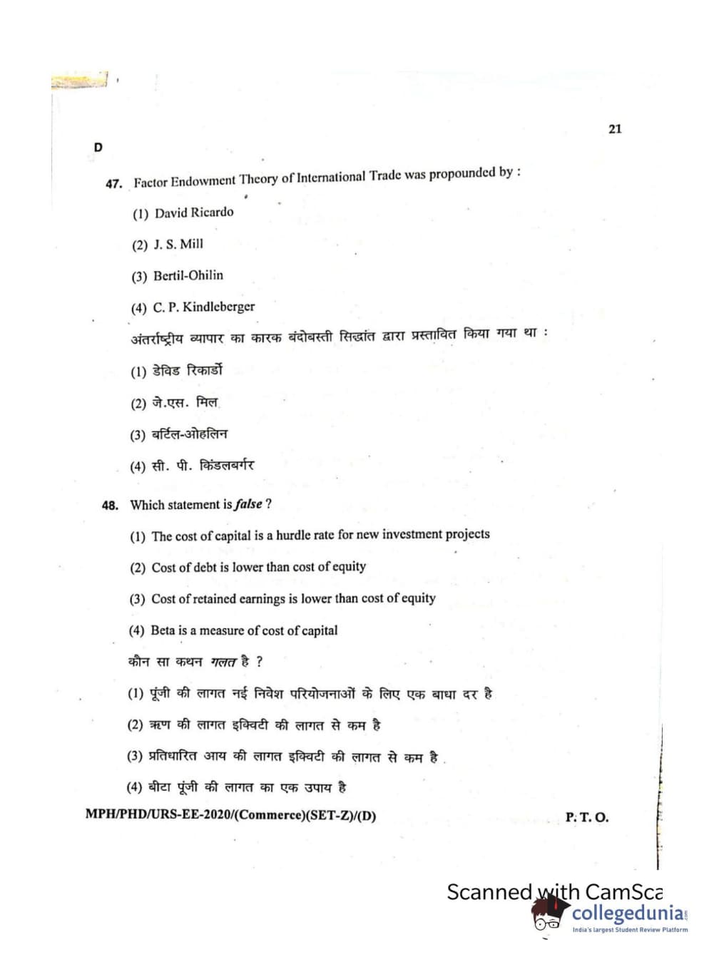 MDUCEE 2020 M.Phil/Ph.D/URS – Commerce Set D Question Paper with Answer Key PDFs