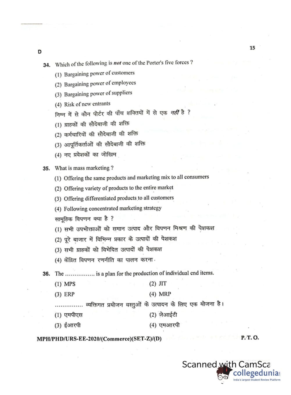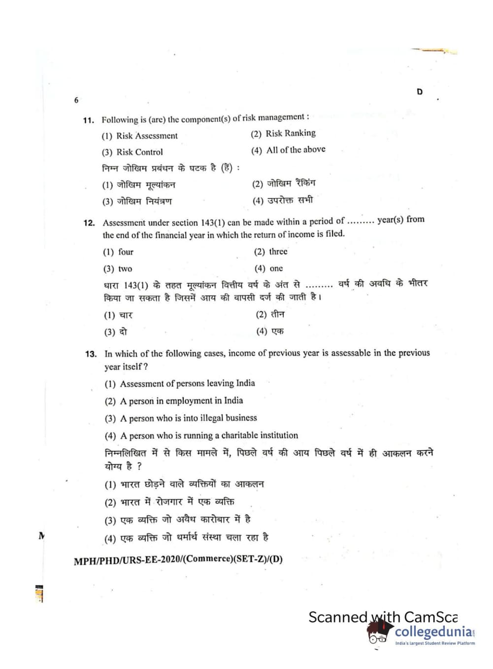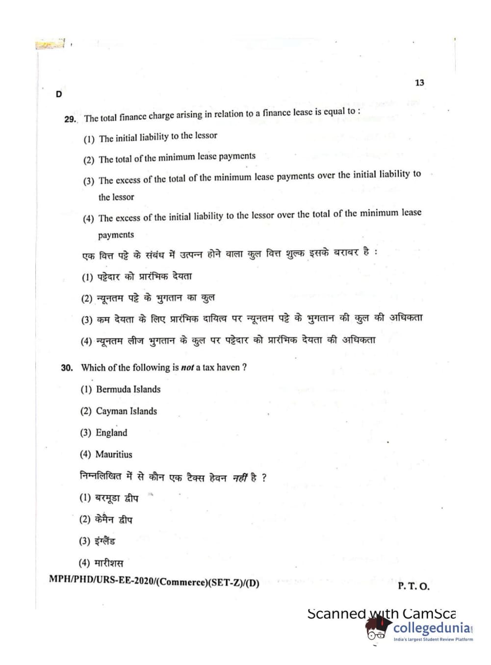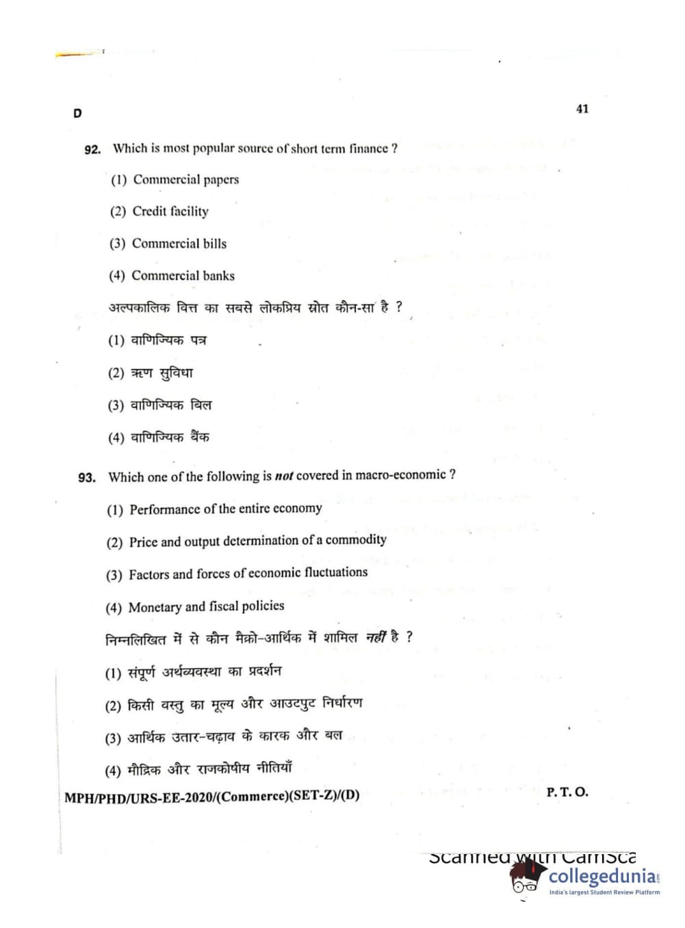 MDUCEE 2020 M.Phil/Ph.D/URS – Commerce Set D Question Paper with Answer Key PDFs