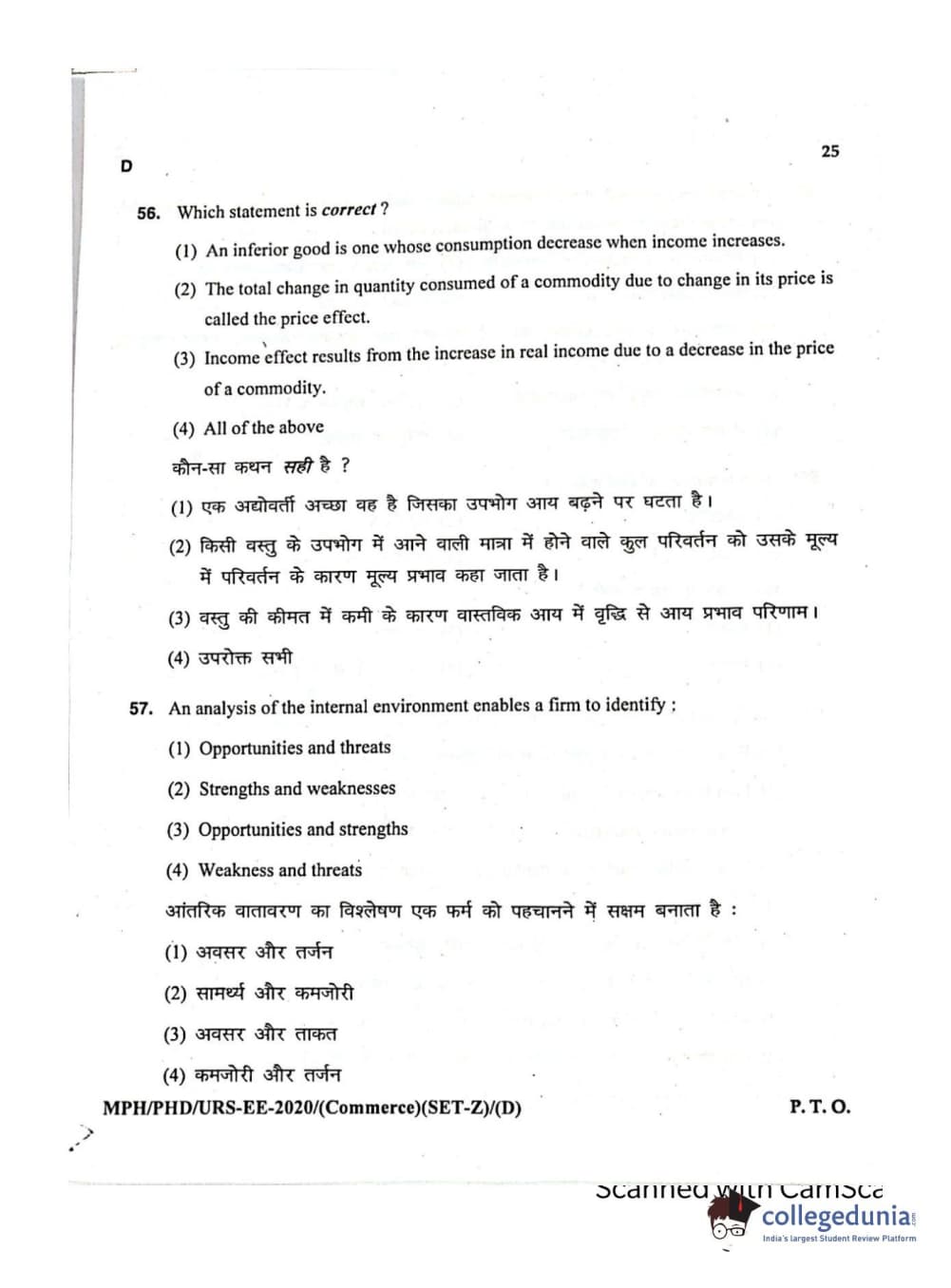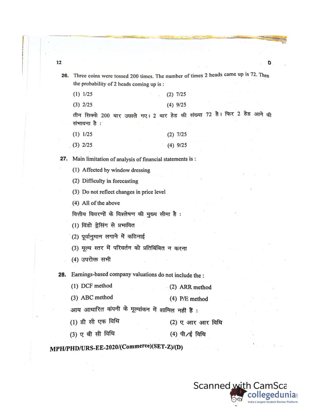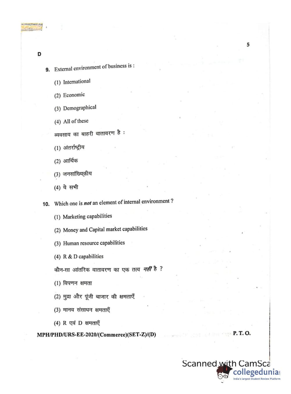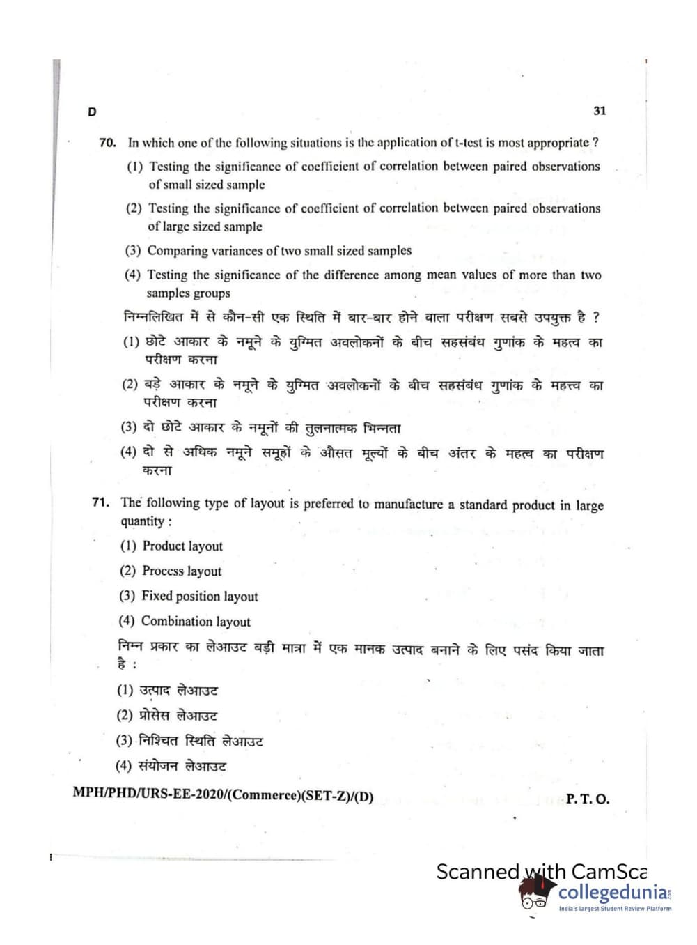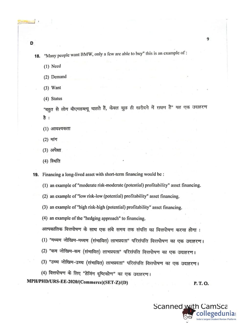 MDUCEE 2020 M.Phil/Ph.D/URS – Commerce Set D Question Paper with Answer Key PDFs