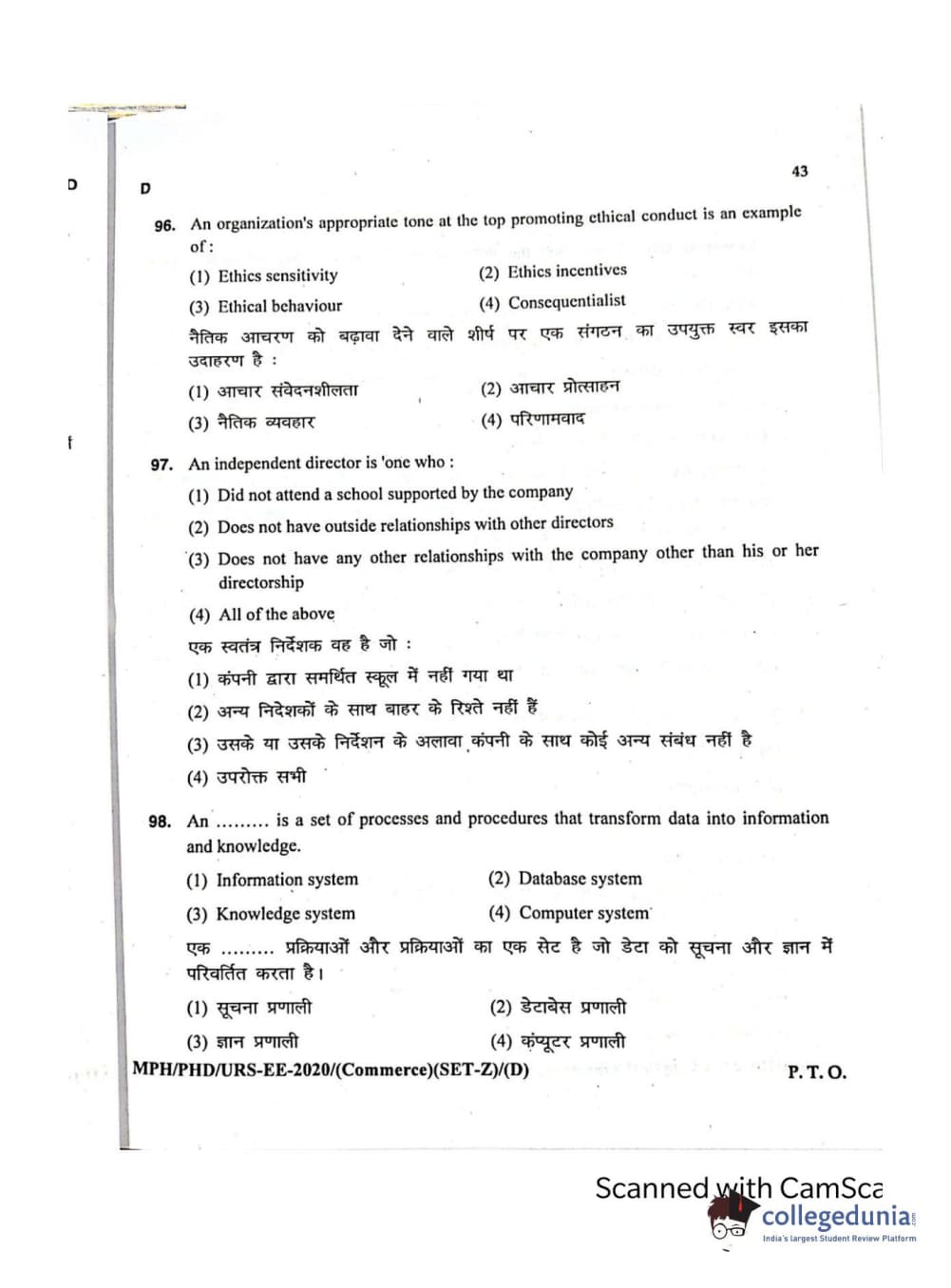 MDUCEE 2020 M.Phil/Ph.D/URS – Commerce Set D Question paper with answer key pdf is available for download. The exam was successfully organized by Maharishi Dayanand University. The question paper comprised a total of 100 questions.