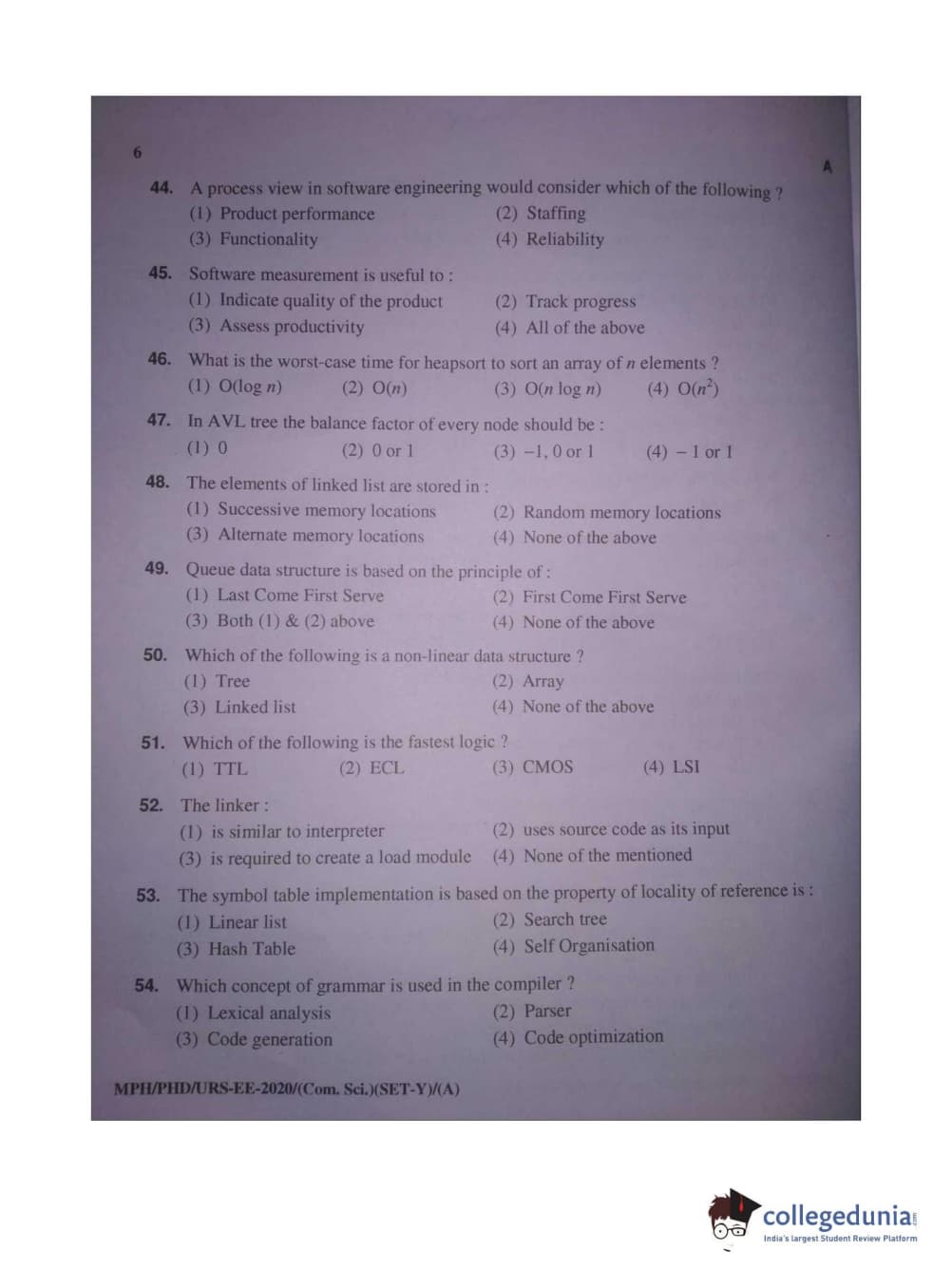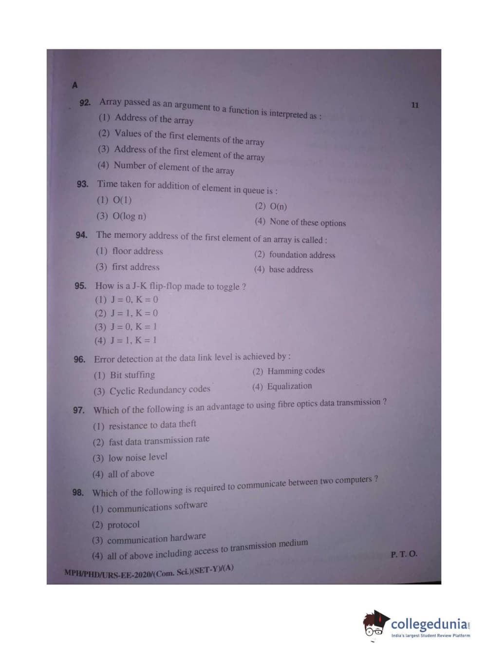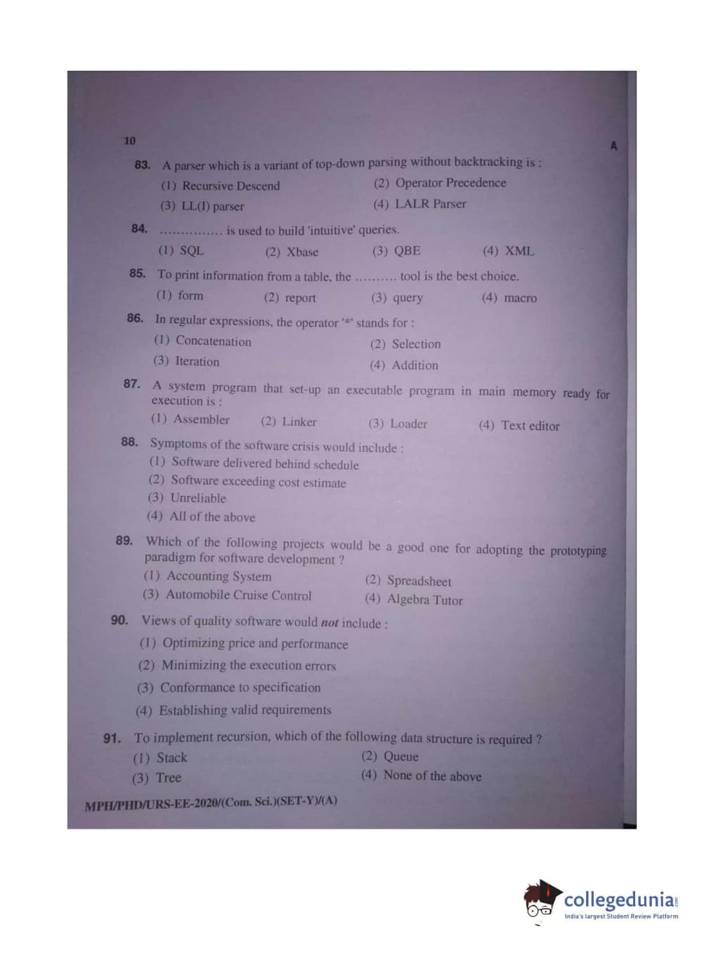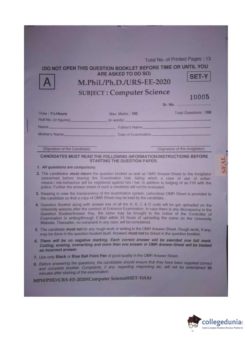 MDUCEE 2020 M.Phil/Ph.D/URS – Computer Science UIET Set A Question Paper with Answer Key PDFs