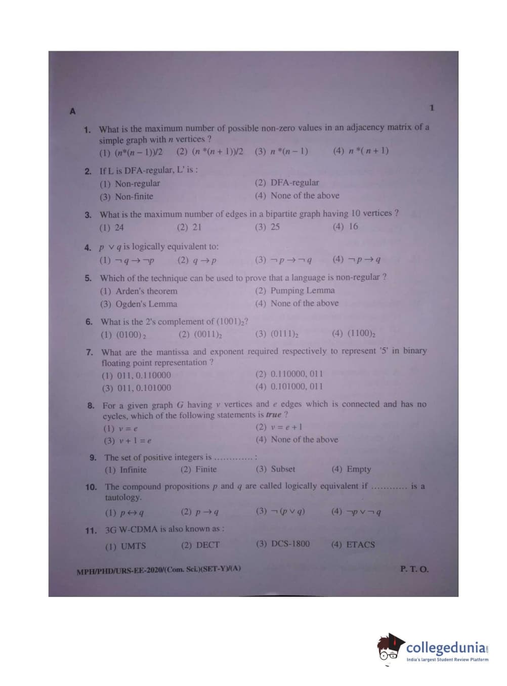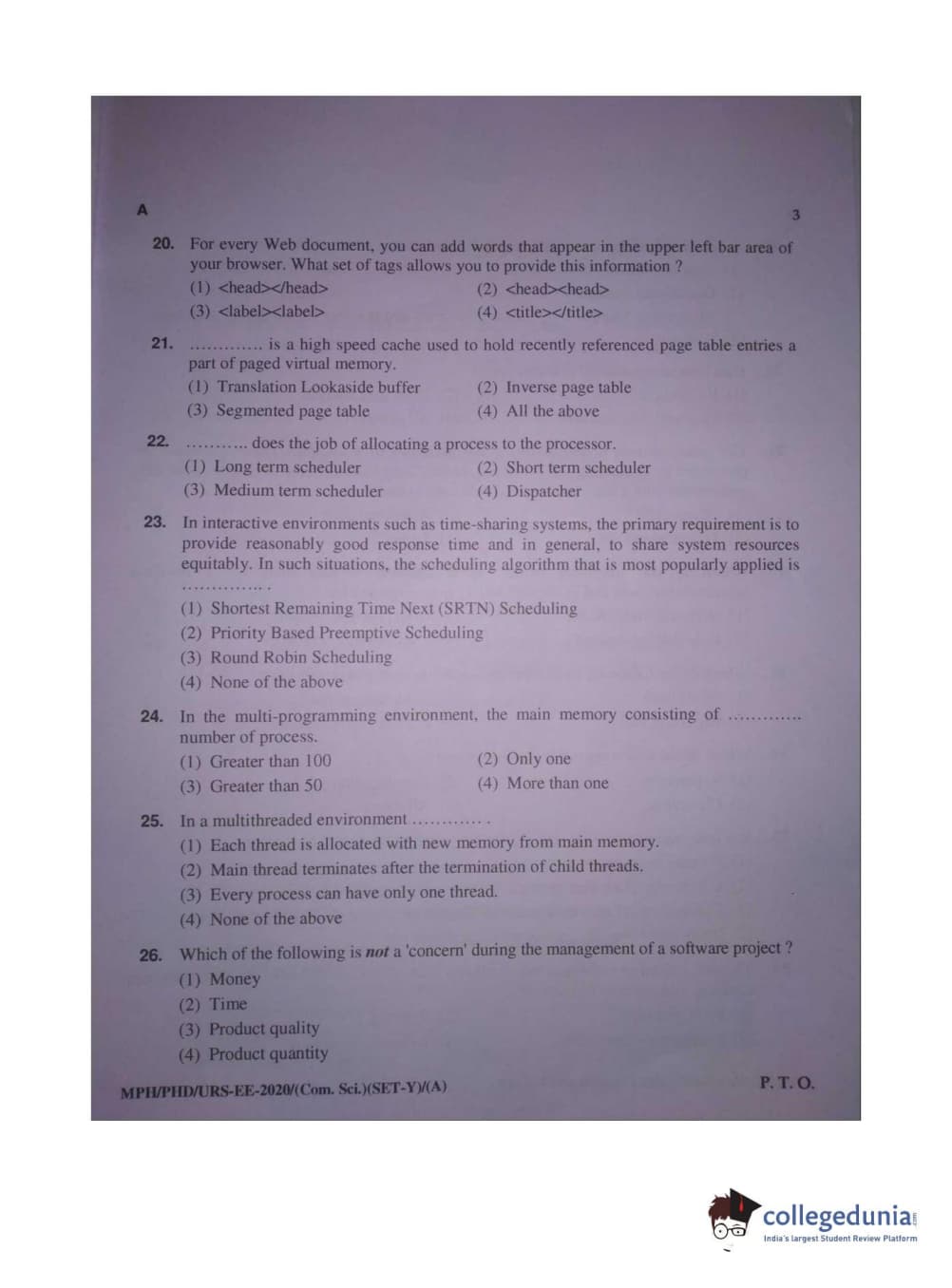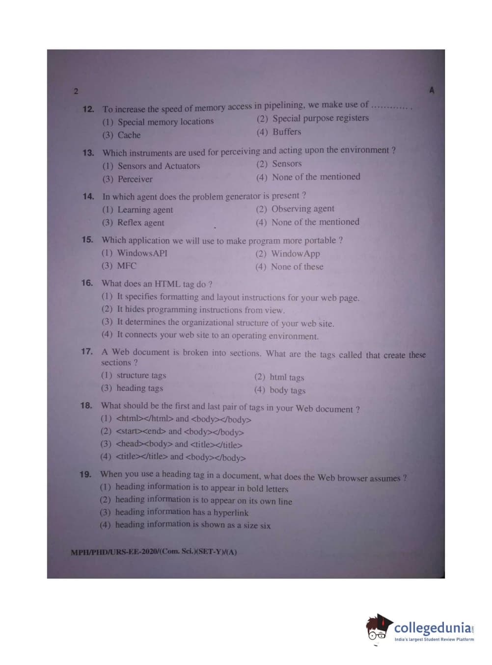MDUCEE 2020 M.Phil/Ph.D/URS – Computer Science UIET Set A Question Paper with Answer Key PDFs