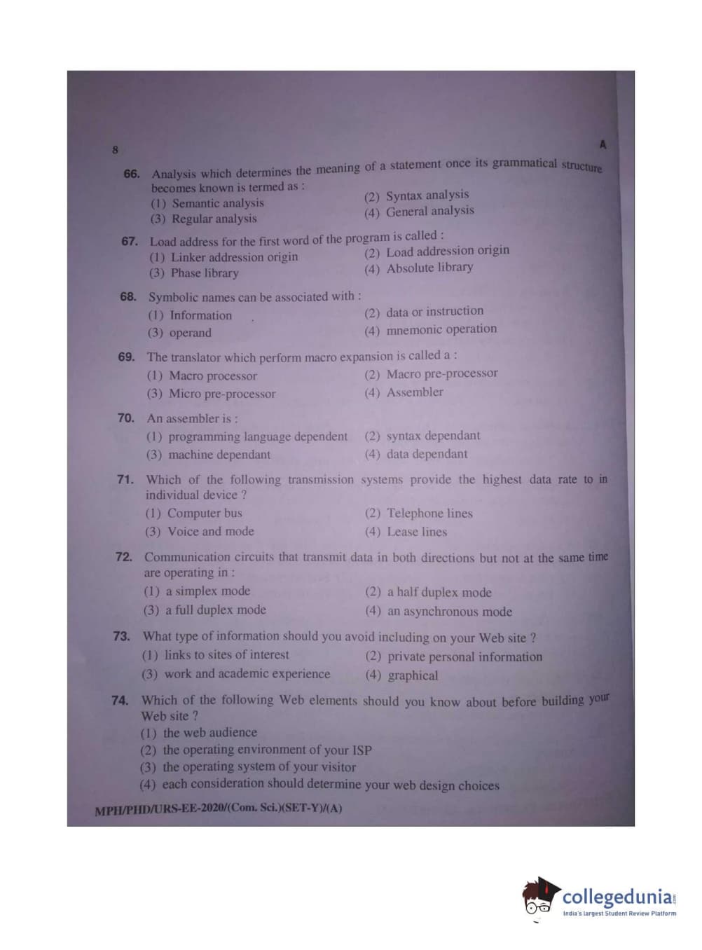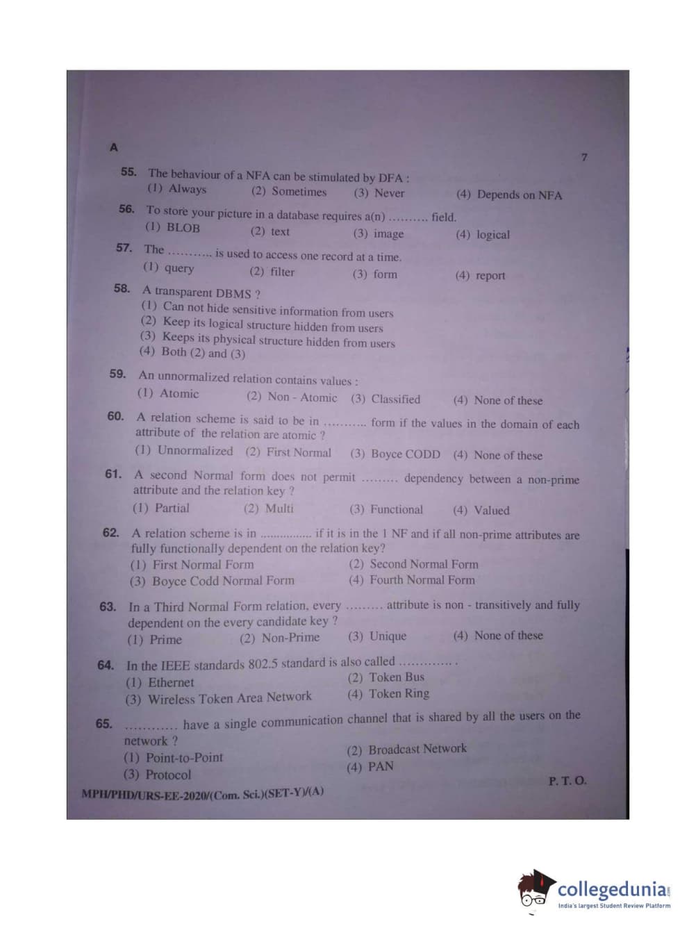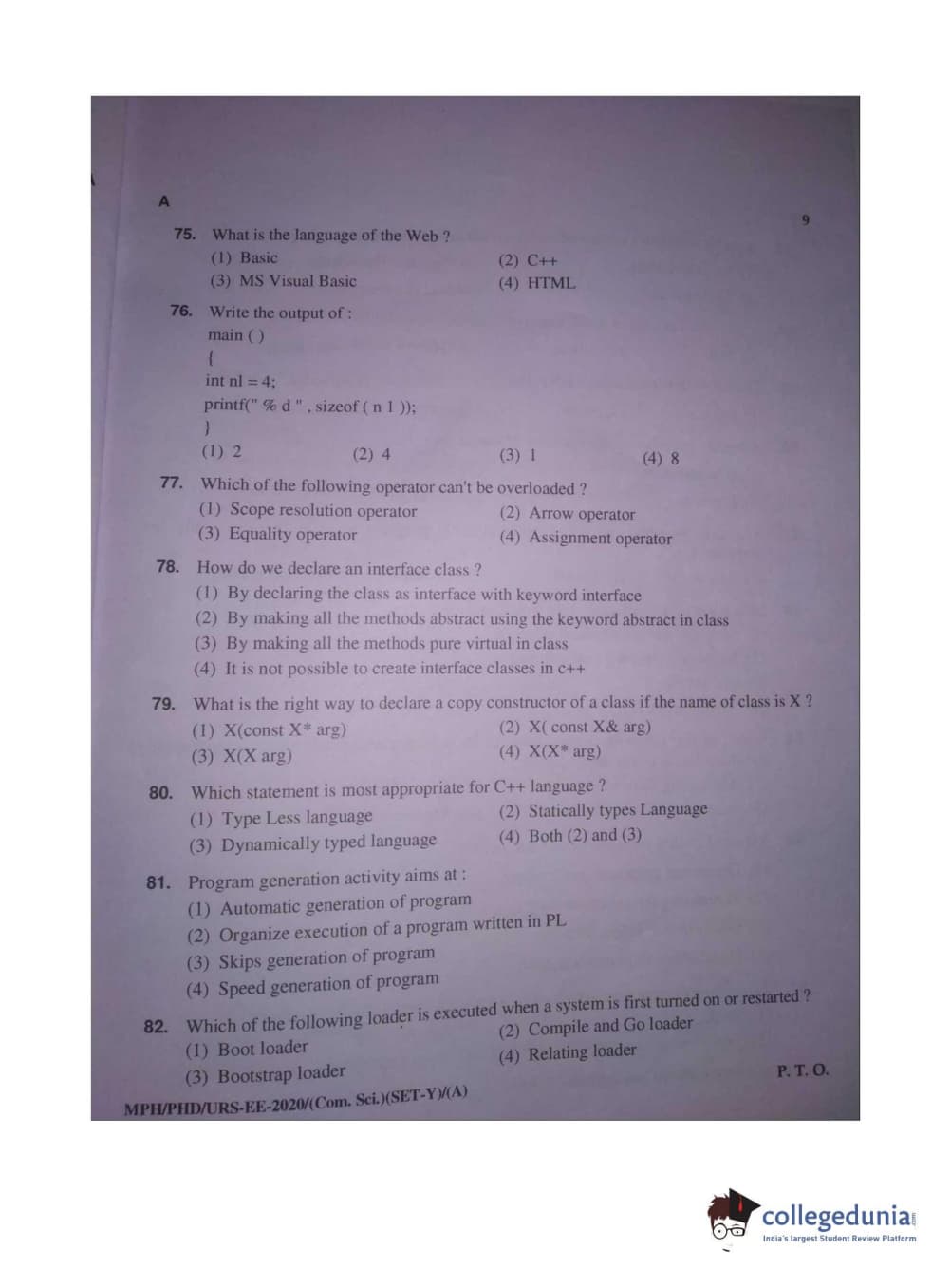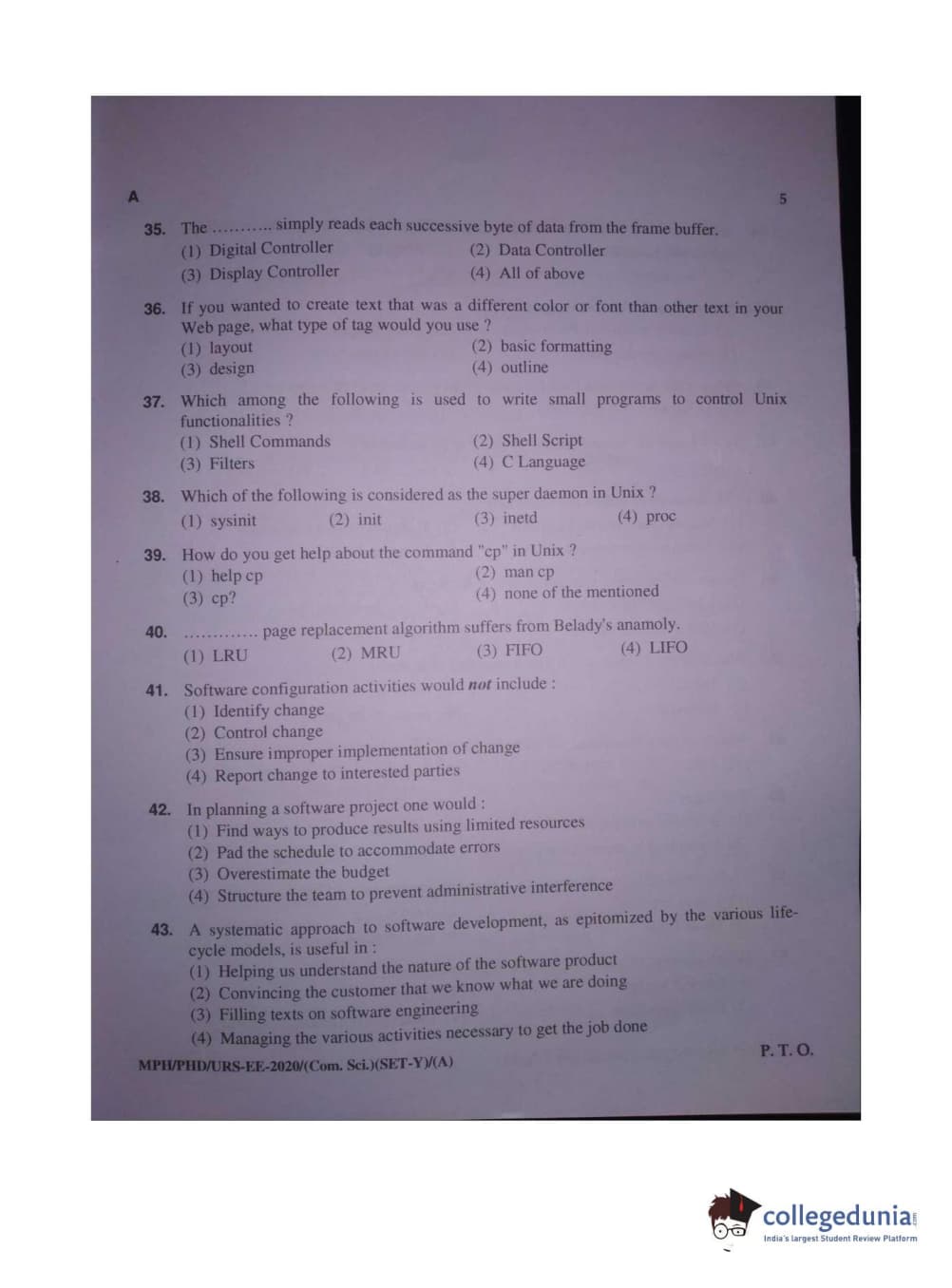 MDUCEE 2020 M.Phil/Ph.D/URS – Computer Science UIET Set A Question Paper with Answer Key PDFs