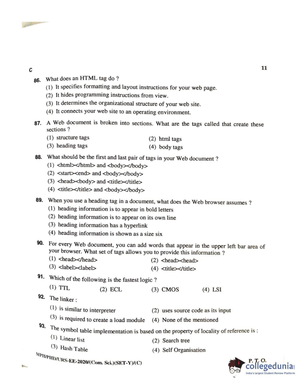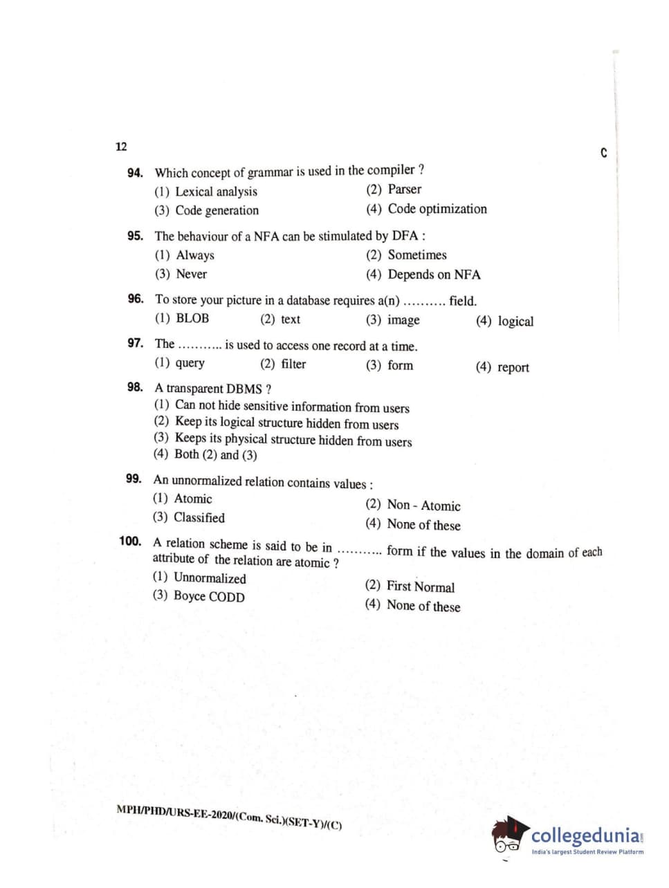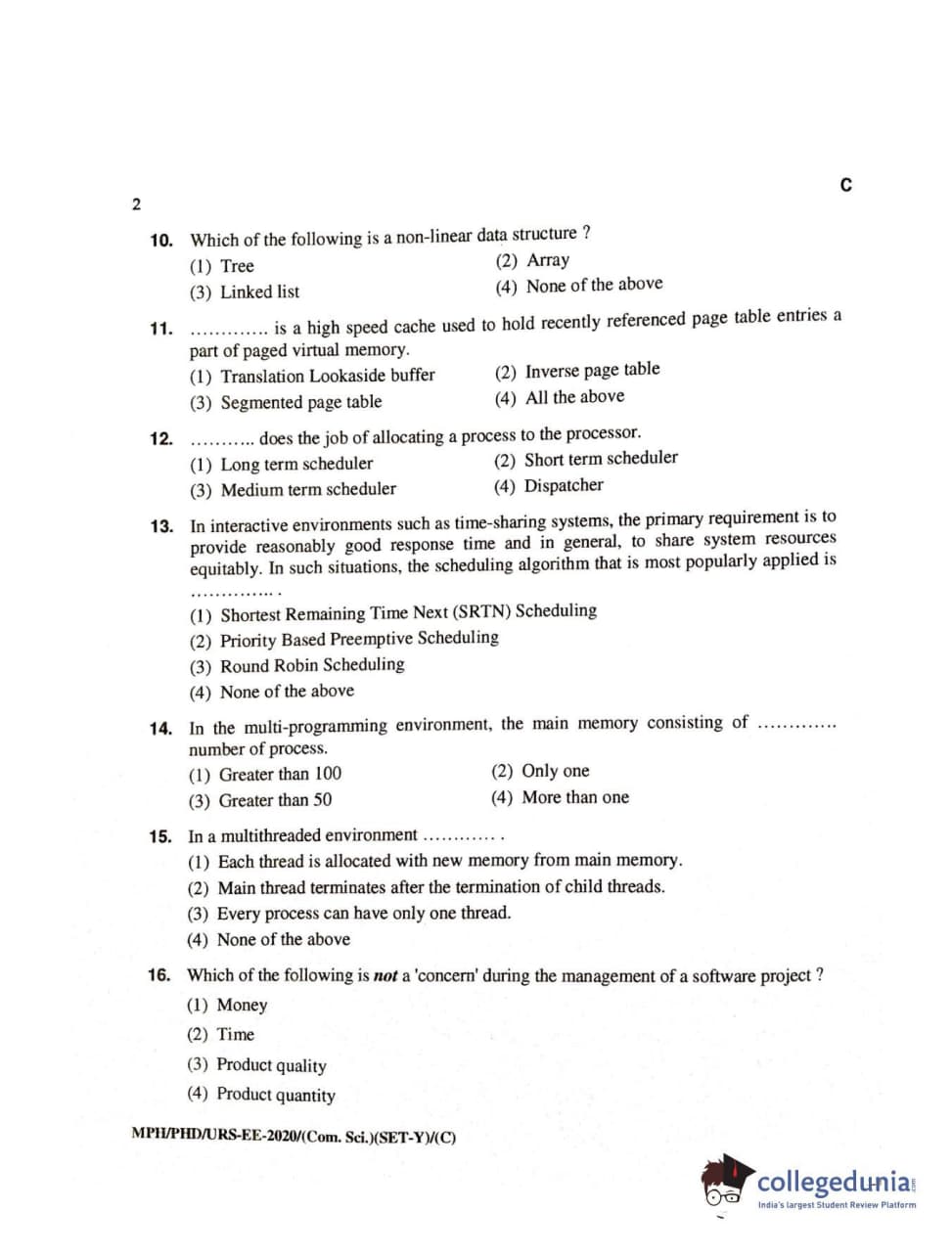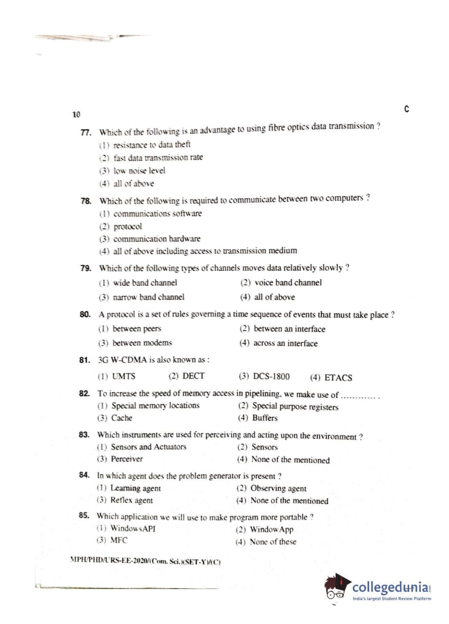 MDUCEE 2020 M.Phil/Ph.D/URS – Computer Science UIET Set C Question Paper with Answer Key PDFs
