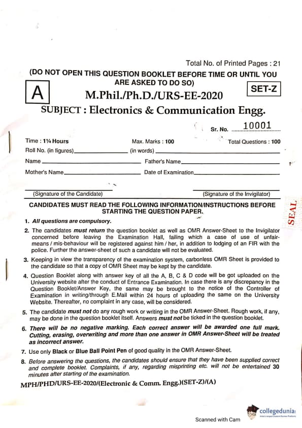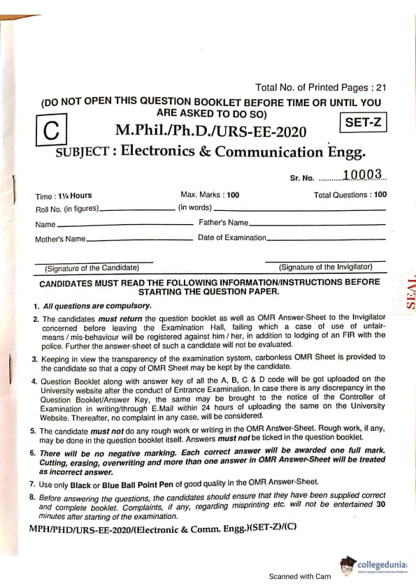 MDUCEE 2020 M.Phil/Ph.D/URS - ECE Question paper with answer key pdf is available for download. The exam was successfully organized by Maharishi Dayanand University. The question paper comprised a total of 100 questions.