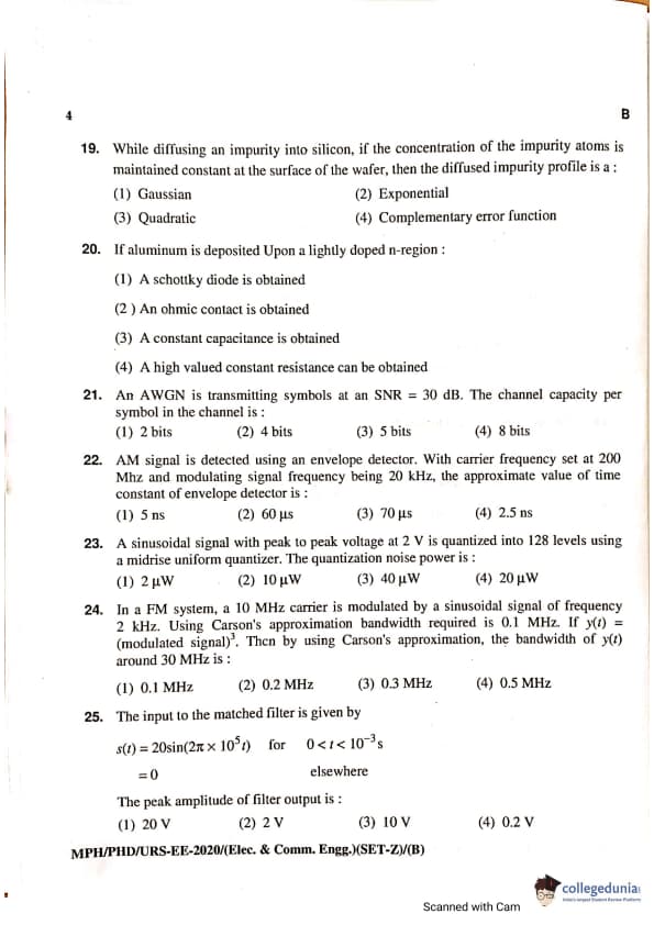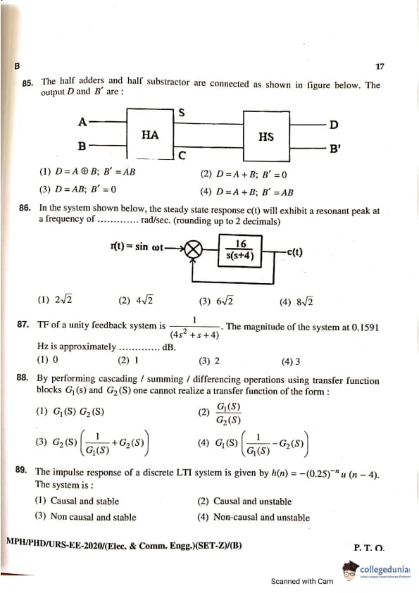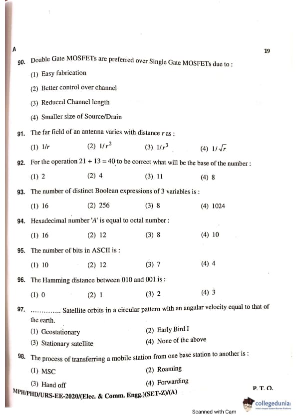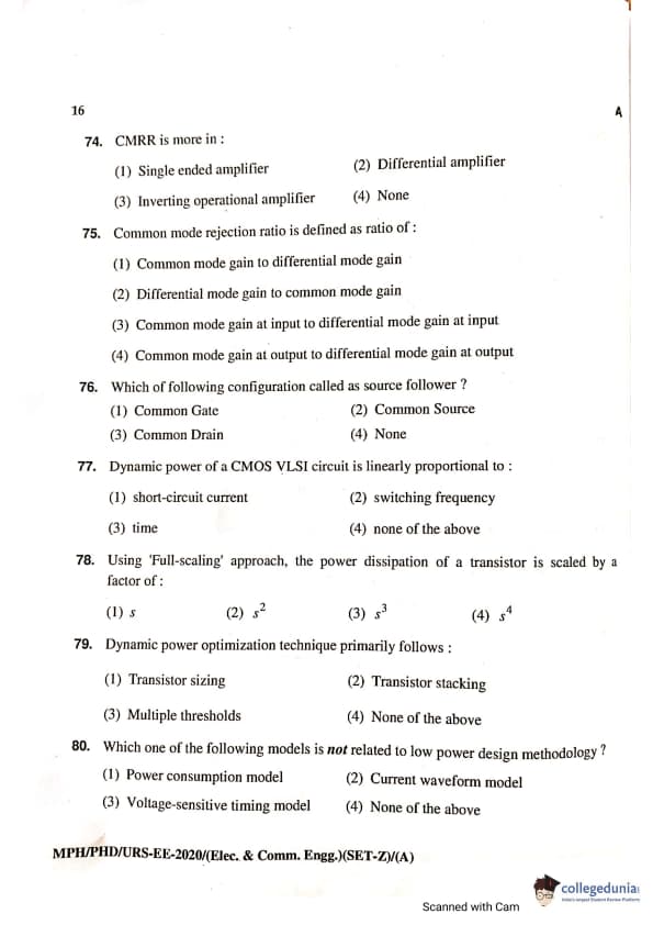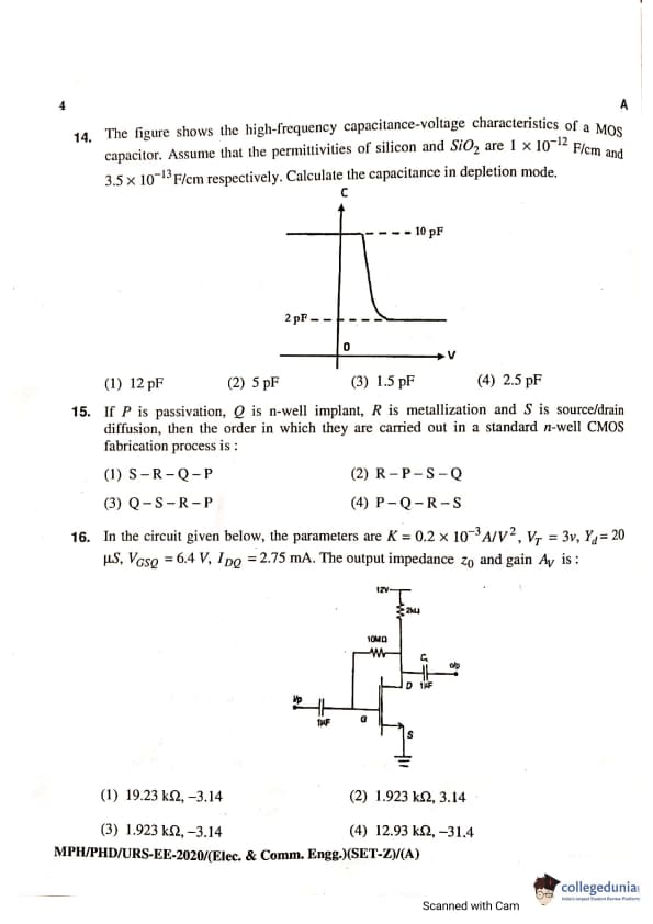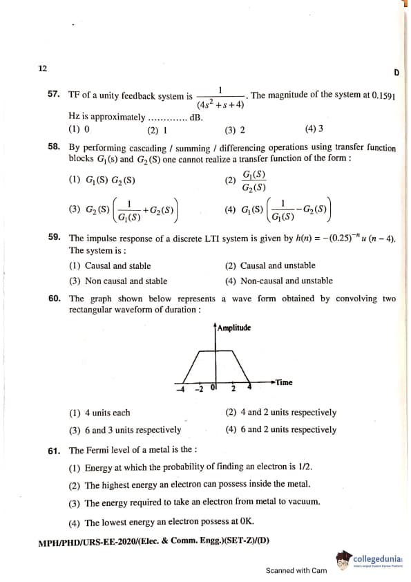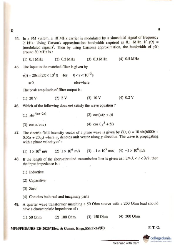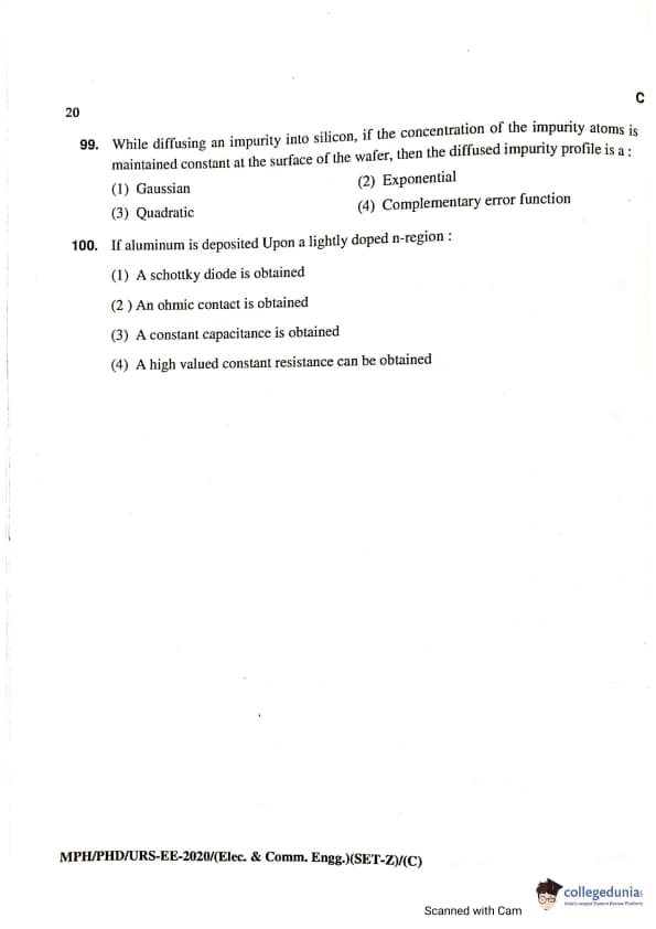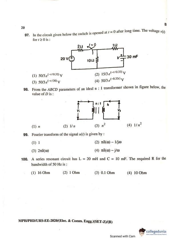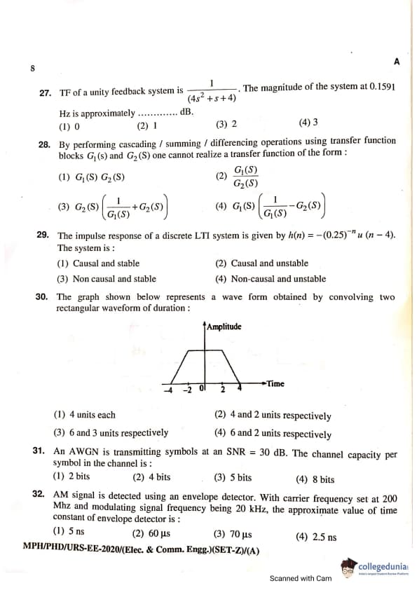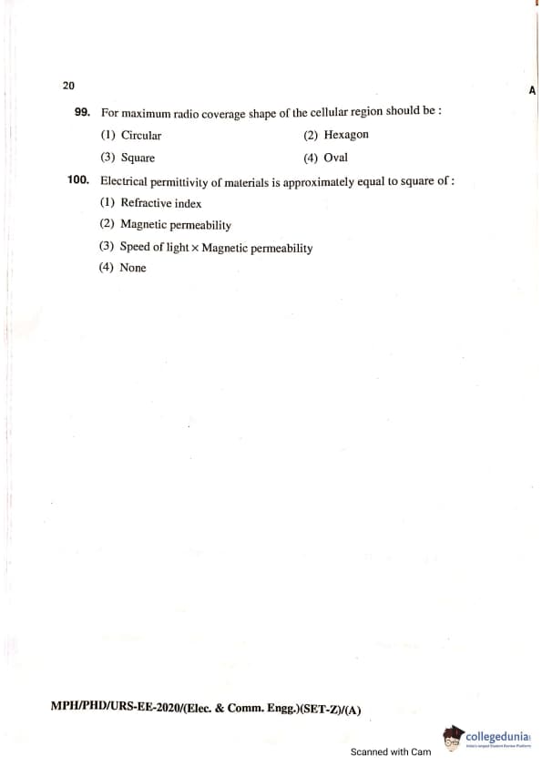 MDUCEE 2020 M.Phil/Ph.D/URS - ECE Question Paper with Answer Key PDFs