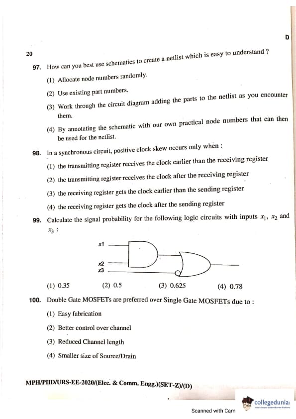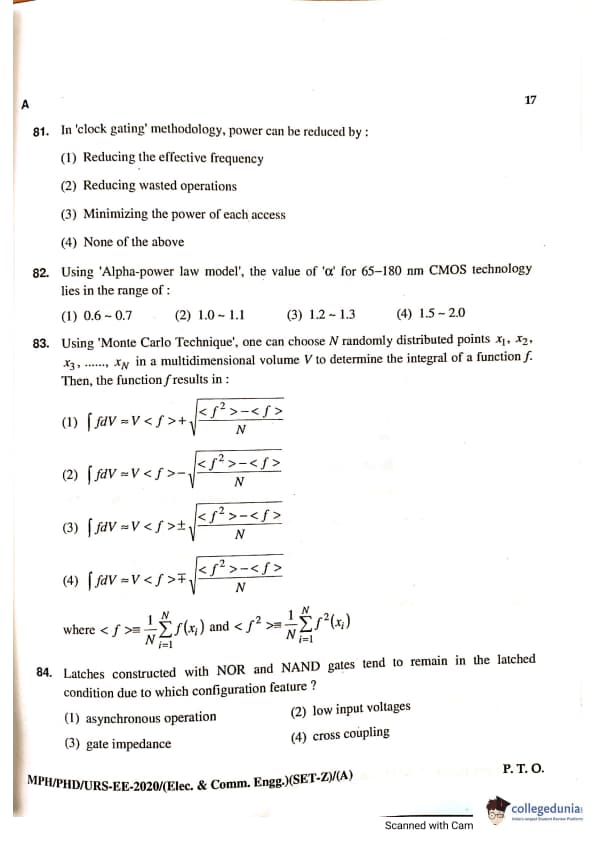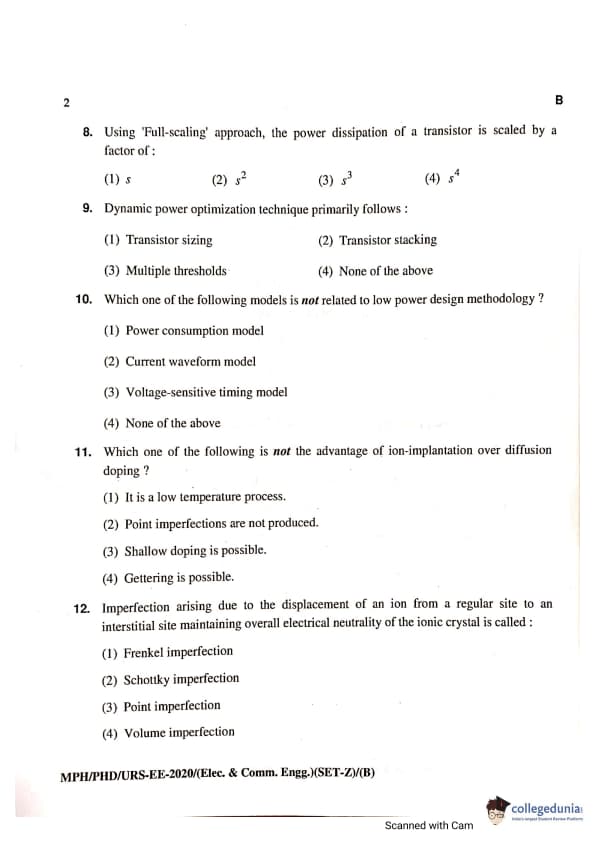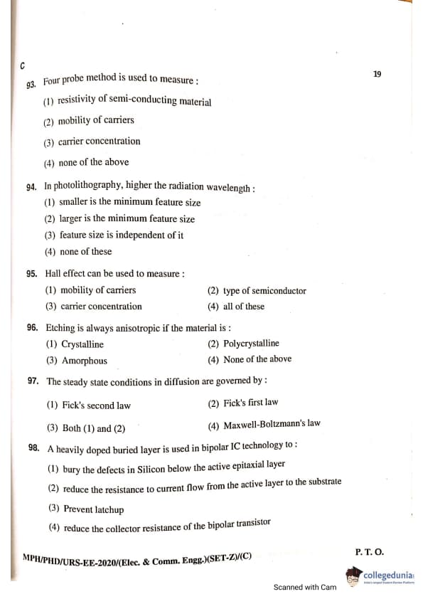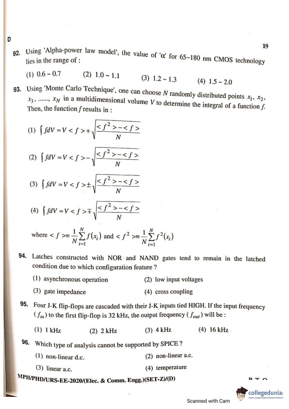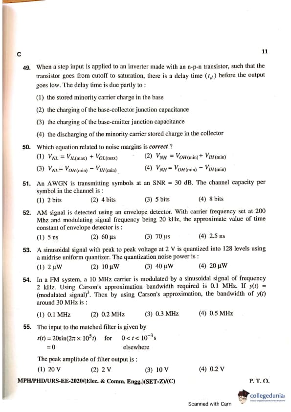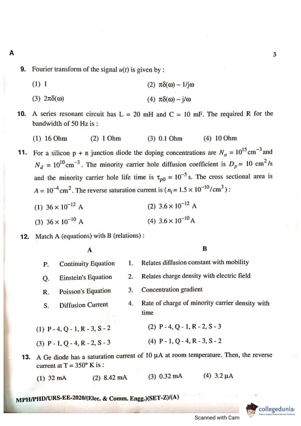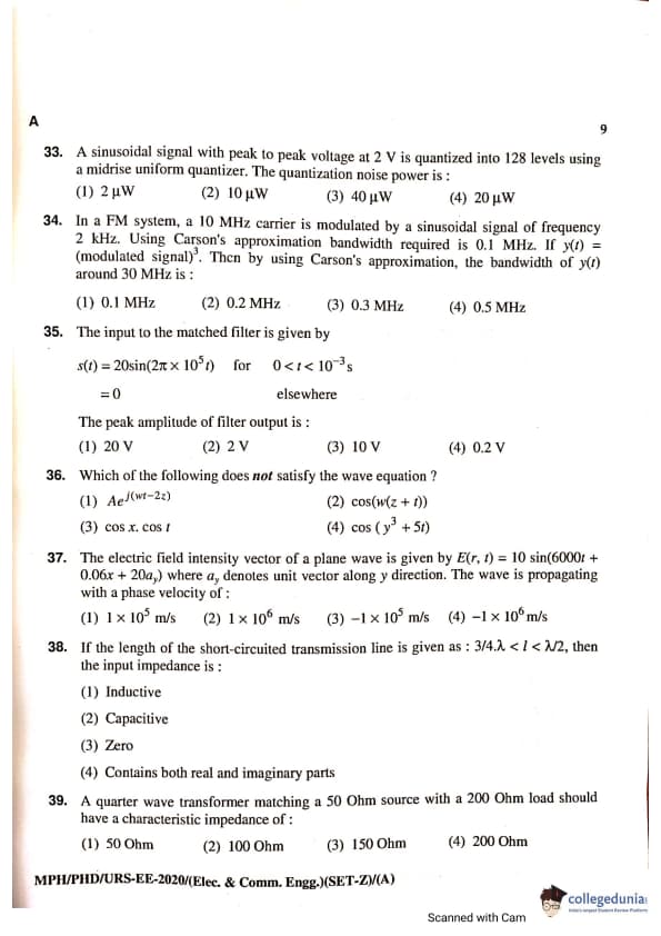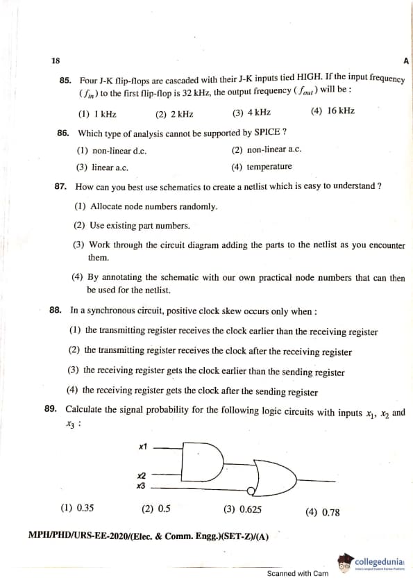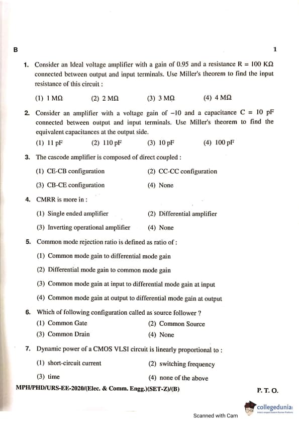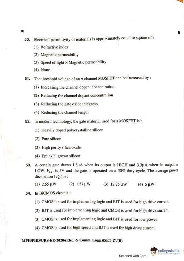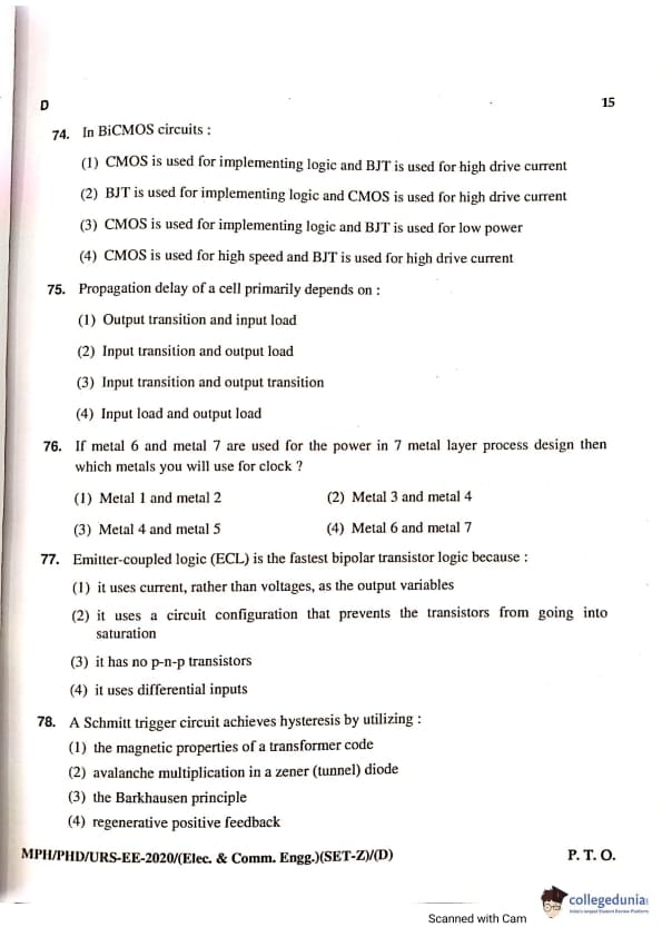 MDUCEE 2020 M.Phil/Ph.D/URS - ECE Question Paper with Answer Key PDFs