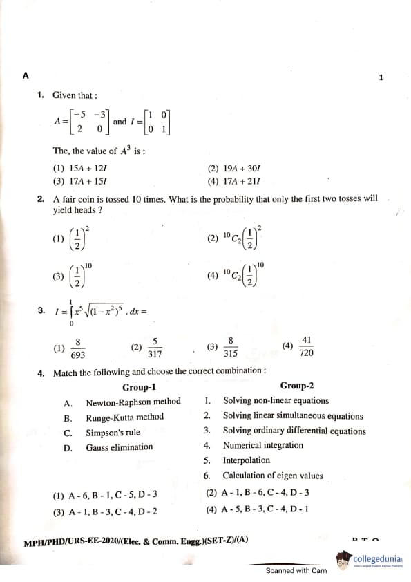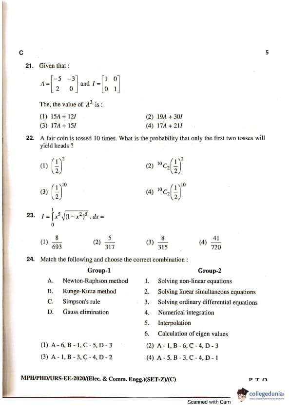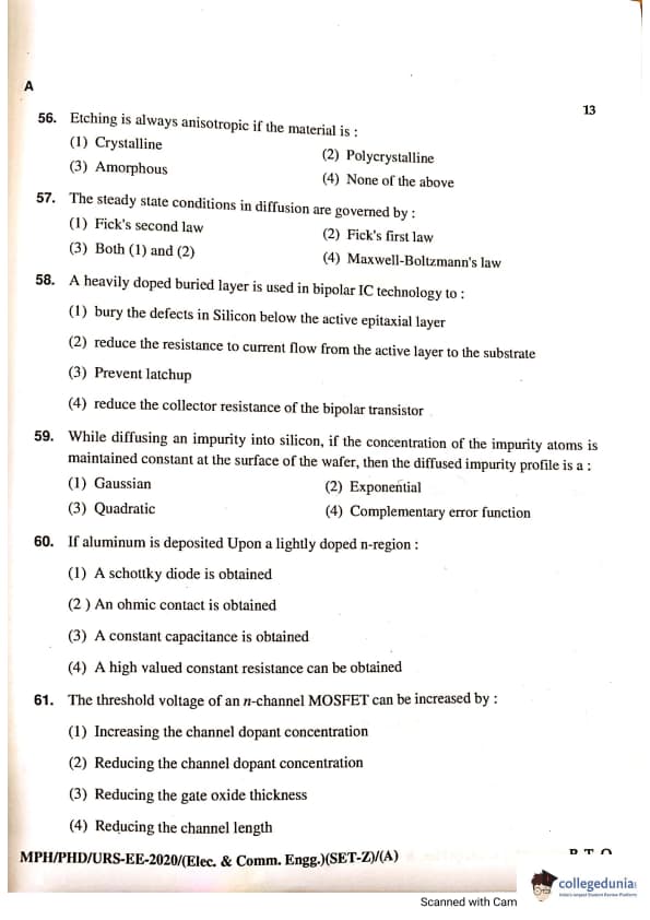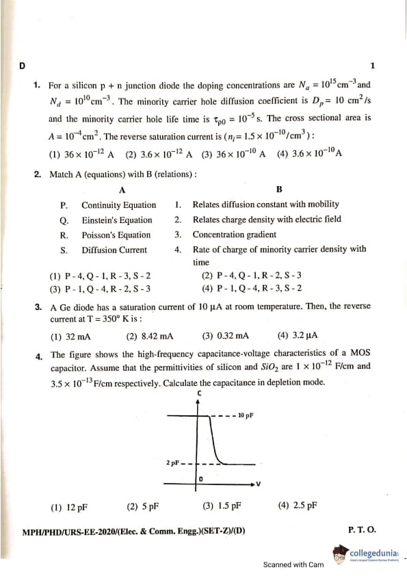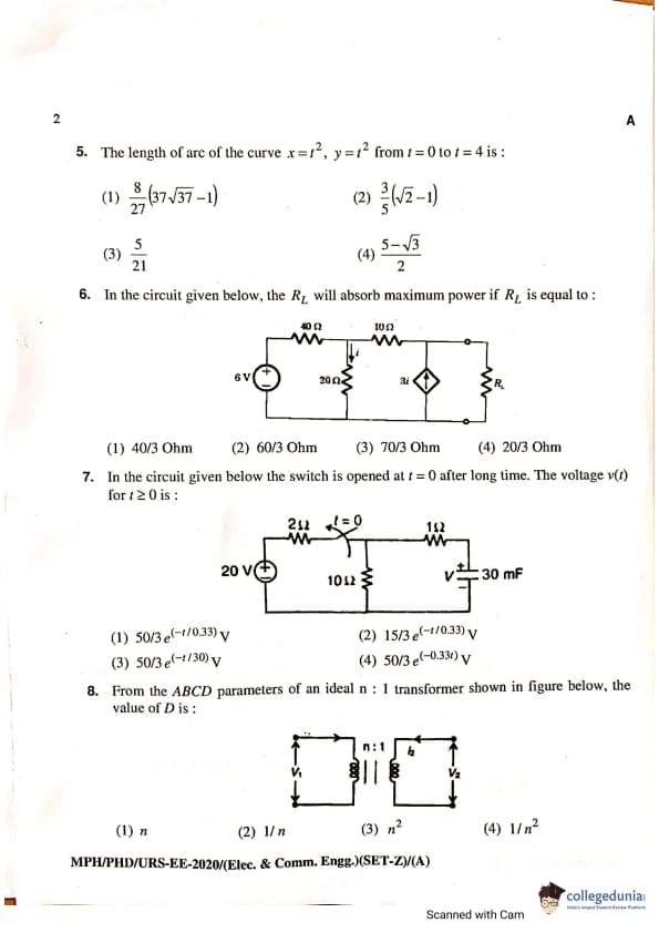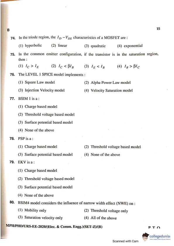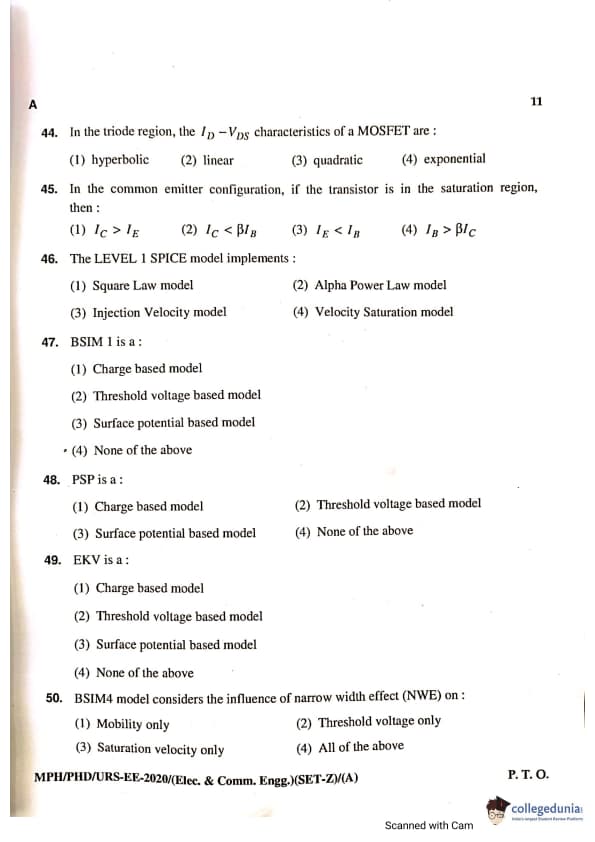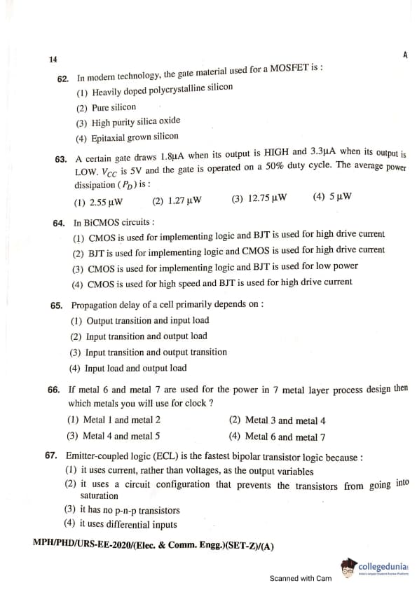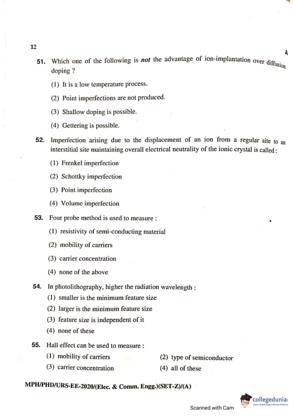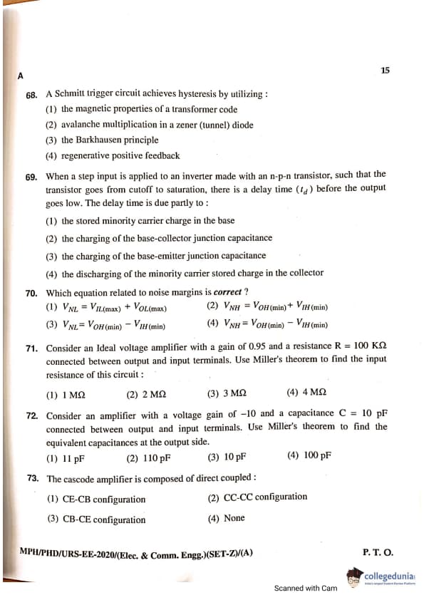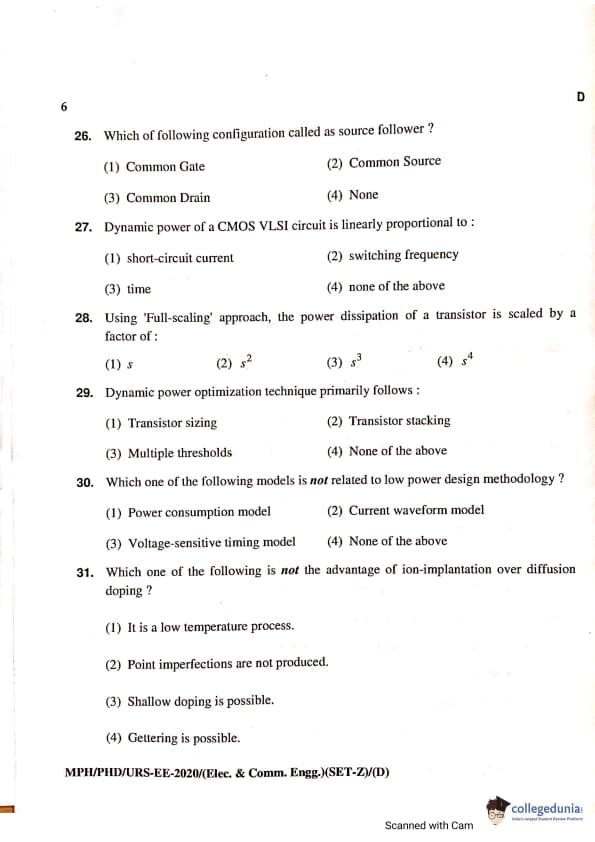 MDUCEE 2020 M.Phil/Ph.D/URS - ECE Question Paper with Answer Key PDFs