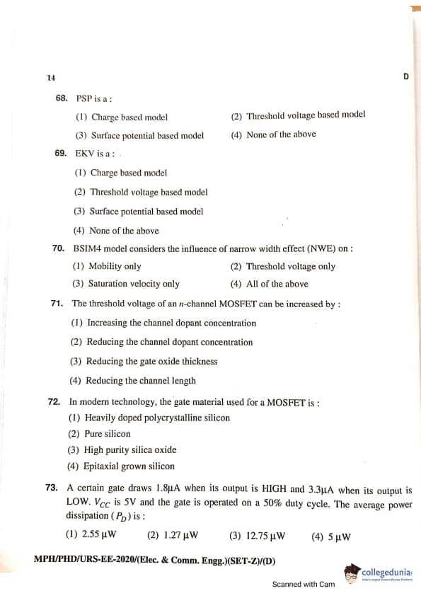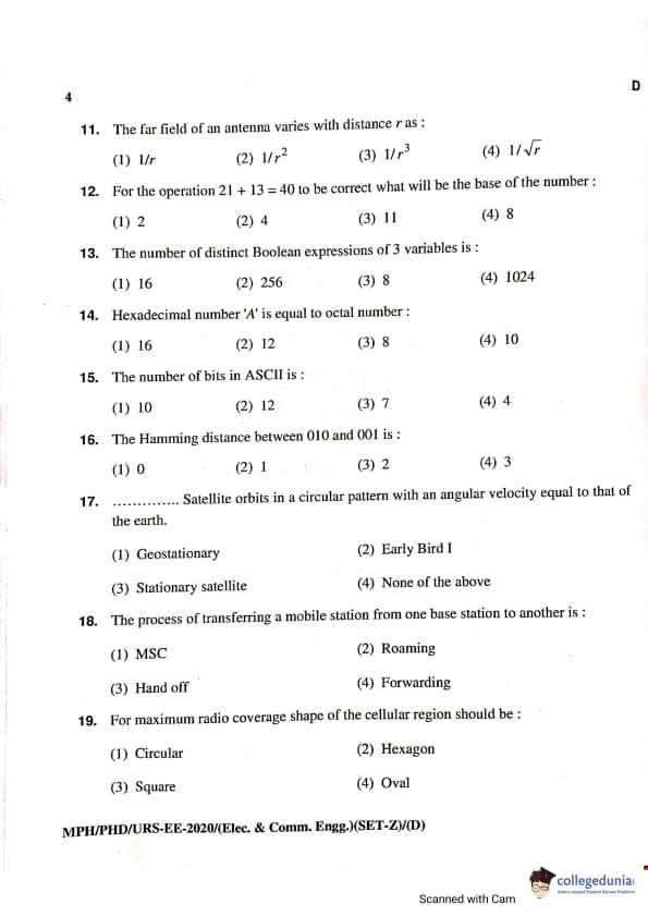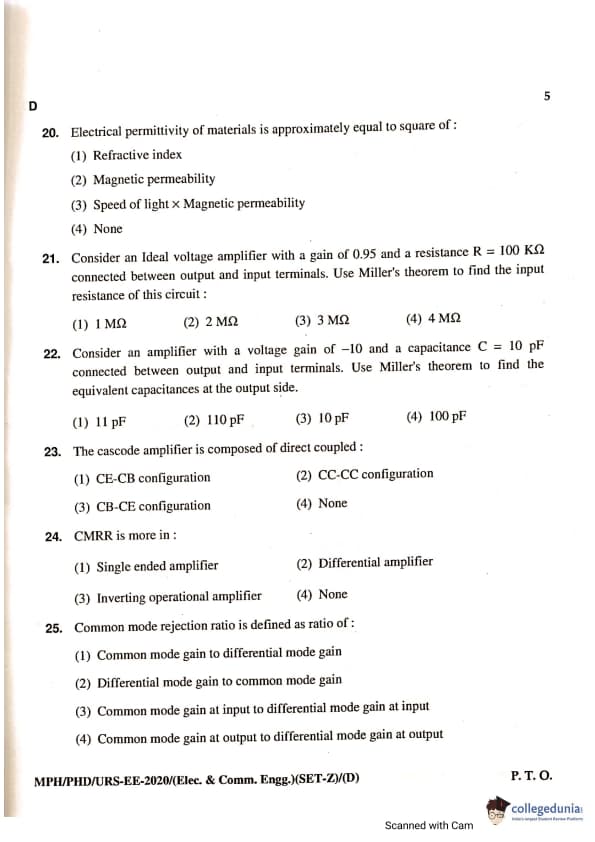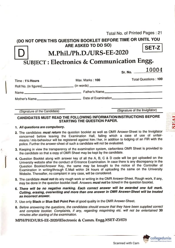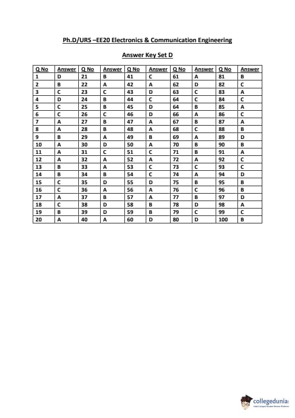 | MDUCEE 2020 M.Phil/Ph.D/URS - Electronics and Communication Engg. Set D Question Paper PDF | MDUCEE 2020 M.Phil/Ph.D/URS - Electronics and Communication Engg. Set D Answer Key PDF |