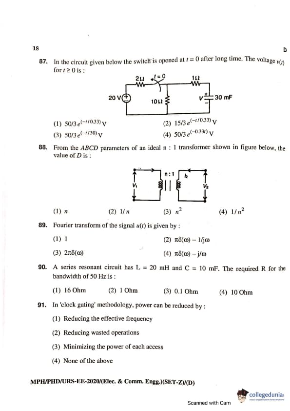 MDUCEE 2020 M.Phil/Ph.D/URS - Electronics and Communication Engg. Set D Question Paper with Answer Key PDFs