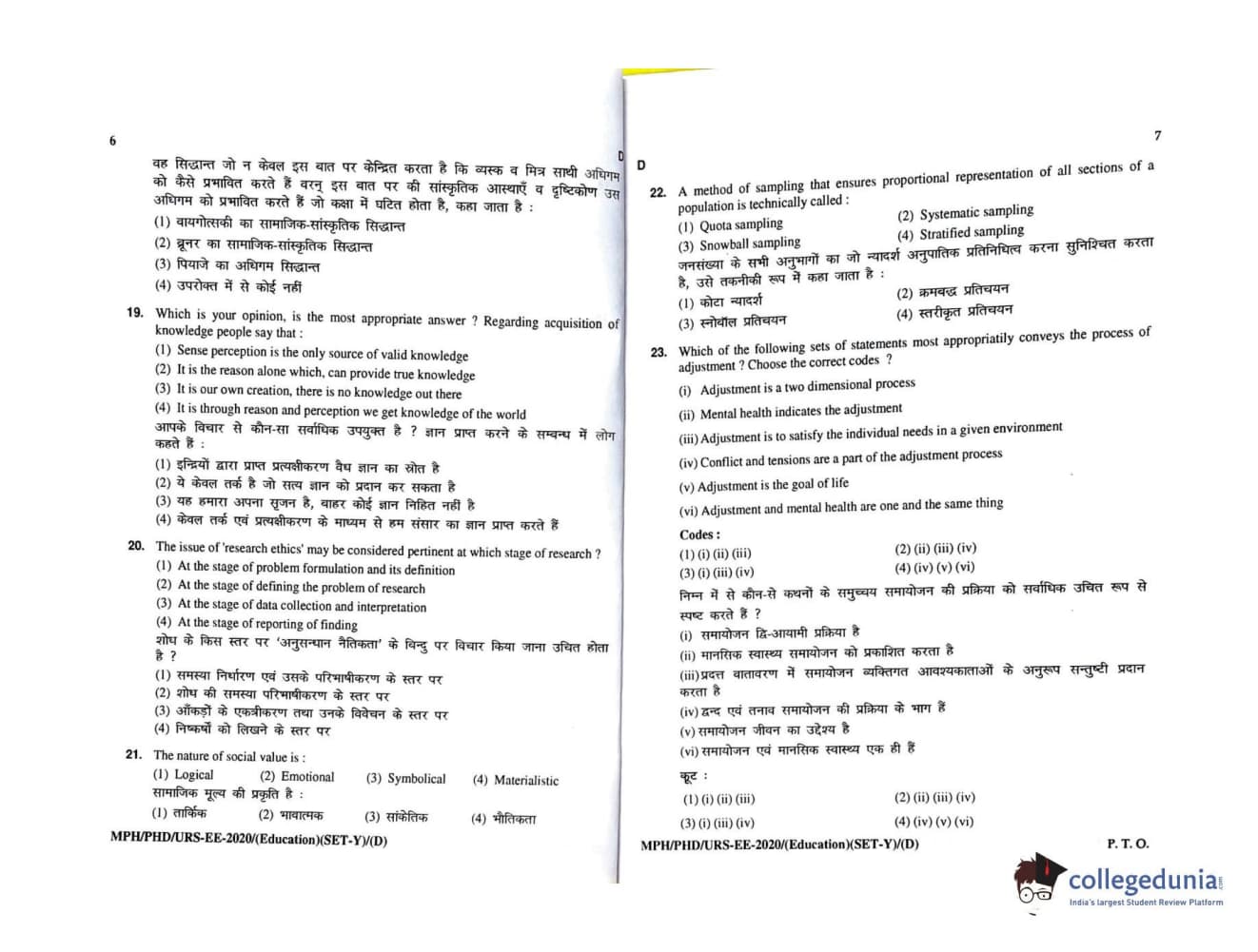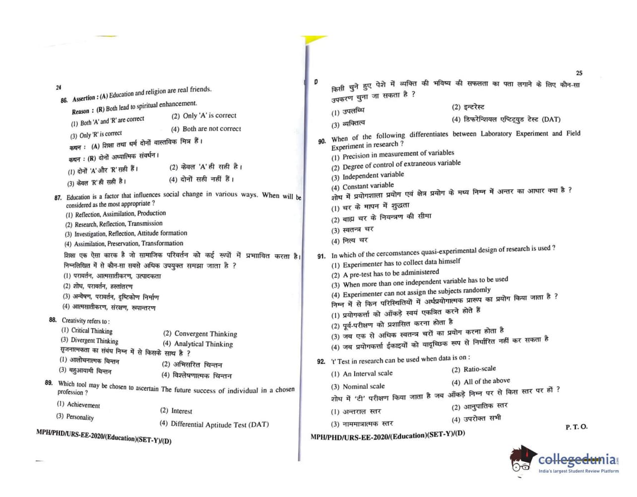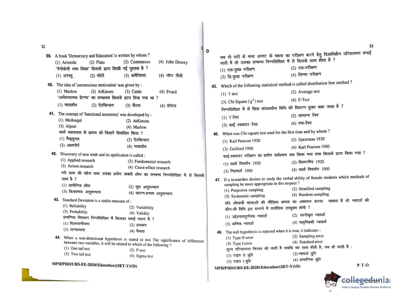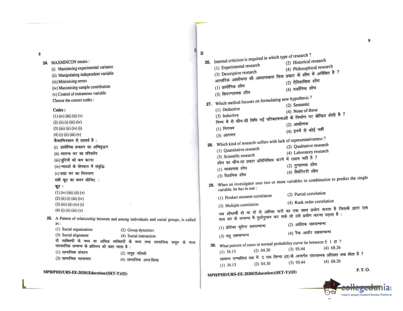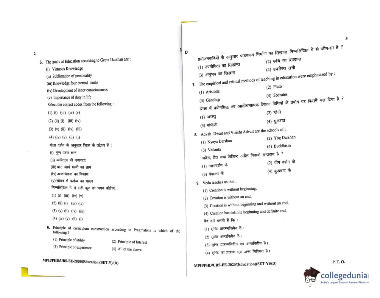 MDUCEE 2020 M.Phil/Ph.D/URS - Education Set D Question Paper with Answer Key PDFs