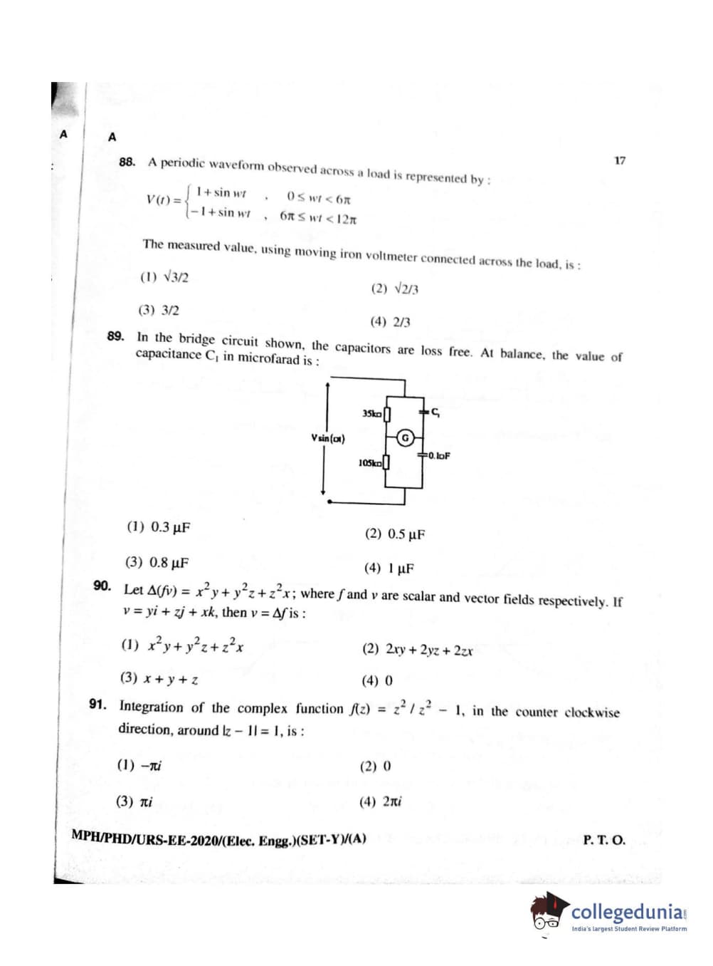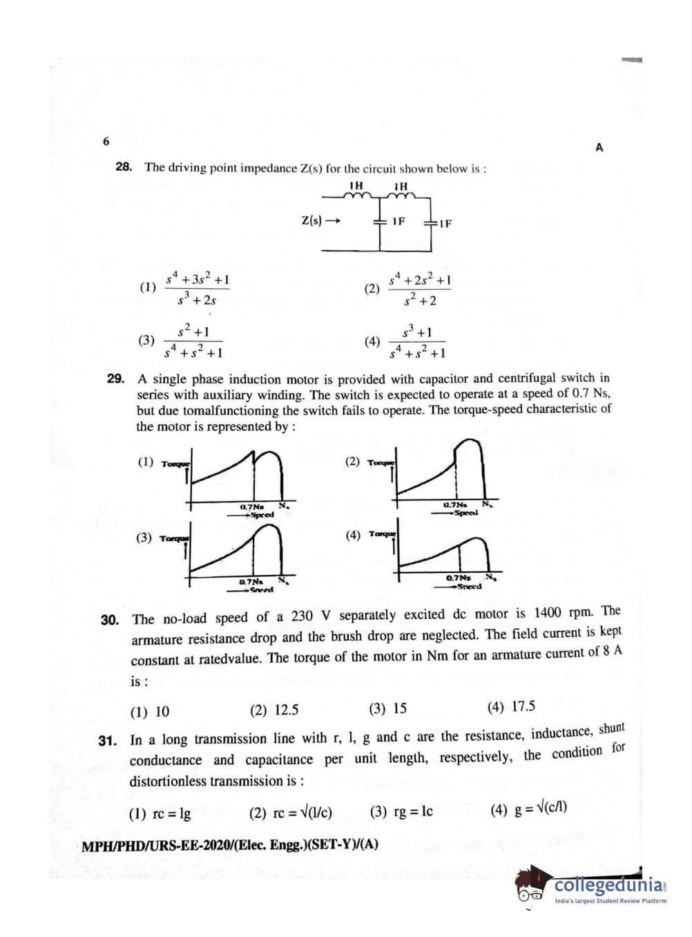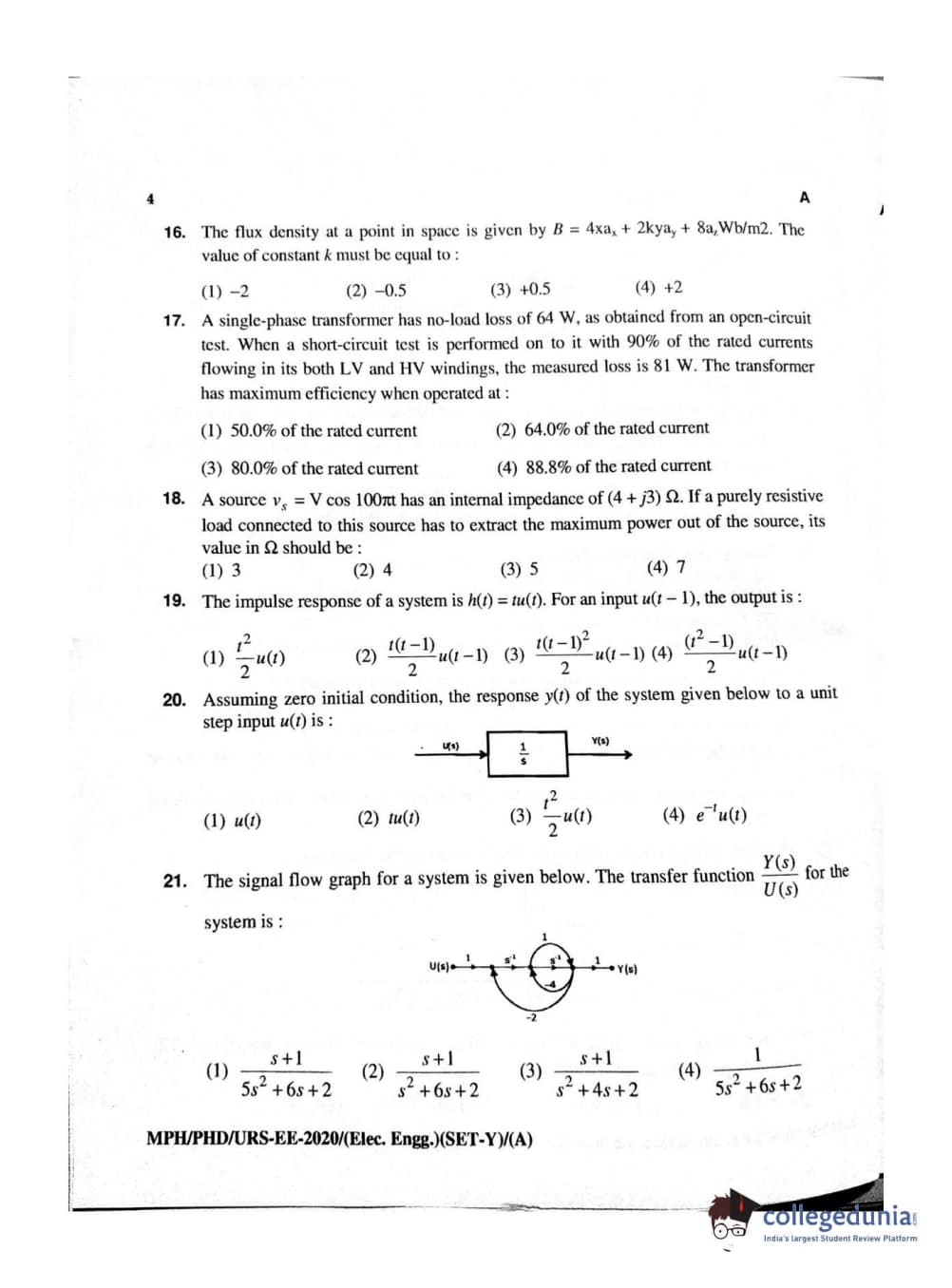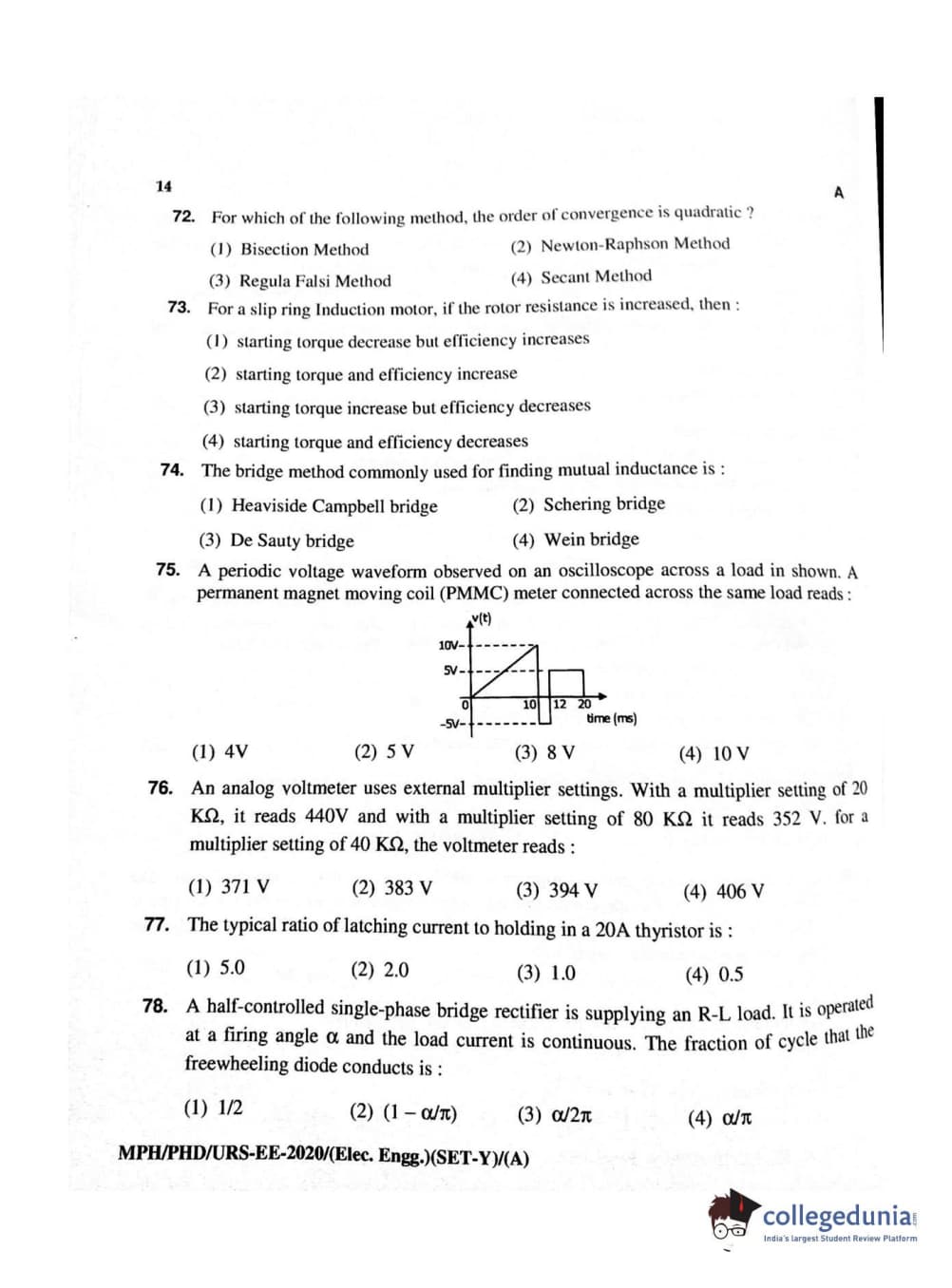 MDUCEE 2020 M.Phil/Ph.D/URS - Electrical Engineering Set A Question Paper with Answer Key PDFs