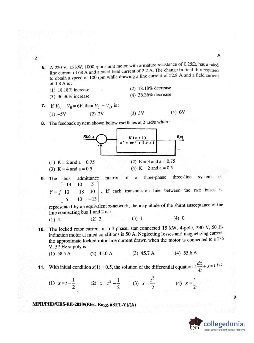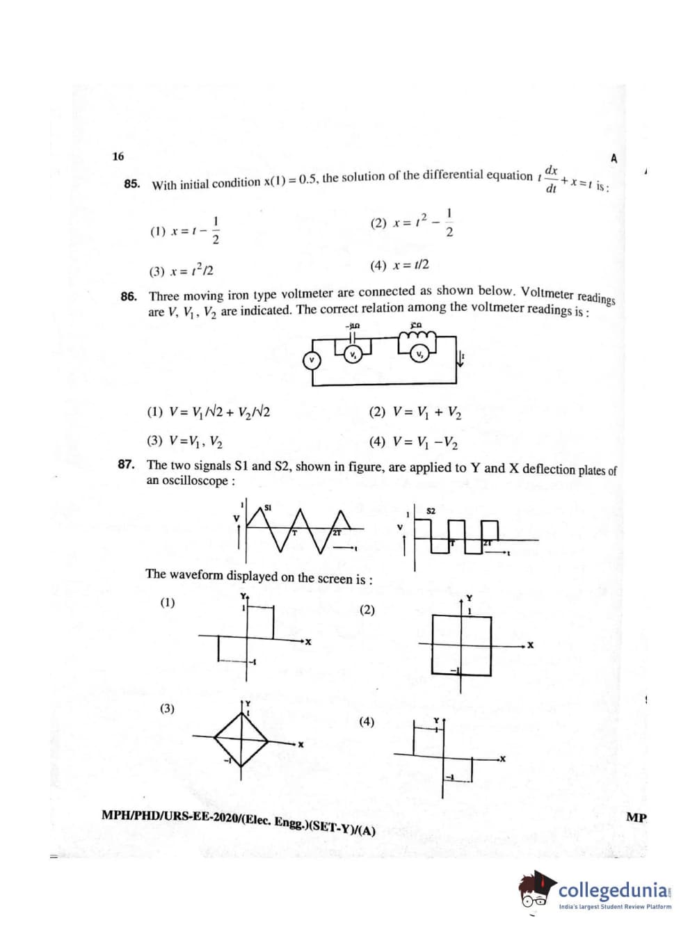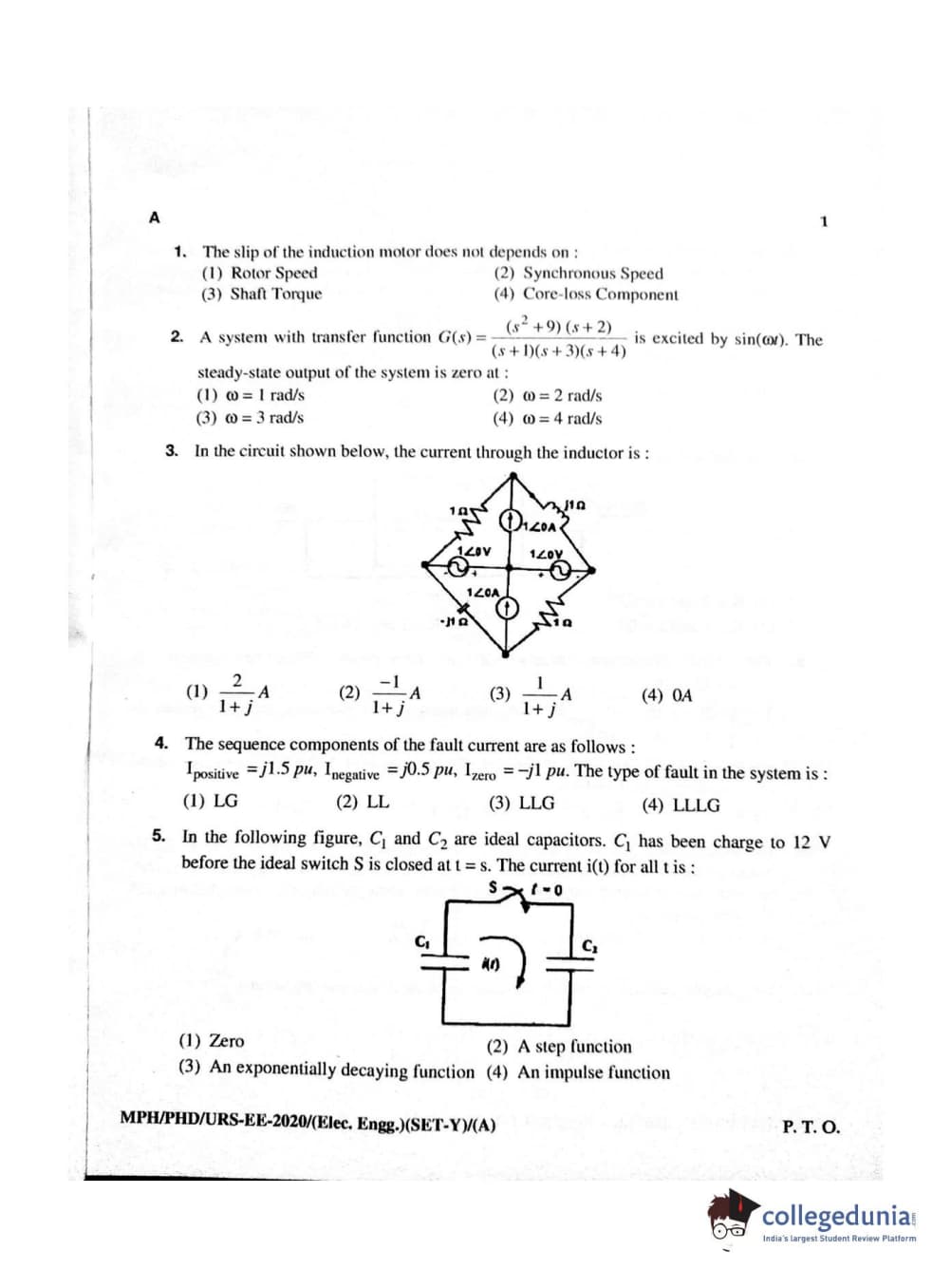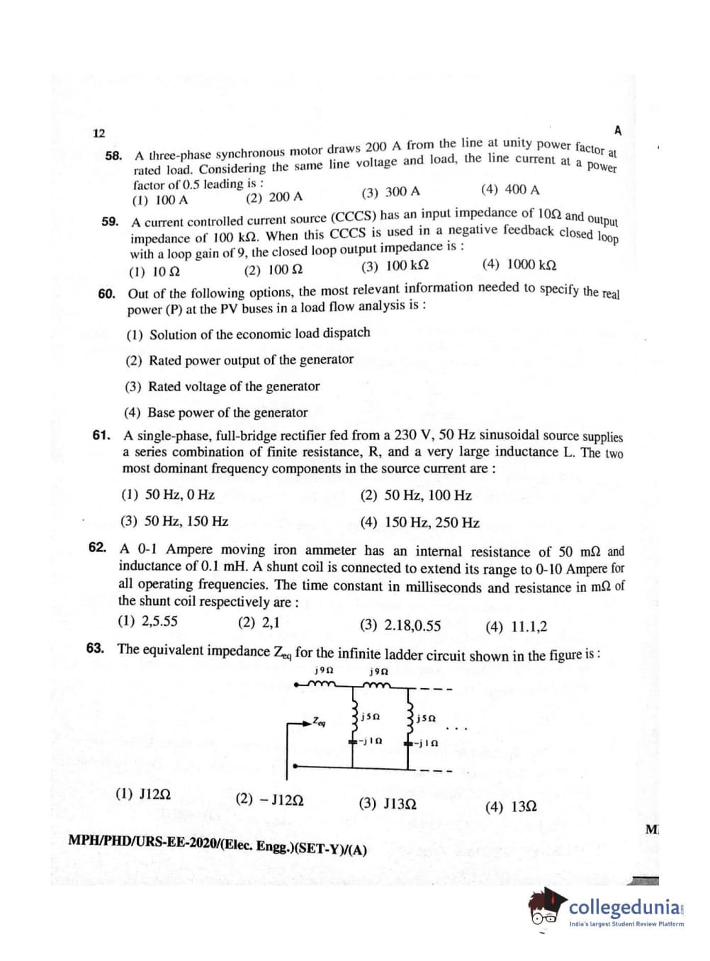 MDUCEE 2020 M.Phil/Ph.D/URS - Electrical Engineering Set A Question Paper with Answer Key PDFs