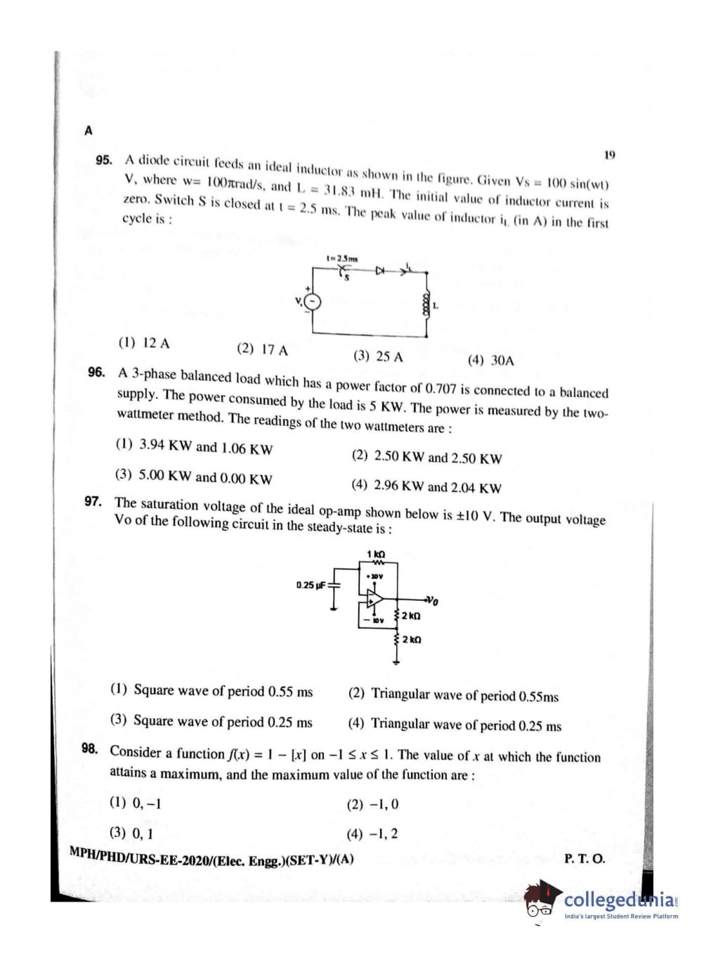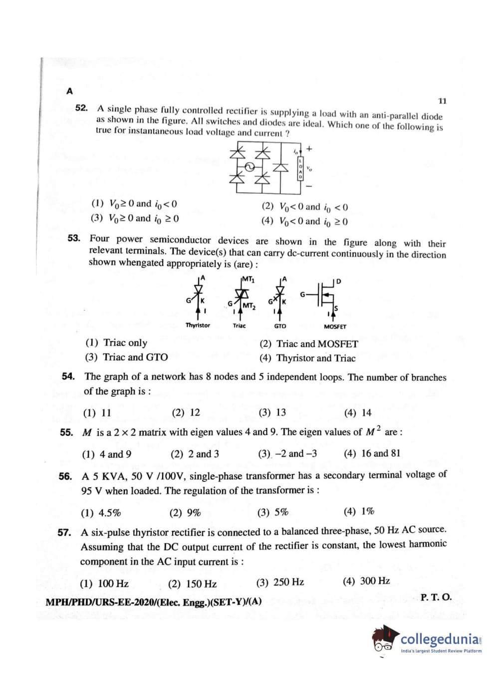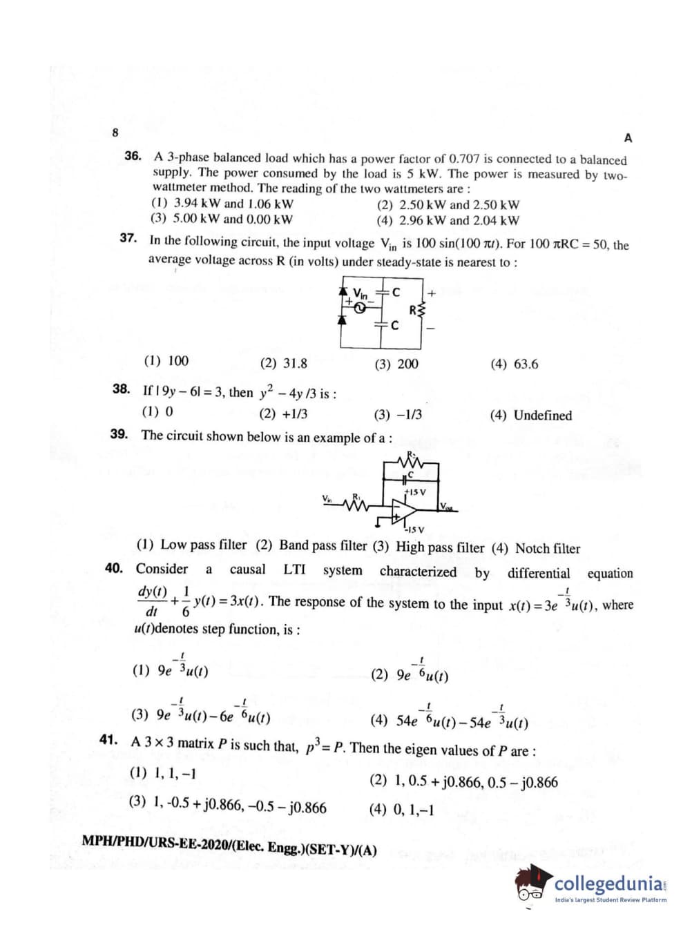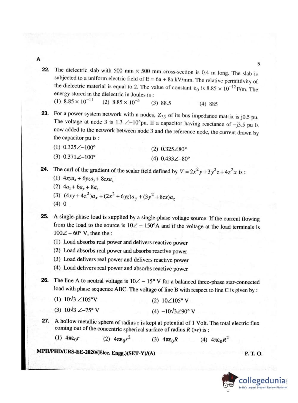 MDUCEE 2020 M.Phil/Ph.D/URS - Electrical Engineering Set A Question Paper with Answer Key PDFs