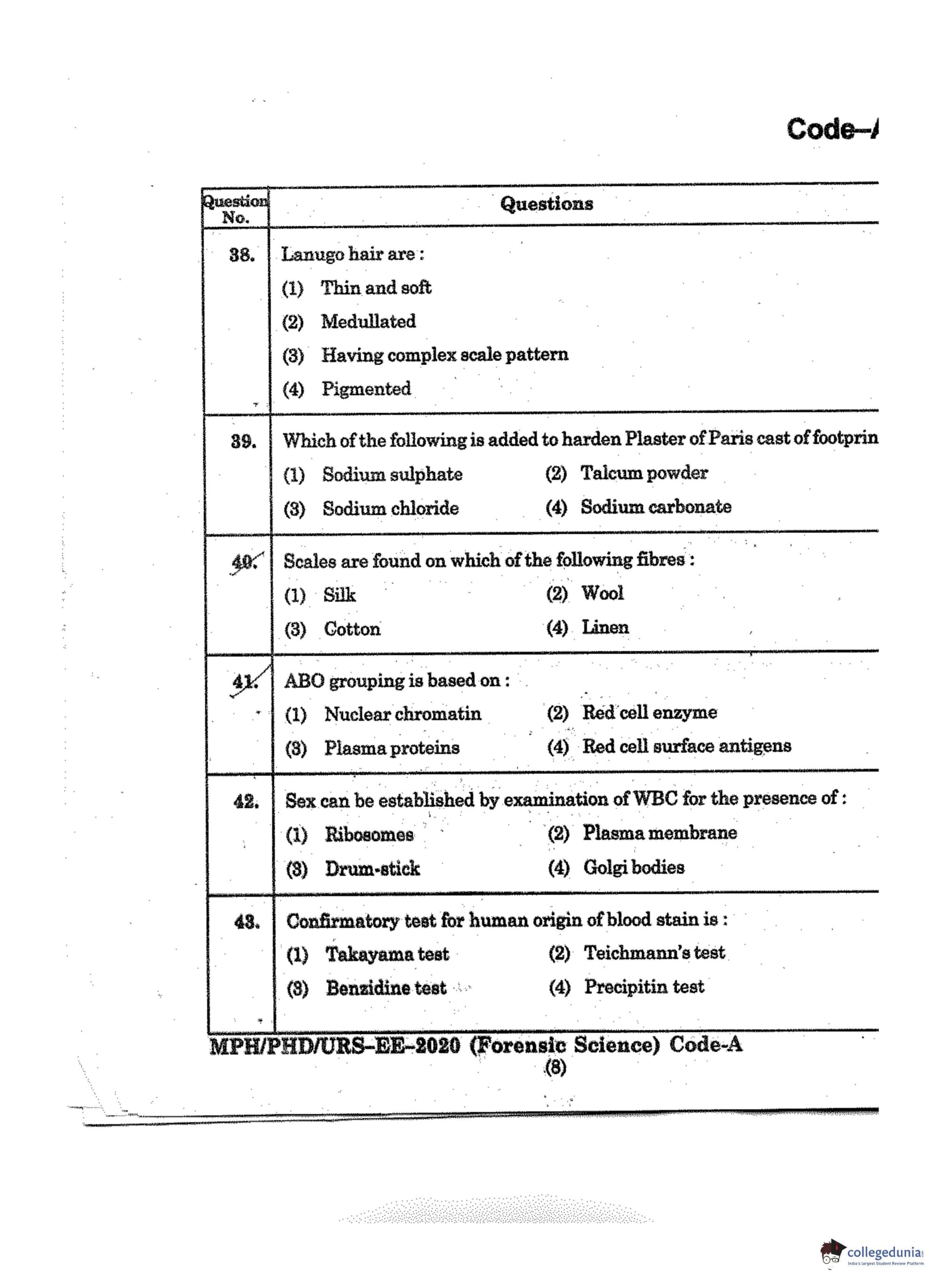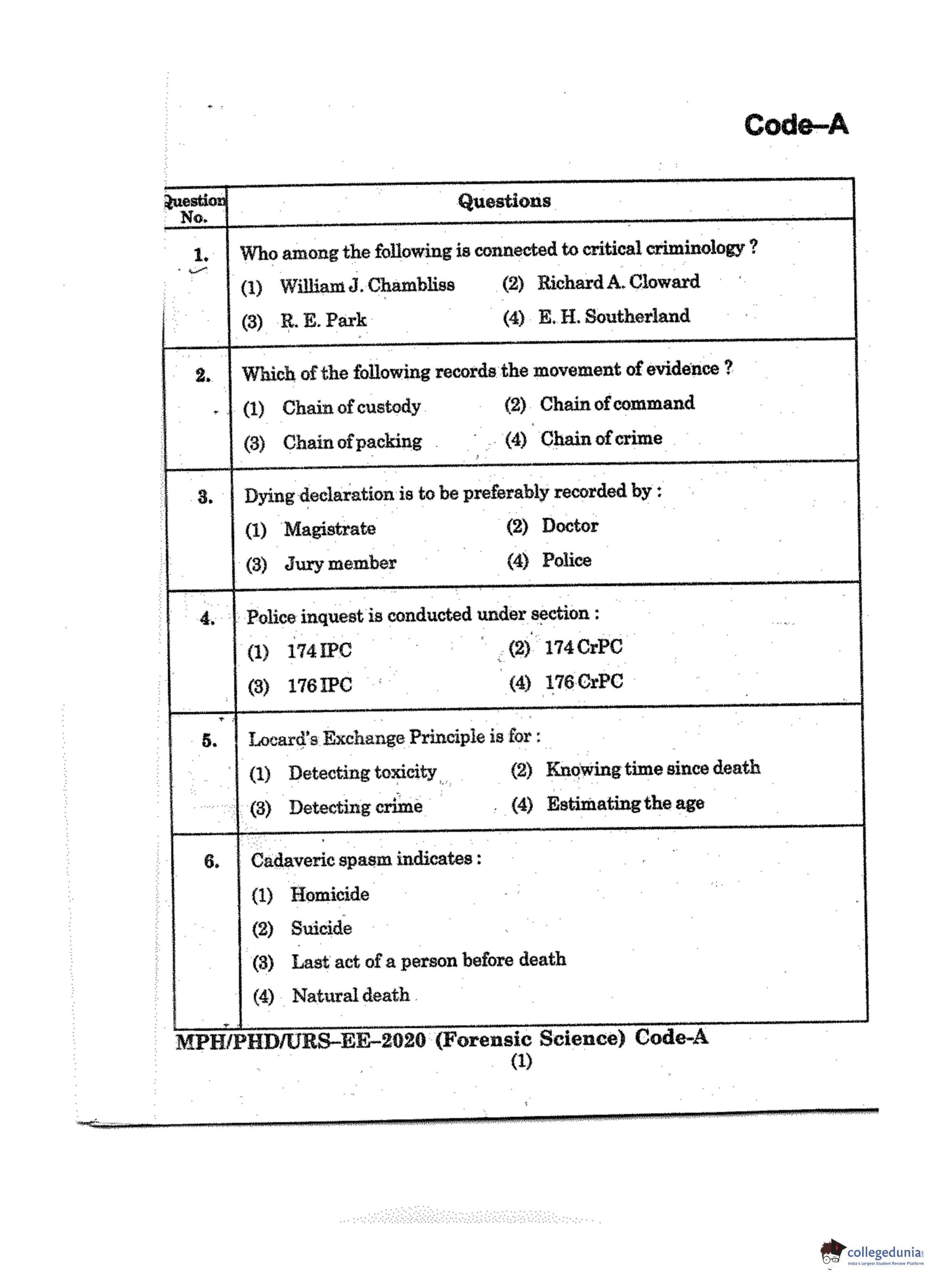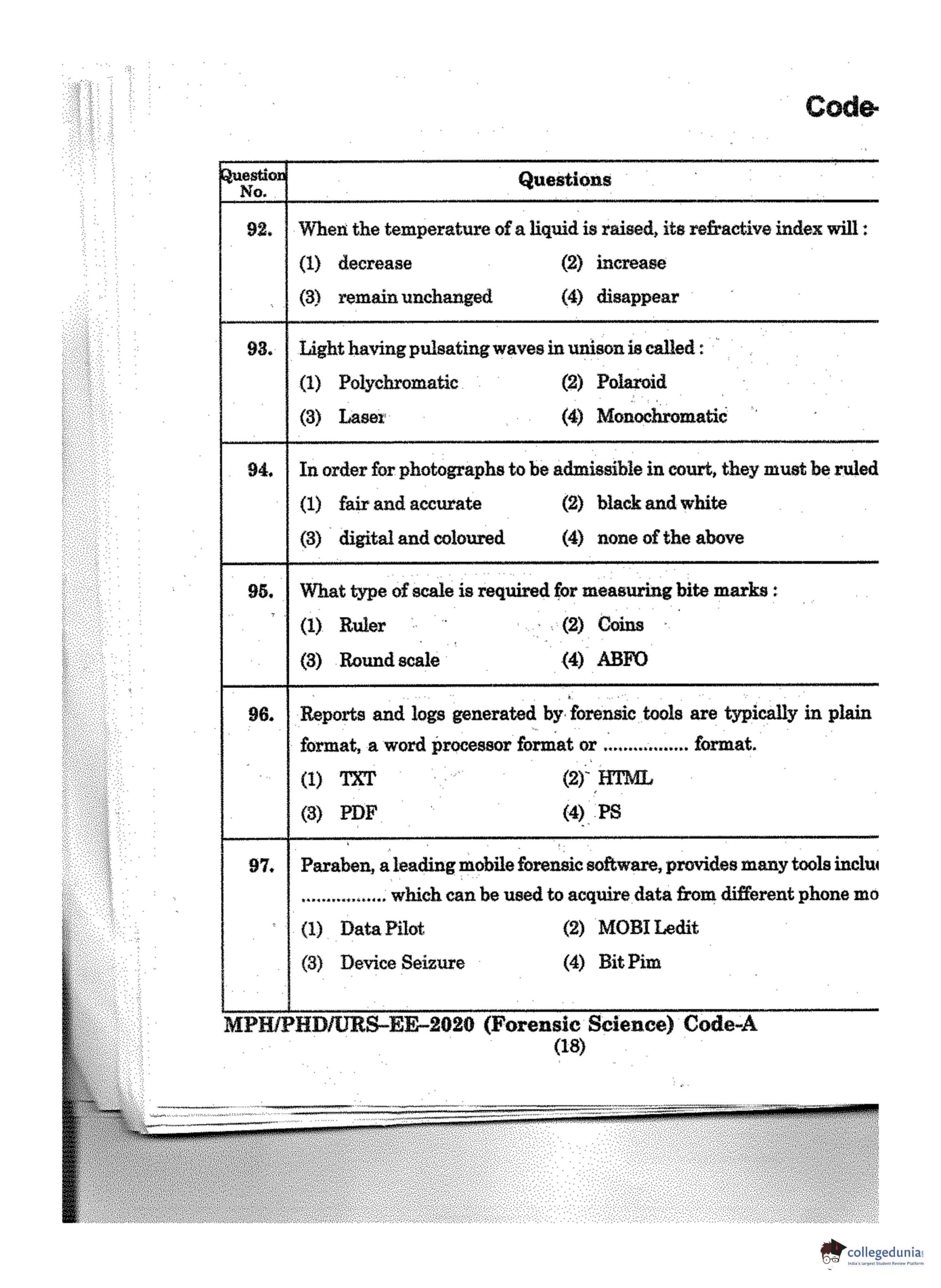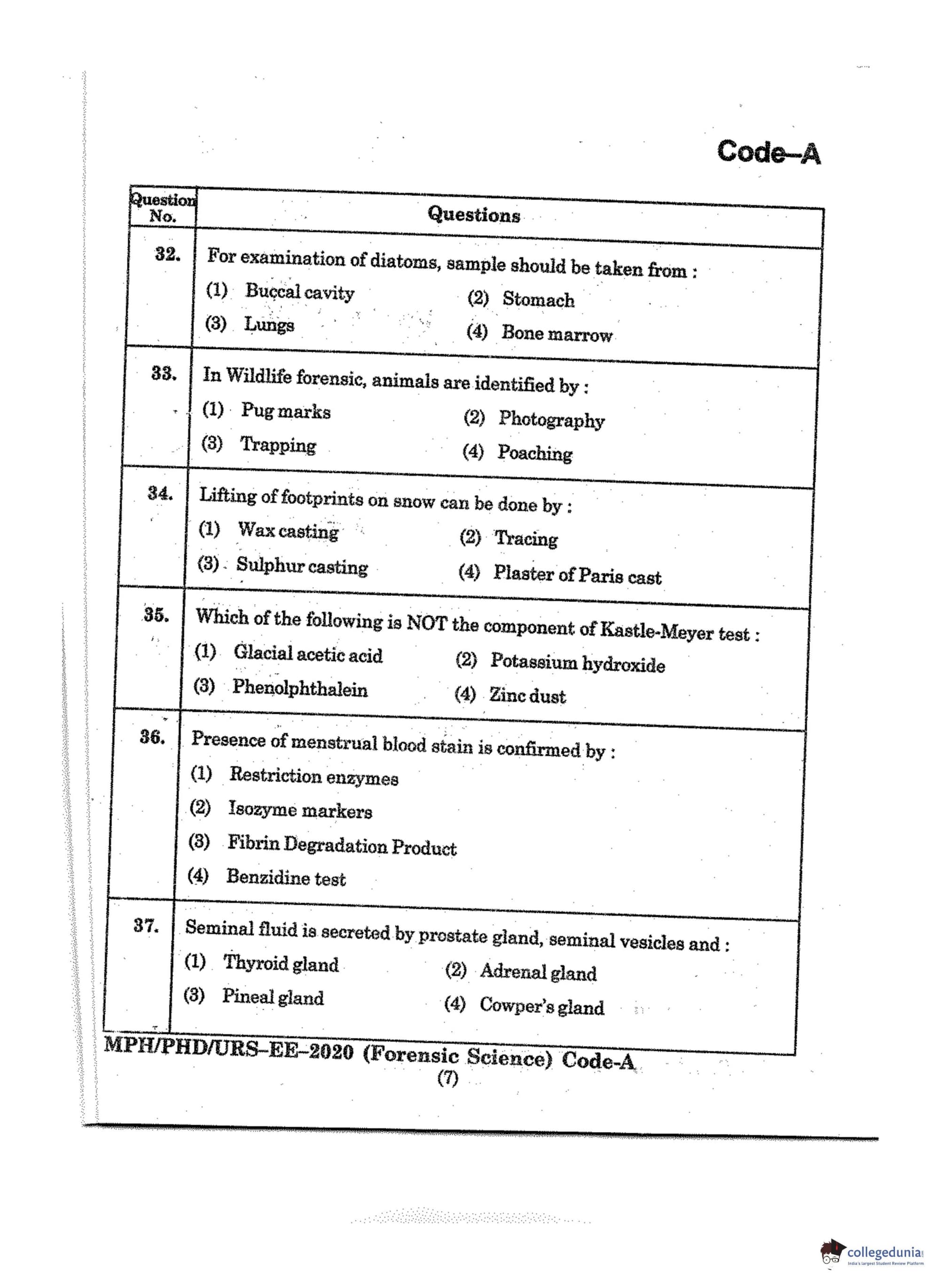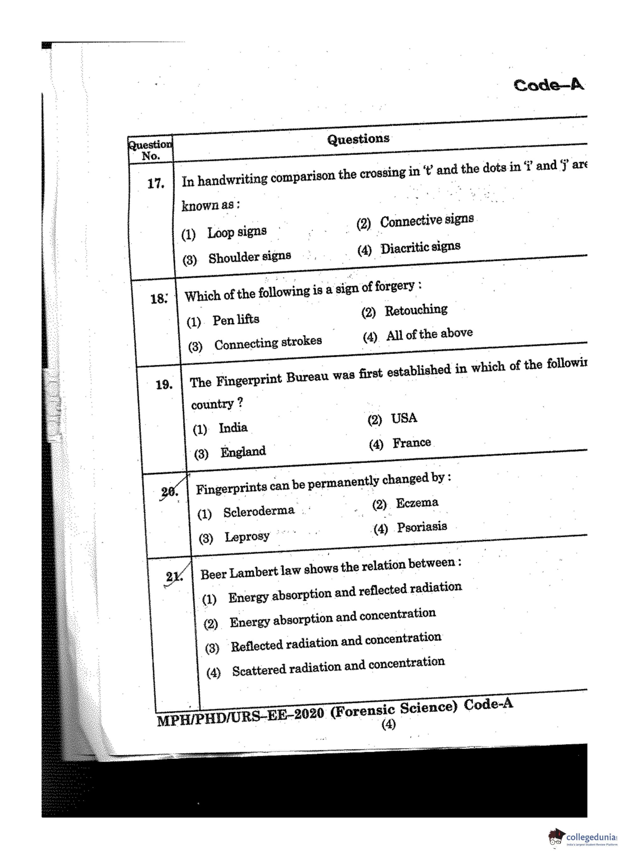 MDUCEE 2020 M.Phil/Ph.D/URS - Forensic Science Set A Question Paper with Answer Key PDFs