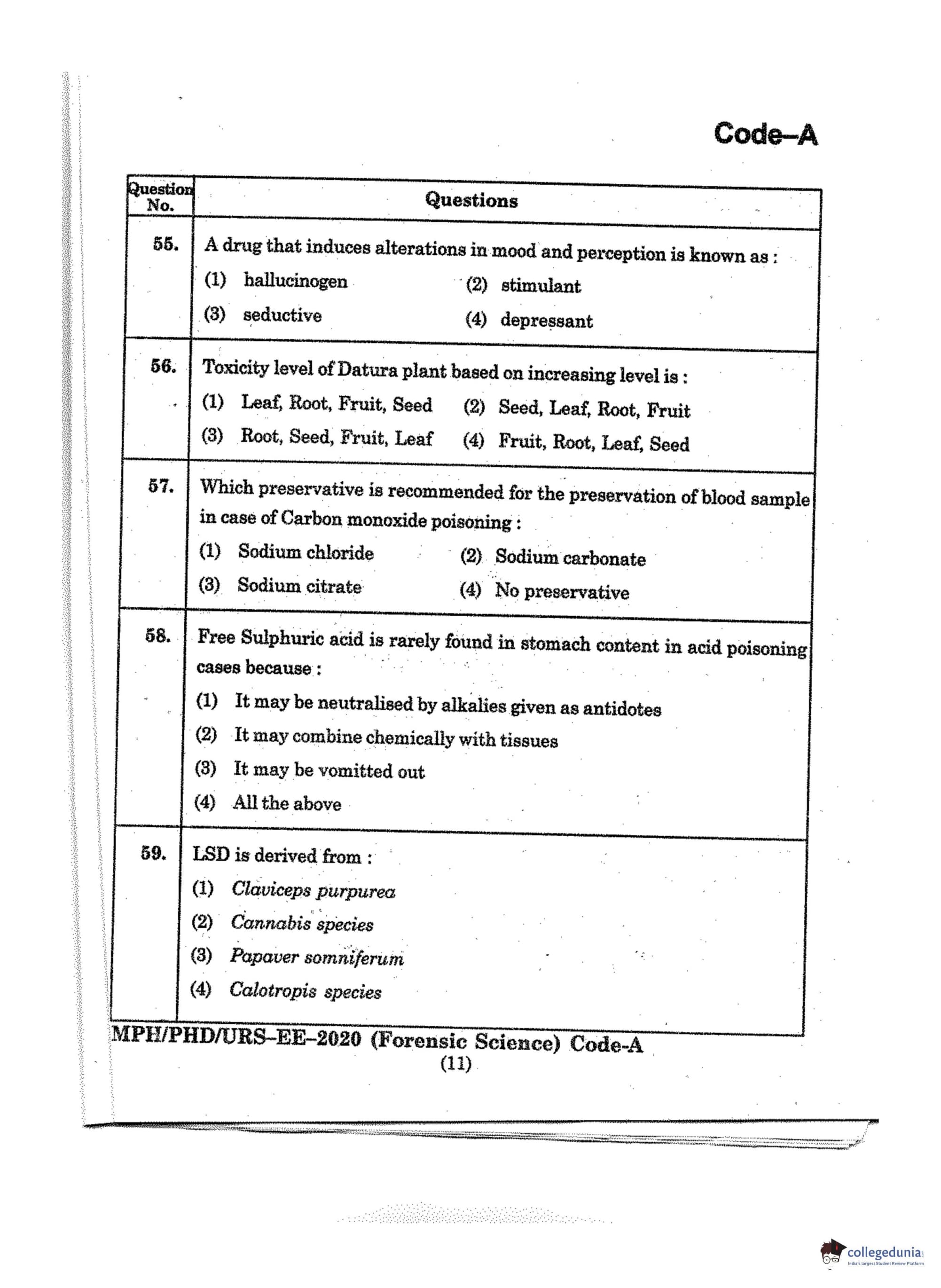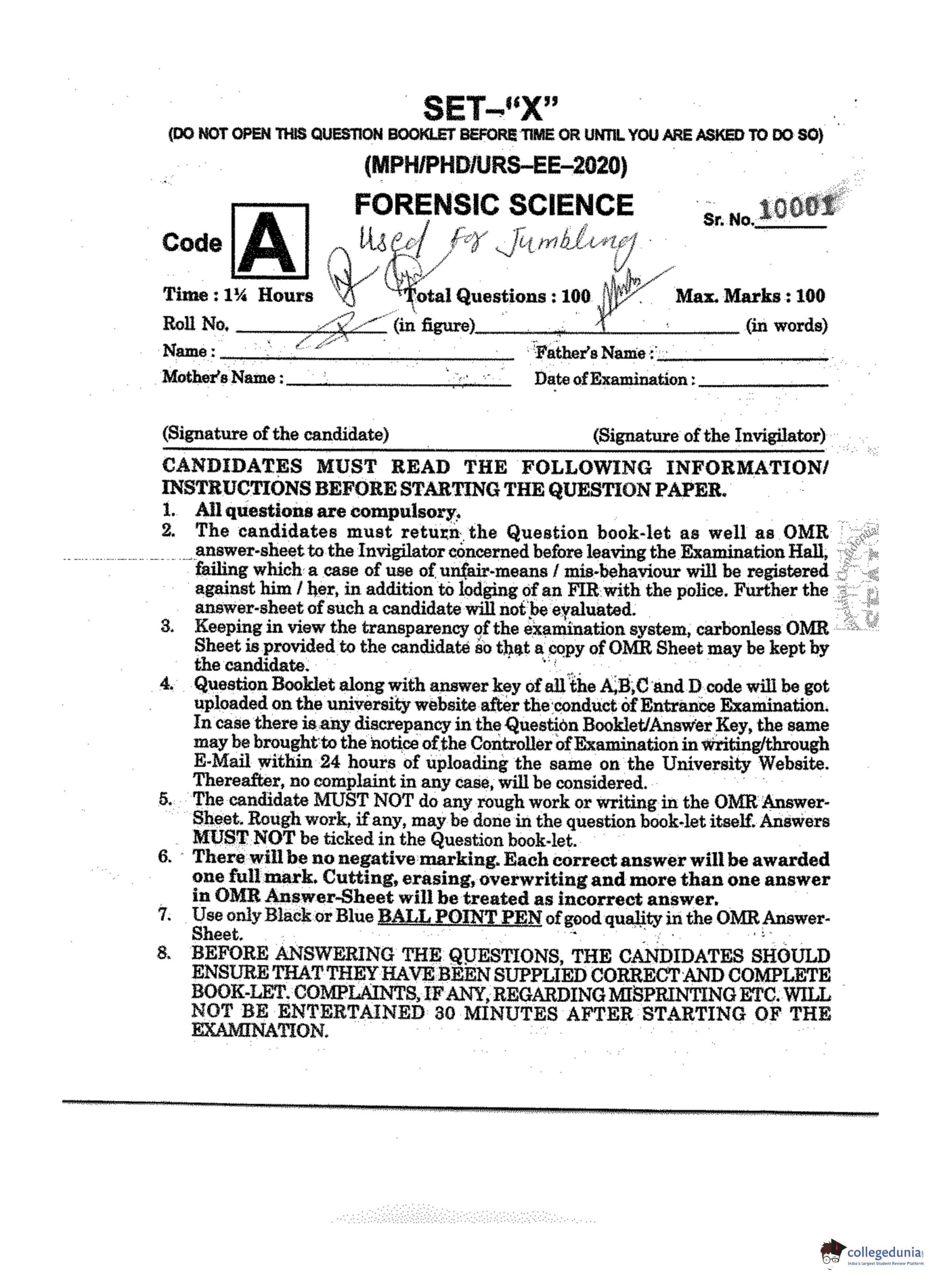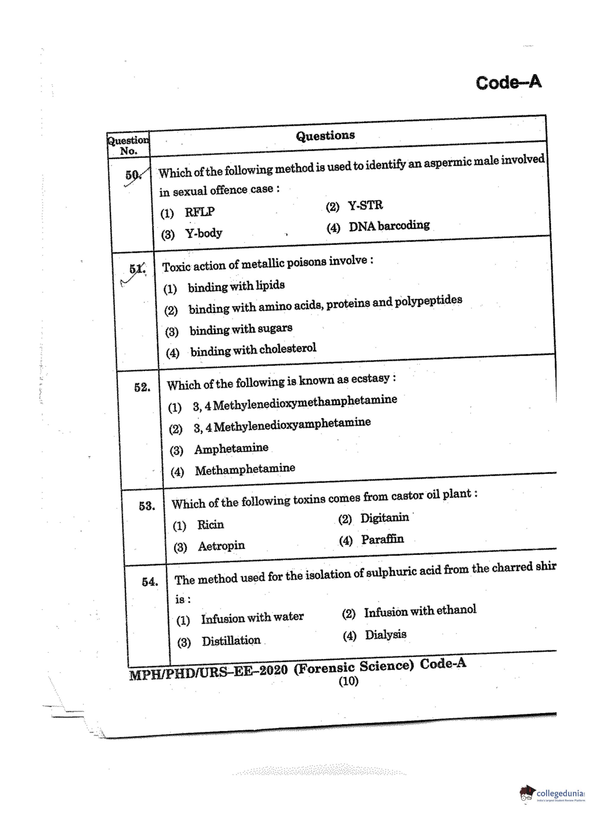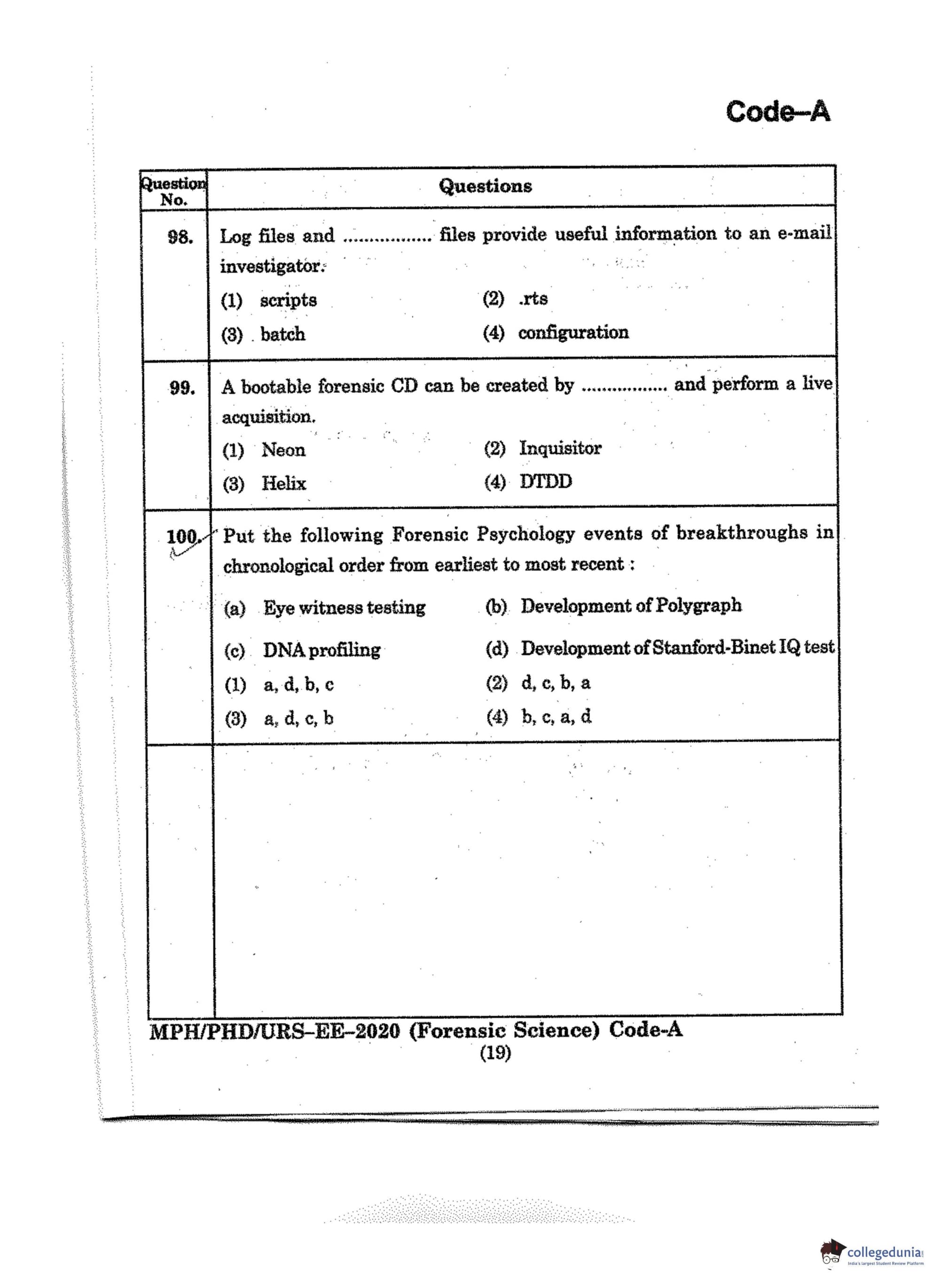 MDUCEE 2020 M.Phil/Ph.D/URS - Forensic Science Set A Question Paper with Answer Key PDFs