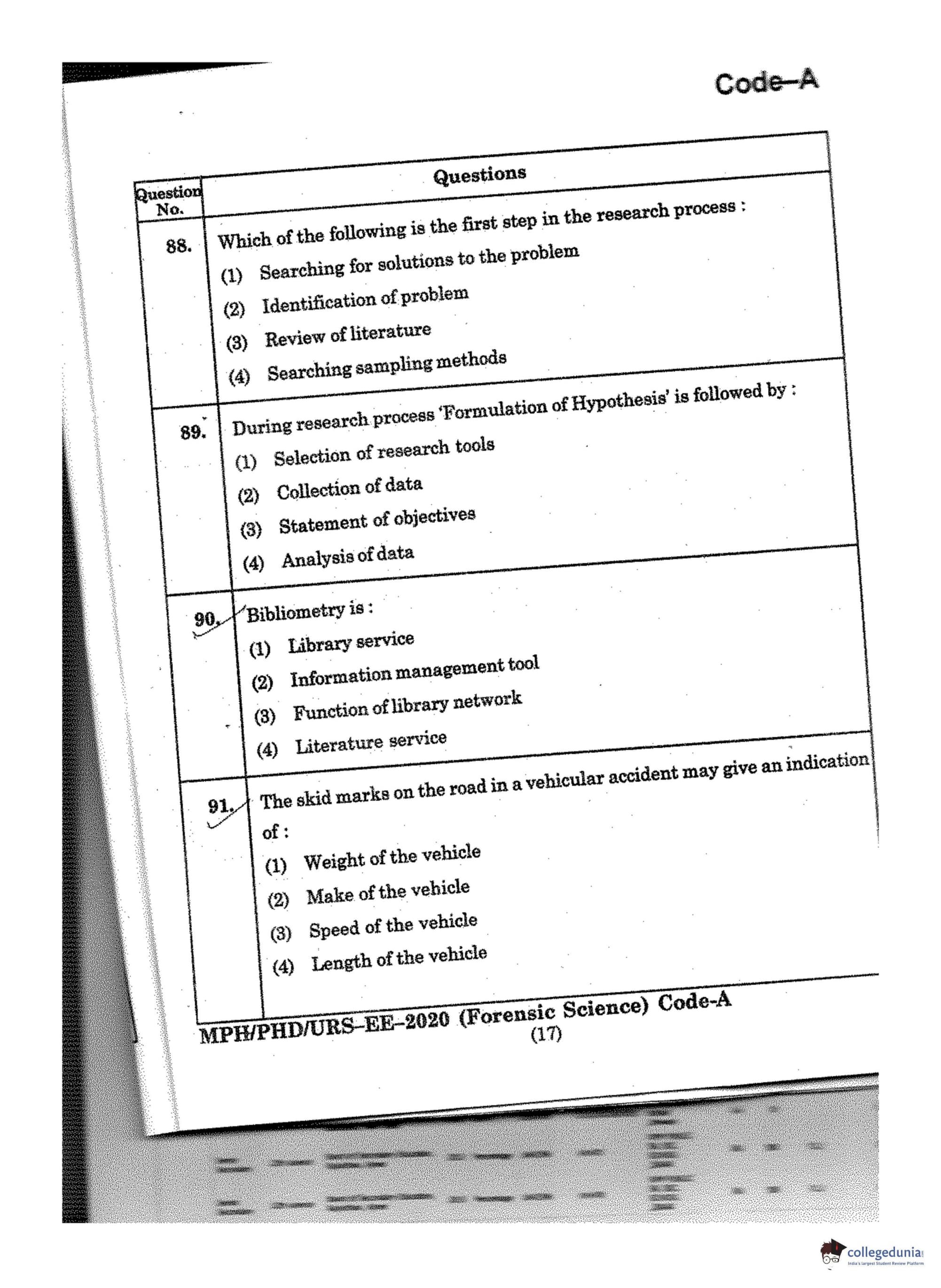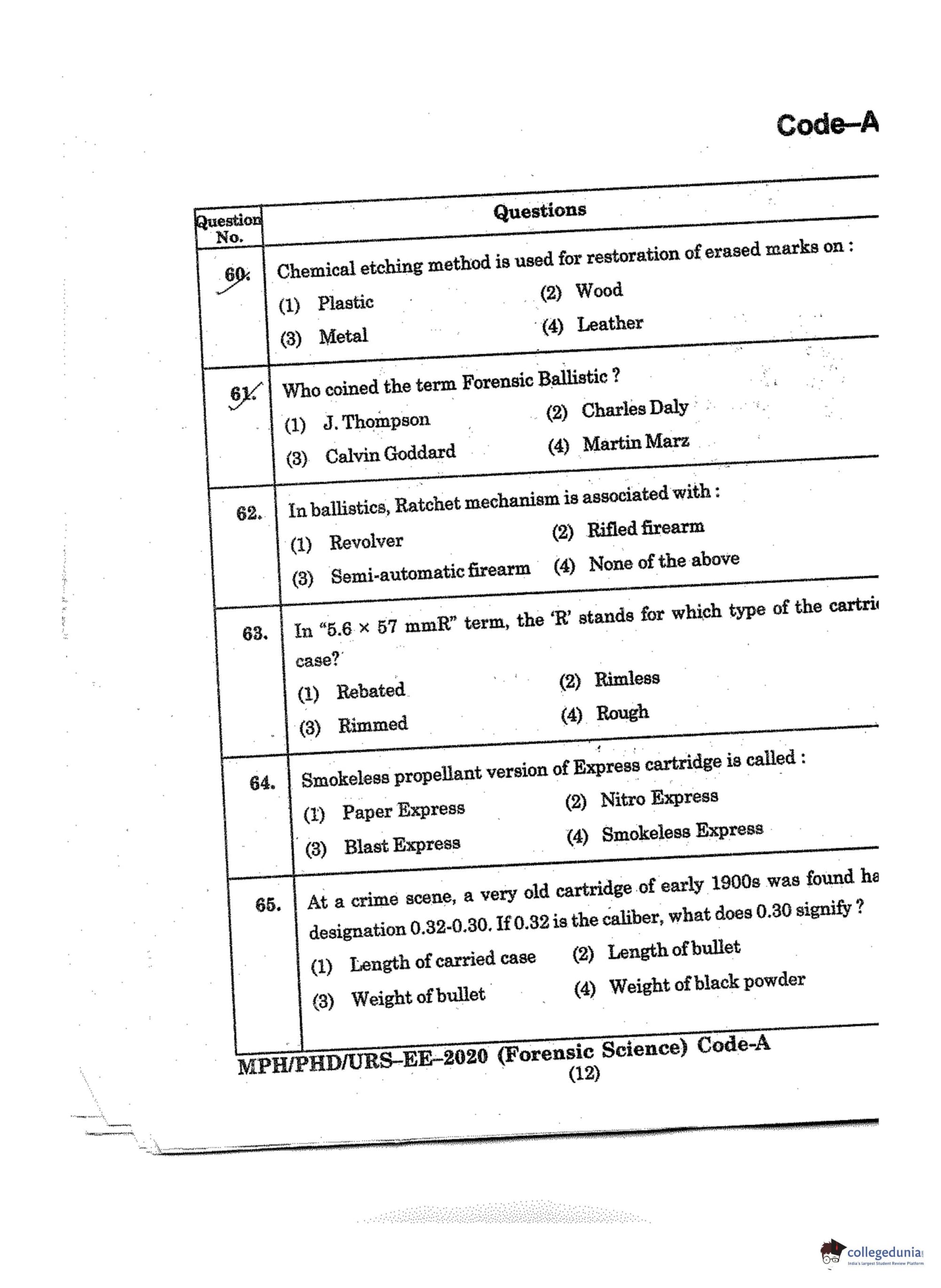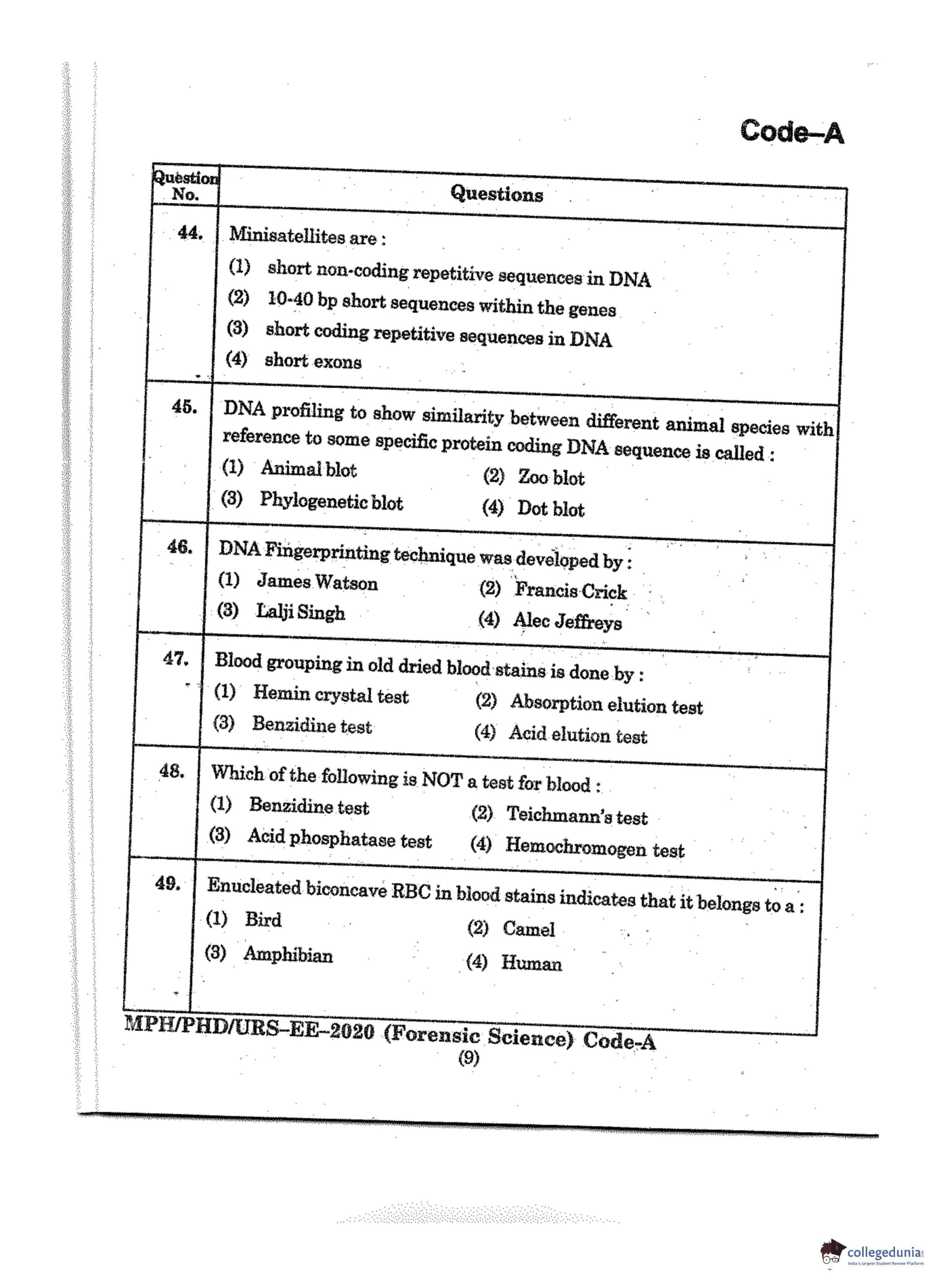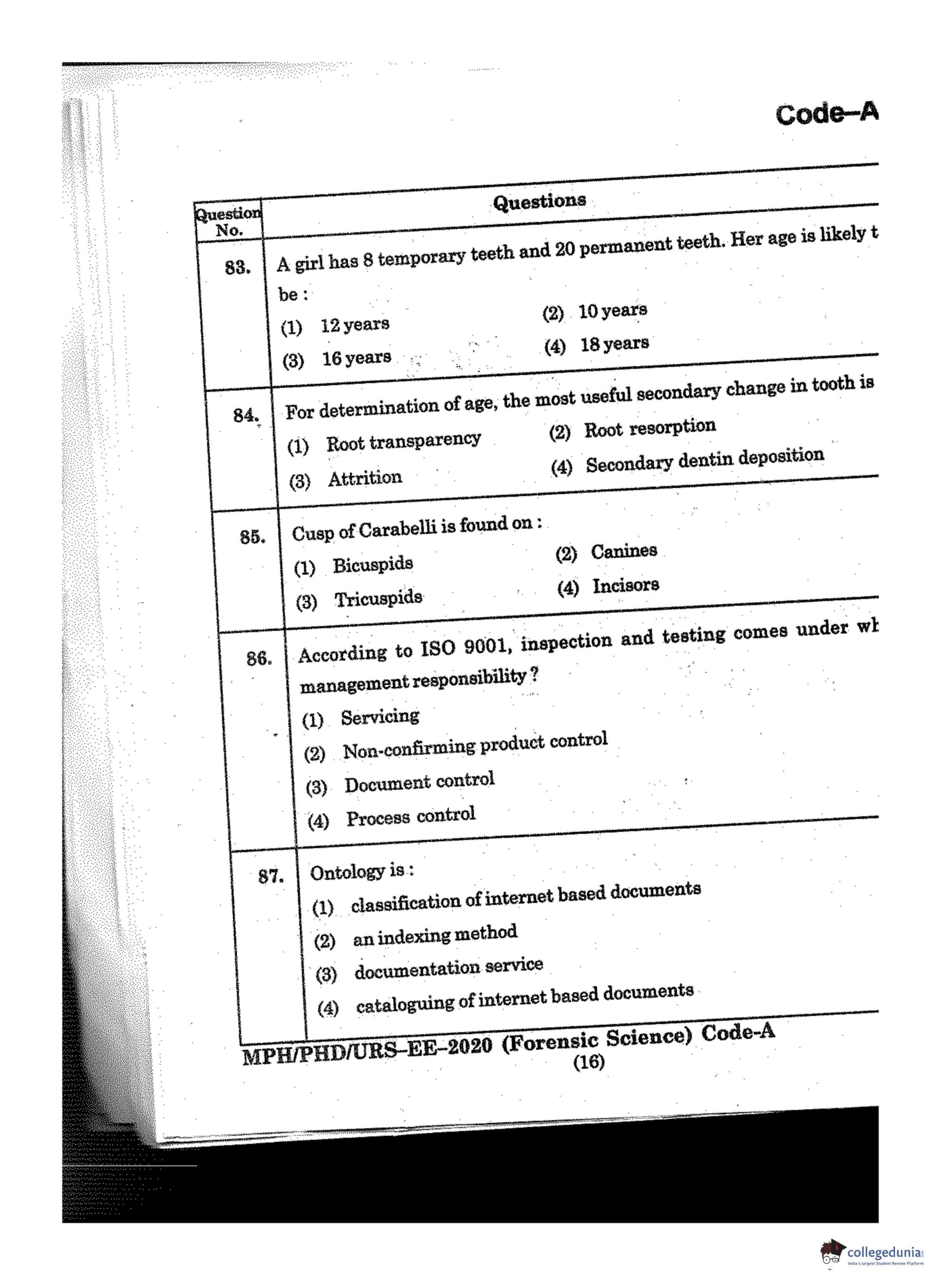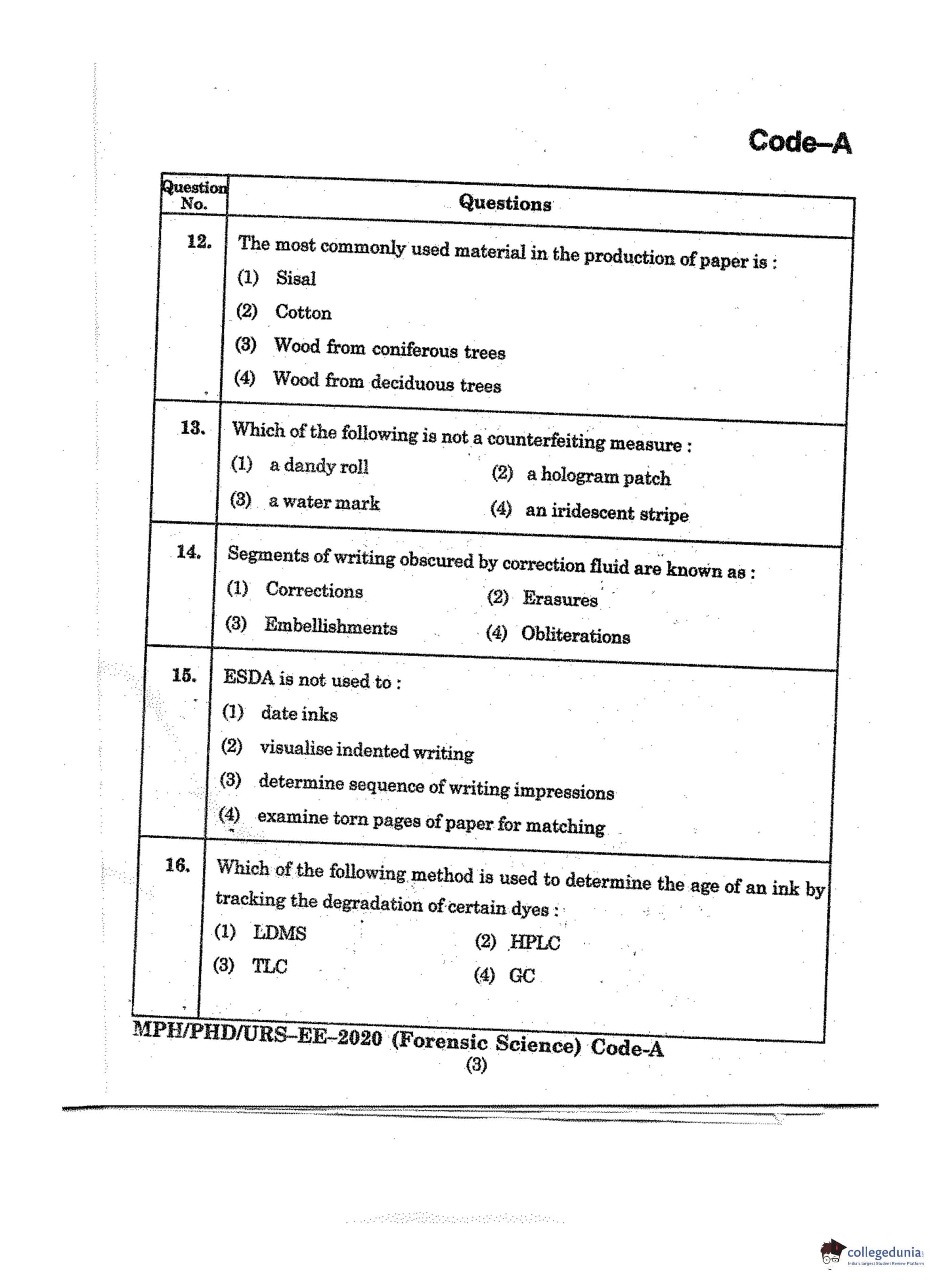 MDUCEE 2020 M.Phil/Ph.D/URS - Forensic Science Set A Question Paper with Answer Key PDFs