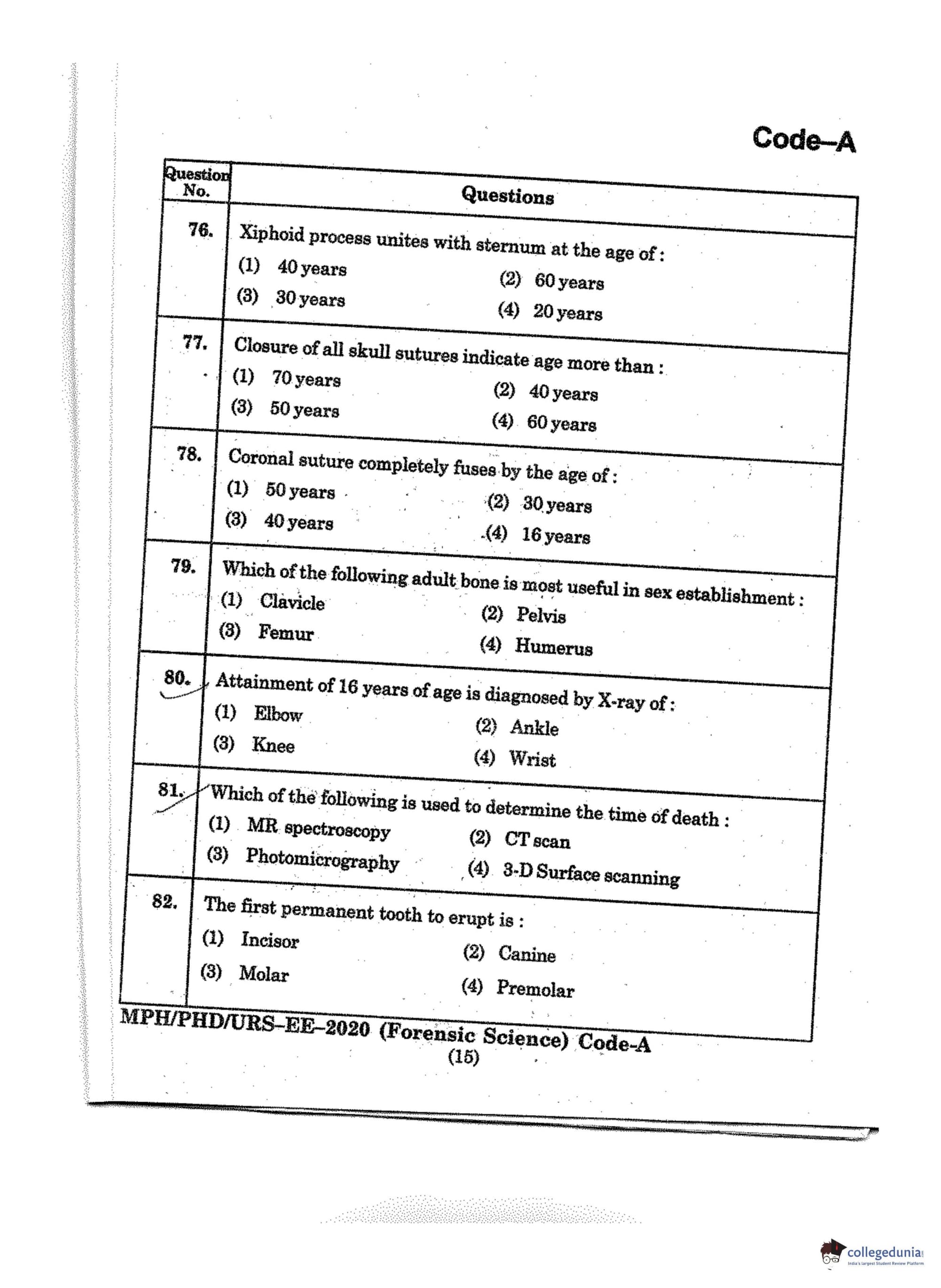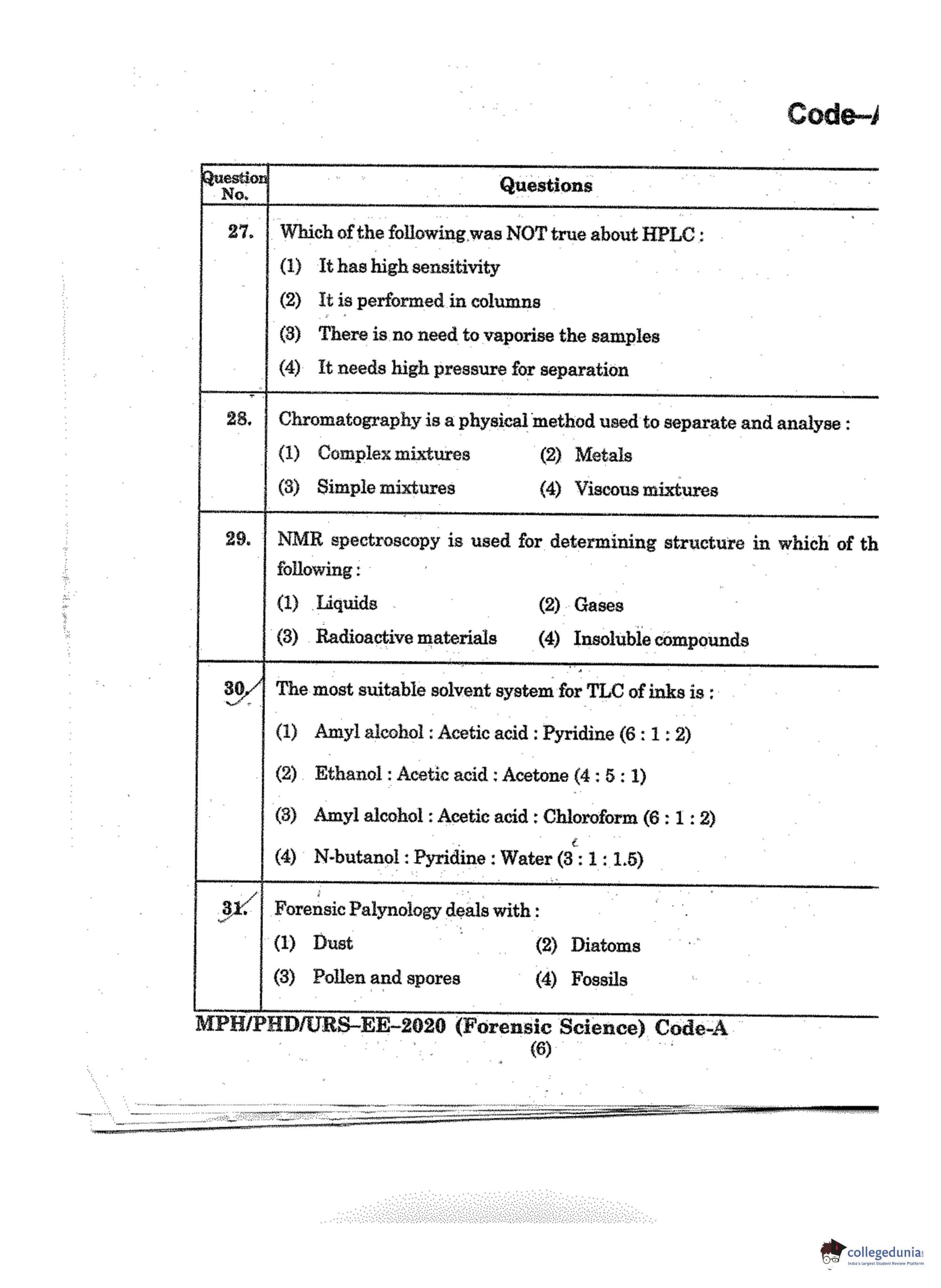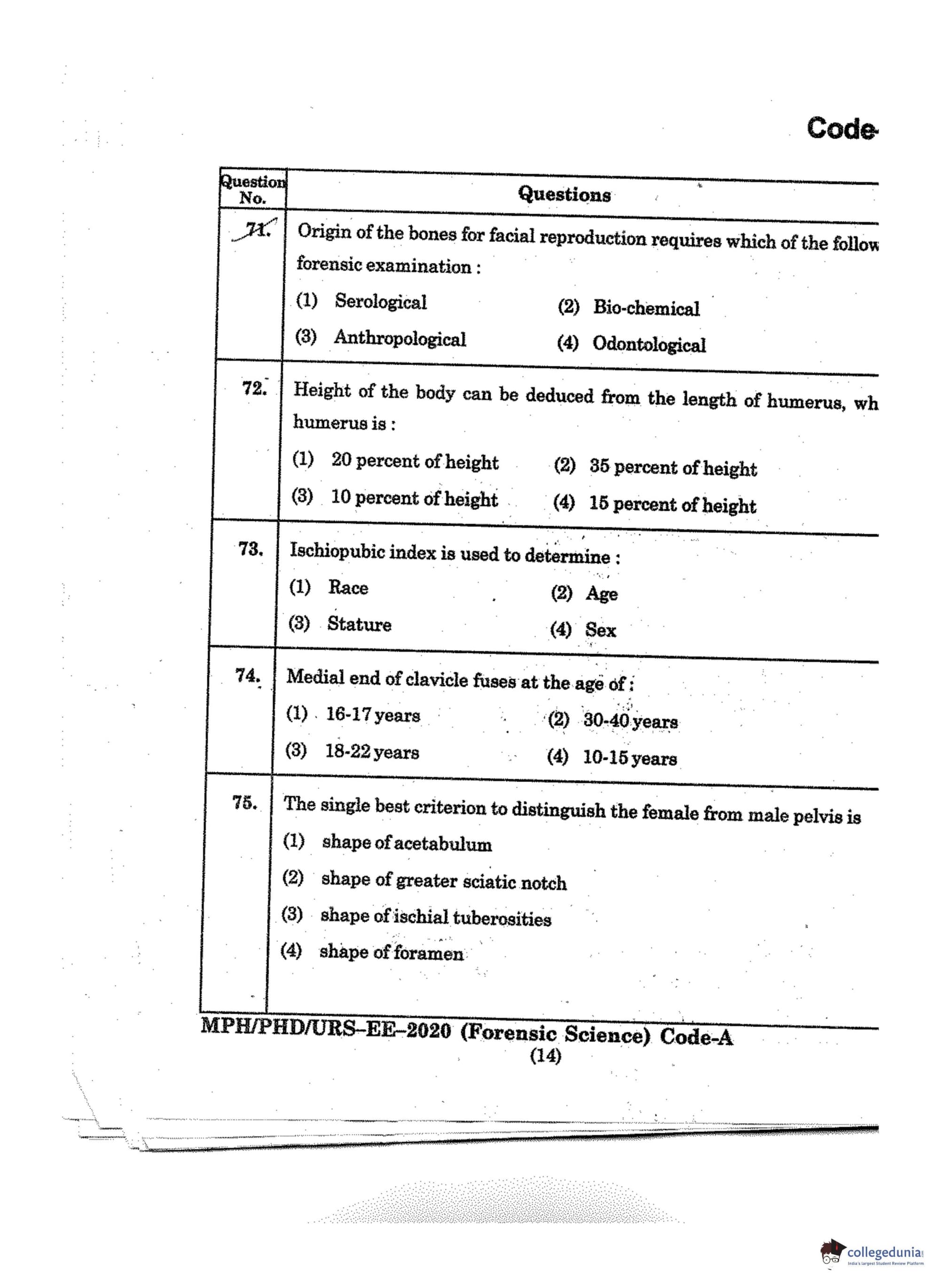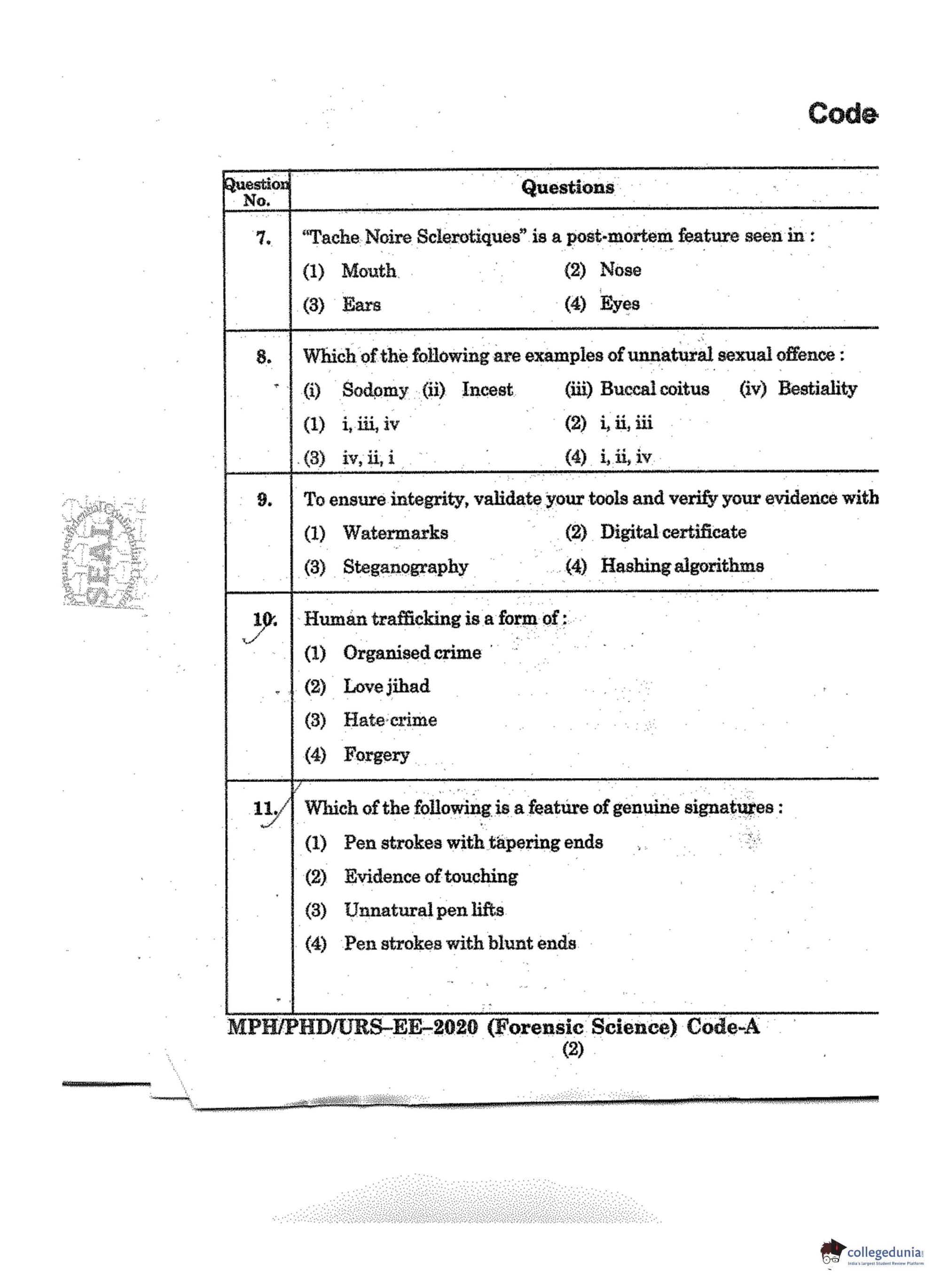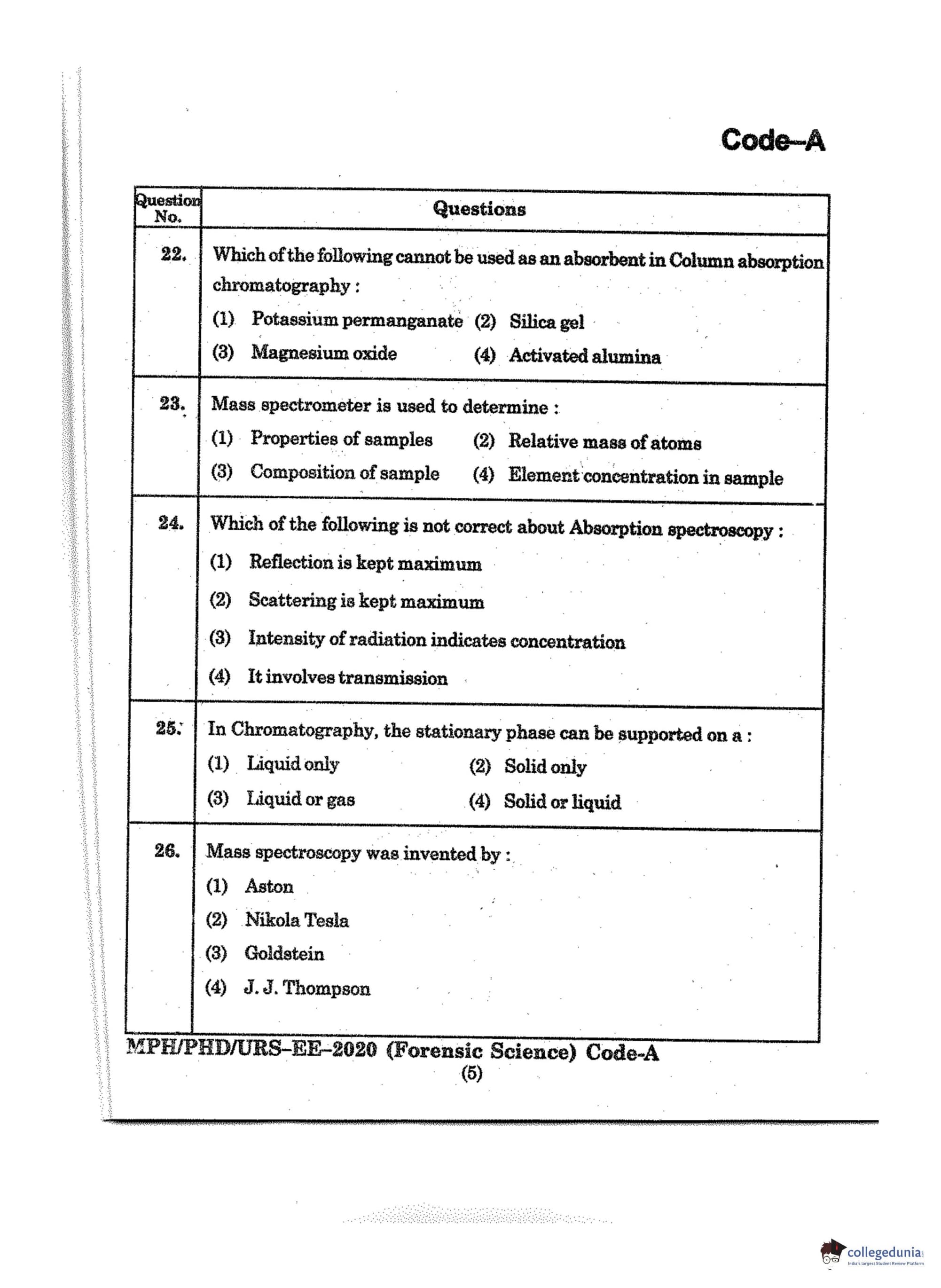 MDUCEE 2020 M.Phil/Ph.D/URS - Forensic Science Set A Question Paper with Answer Key PDFs