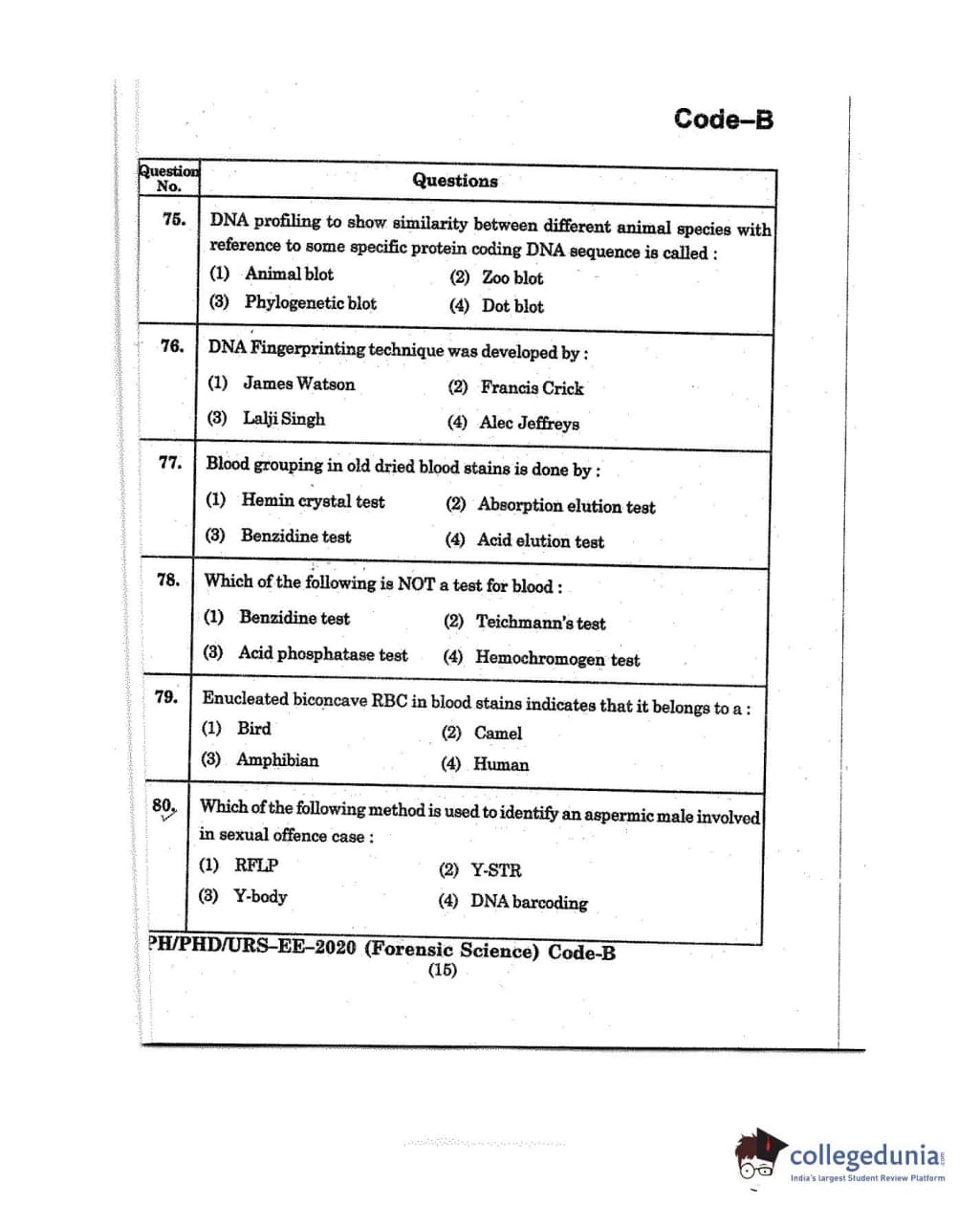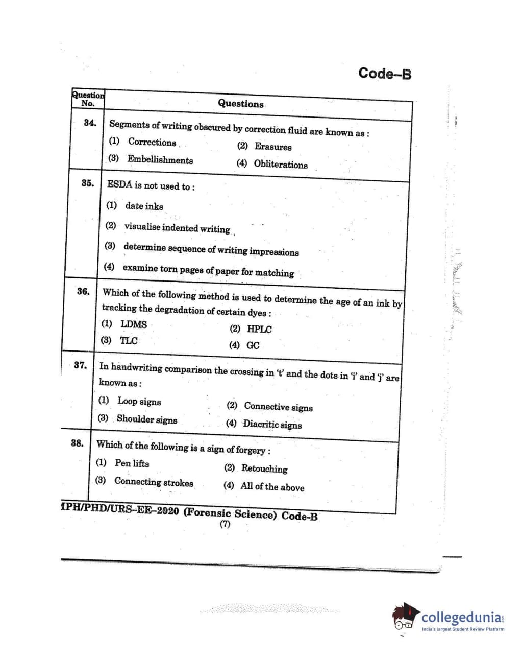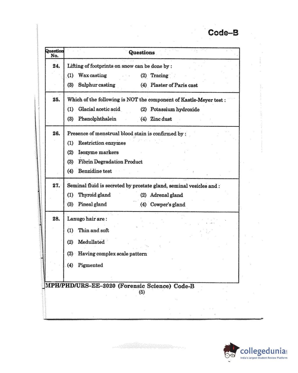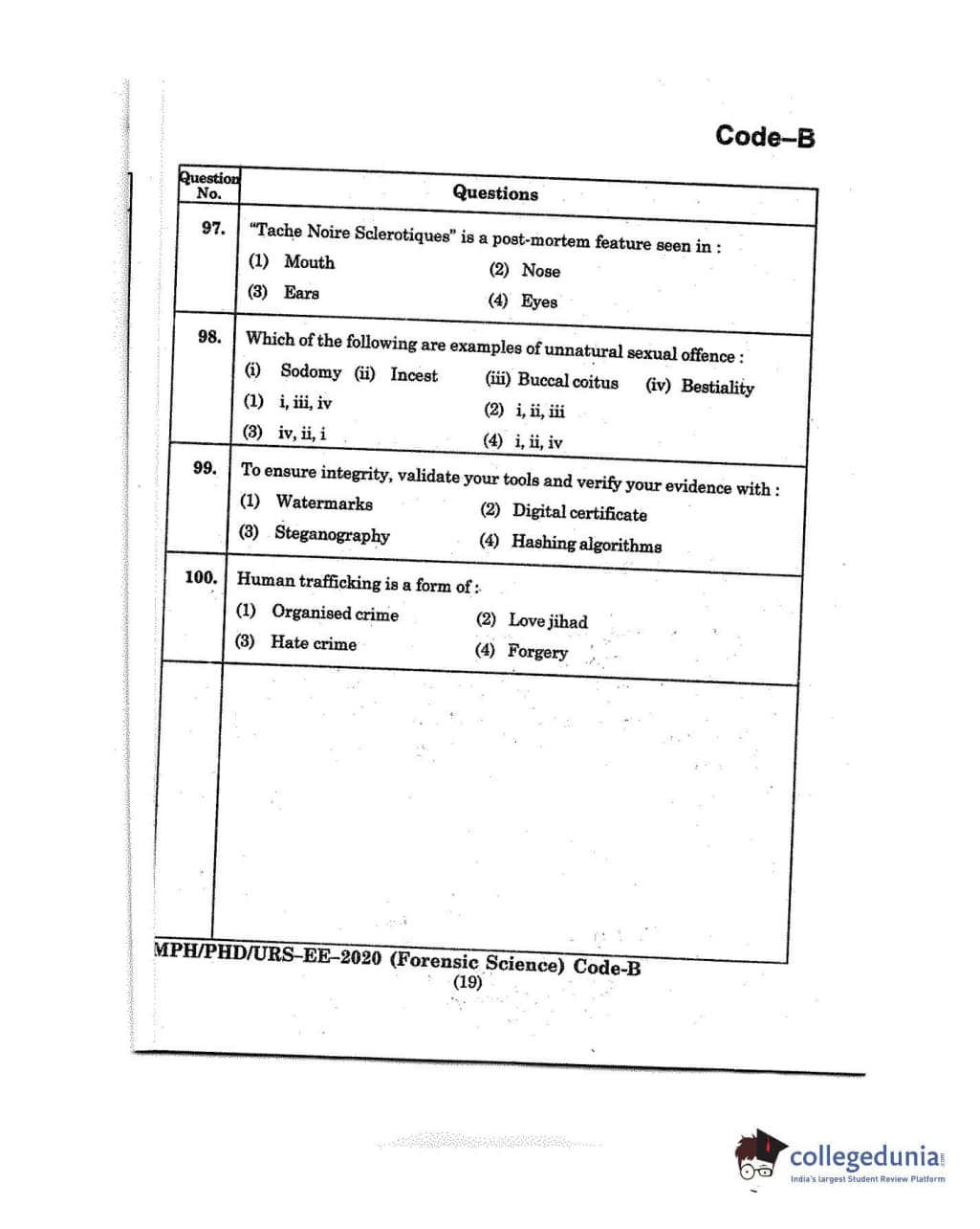 MDUCEE 2020 M.Phil/Ph.D/URS - Forensic Science Set B Question Paper with Answer Key PDFs