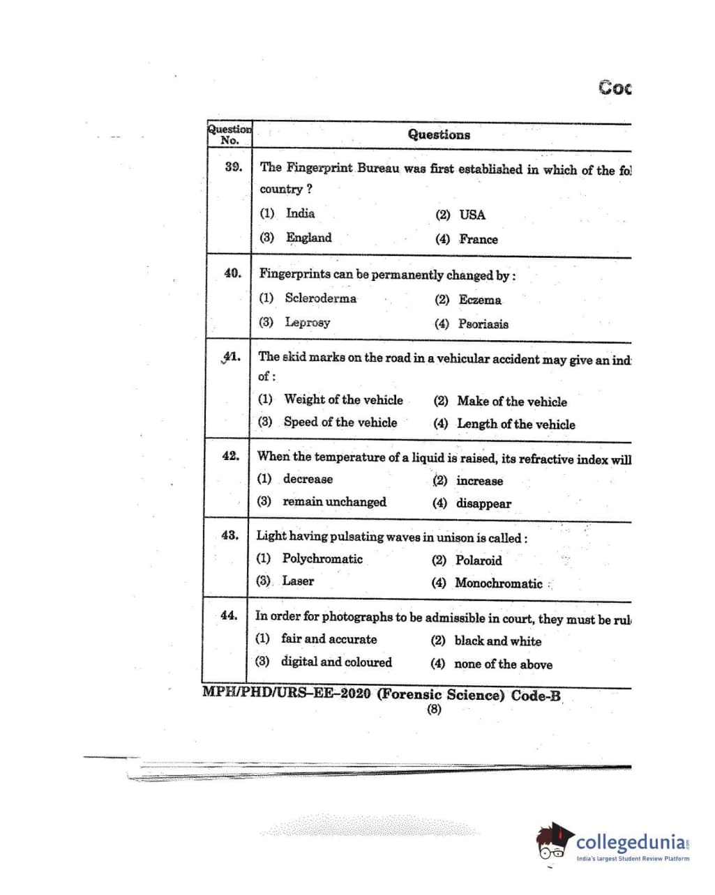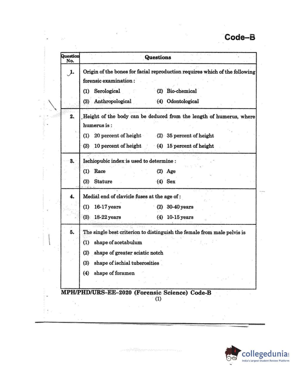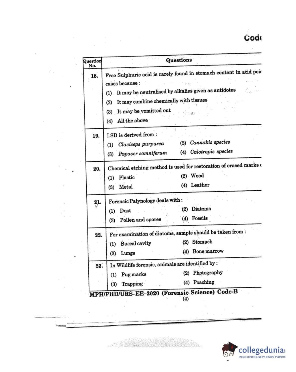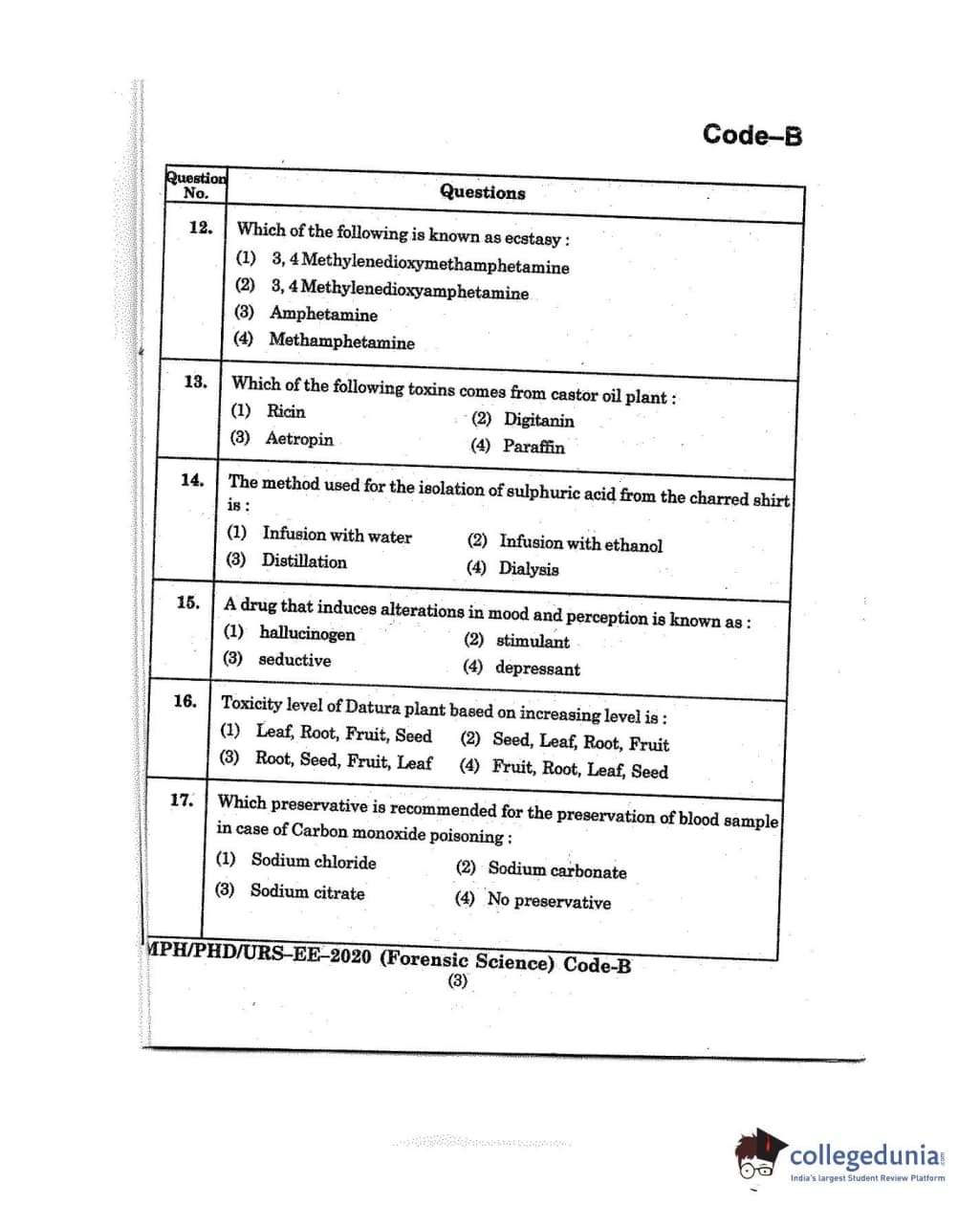 MDUCEE 2020 M.Phil/Ph.D/URS - Forensic Science Set B Question Paper with Answer Key PDFs
